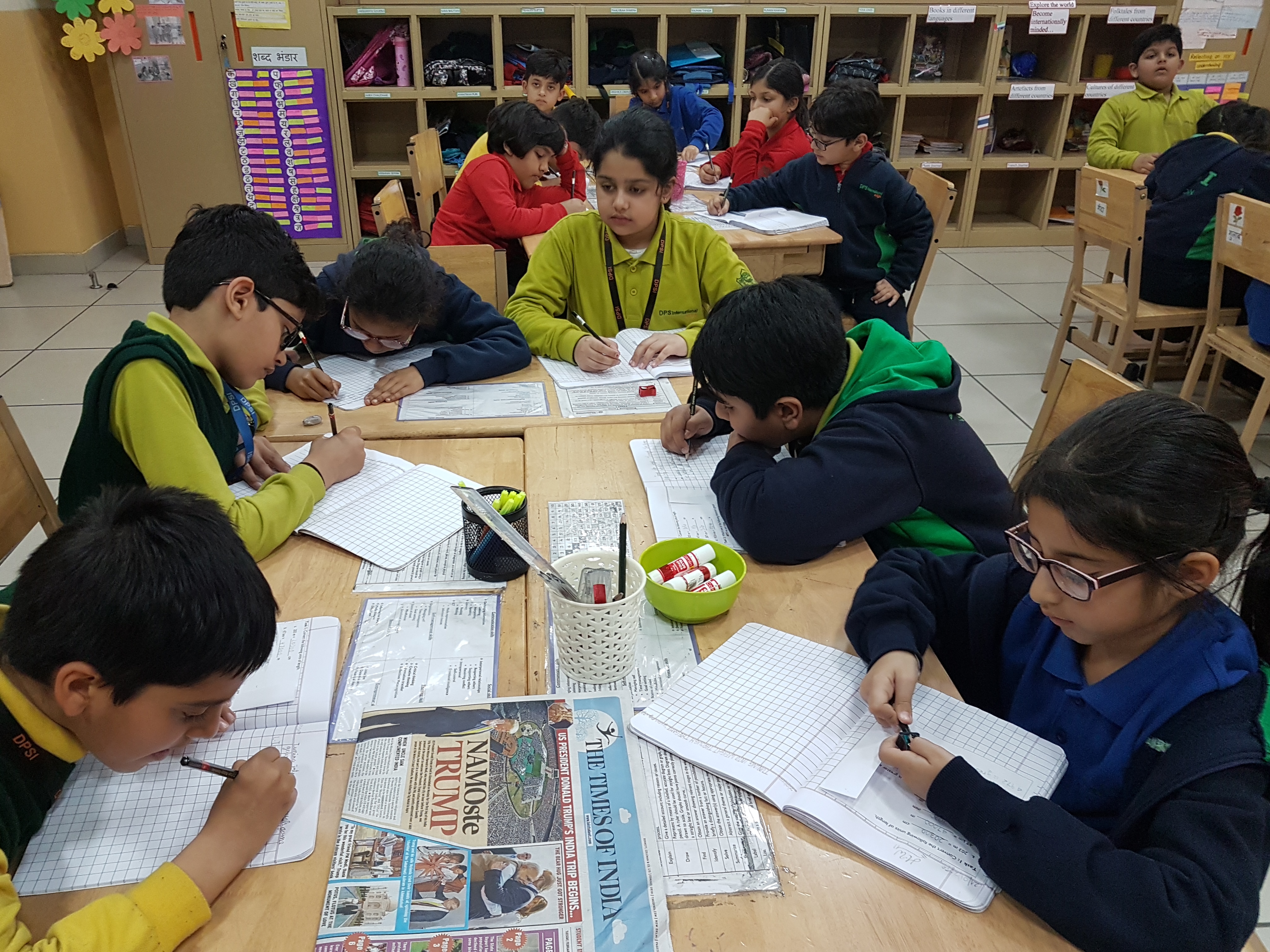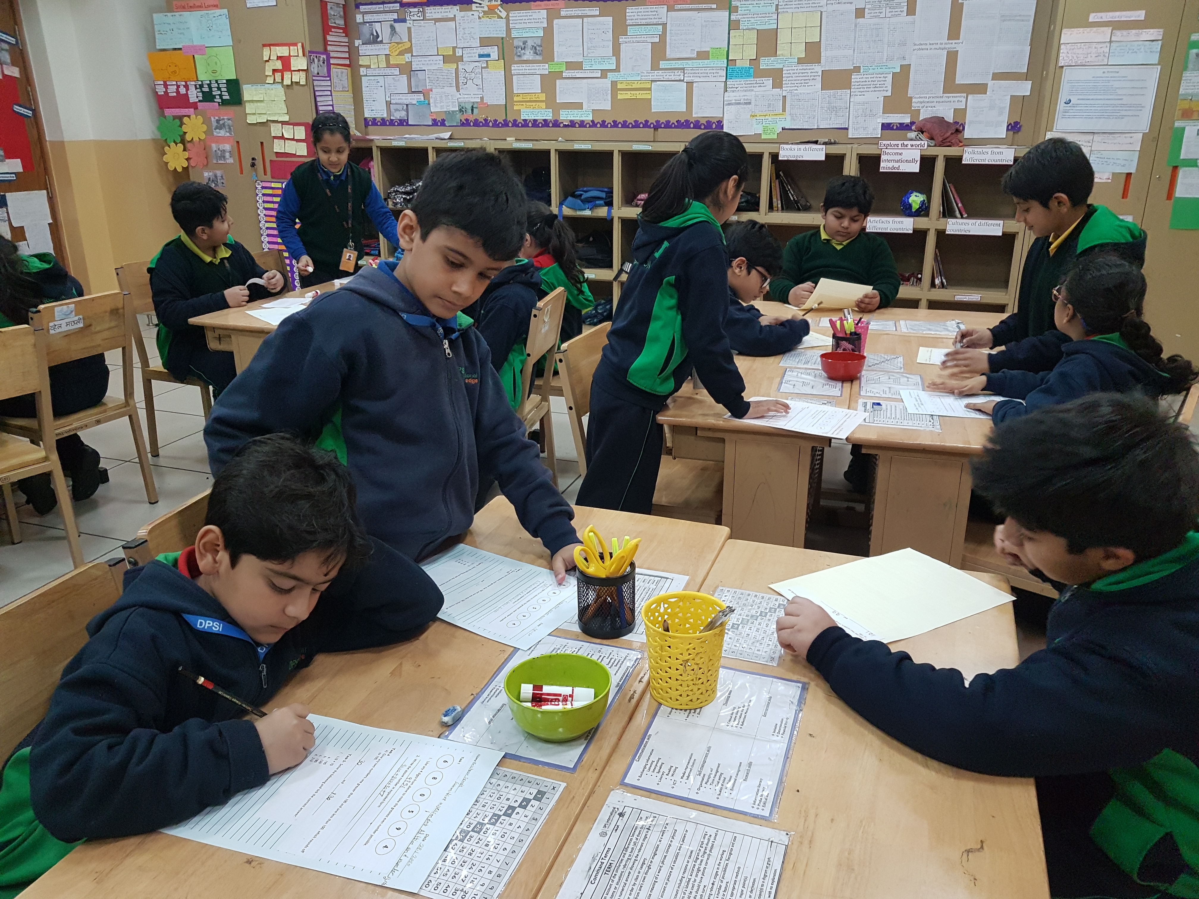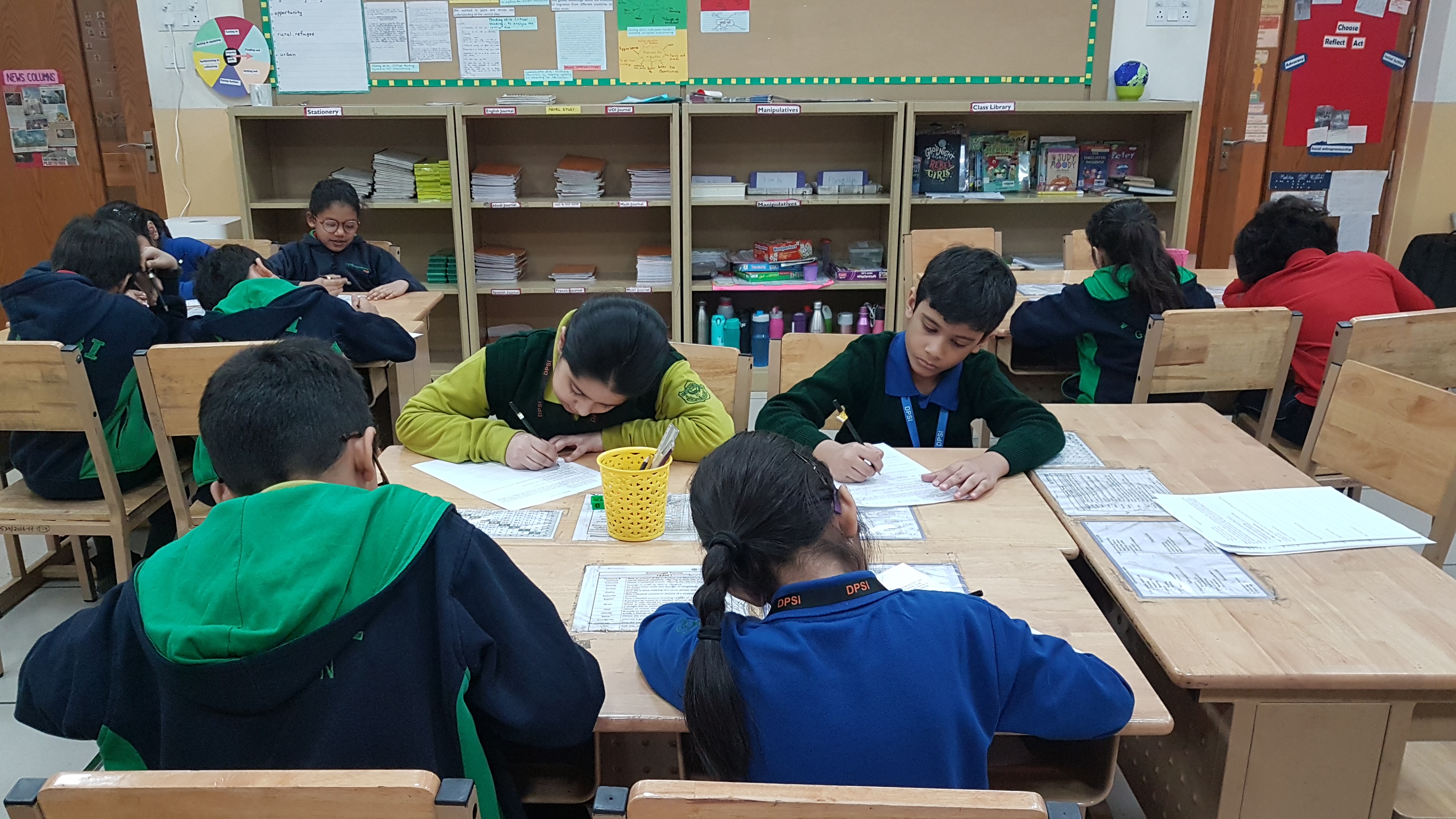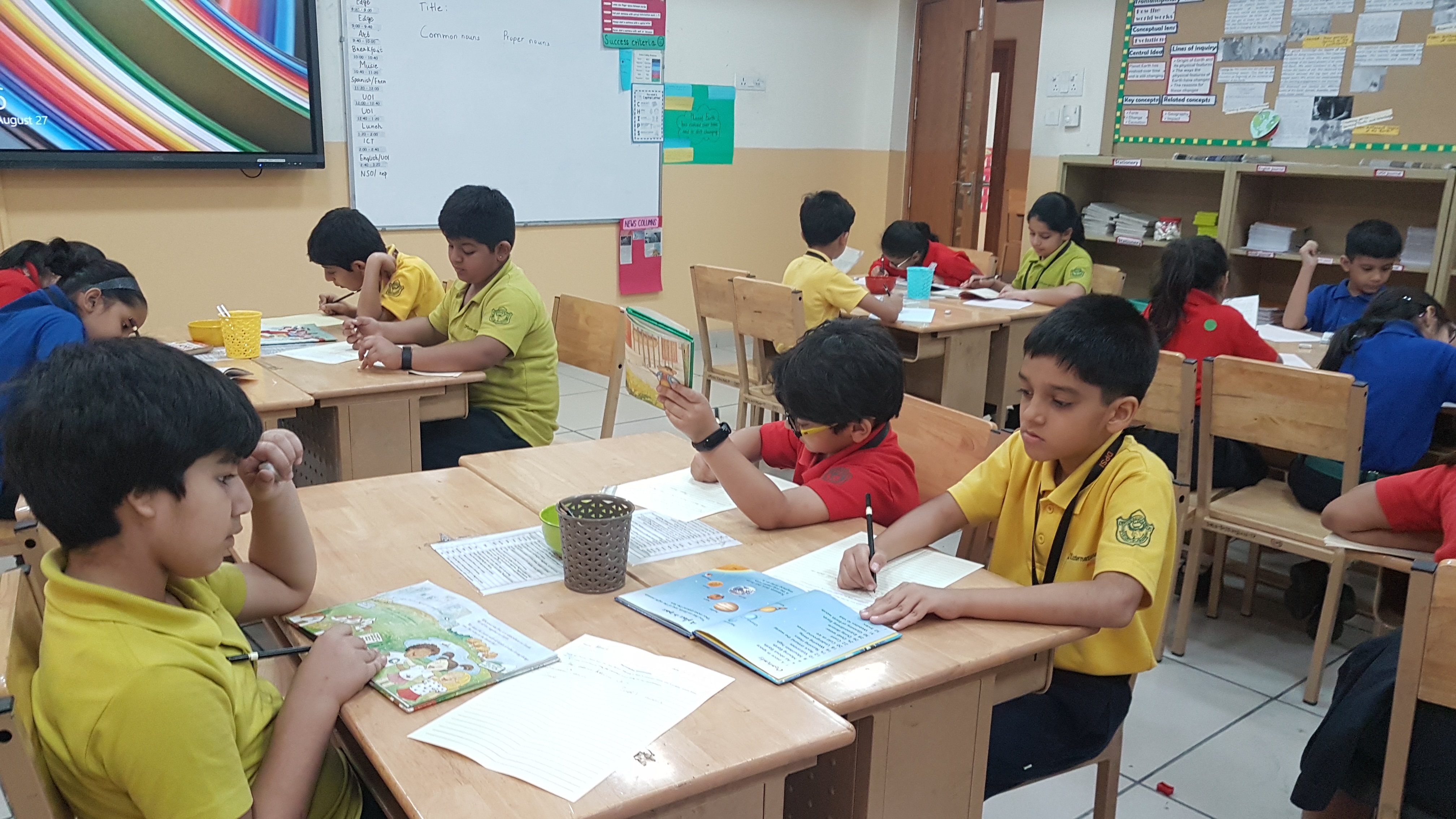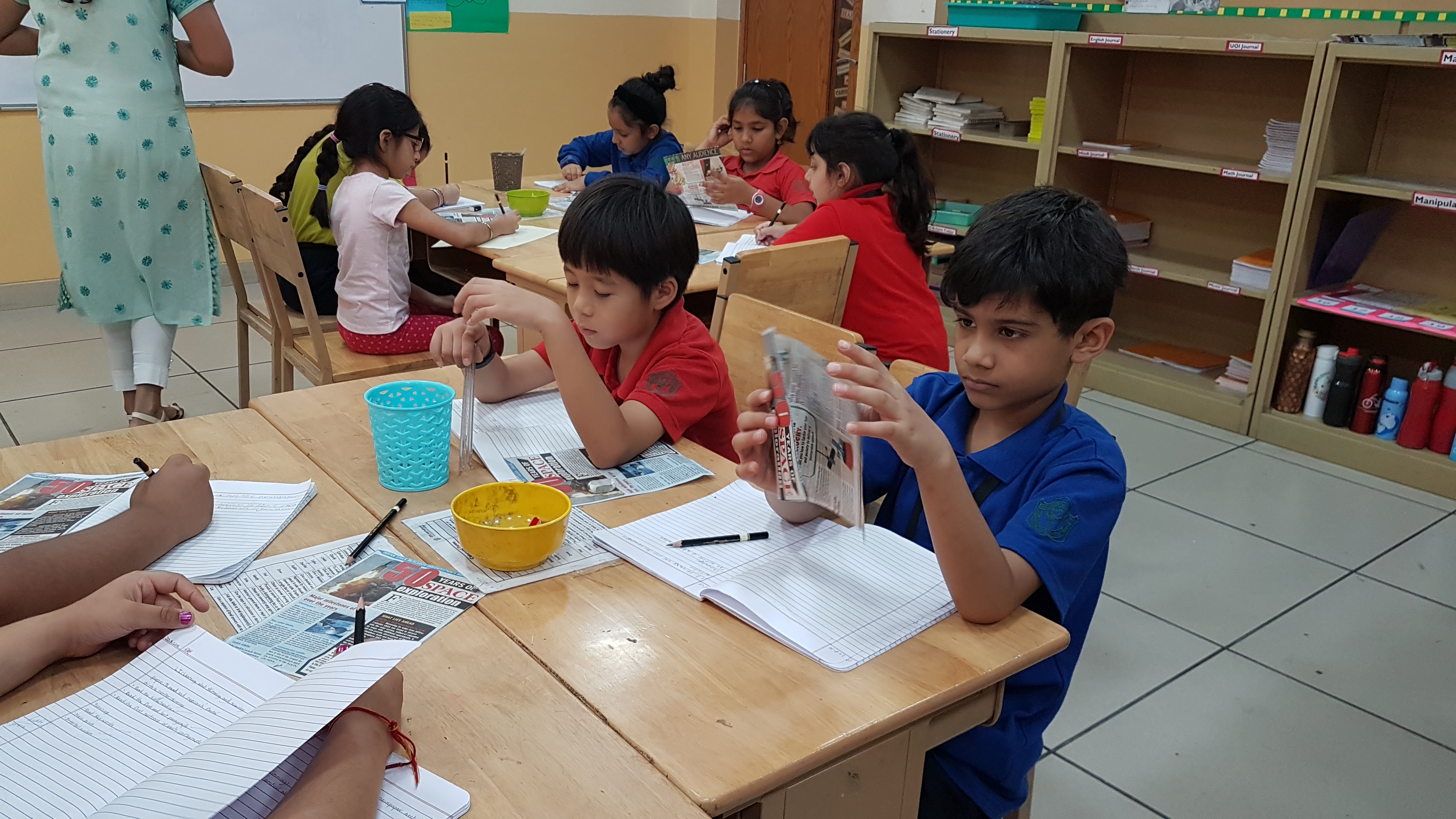 Students were eager to learn a technique used in day to day life known as skimming and scanning. They were made to read a news article and used their understanding to answer given questions from the same. They created sentences with ‘spell bee’ words and were also able to recognize the different parts of speech. Students were familiarized with the concept of novel study with the book ‘The Eyes of the Eagle’ by Ruskin Bond. Using De Bono’s Thinking Hats, the eager readers set out to discover various interesting facts about the book and acknowledged the skills that they had used during the activity. The cover page of the book was then analyzed and the students penned down what they surmised the story to be. ‘Fill in the blanks’ were given to the students for them to rearrange into correct spellings.