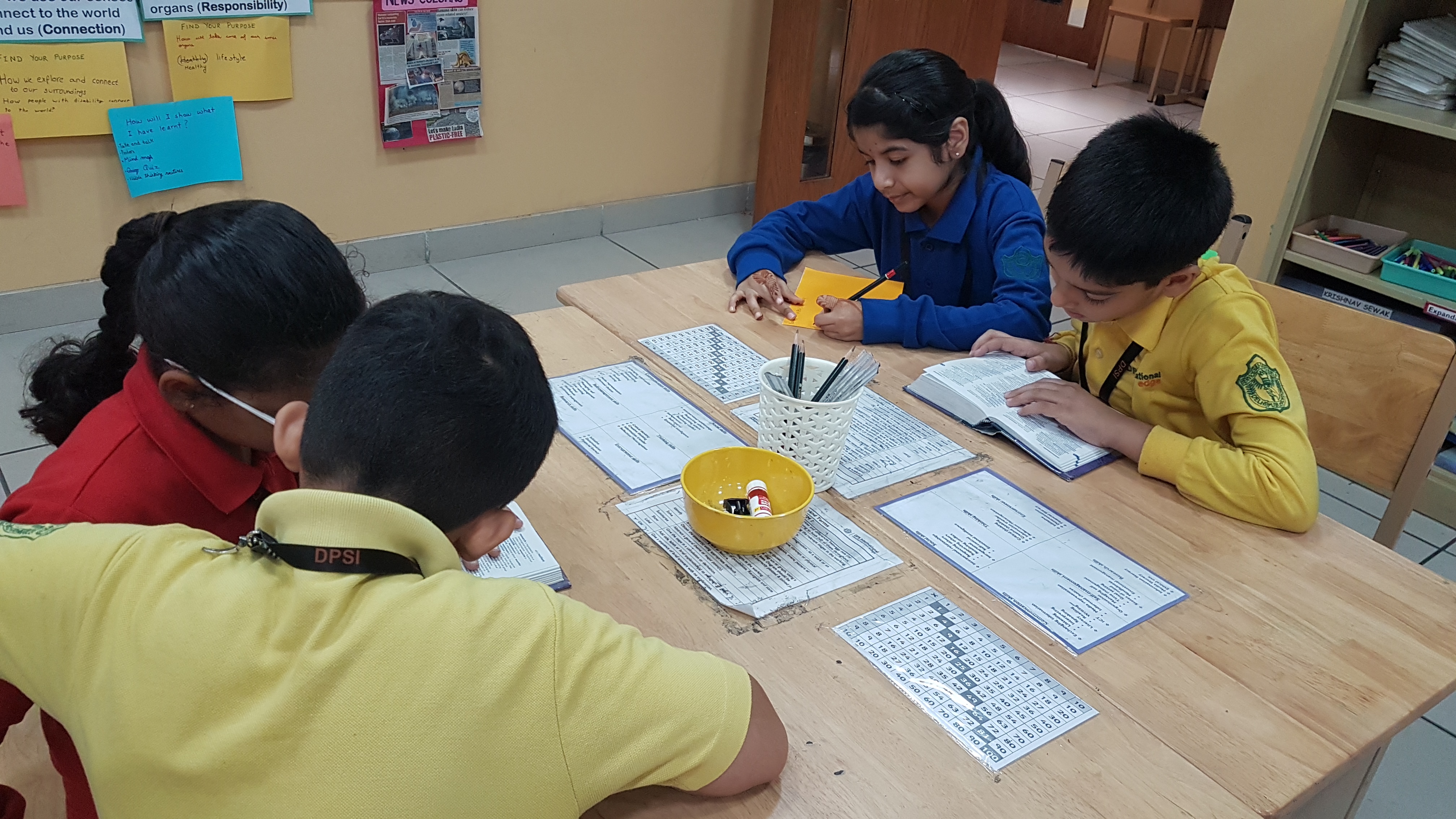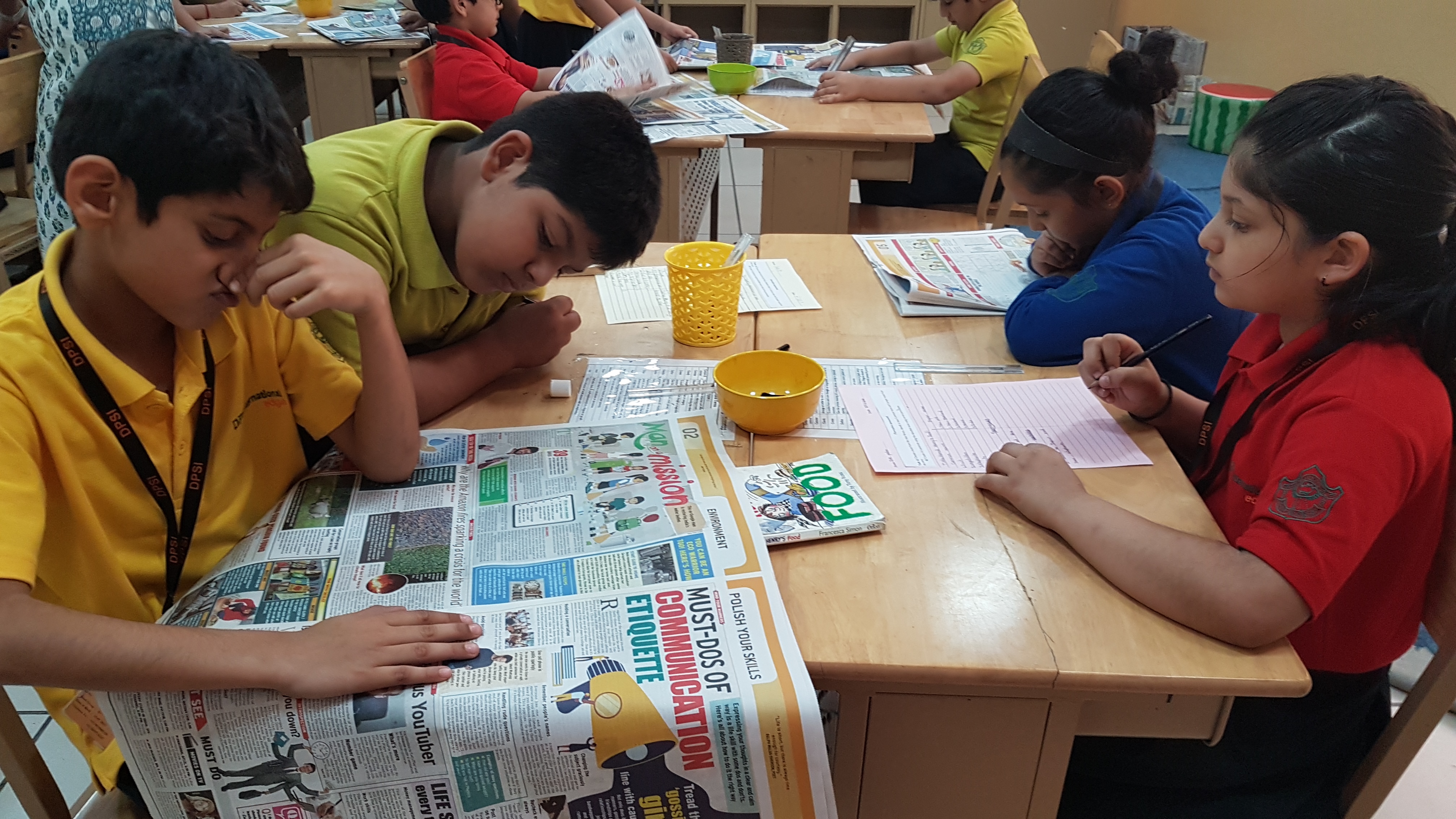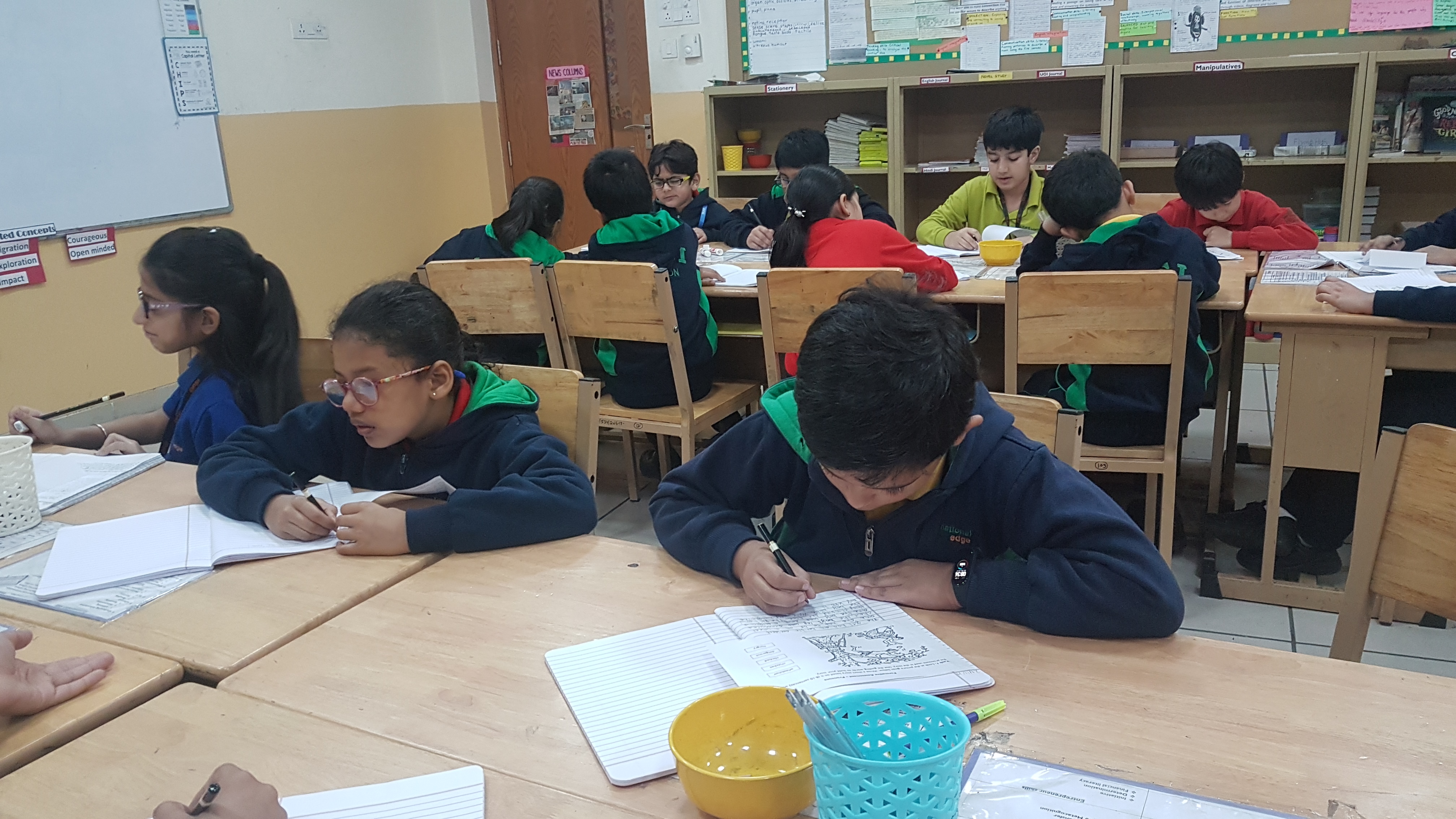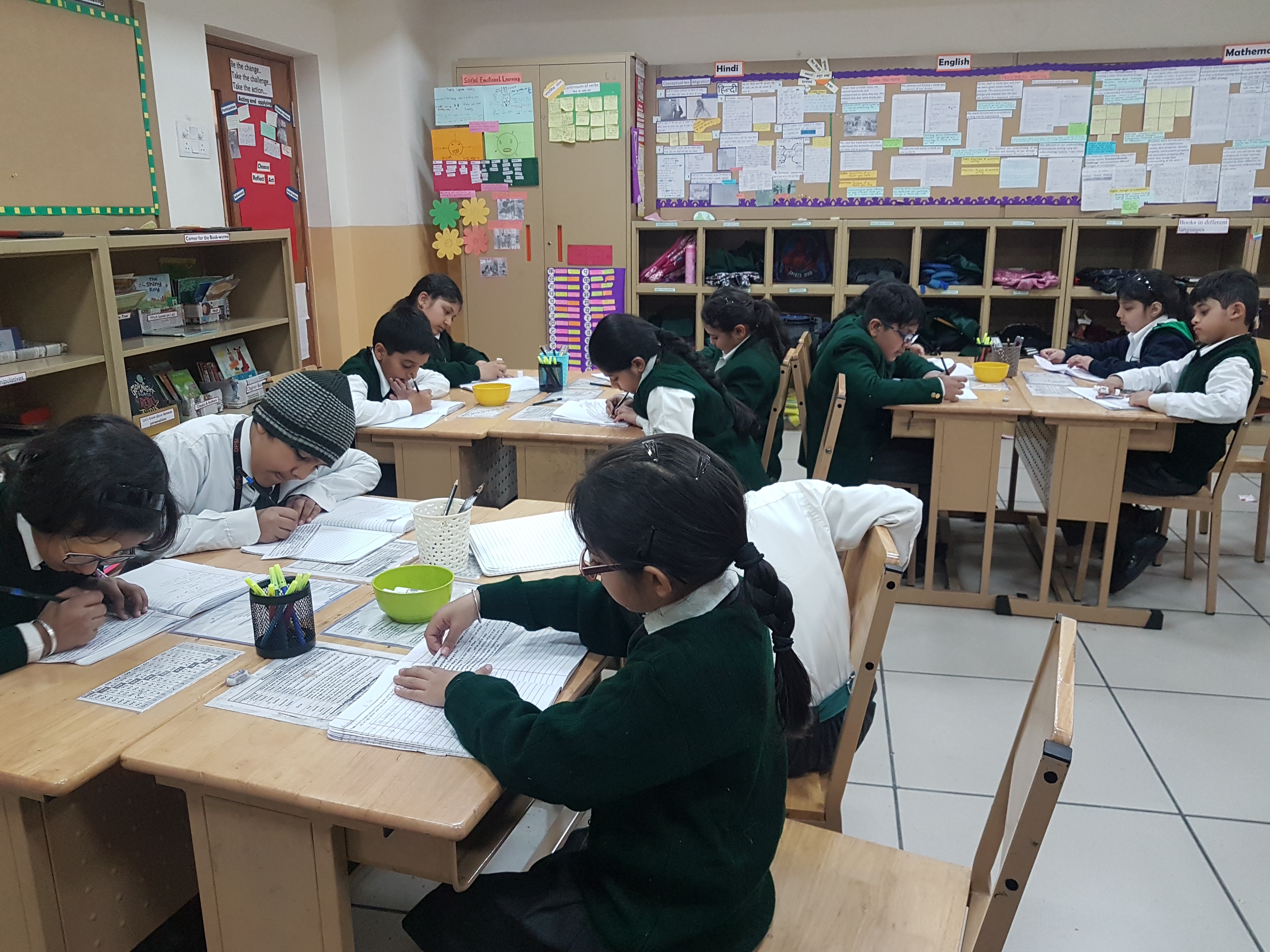 Students were eager to learn a technique used in day to day life known as skimming and scanning. They were made to read a news article and used their understanding to answer given questions from the same. They created sentences with ‘spell bee’ words and were also able to recognize the different parts of speech. Students were familiarized with the concept of novel study with the book ‘The Eyes of the Eagle’ by Ruskin Bond. Using De Bono’s Thinking Hats, the eager readers set out to discover various interesting facts about the book and acknowledged the skills that they had used during the activity. The cover page of the book was then analyzed and the students penned down what they surmised the story to be. ‘Fill in the blanks’ were given to the students for them to rearrange into correct spellings.