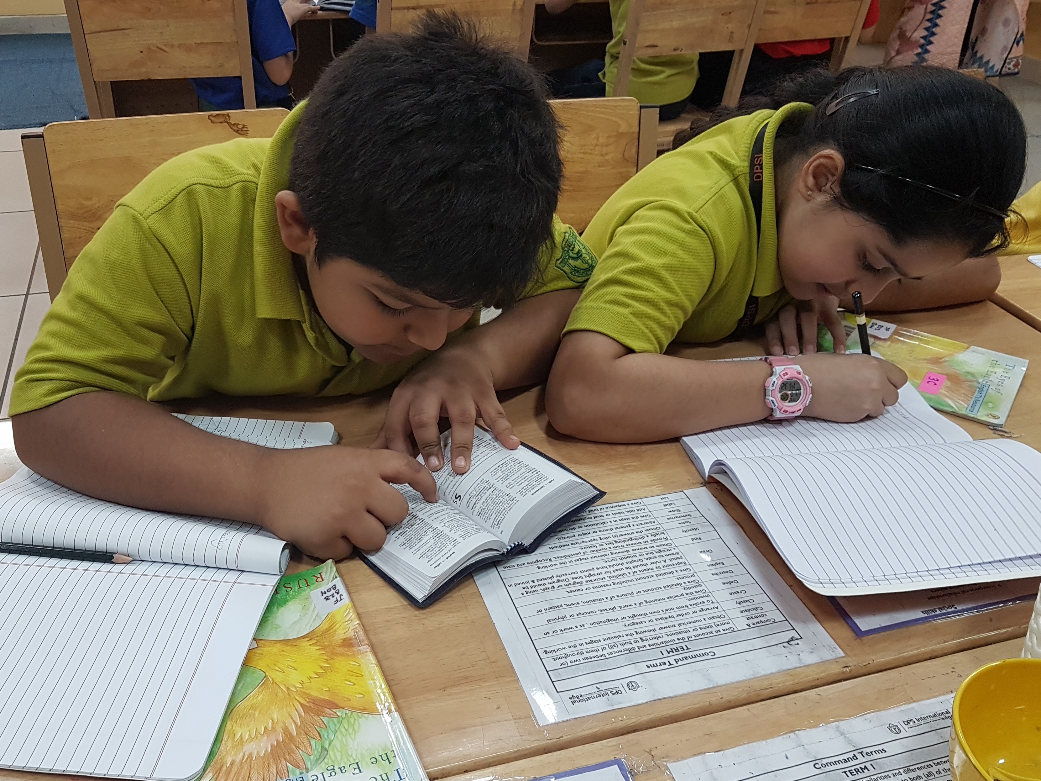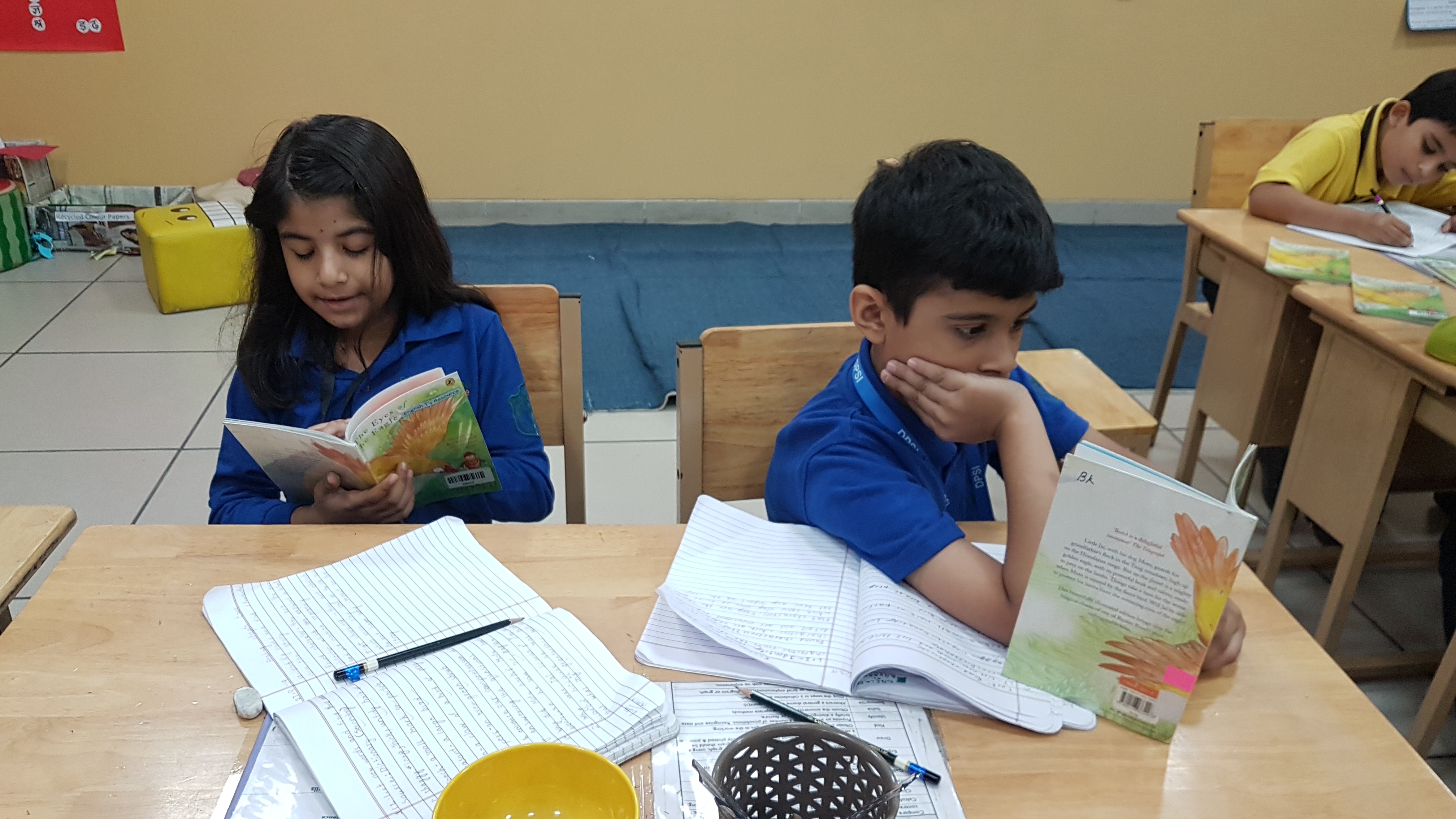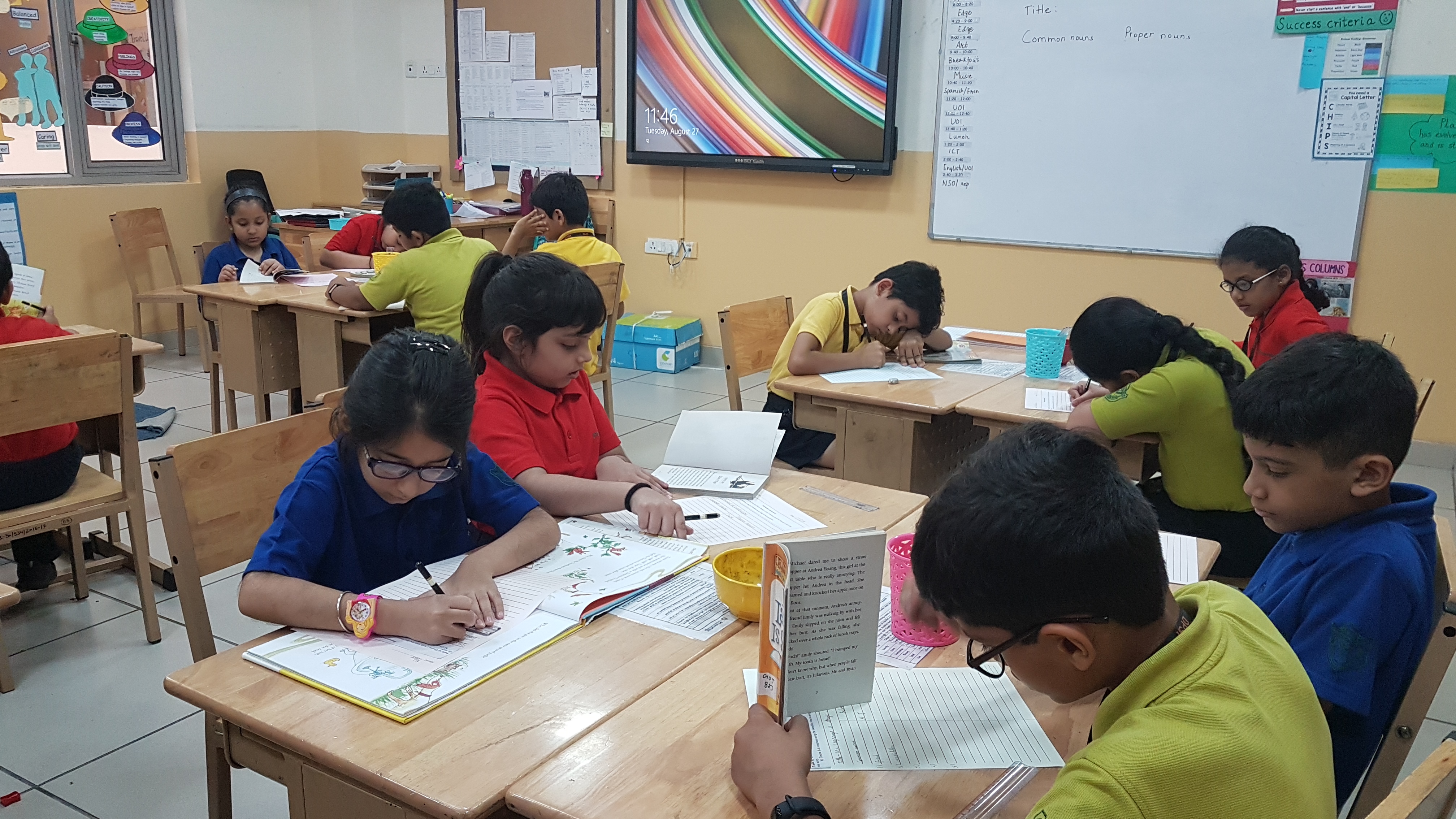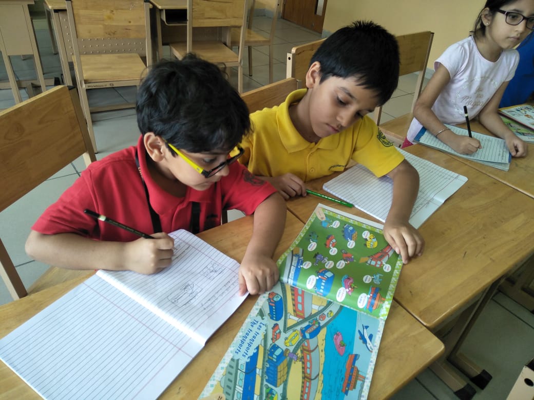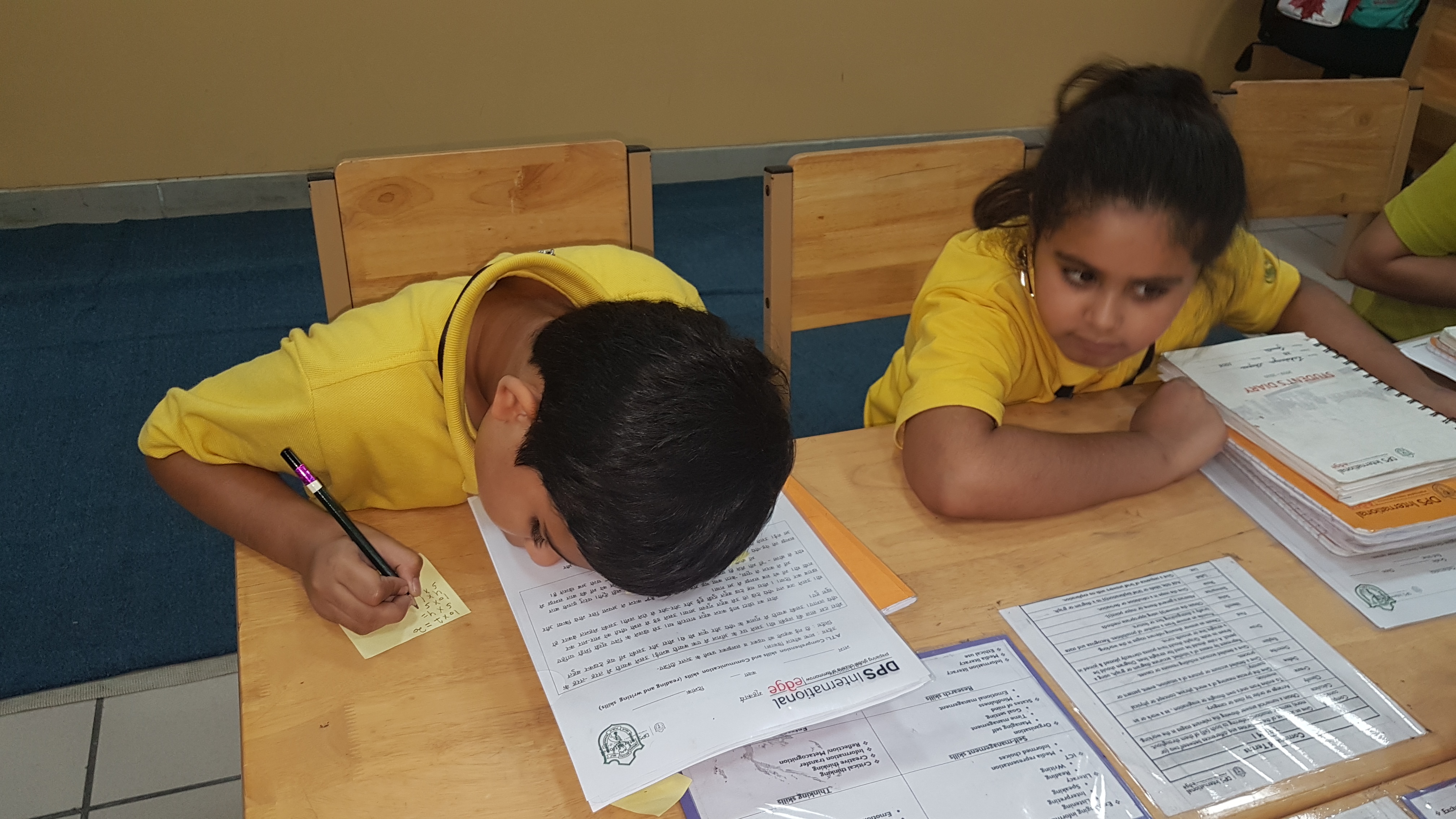 Students were eager to learn a technique used in day to day life known as skimming and scanning. They were made to read a news article and used their understanding to answer given questions from the same. They created sentences with ‘spell bee’ words and were also able to recognize the different parts of speech. Students were familiarized with the concept of novel study with the book ‘The Eyes of the Eagle’ by Ruskin Bond. Using De Bono’s Thinking Hats, the eager readers set out to discover various interesting facts about the book and acknowledged the skills that they had used during the activity. The cover page of the book was then analyzed and the students penned down what they surmised the story to be. ‘Fill in the blanks’ were given to the students for them to rearrange into correct spellings.