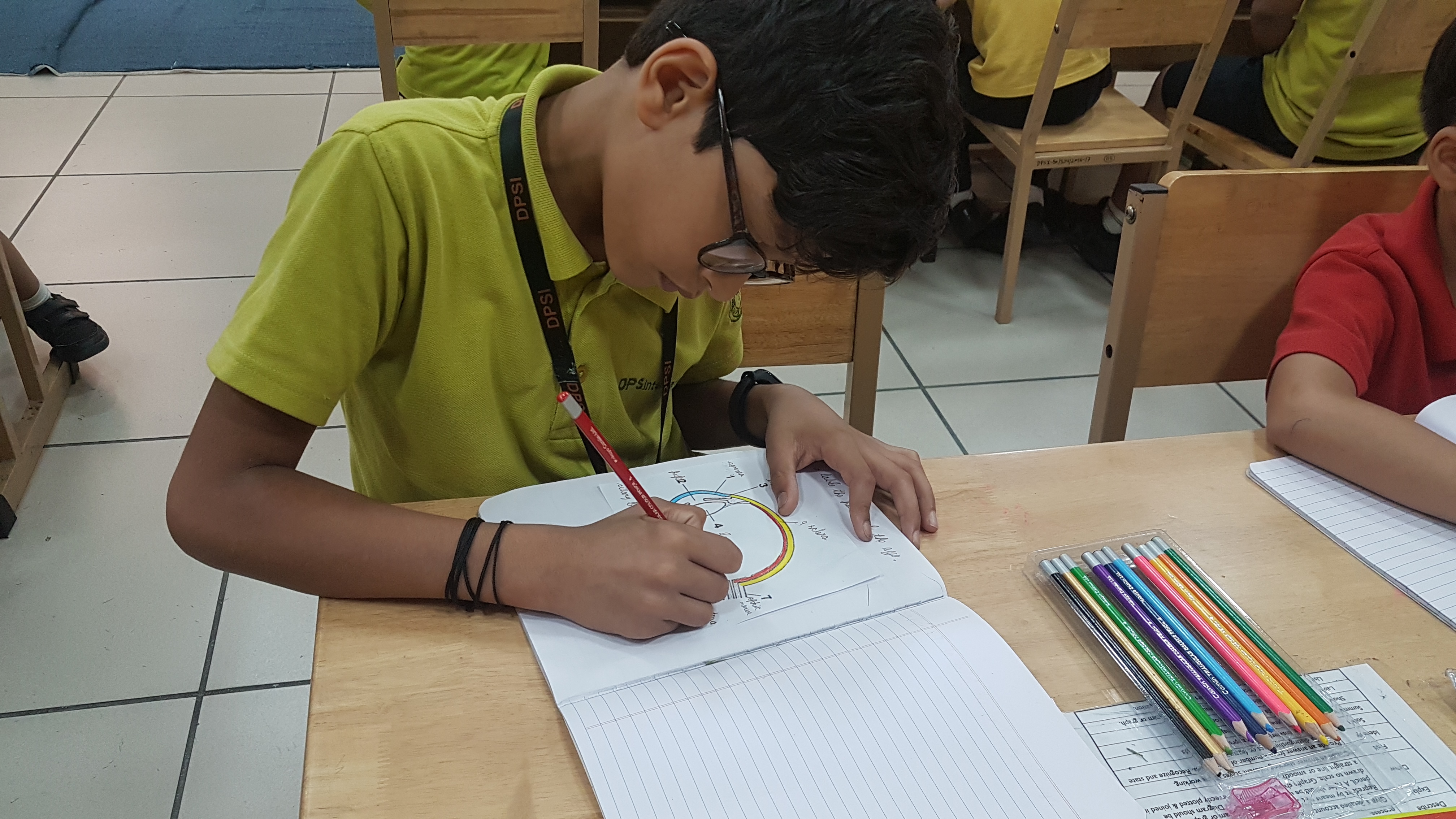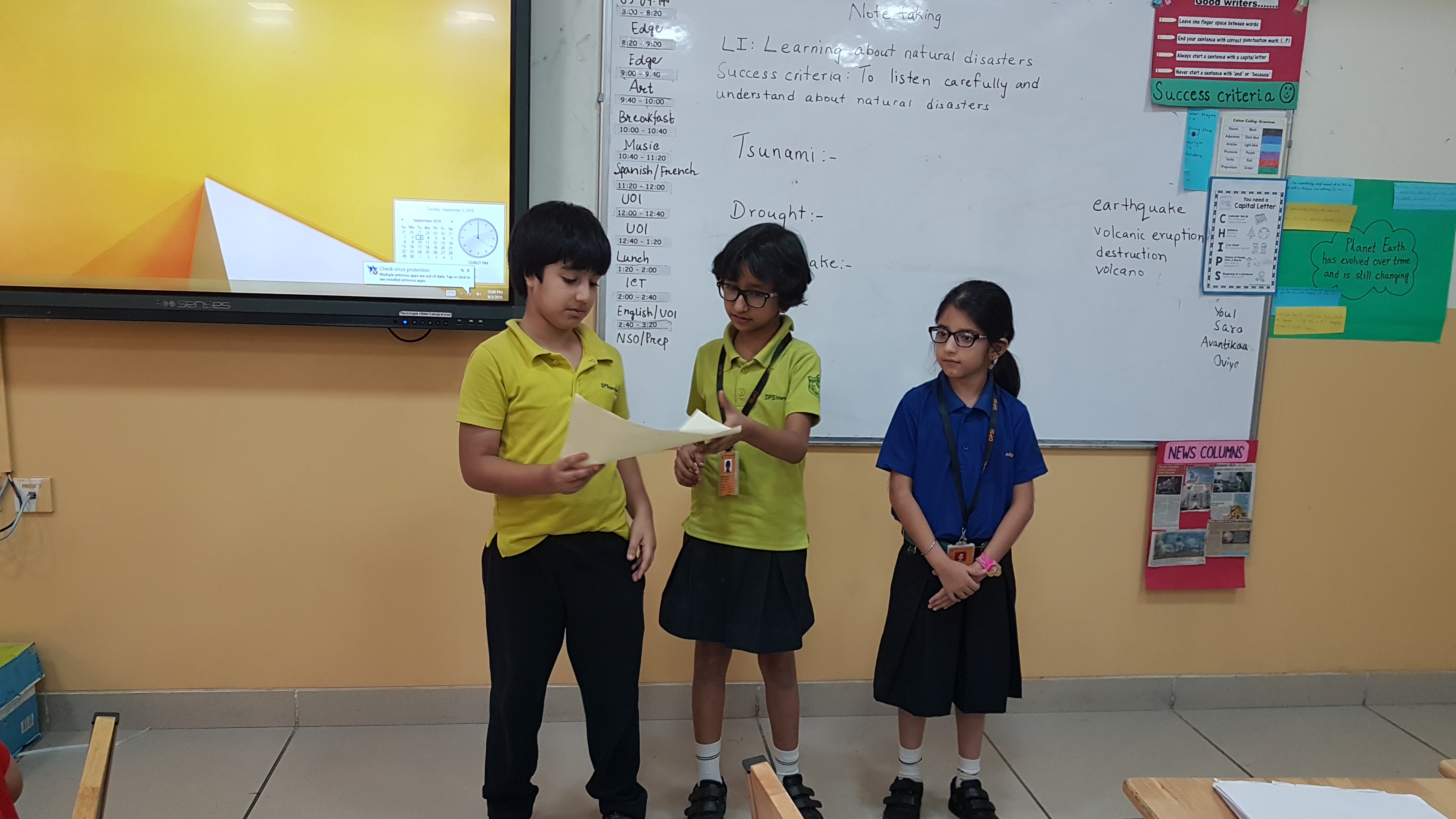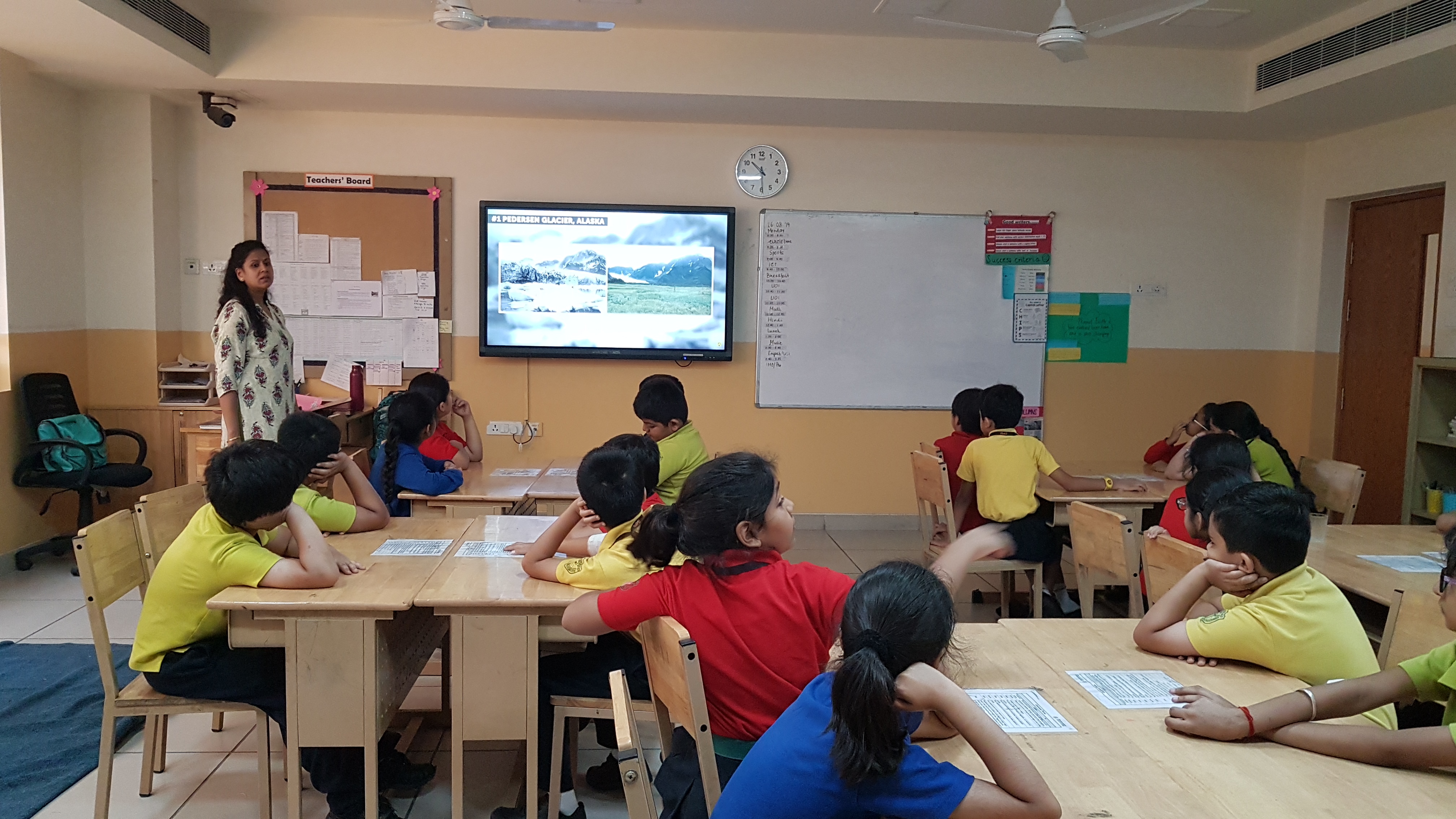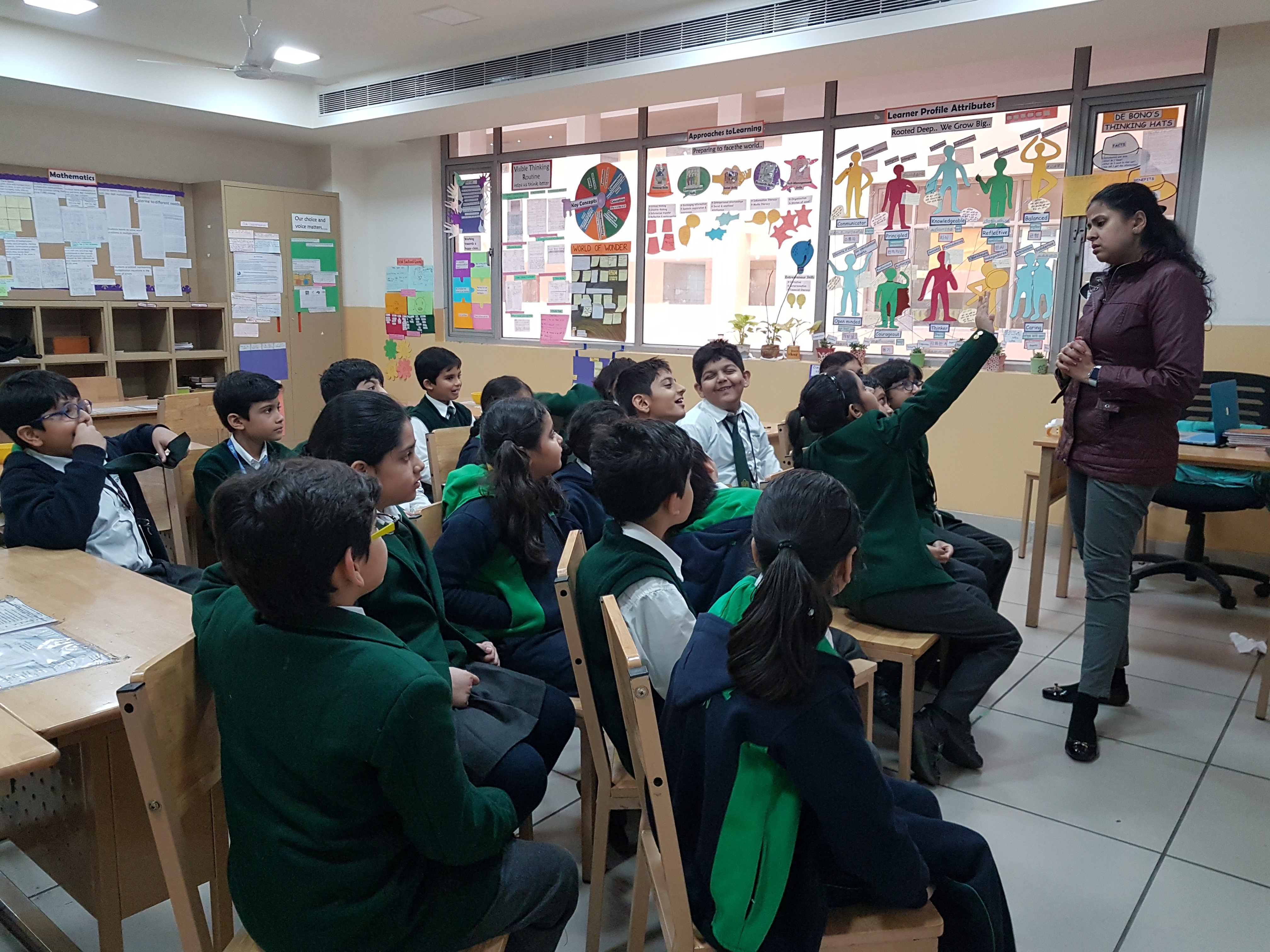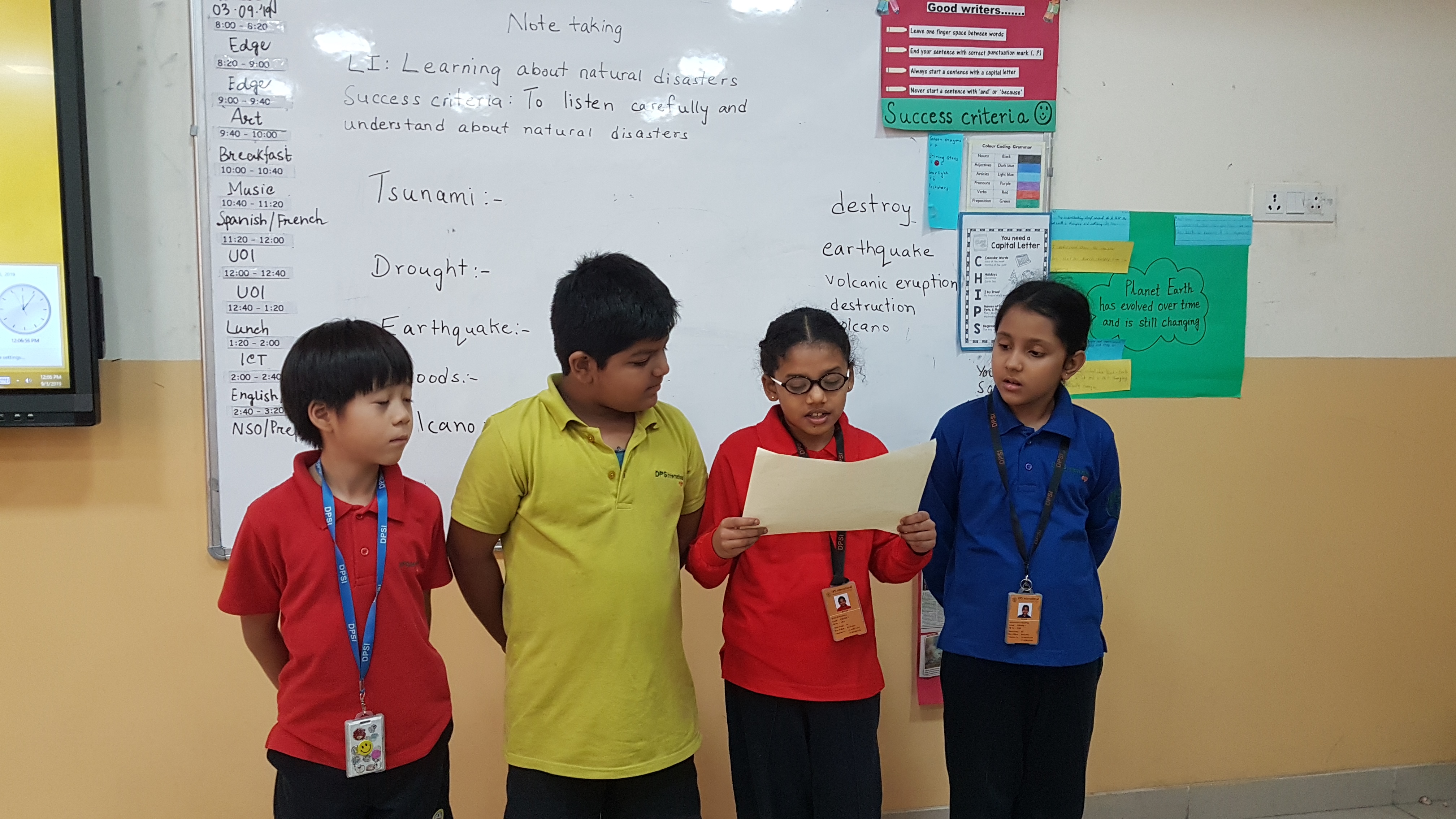 The week began with an interesting discussion on natural and manmade disasters. By employing the ‘double bubble’ map and T-chart, students compared the two and explored different ways on how humans are responsible for global warming. A discussion with Ms. Sutanuka Bhattacharjee on the recent fires in the Amazon was an initiative in this direction. The class deliberated on the session by applying a visible thinking strategy ‘connect extend challenge’ and keenly observed different experiments on soil erosion, weathering, deposition and loss of wetlands. They then demonstrated their understanding of the topic using the ICT tool ‘Flip grid’ and summed up their learning by using the fishbone strategy.