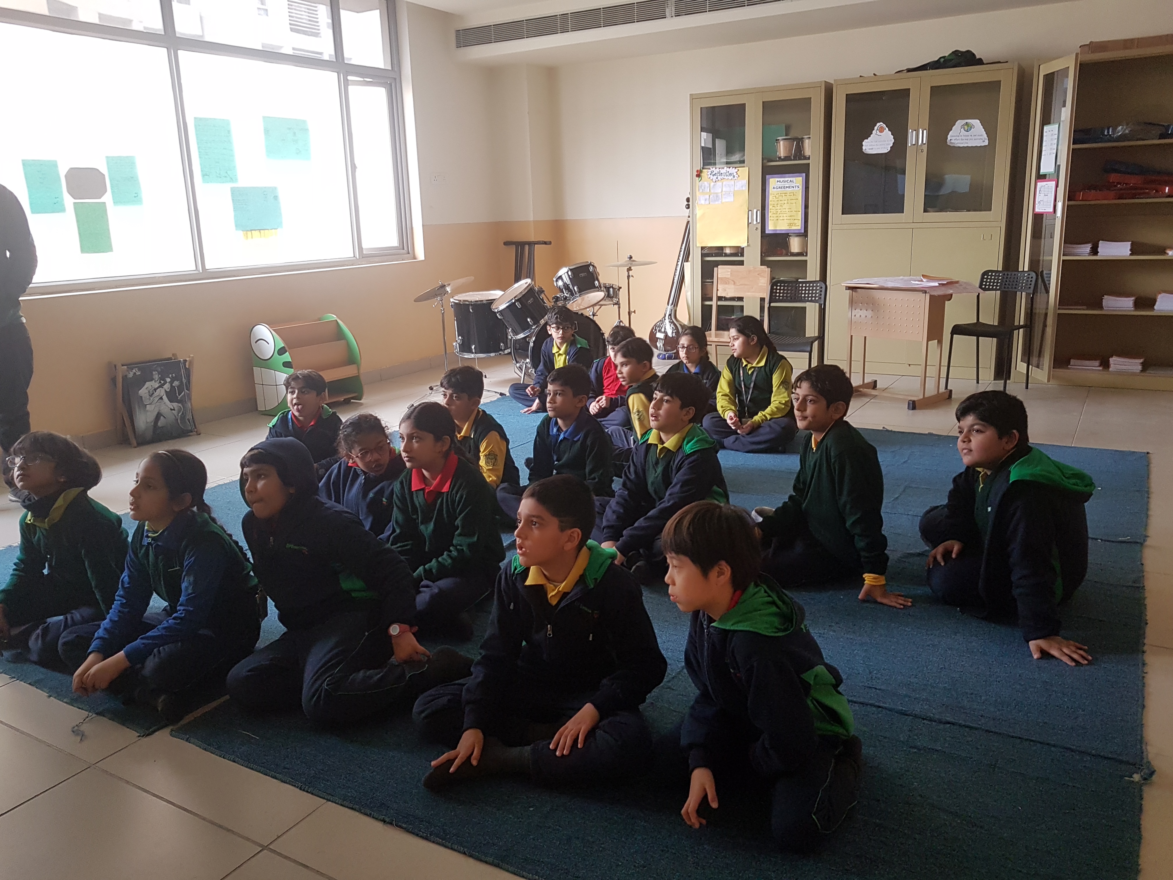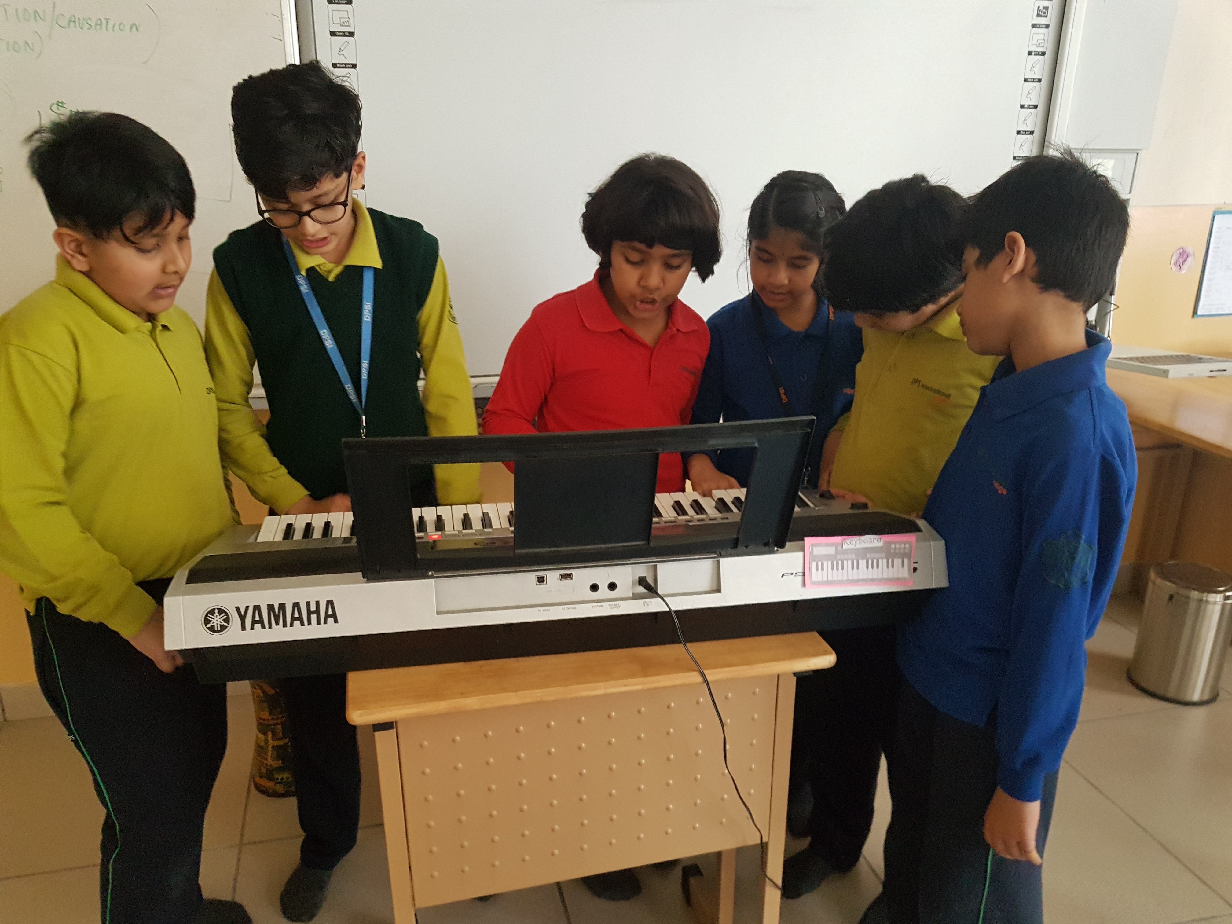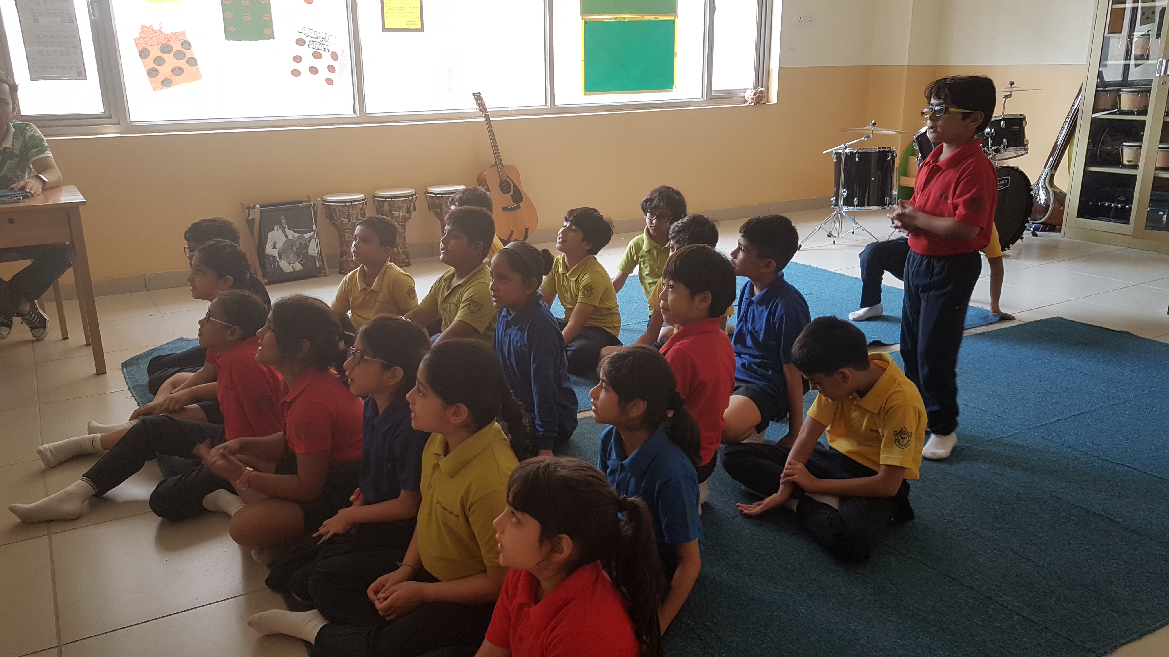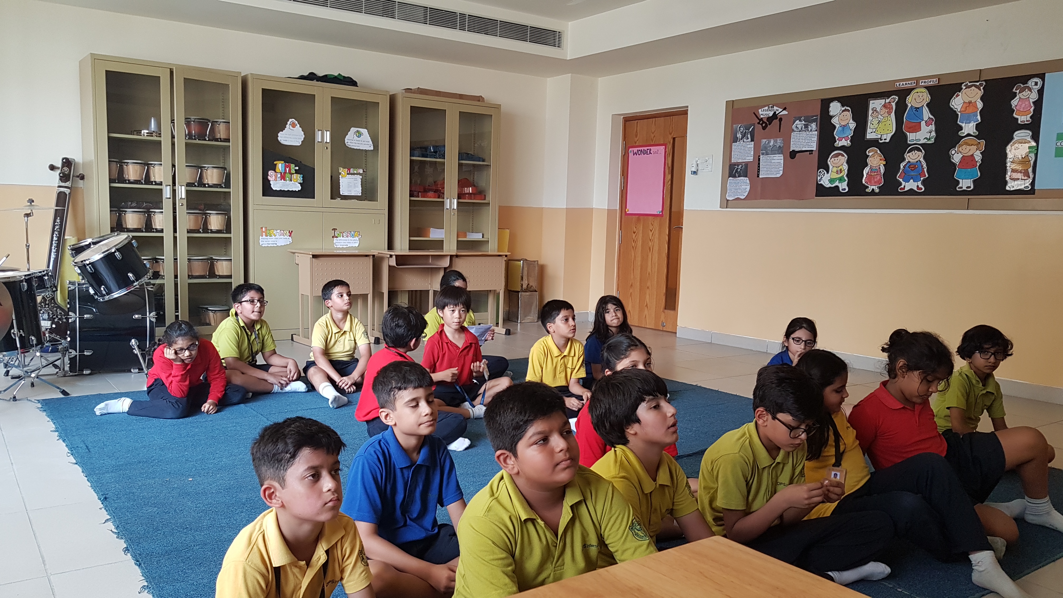 Students learned about the evolution of music and musical instruments belonging to the string family while referring to unit of inquiry (planet Earth has evolved over time and is still changing). The class also revised notes and note values and sang the song “You’ve got a Friend in me” by Randy Newman.
