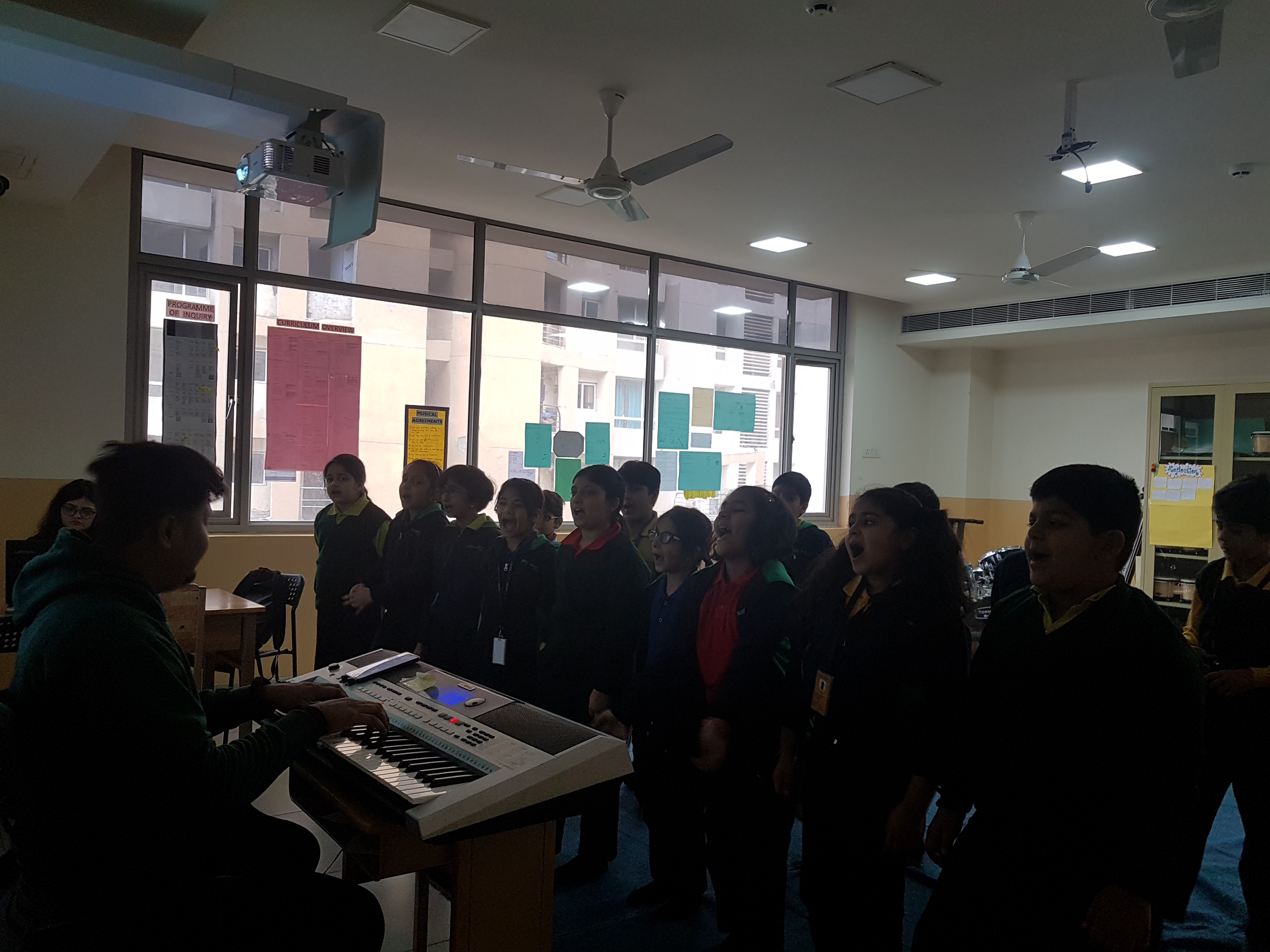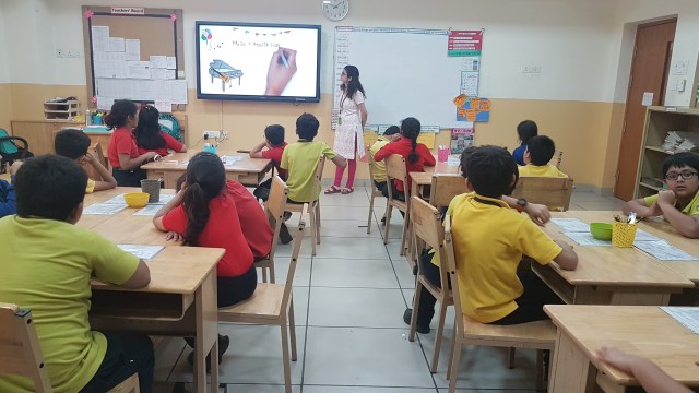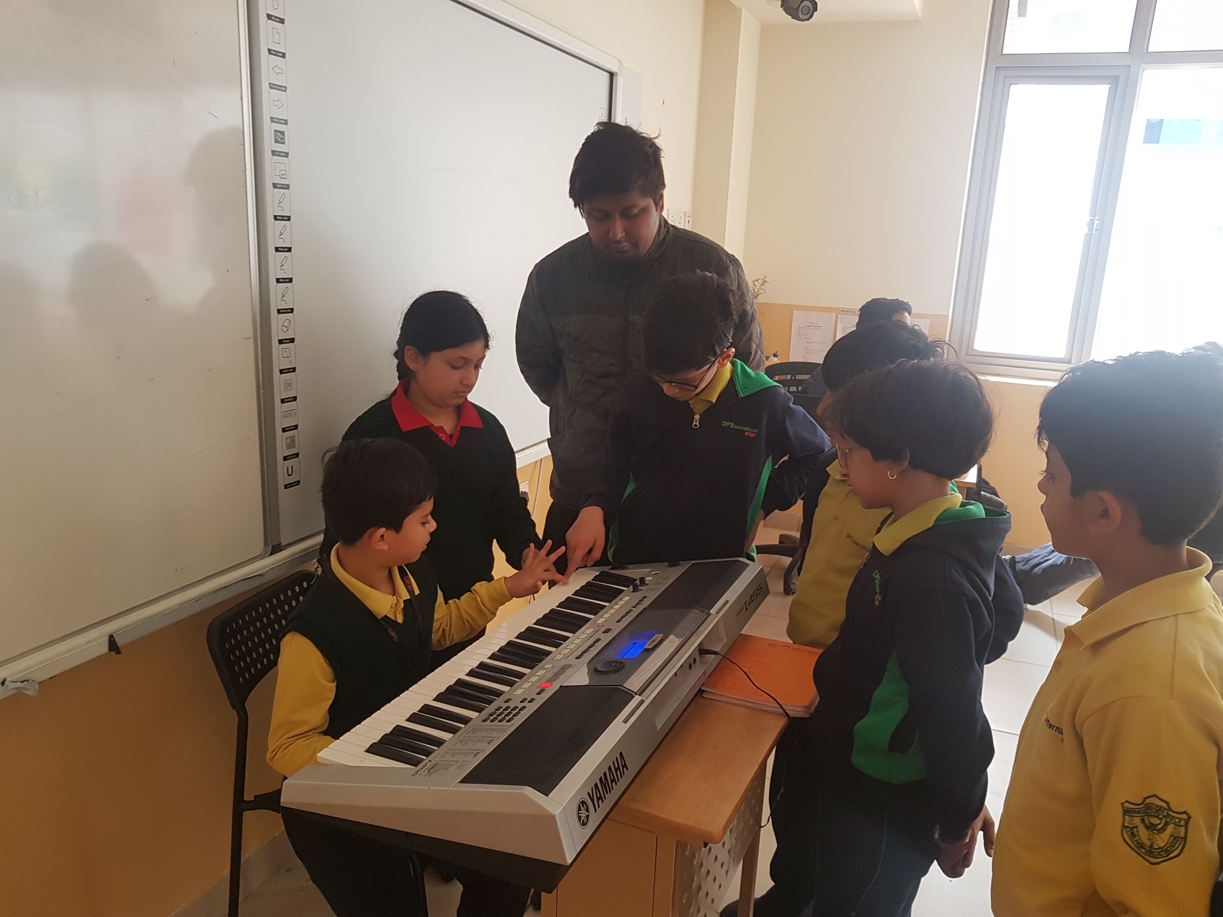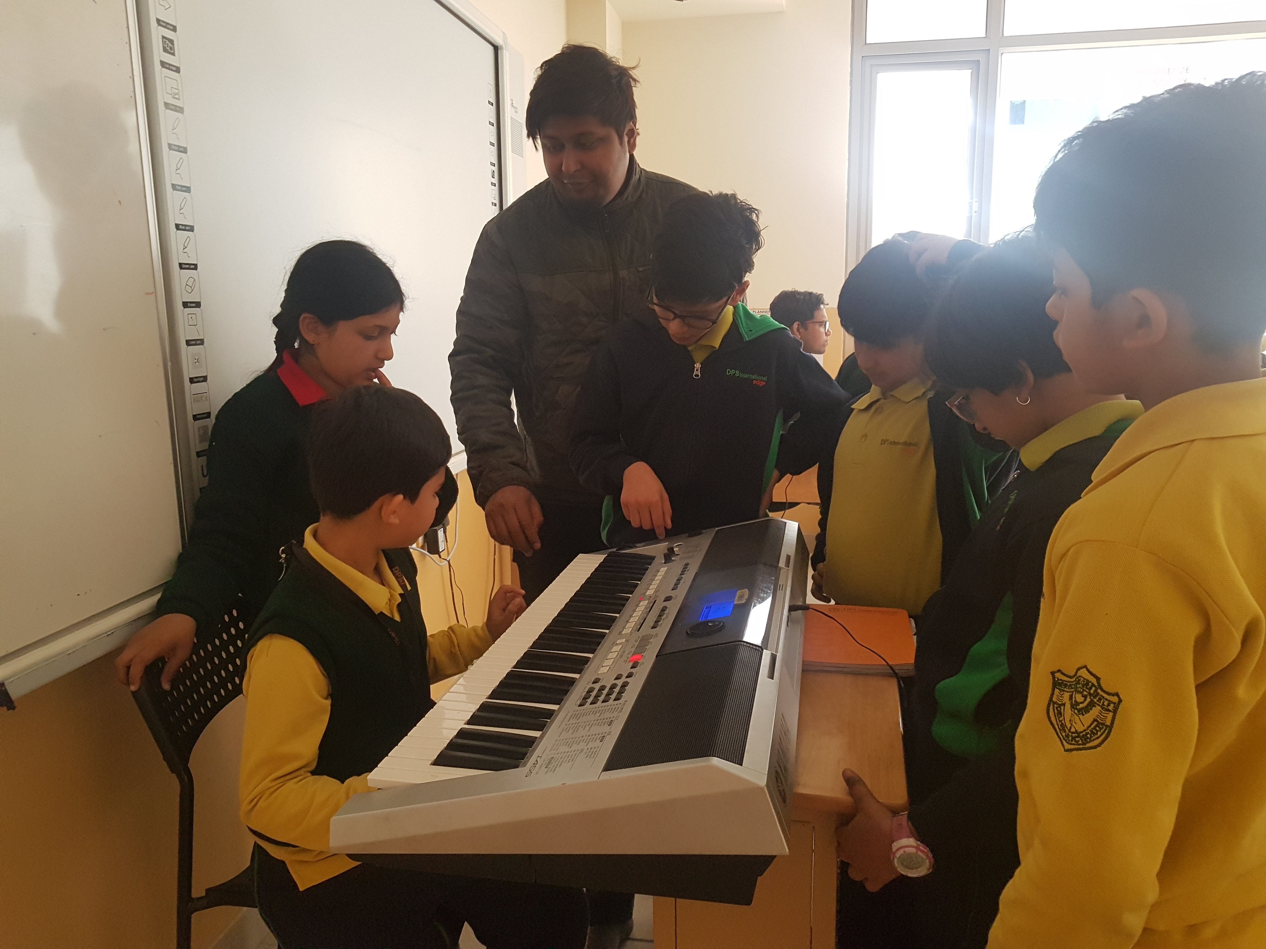 Students learned about the evolution of music and musical instruments belonging to the string family while referring to unit of inquiry (planet Earth has evolved over time and is still changing). The class also revised notes and note values and sang the song “You’ve got a Friend in me” by Randy Newman.