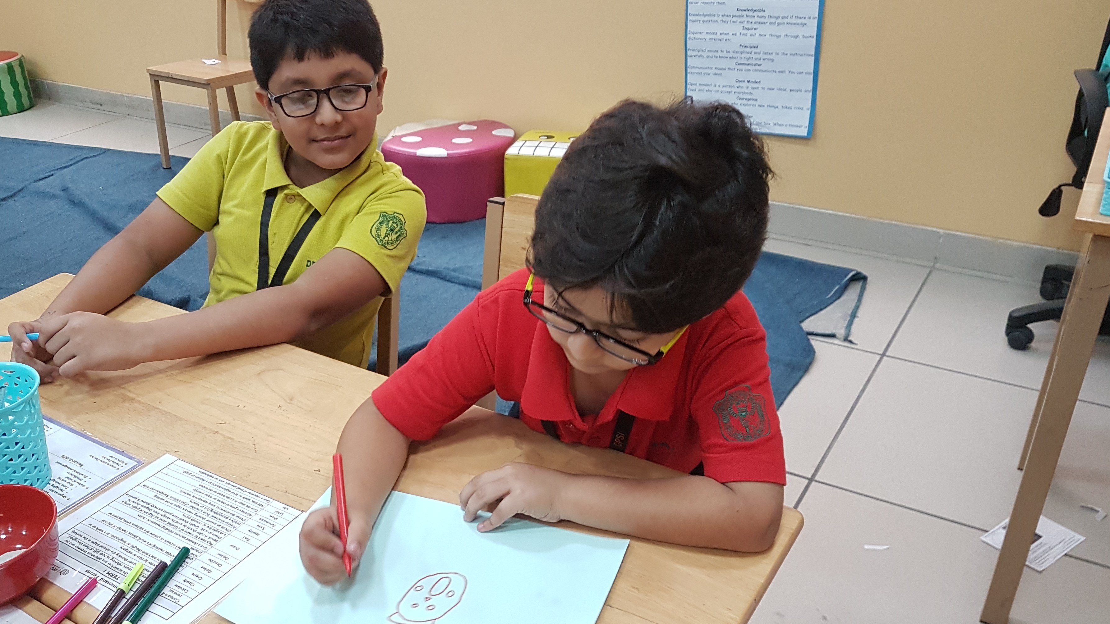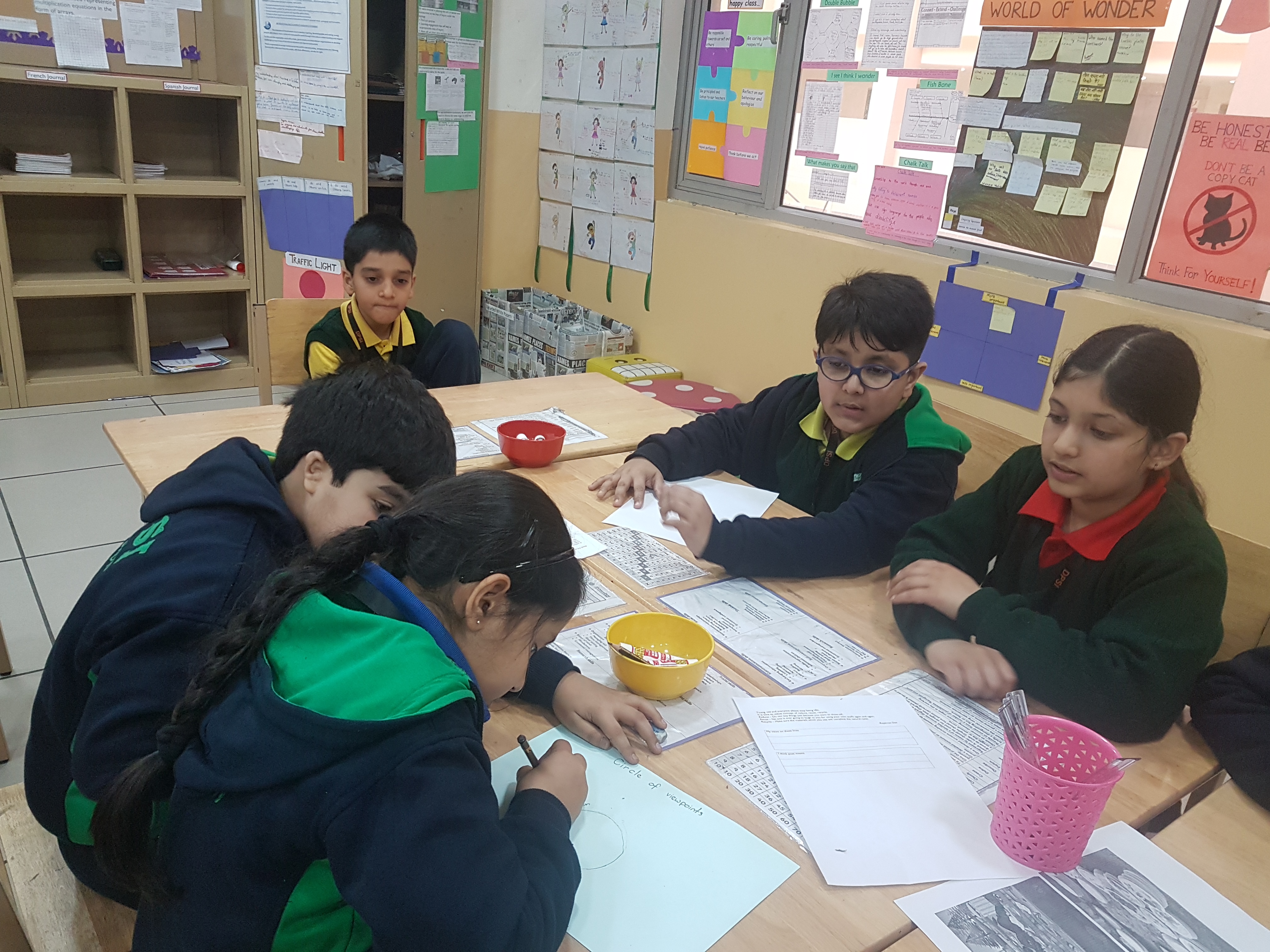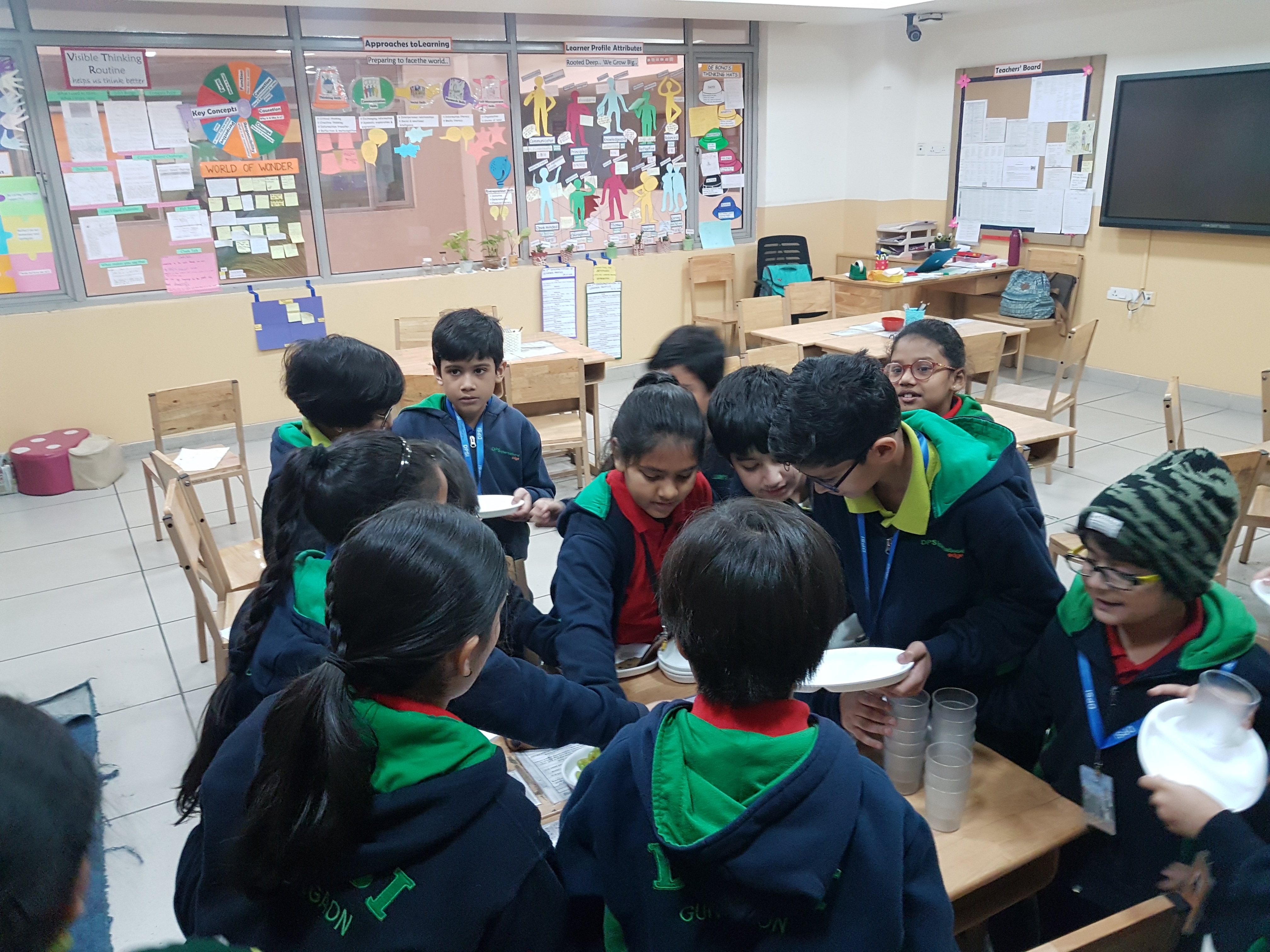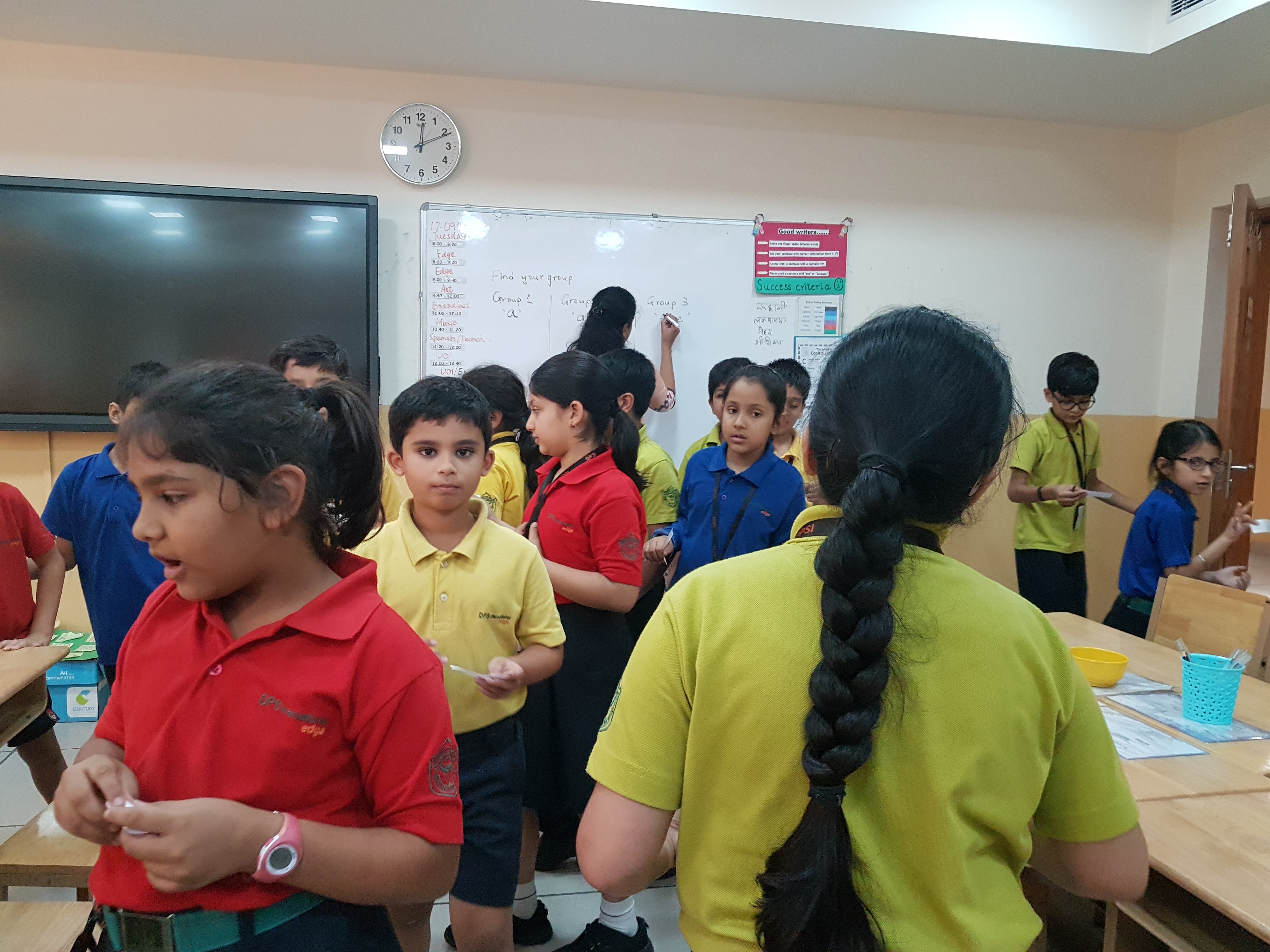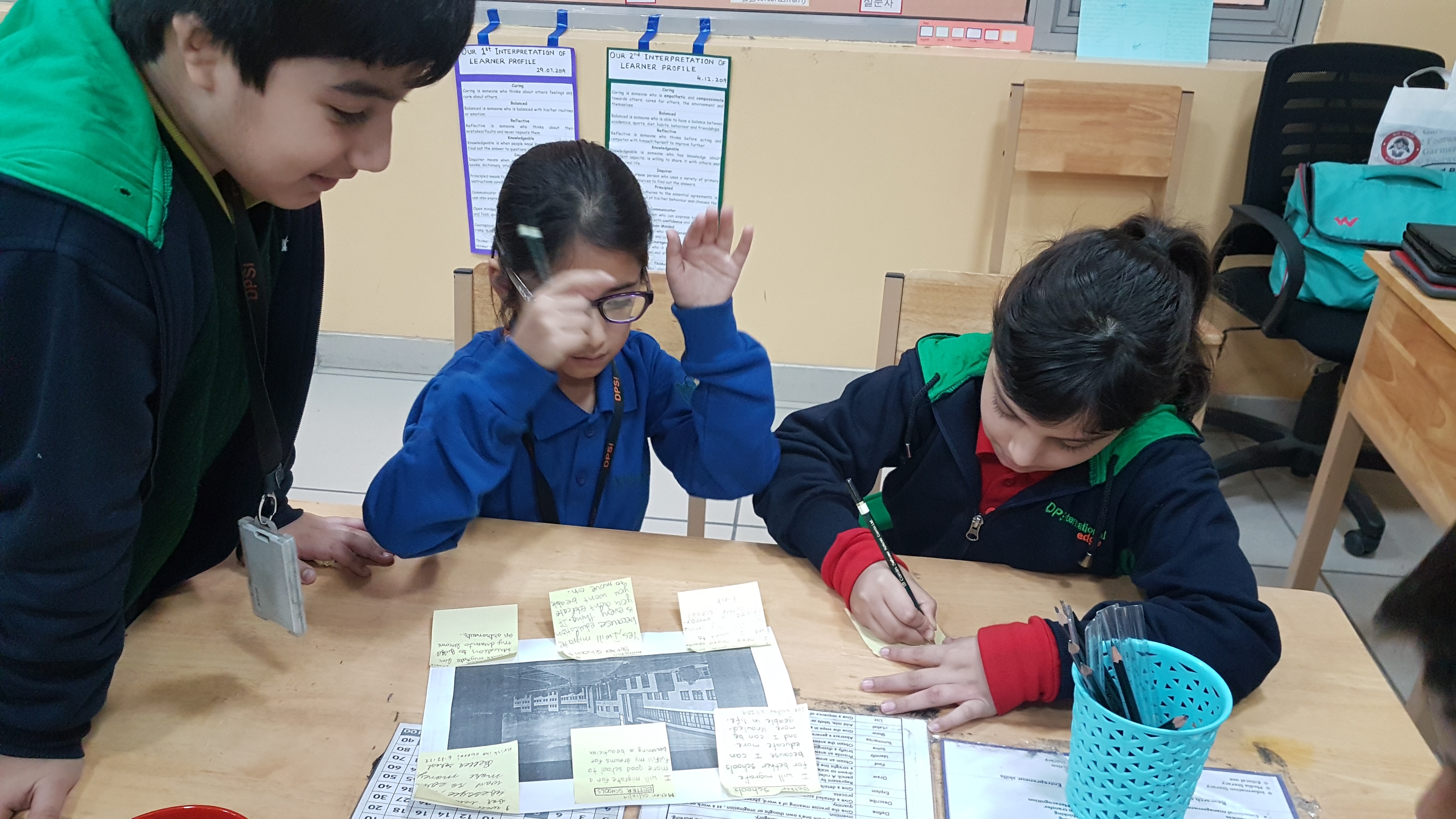 The students then geared up for the provocation of the new unit by using the ‘I see I think I wonder’ visual thinking routine by exploring different stations with items related to senses. They used their thinking skills to write what they thought about the new unit and exchanged information to identify key words to understand the central idea.