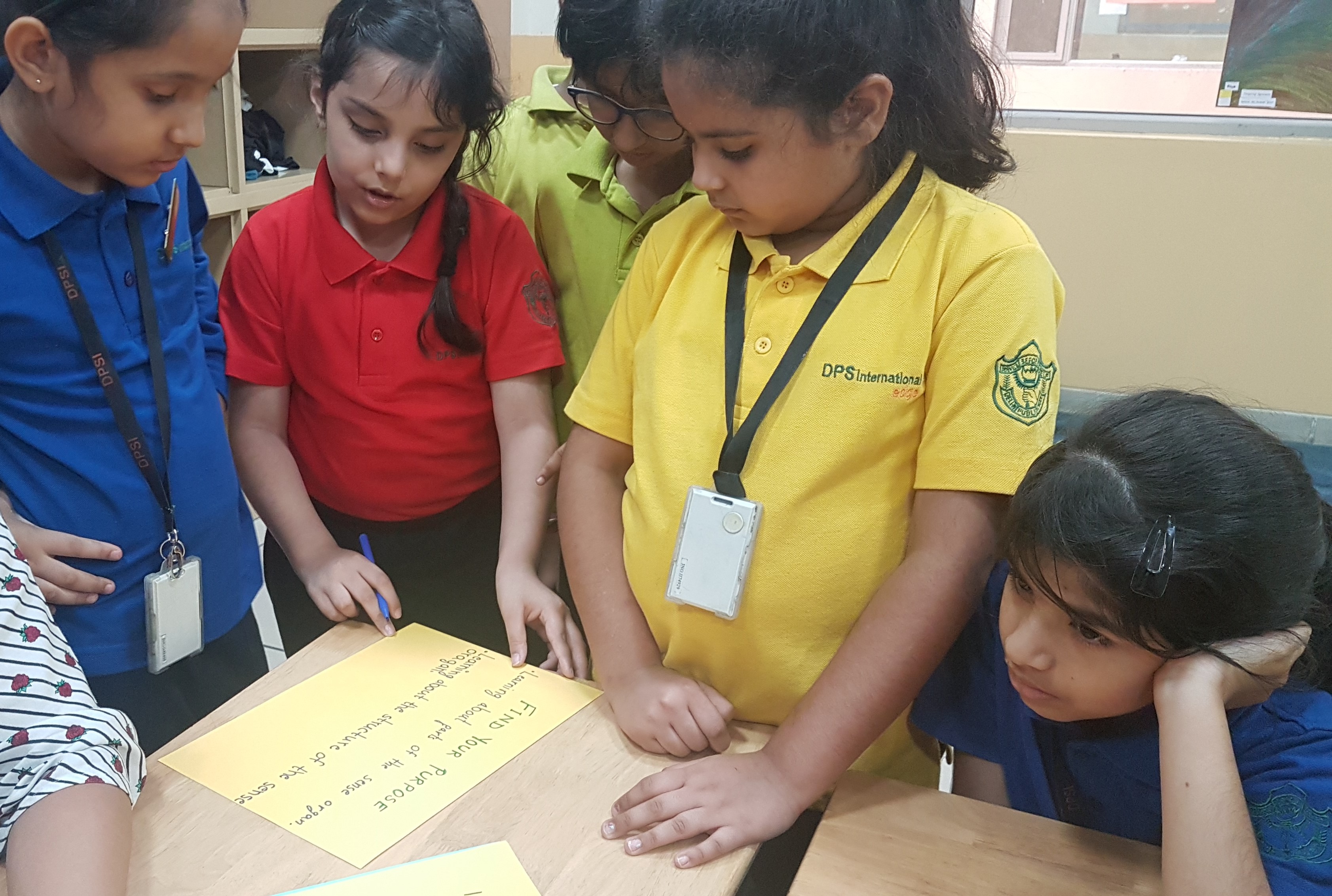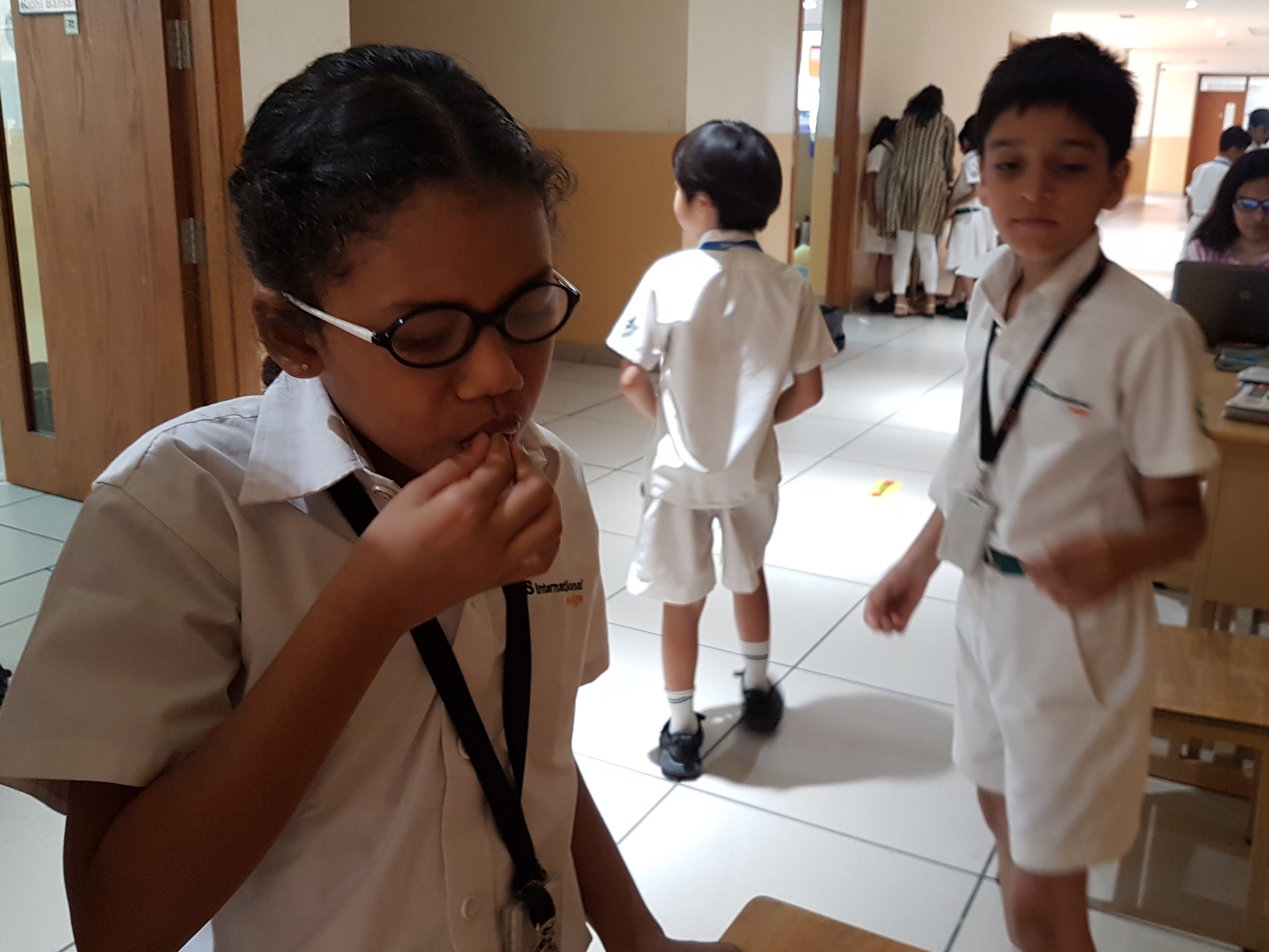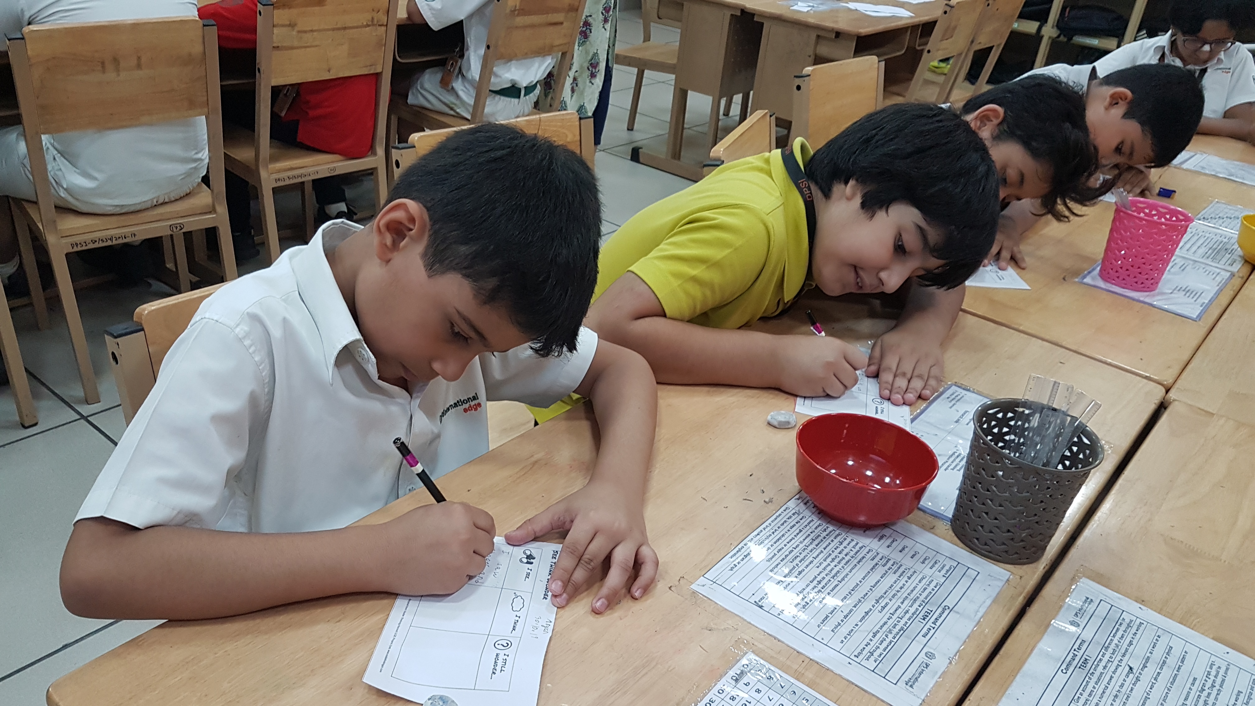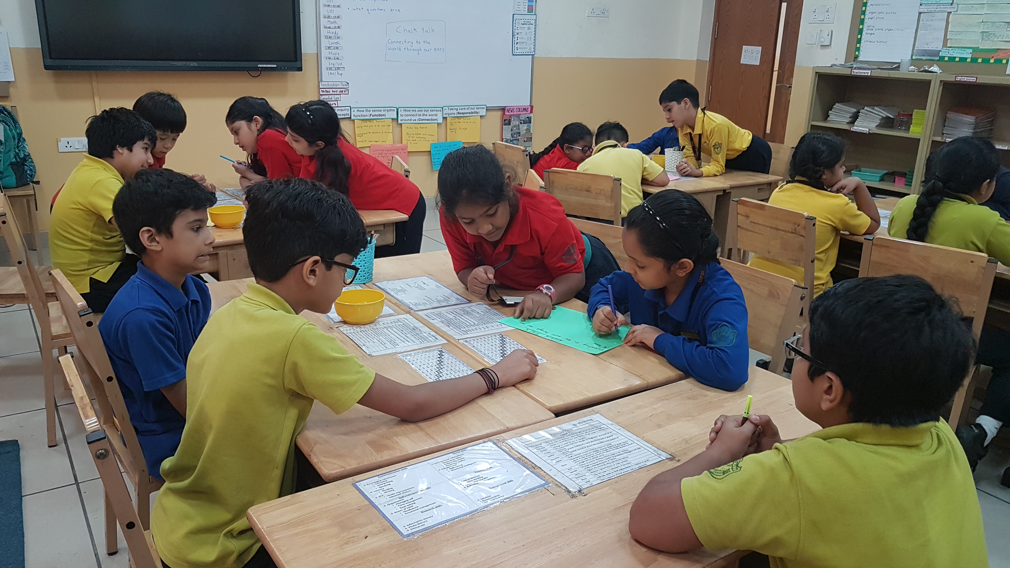 The students then geared up for the provocation of the new unit by using the ‘I see I think I wonder’ visual thinking routine by exploring different stations with items related to senses. They used their thinking skills to write what they thought about the new unit and exchanged information to identify key words to understand the central idea.