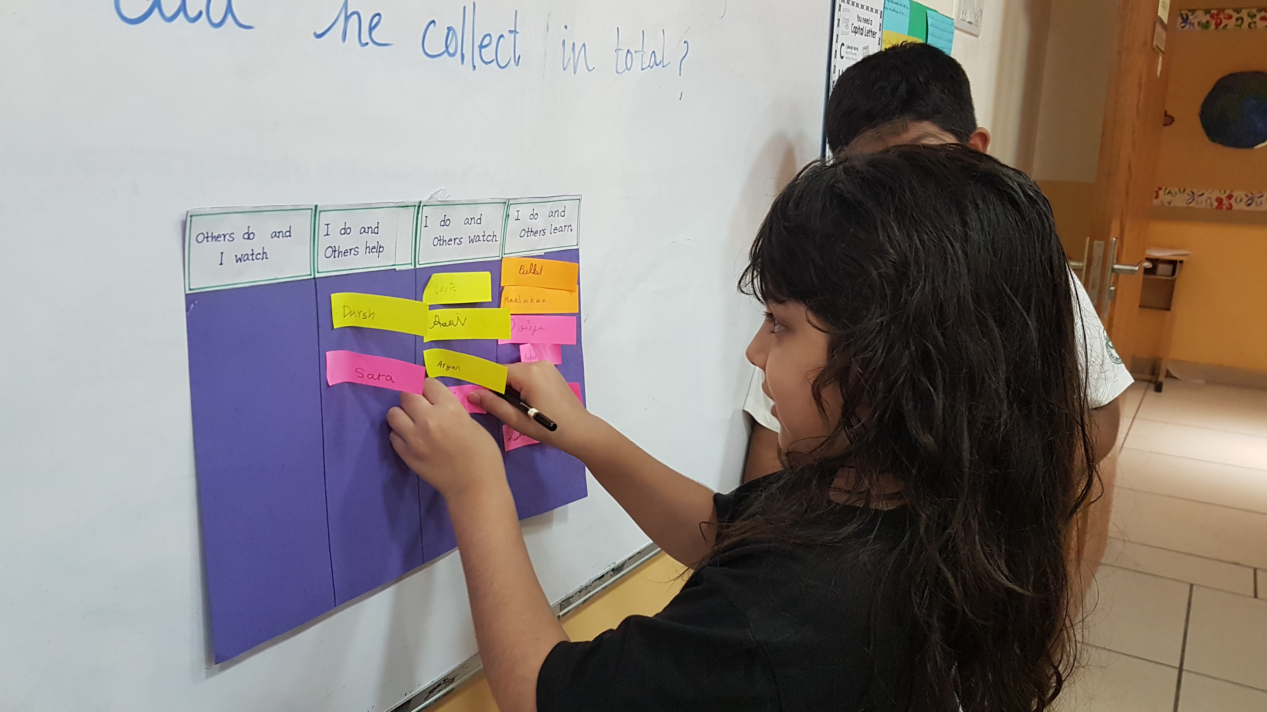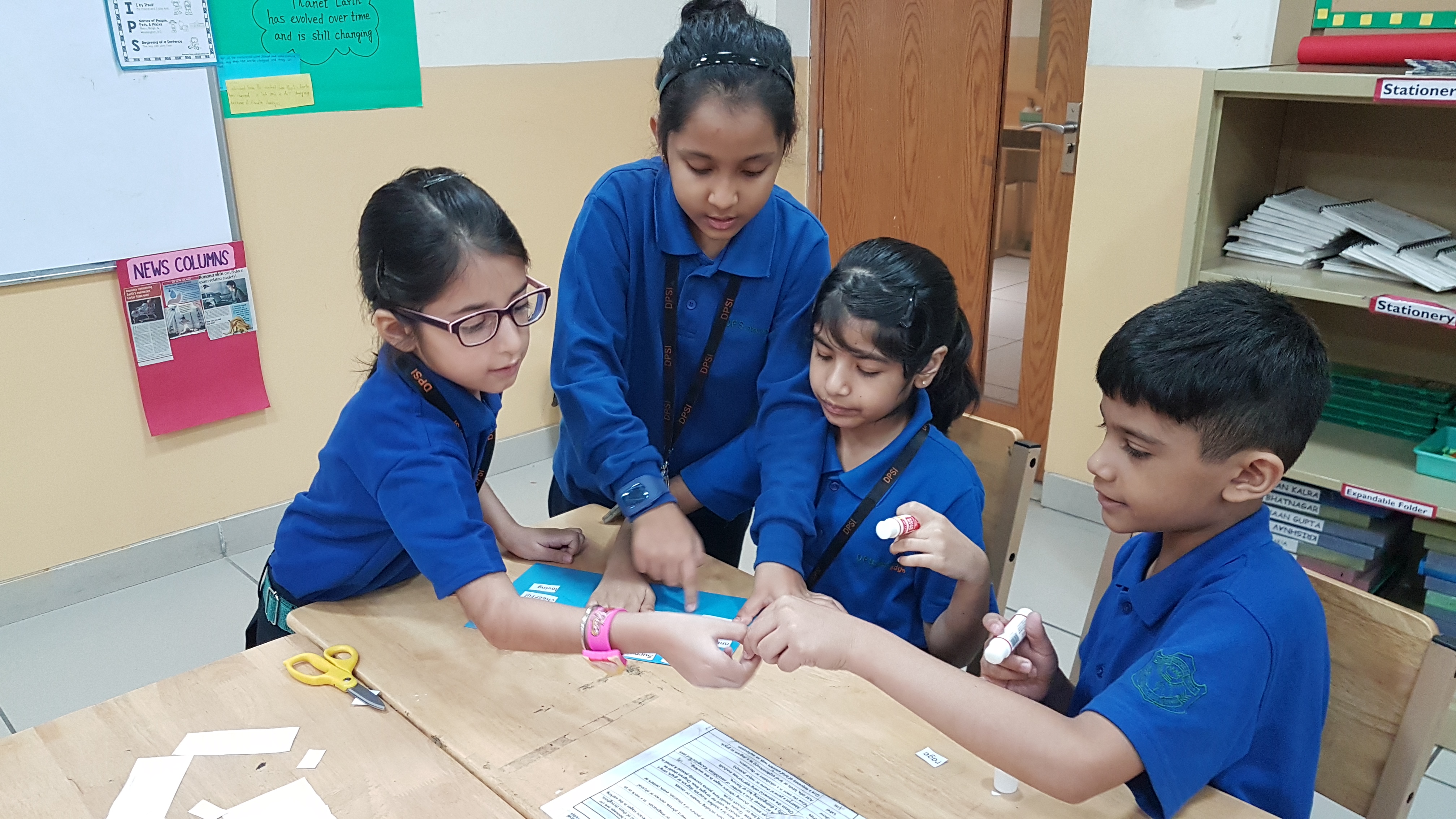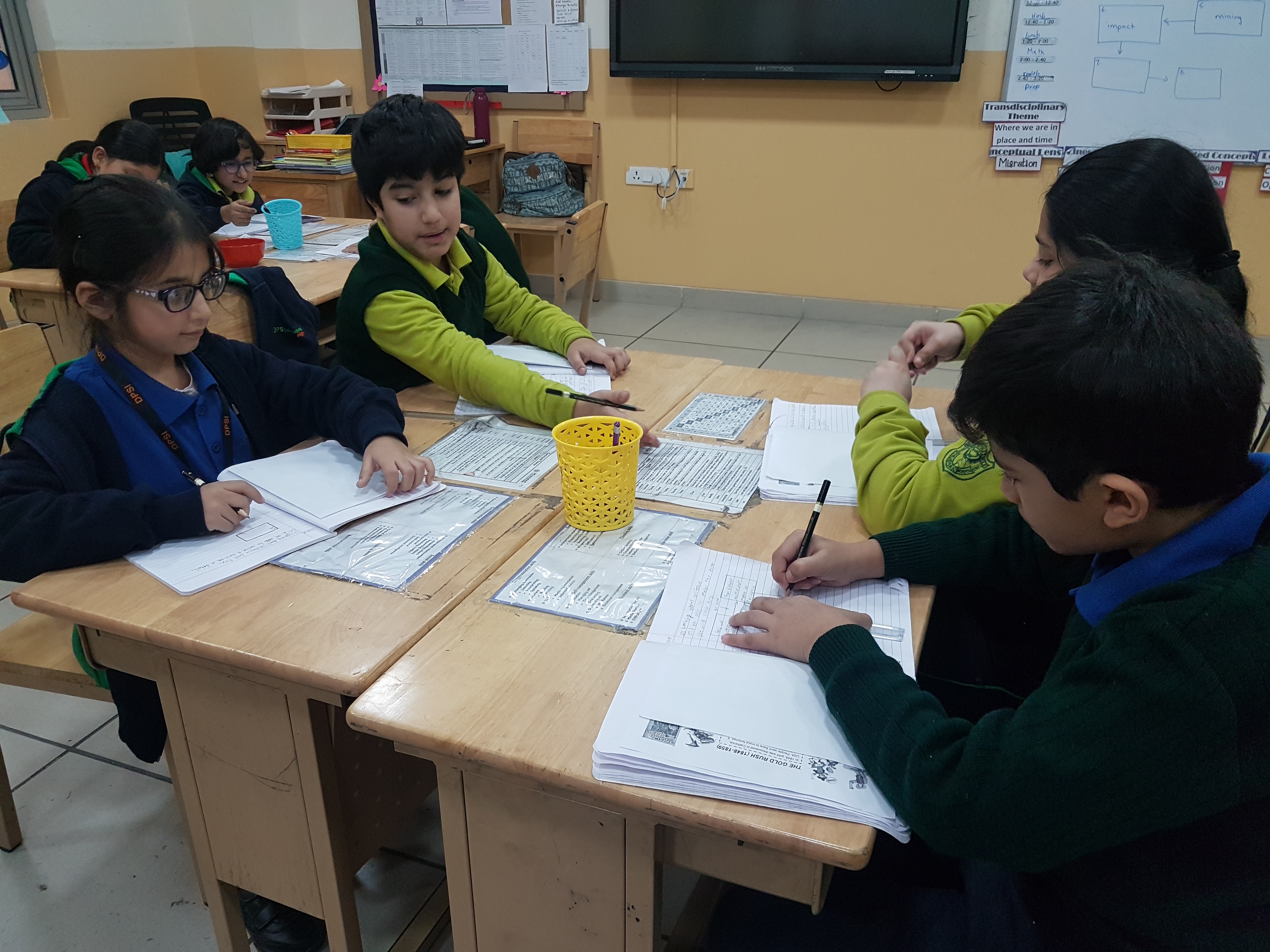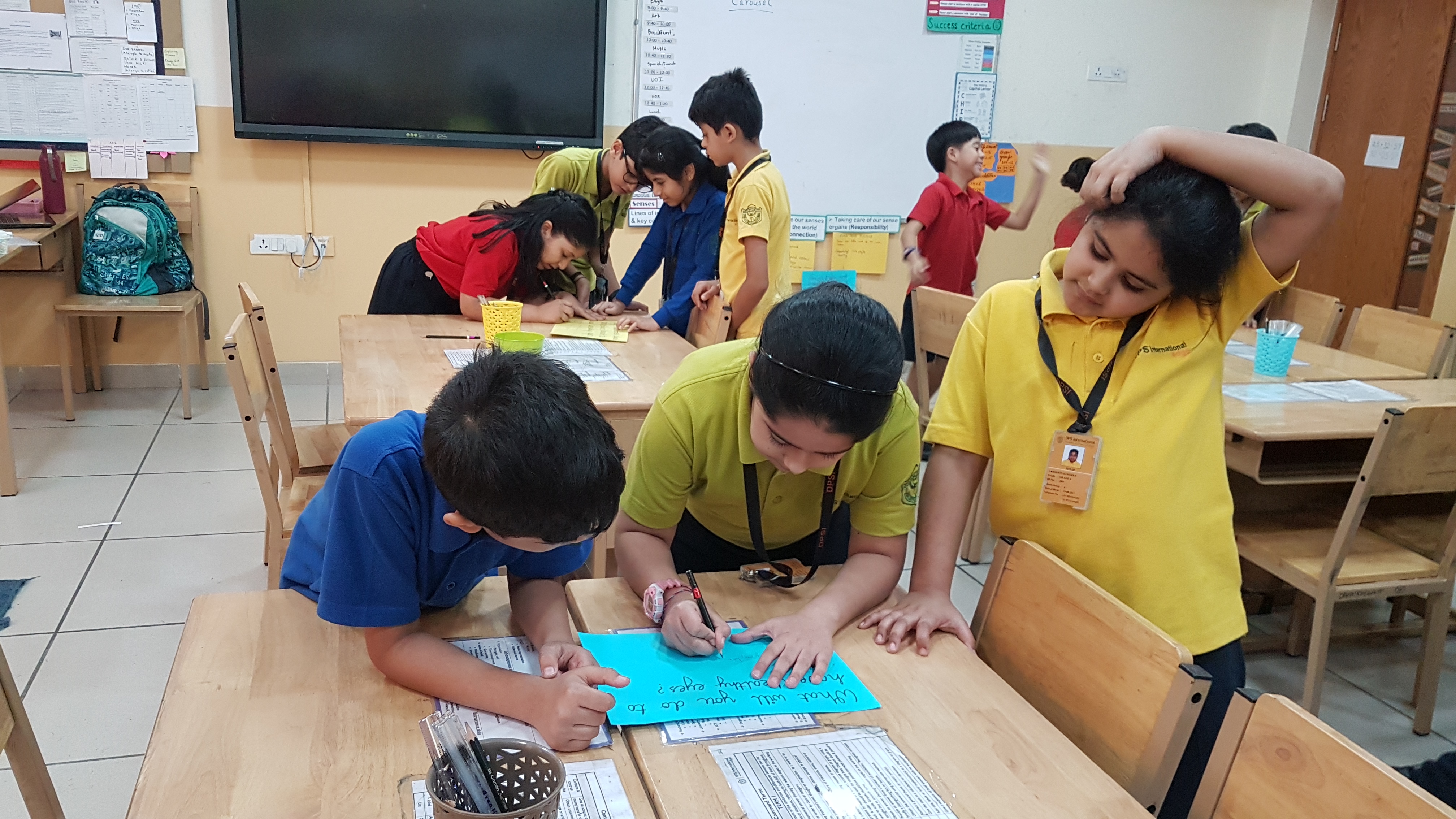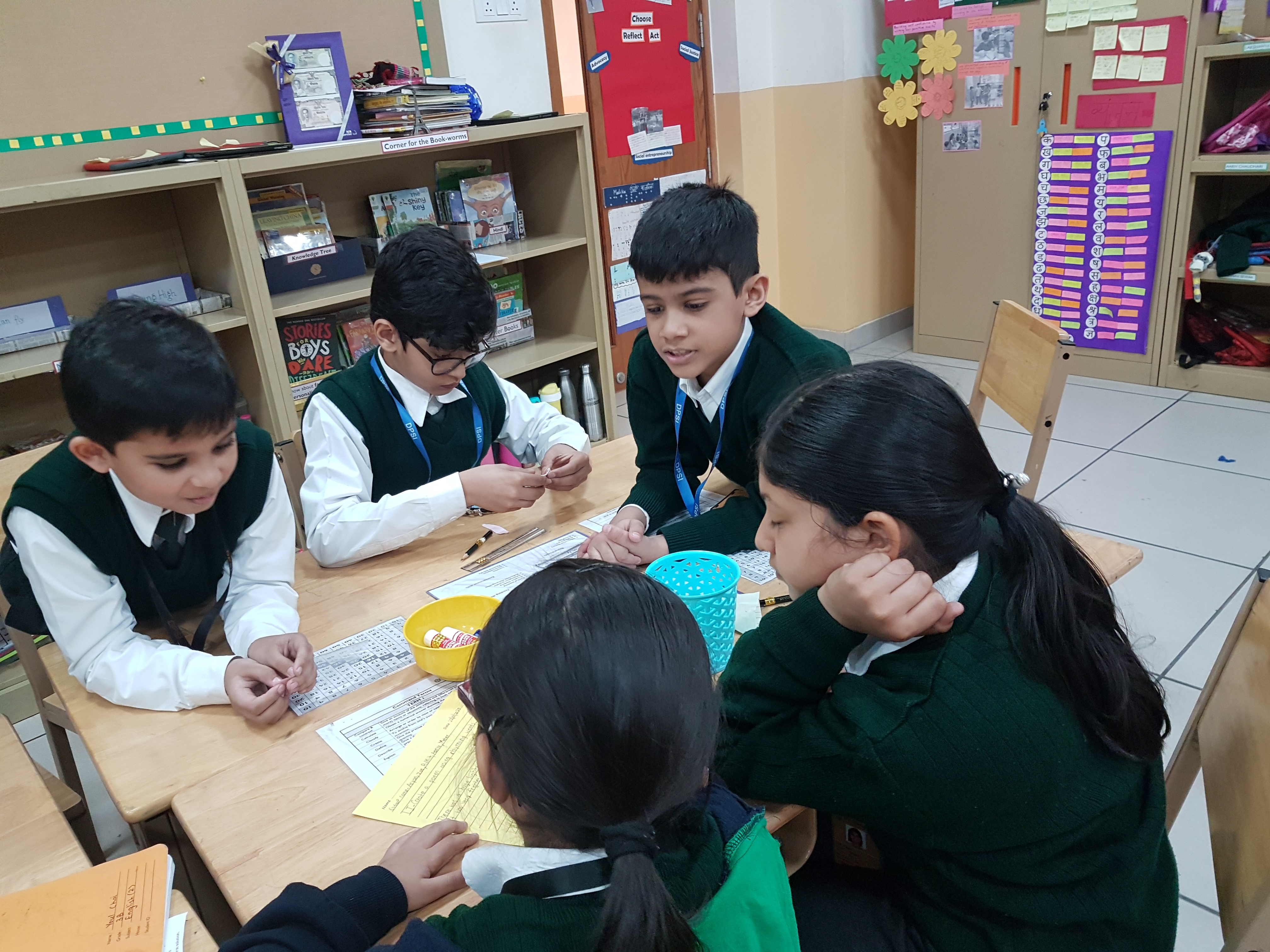 The students then geared up for the provocation of the new unit by using the ‘I see I think I wonder’ visual thinking routine by exploring different stations with items related to senses. They used their thinking skills to write what they thought about the new unit and exchanged information to identify key words to understand the central idea.