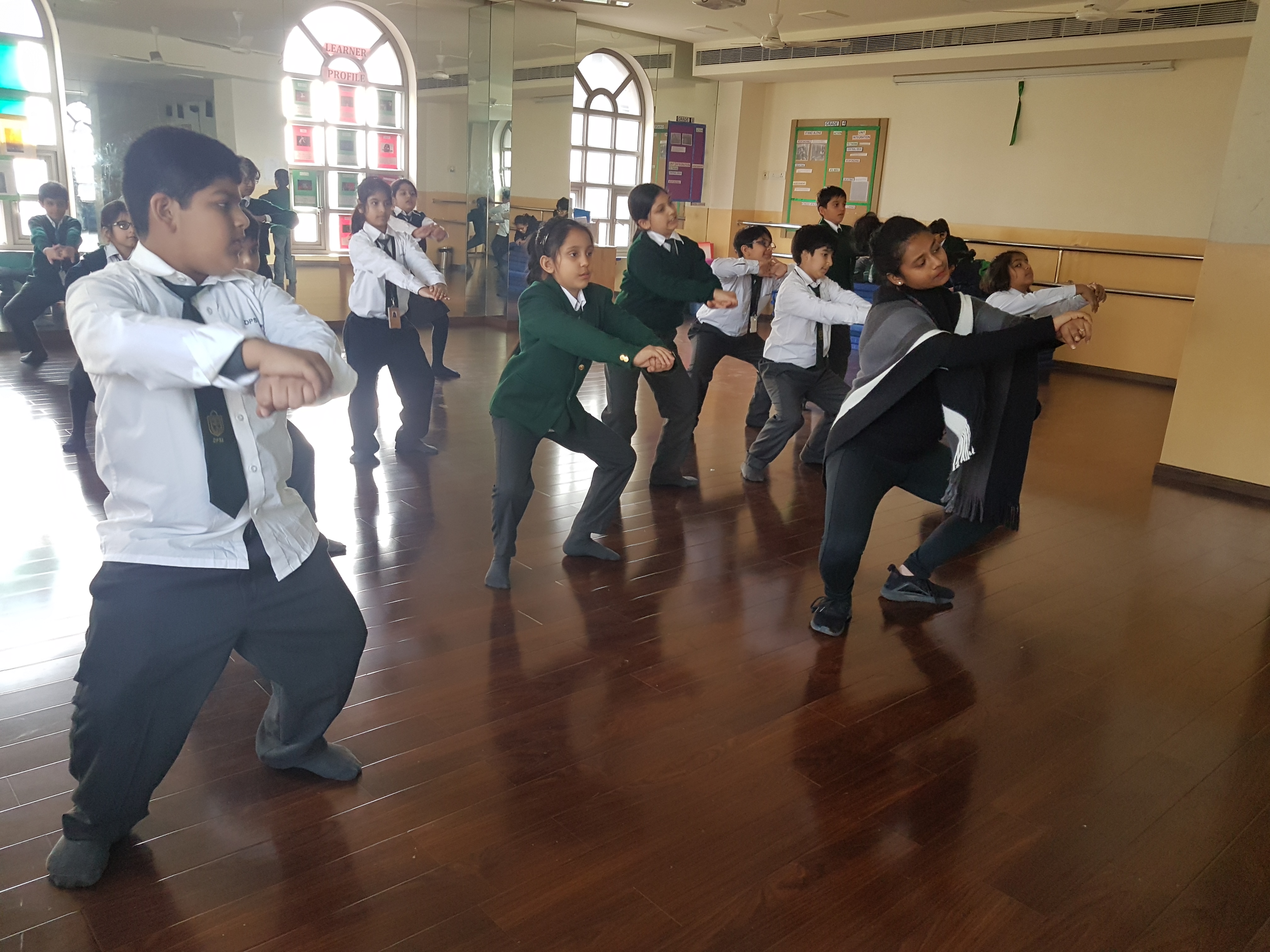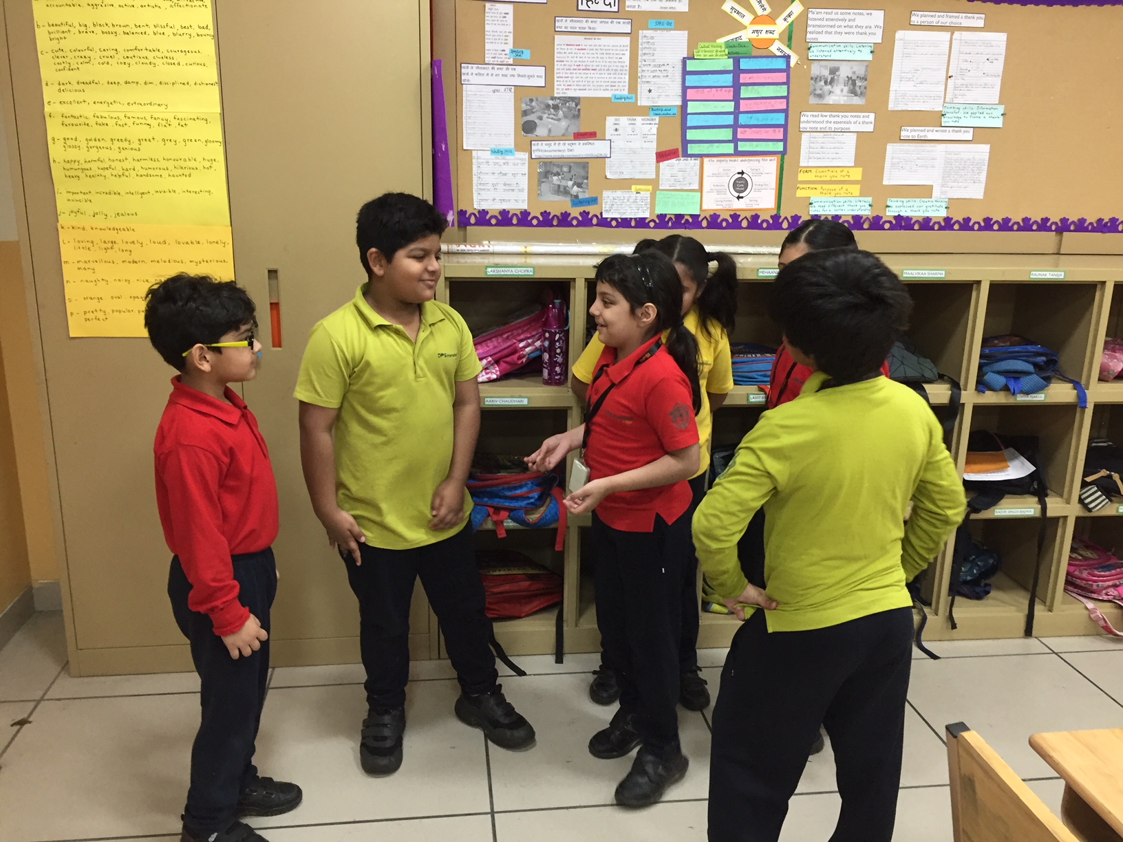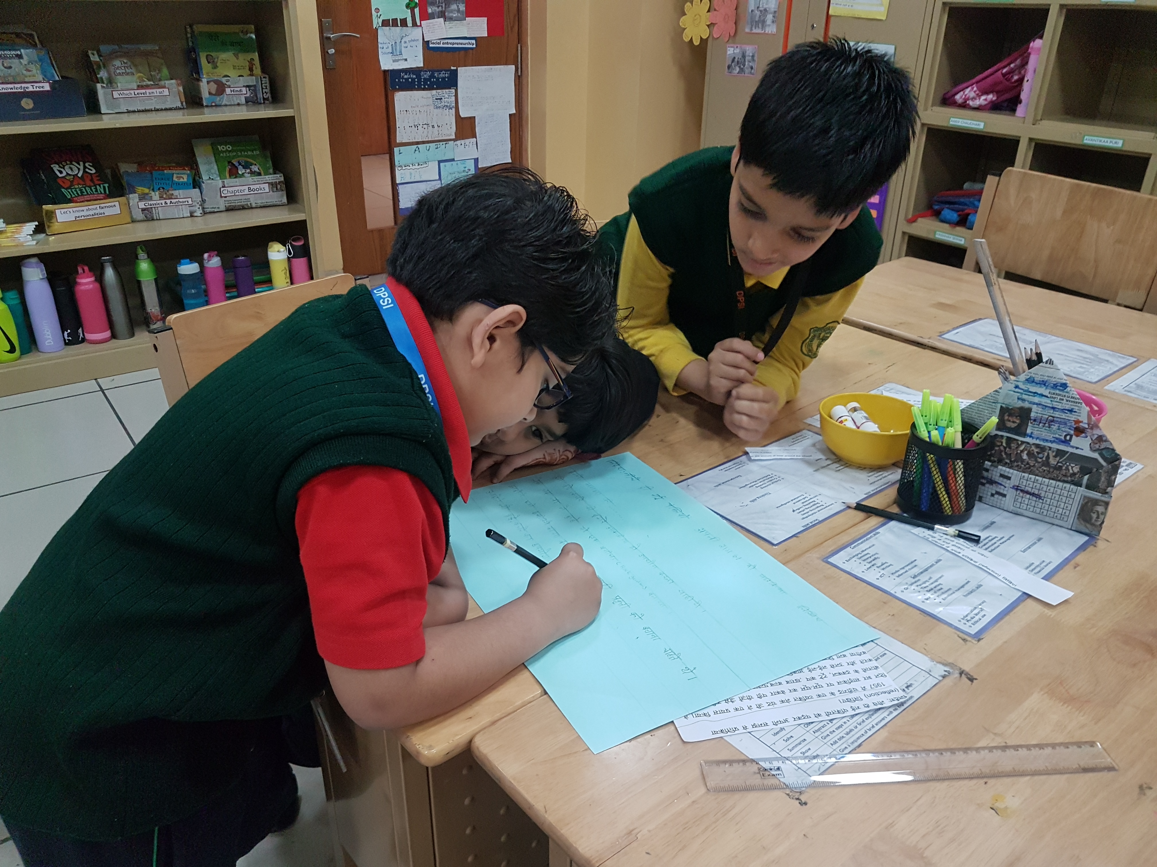 To boost their reading capabilities the students read the Hindi story ‘Mithaaee’. They improved their writing skills as they wrote sentences from ‘aa’ maatraa words. Watching an interesting Hindi video ‘Sher aur Gadhaa’ helped the children enhance their listening skills. They celebrated the festival of ‘Janamastmi’ and identified learner profiles for Krishna from various stories about the lord.