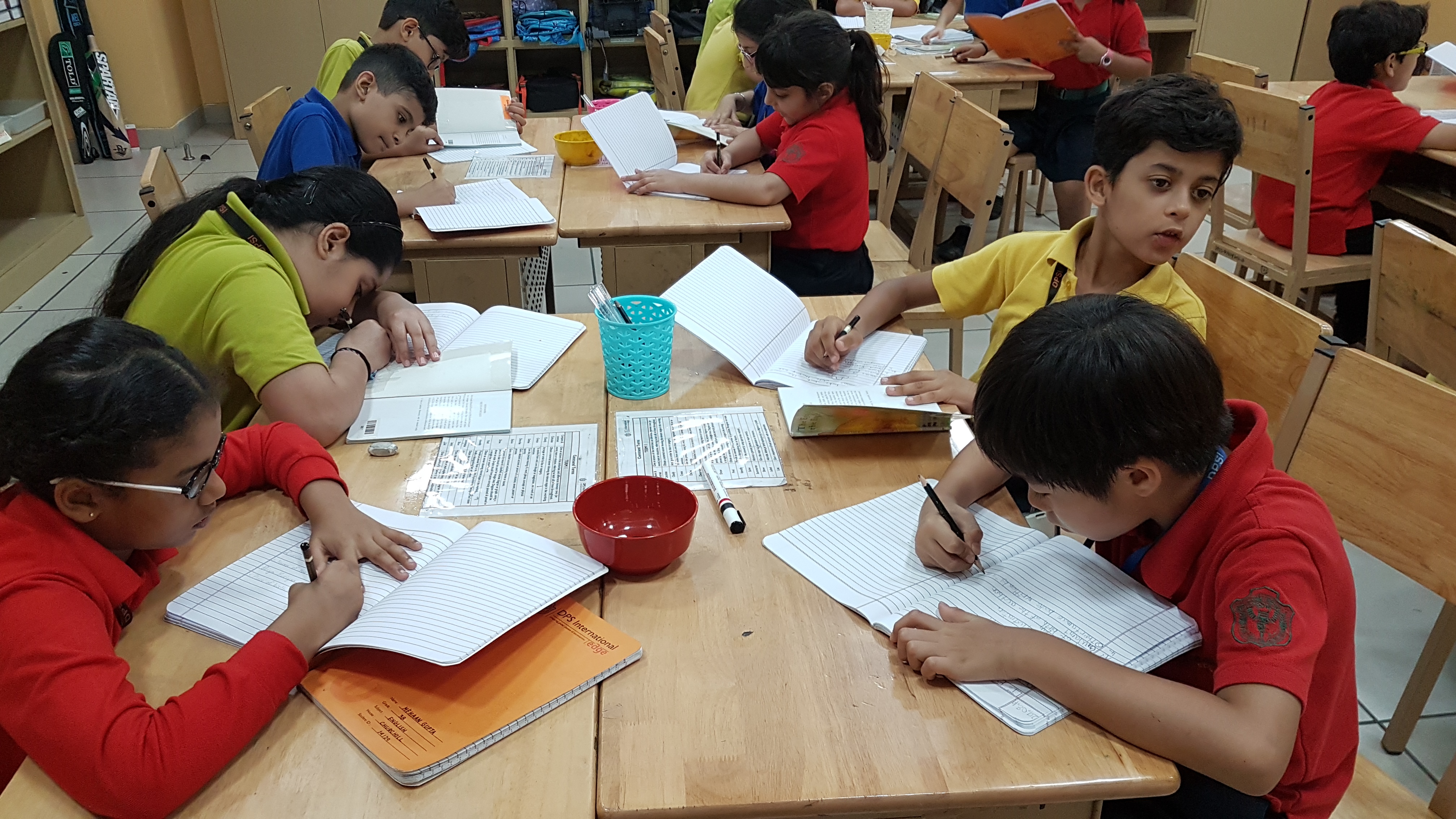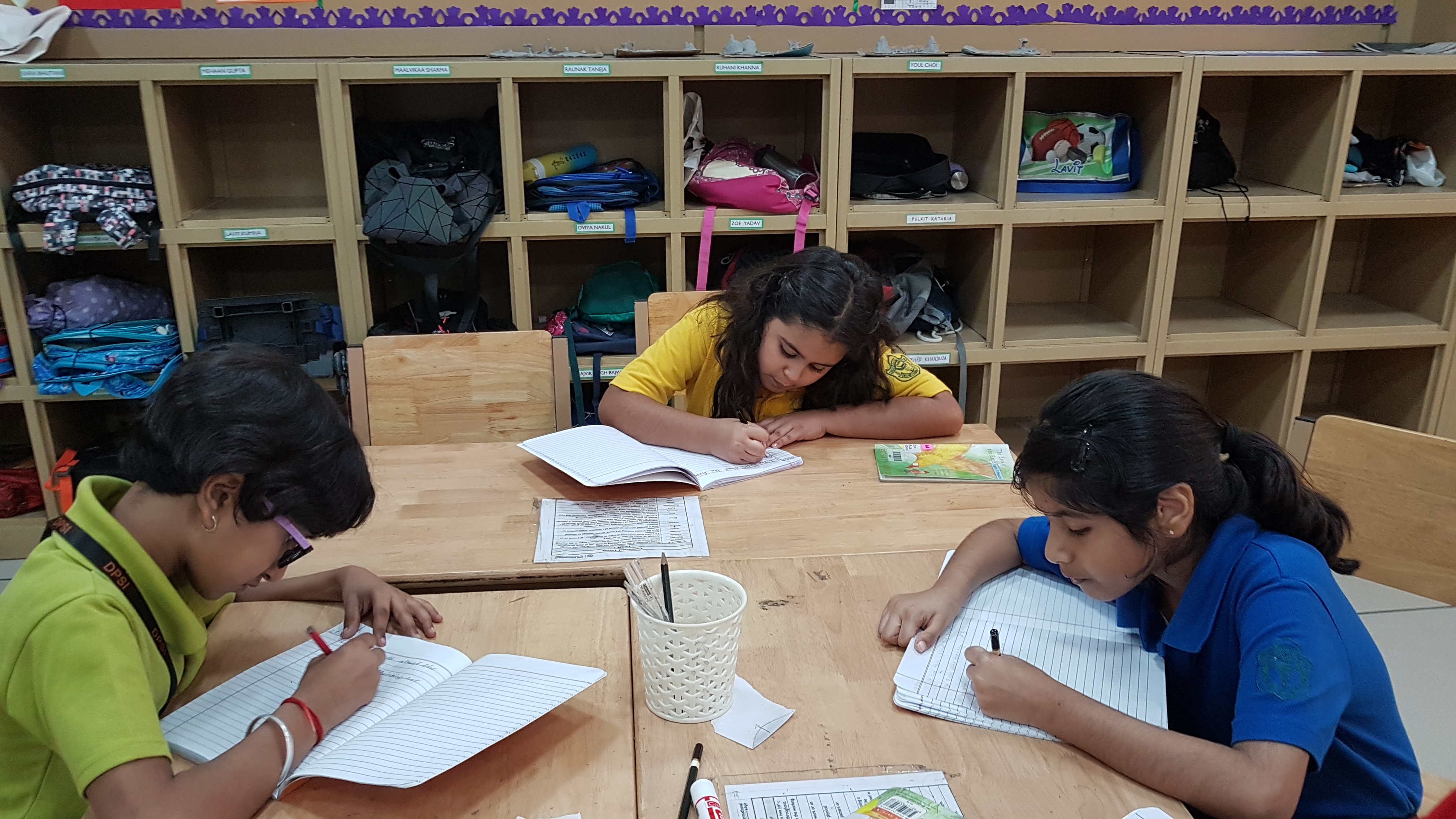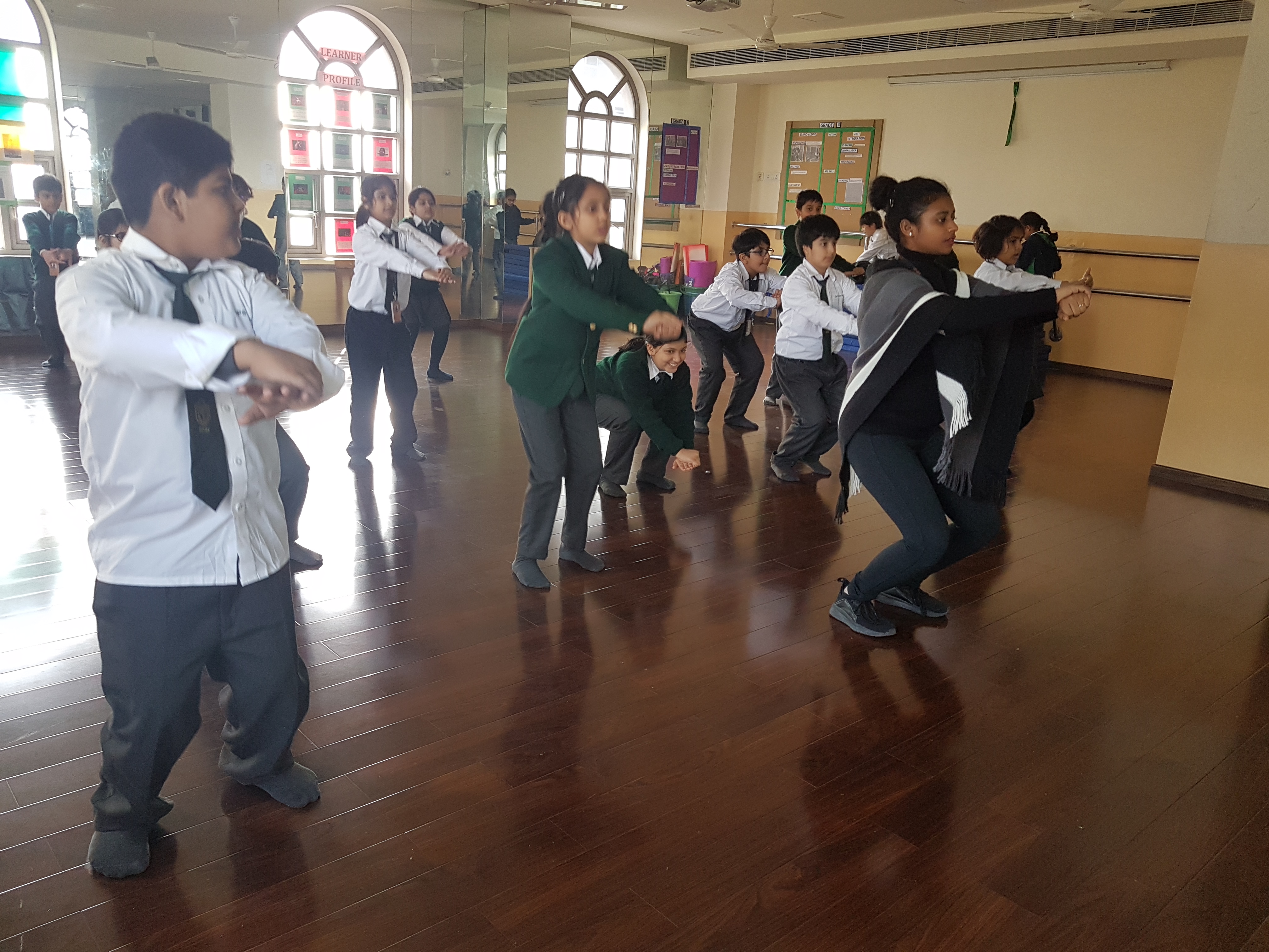 To boost their reading capabilities the students read the Hindi story ‘Mithaaee’. They improved their writing skills as they wrote sentences from ‘aa’ maatraa words. Watching an interesting Hindi video ‘Sher aur Gadhaa’ helped the children enhance their listening skills. They celebrated the festival of ‘Janamastmi’ and identified learner profiles for Krishna from various stories about the lord.