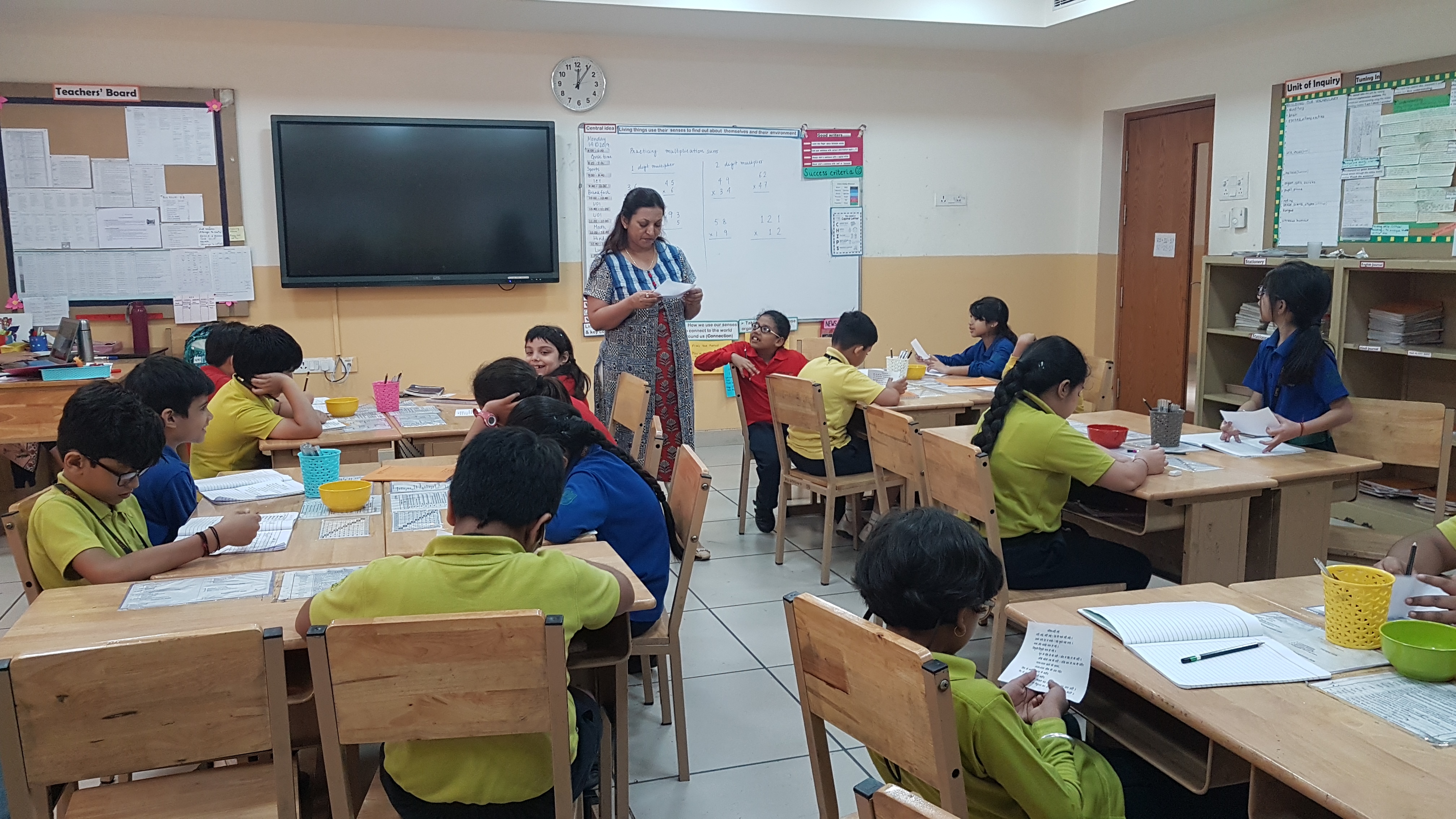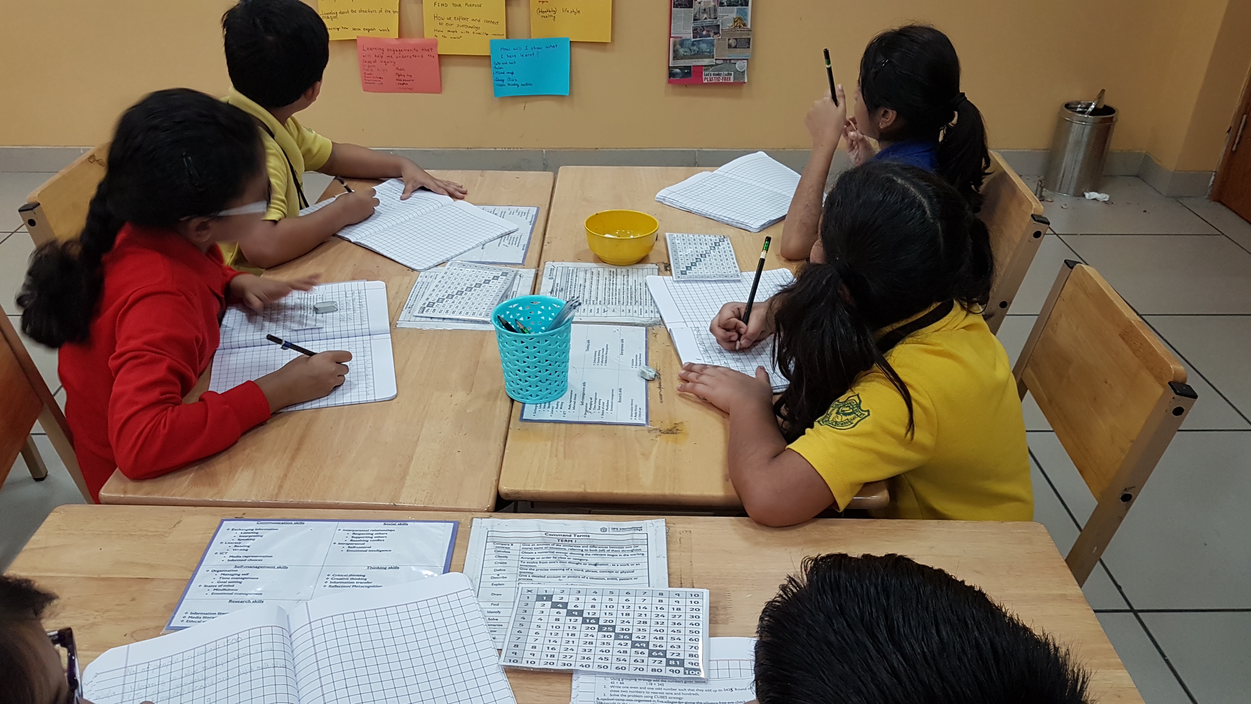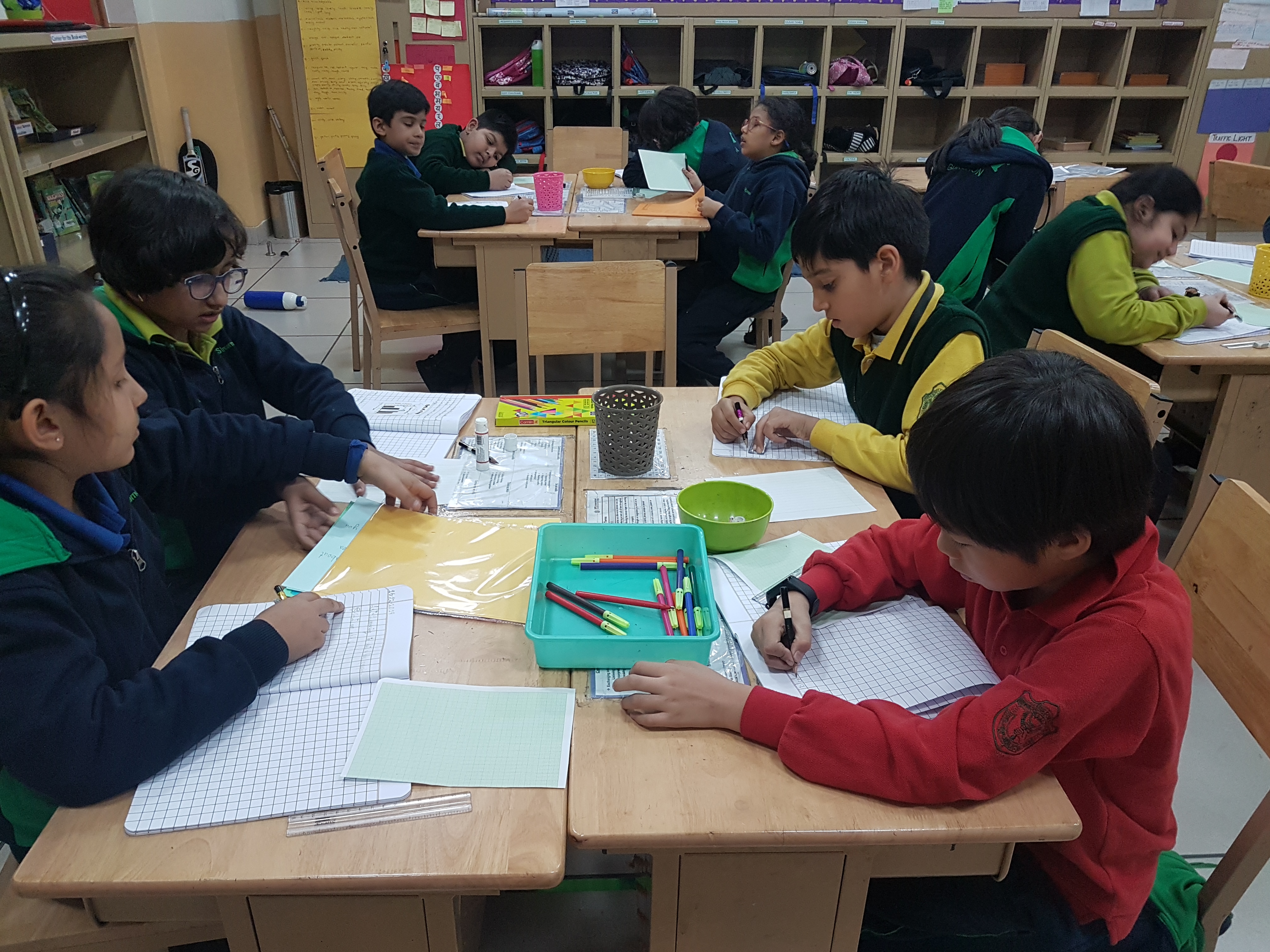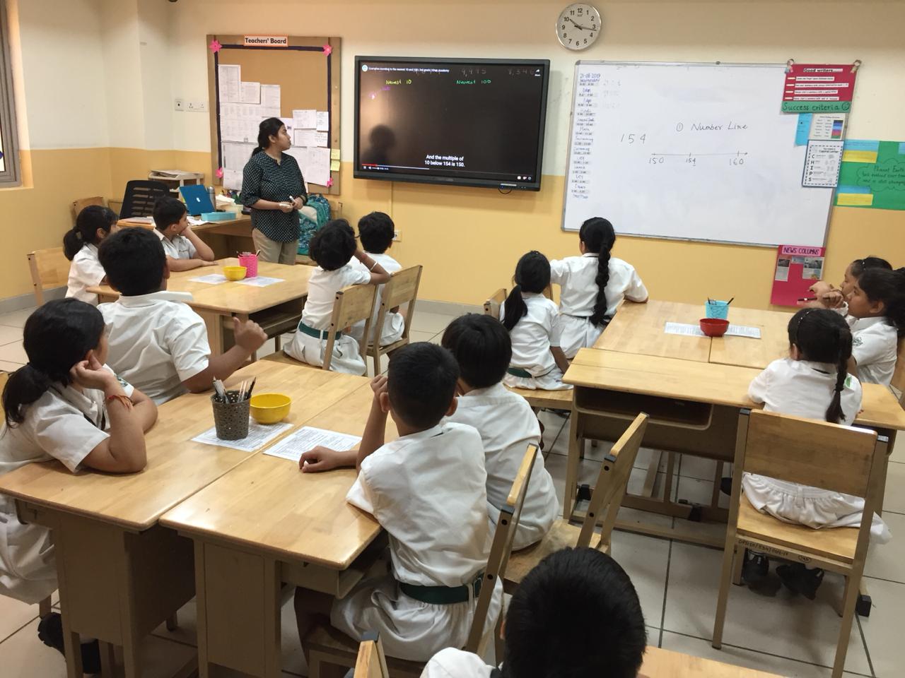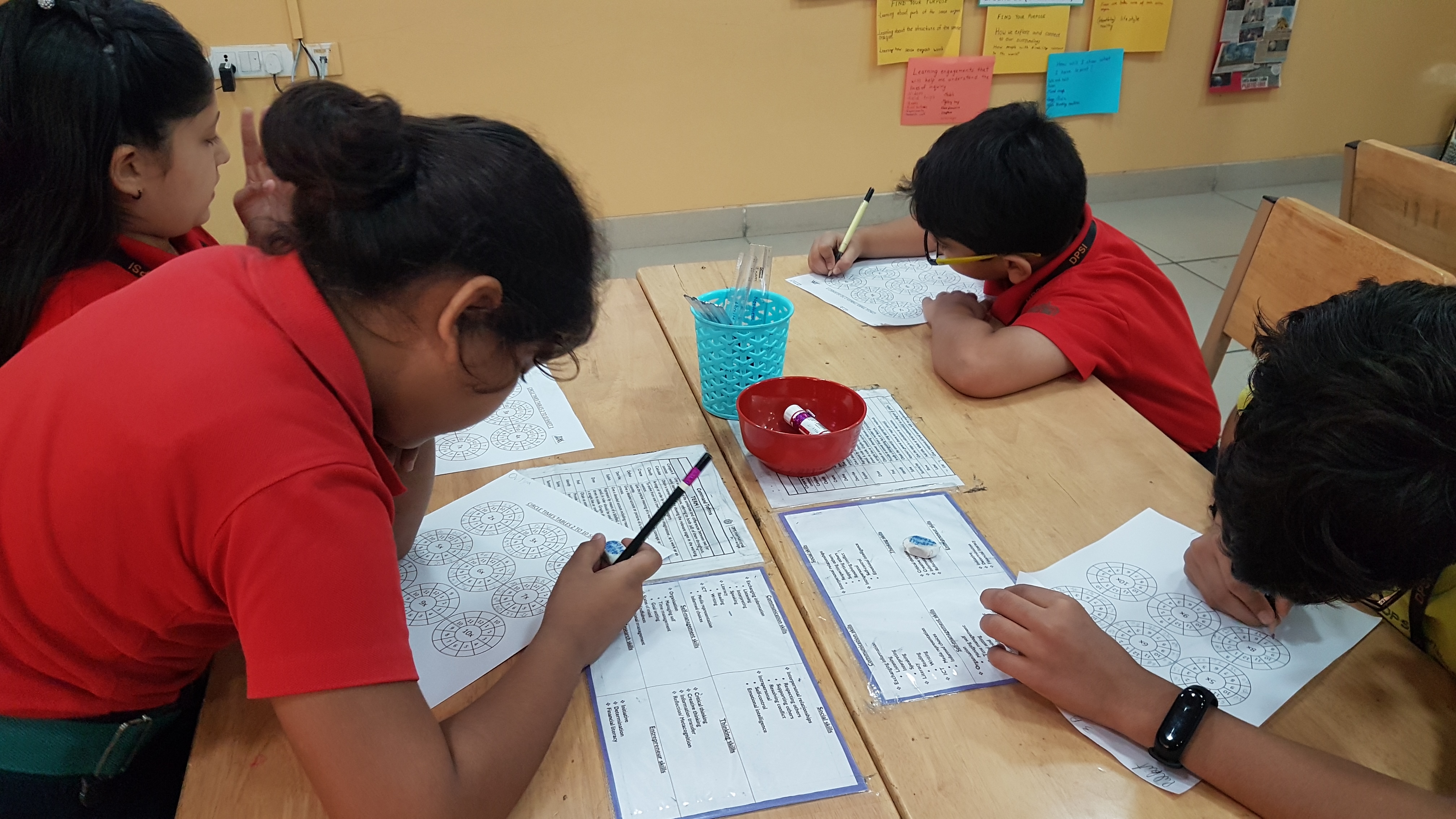 The students were tuned into multiplication with a story of the ‘one hundred hungry ants”. Through a card activity they identified ‘arrays’ and the number of items in each row. They reflected on their understanding by a visible thinking routine – CONNECT EXTEND CHALLENGE. They furthered their comprehension of the terms ‘factors and products’ and practiced time tables for 2,3,4,5.