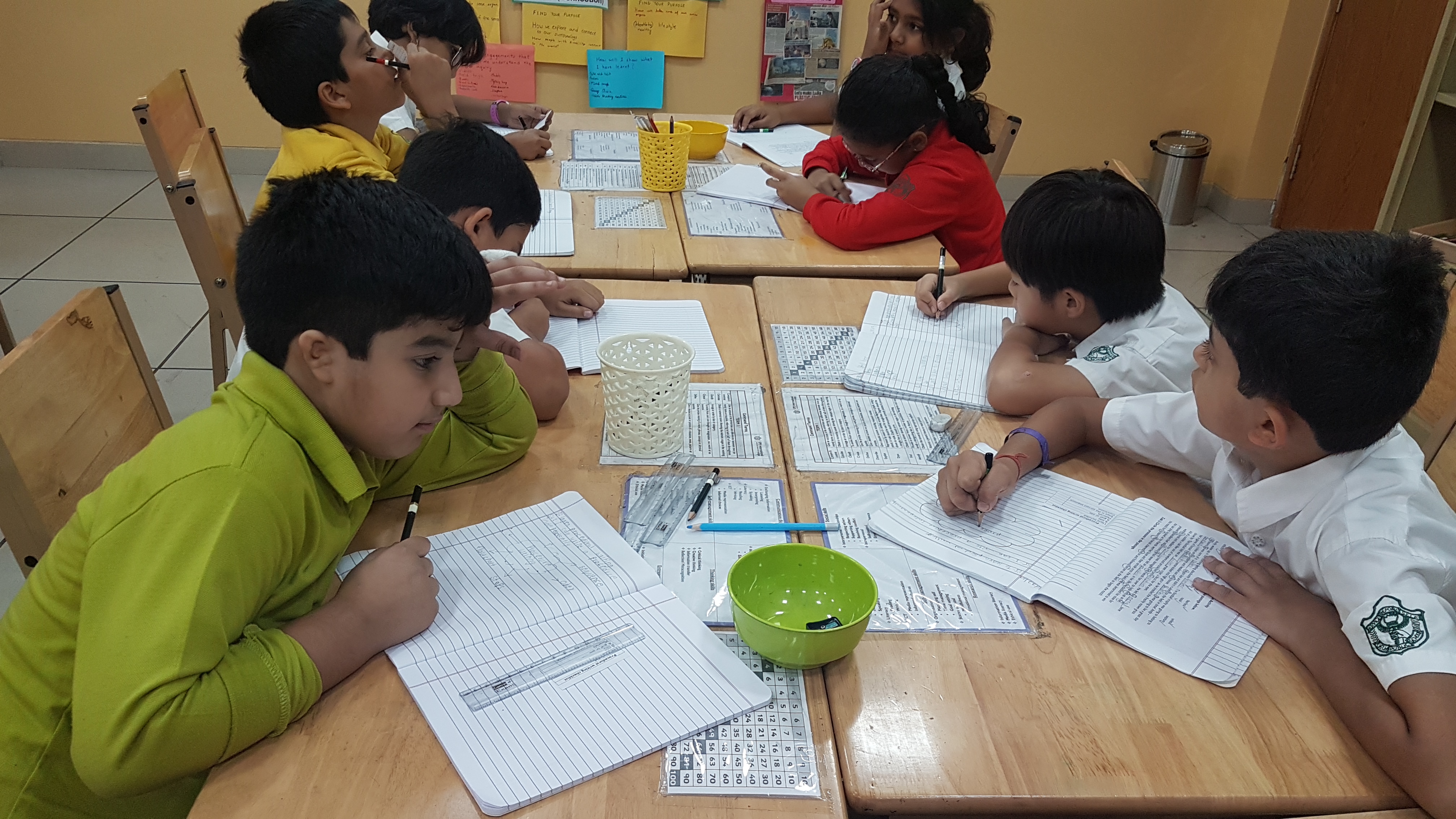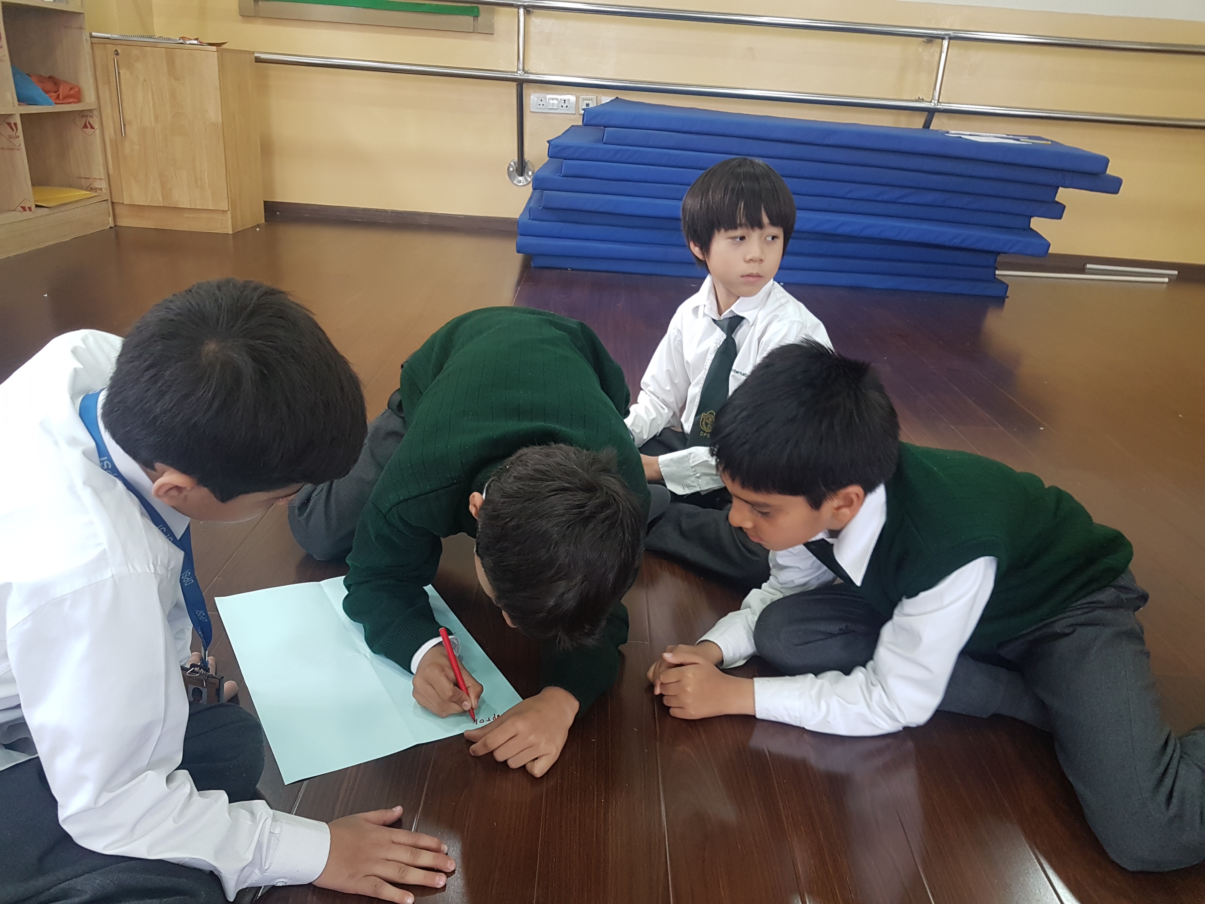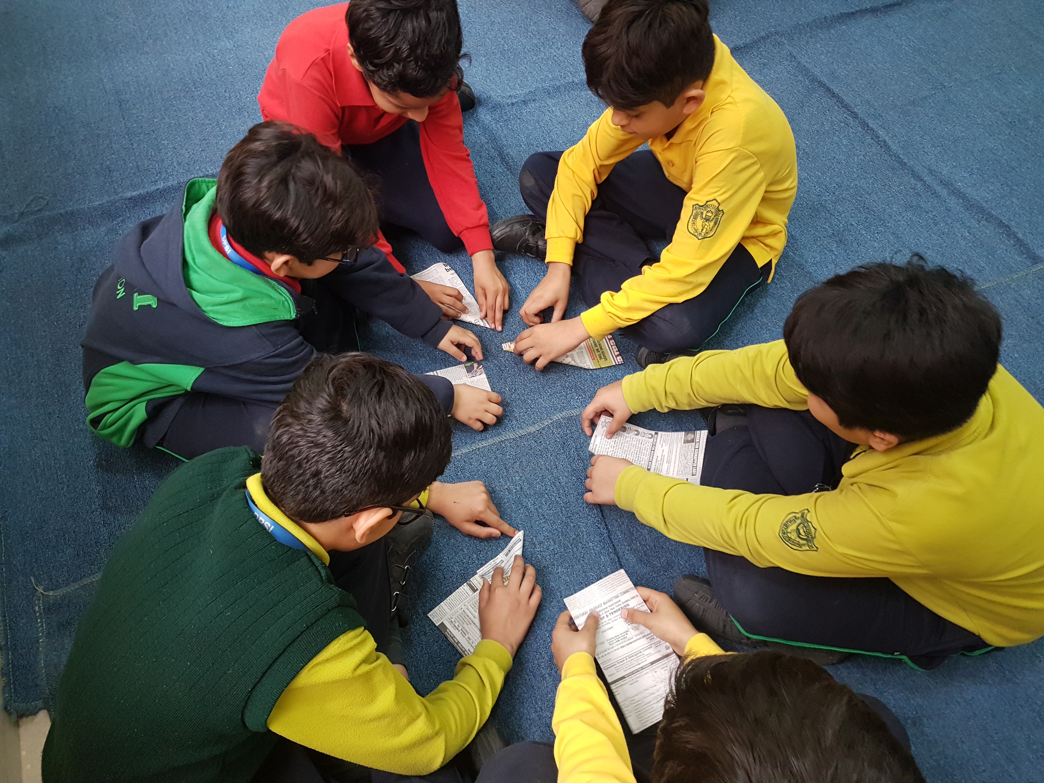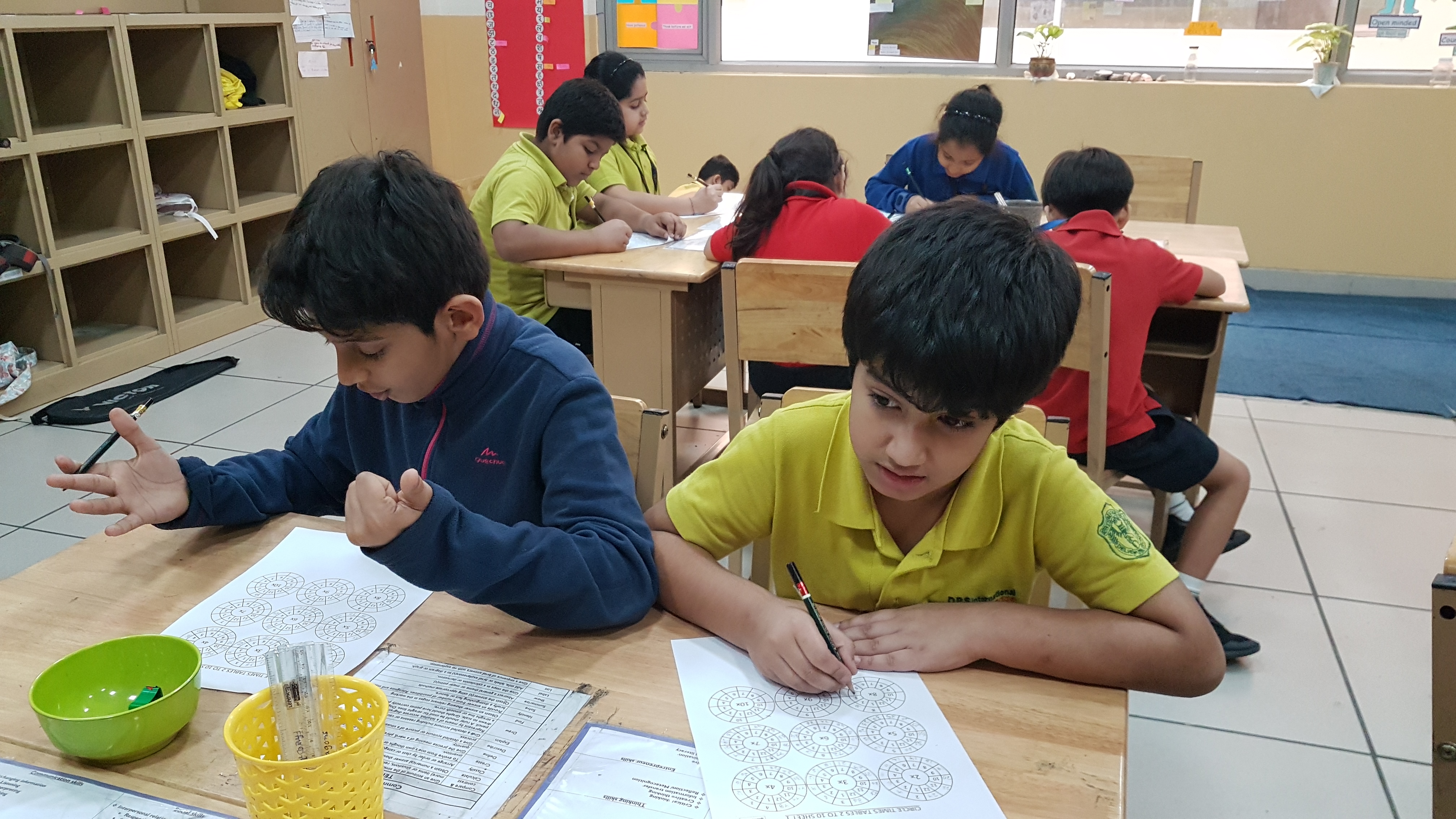 The students were tuned into multiplication with a story of the ‘one hundred hungry ants”. Through a card activity they identified ‘arrays’ and the number of items in each row. They reflected on their understanding by a visible thinking routine – CONNECT EXTEND CHALLENGE. They furthered their comprehension of the terms ‘factors and products’ and practiced time tables for 2,3,4,5.