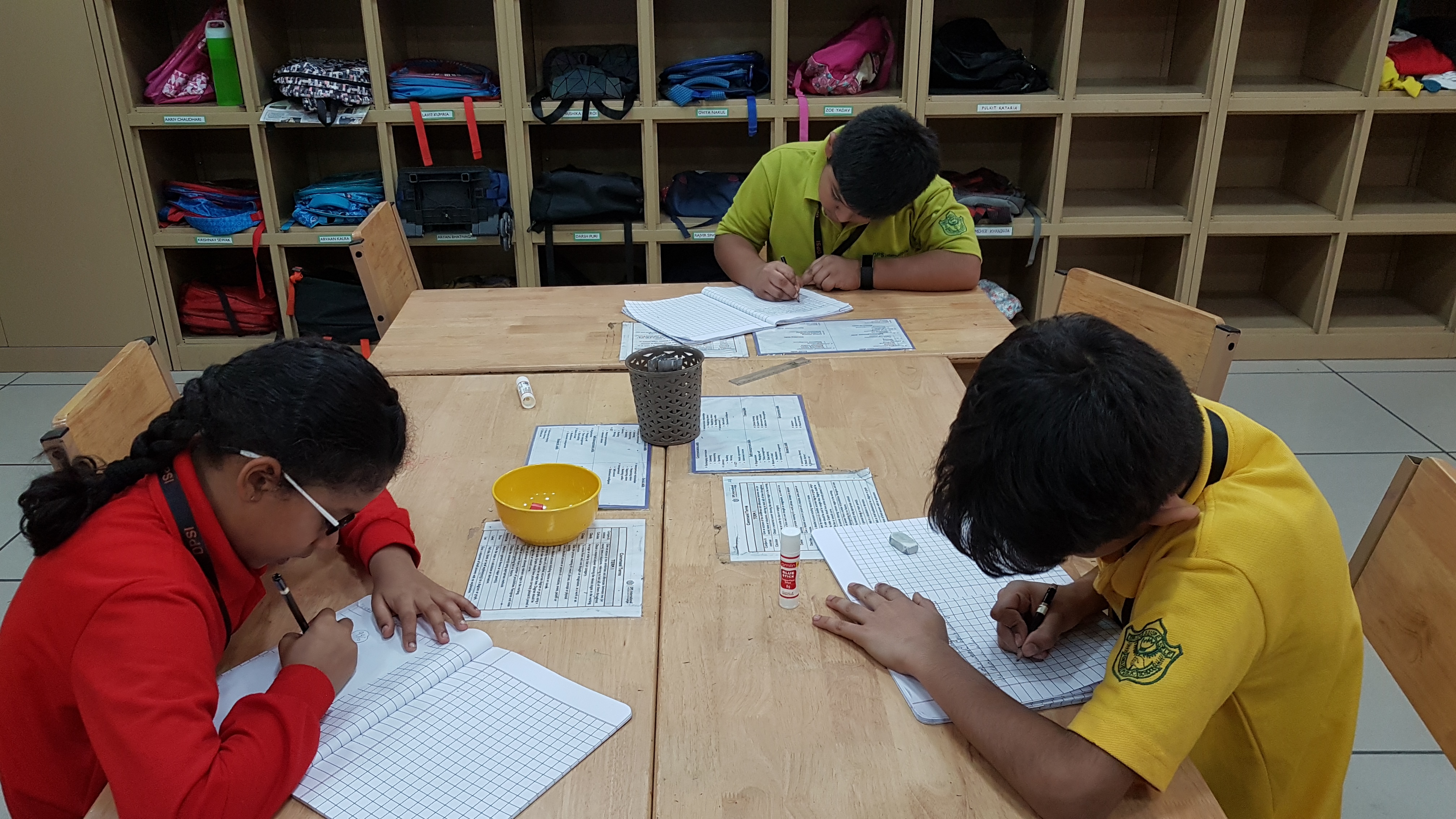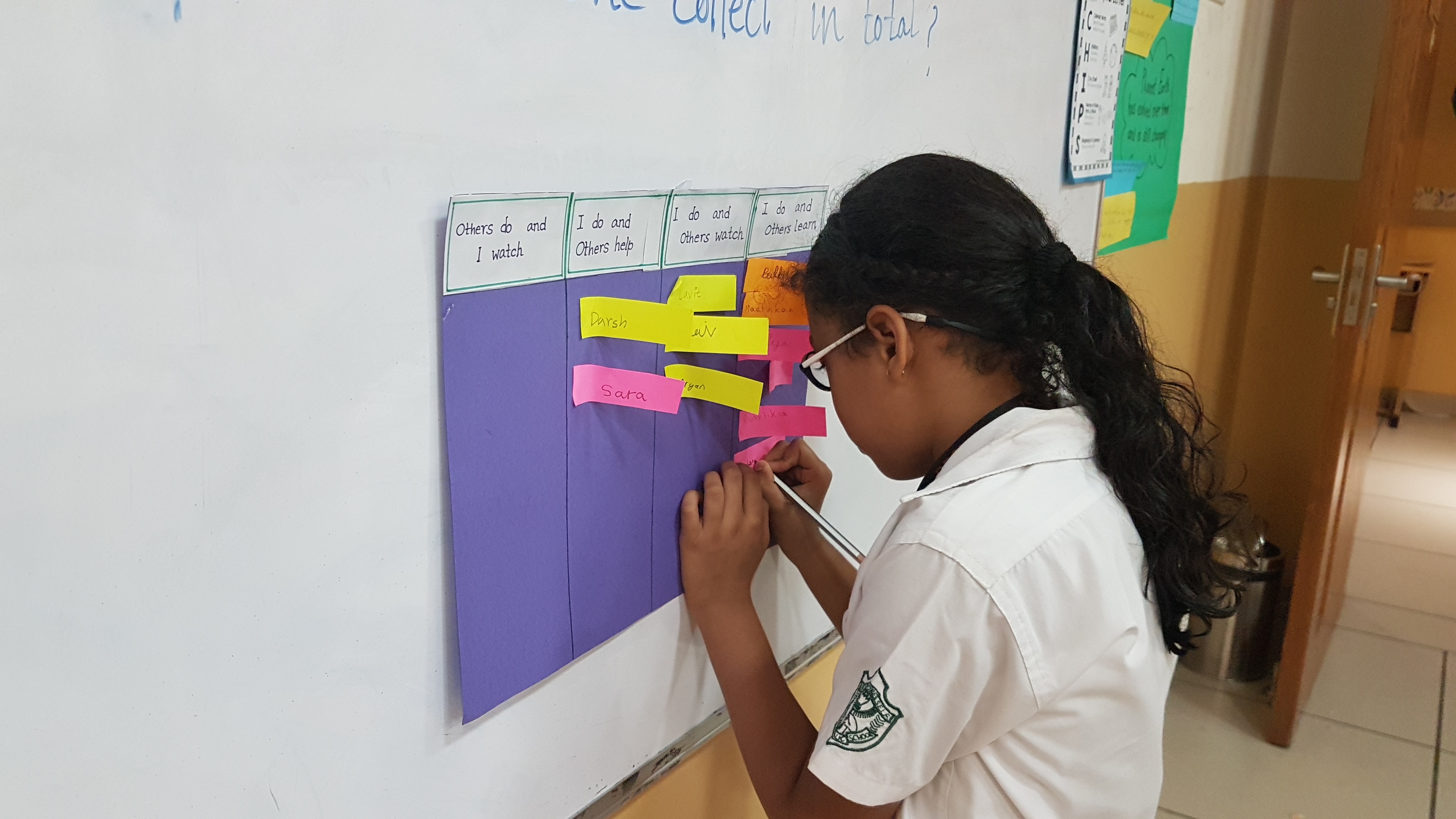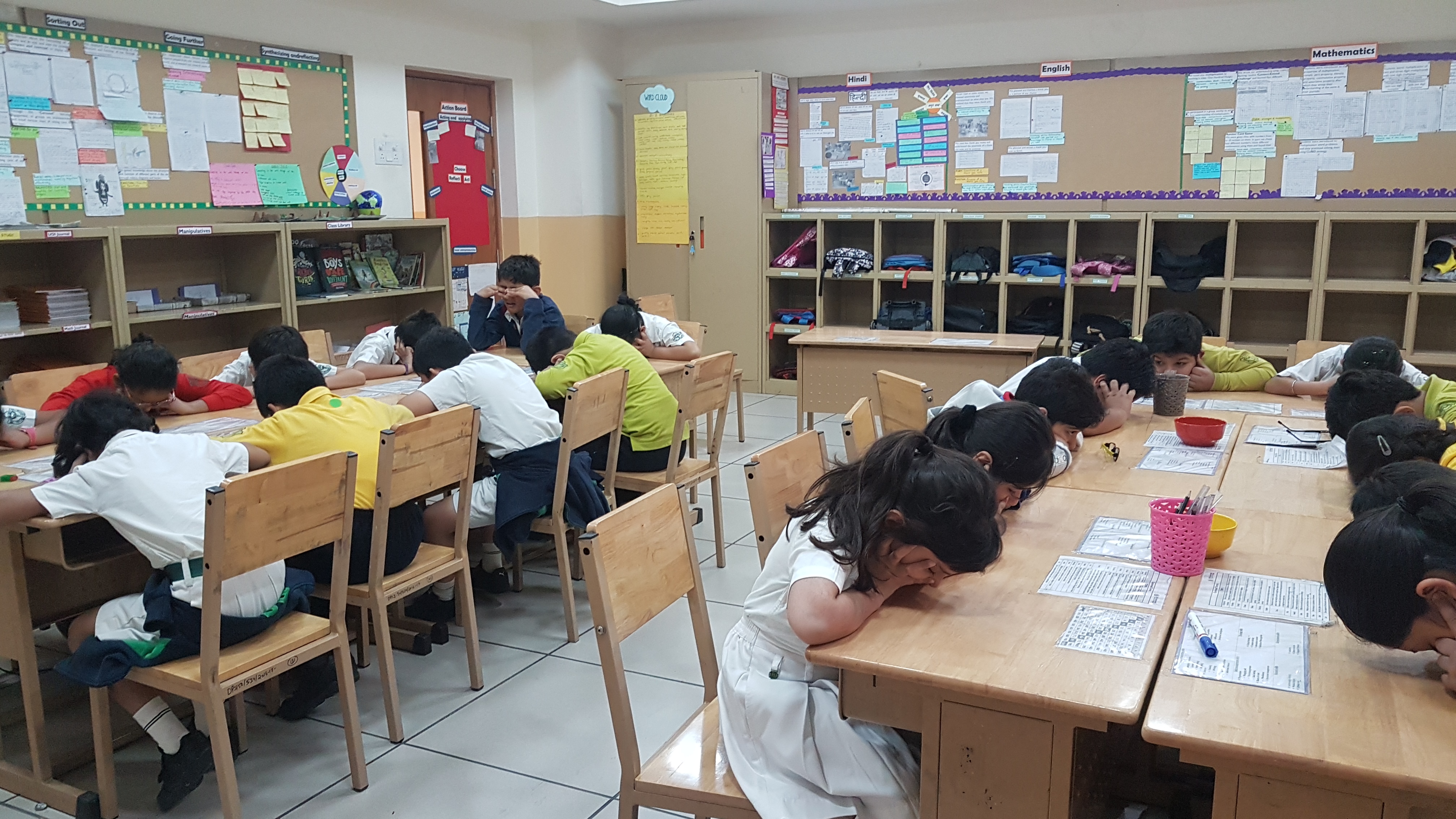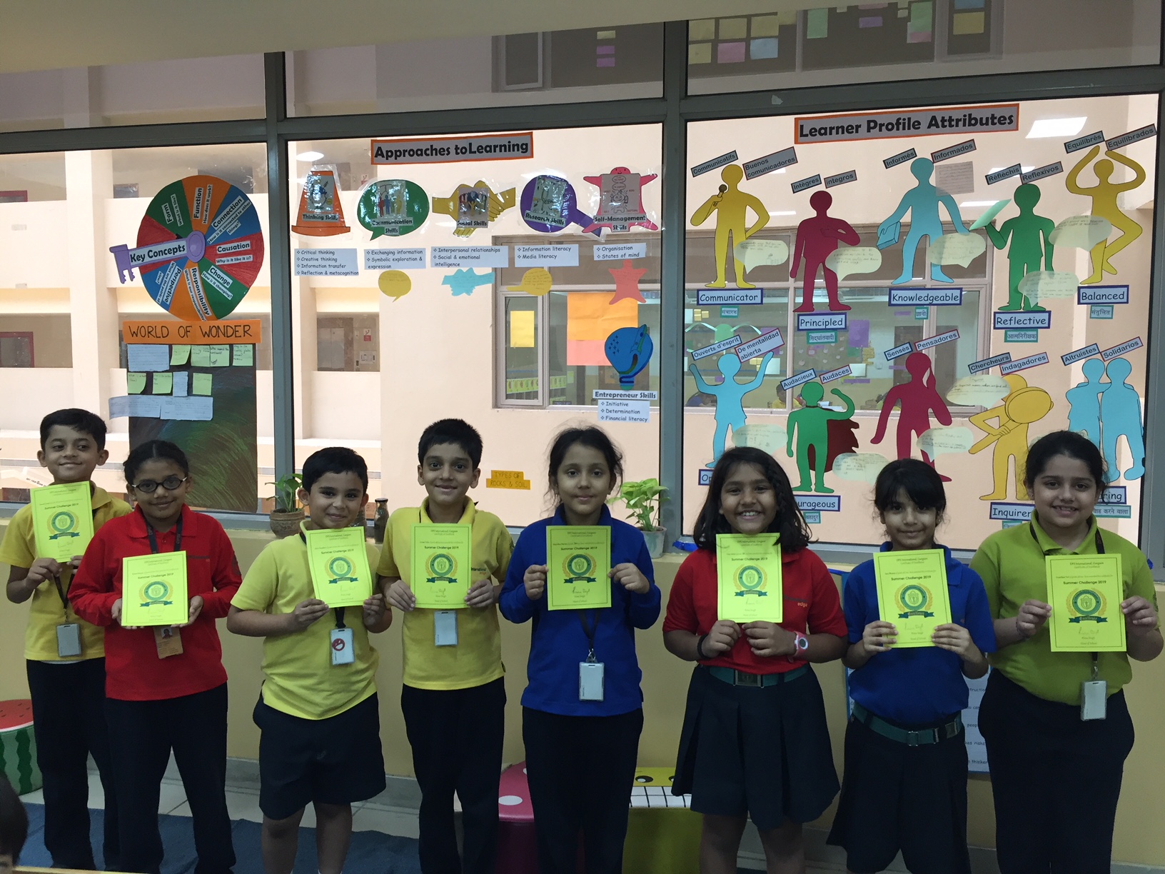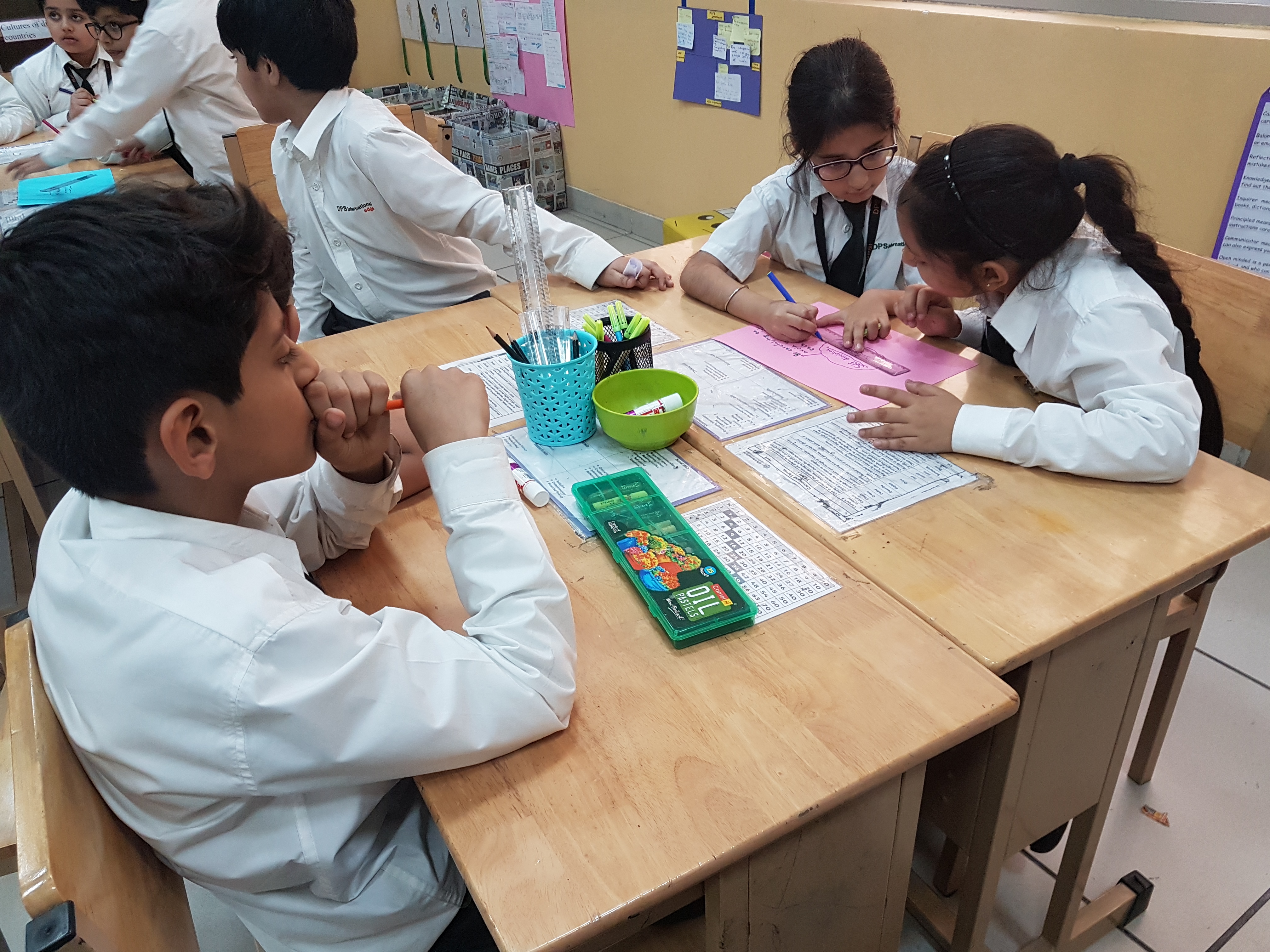 The students were tuned into multiplication with a story of the ‘one hundred hungry ants”. Through a card activity they identified ‘arrays’ and the number of items in each row. They reflected on their understanding by a visible thinking routine – CONNECT EXTEND CHALLENGE. They furthered their comprehension of the terms ‘factors and products’ and practiced time tables for 2,3,4,5.