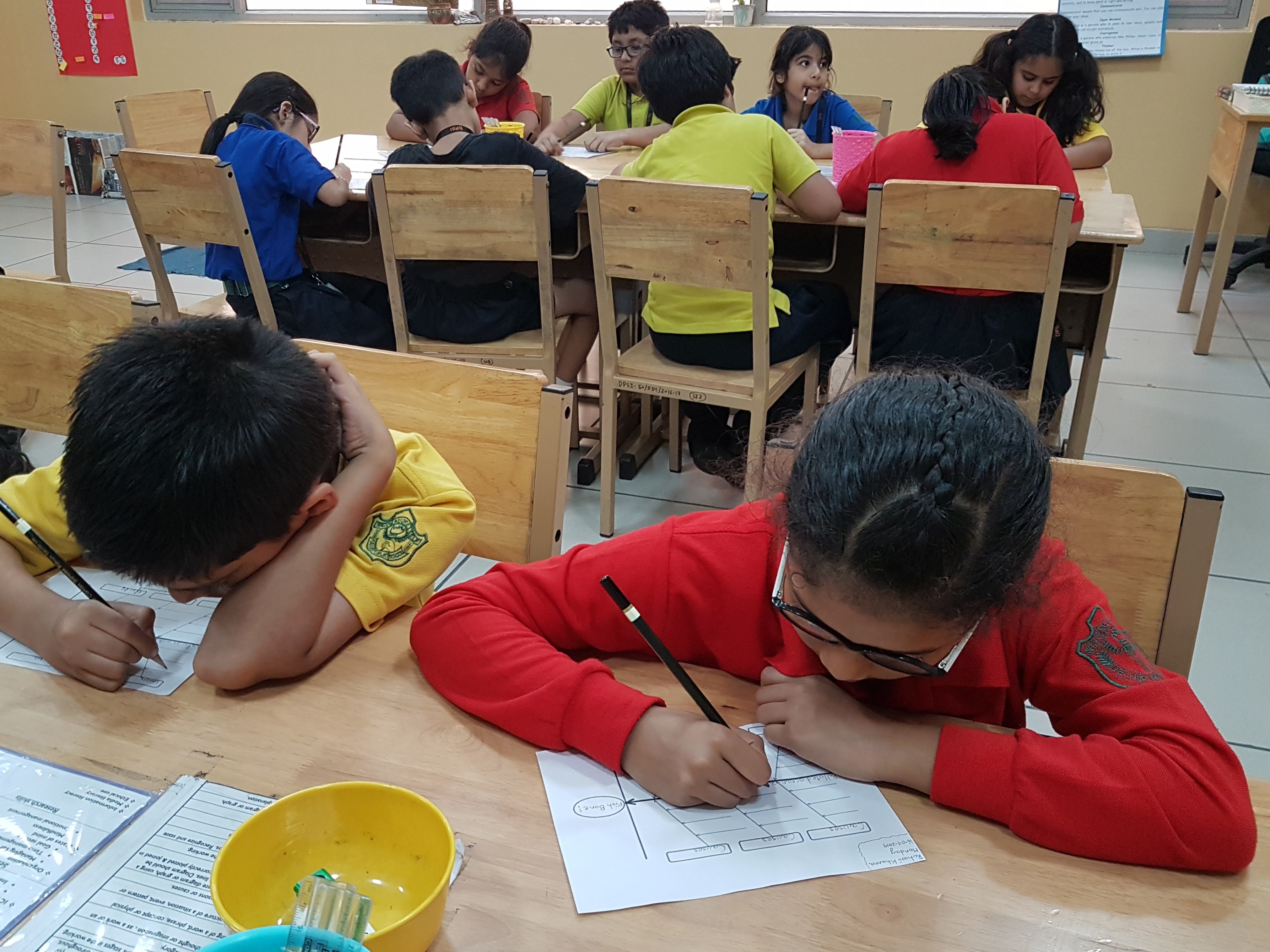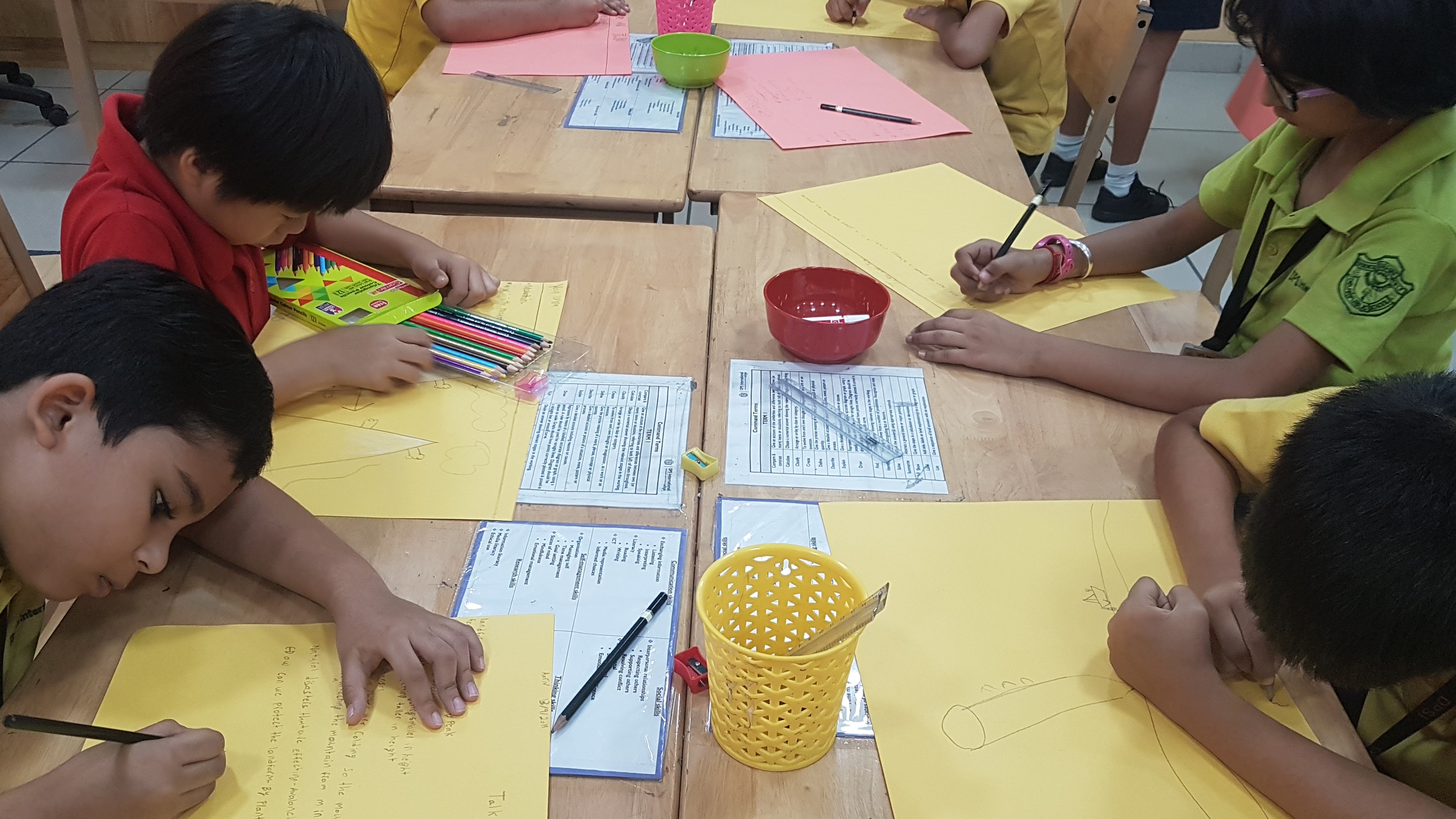 Through a bus stop activity, they were introduced to waste disposal methods (landfill, incineration, open dumping) and were excited to observe and guess the type of waste disposal method on each station. They used De Bono’s Yellow and Black hat to write about the advantages and disadvantages of each method.