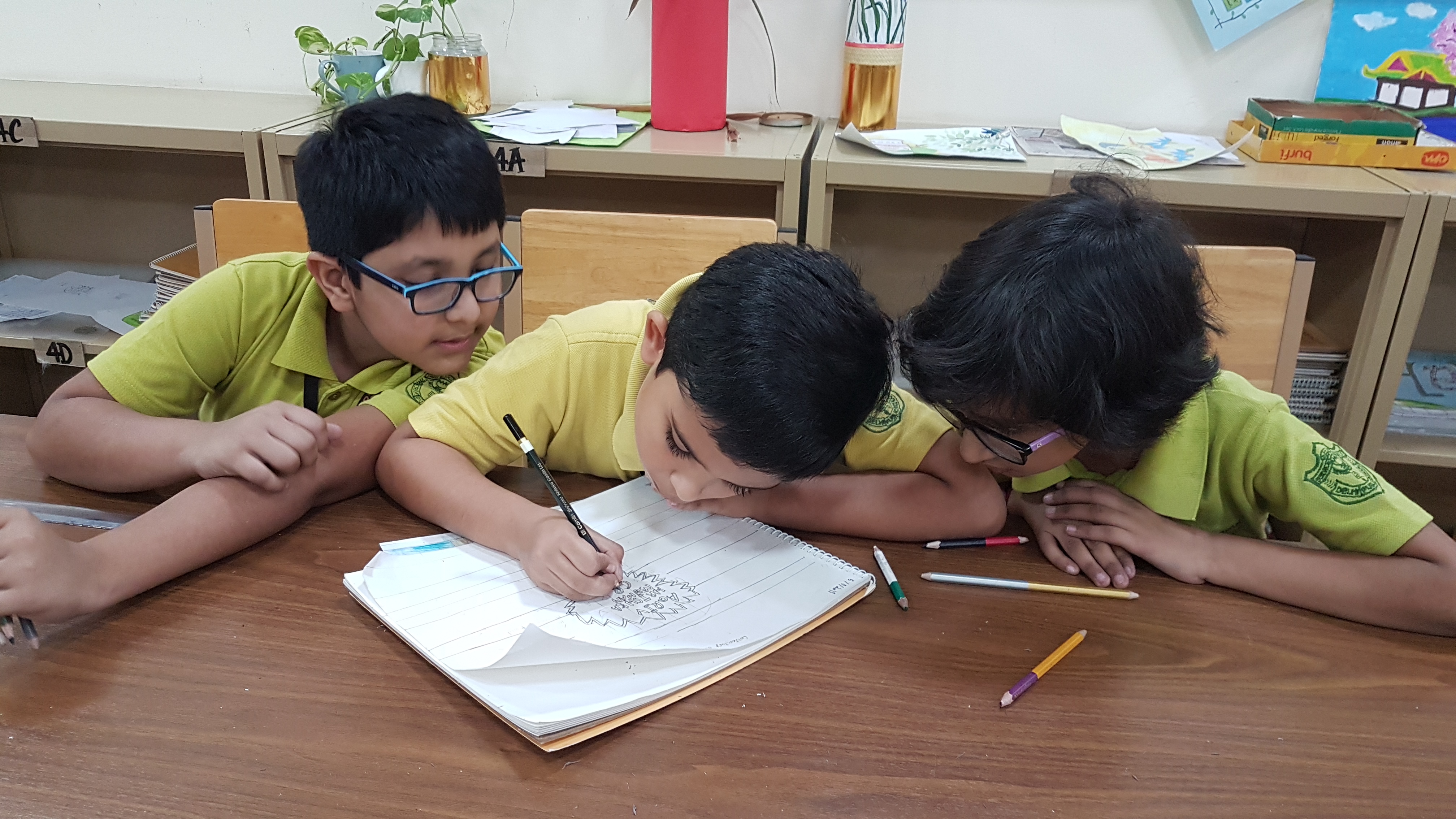 Students revisited opinion writing and were asked to express their thoughts about the country they would like to migrate to, if given a choice. They were introduced to couplets and poems and were taught that two rhyming lines make a couplet. They were encouraged to create their own couplets and poems.