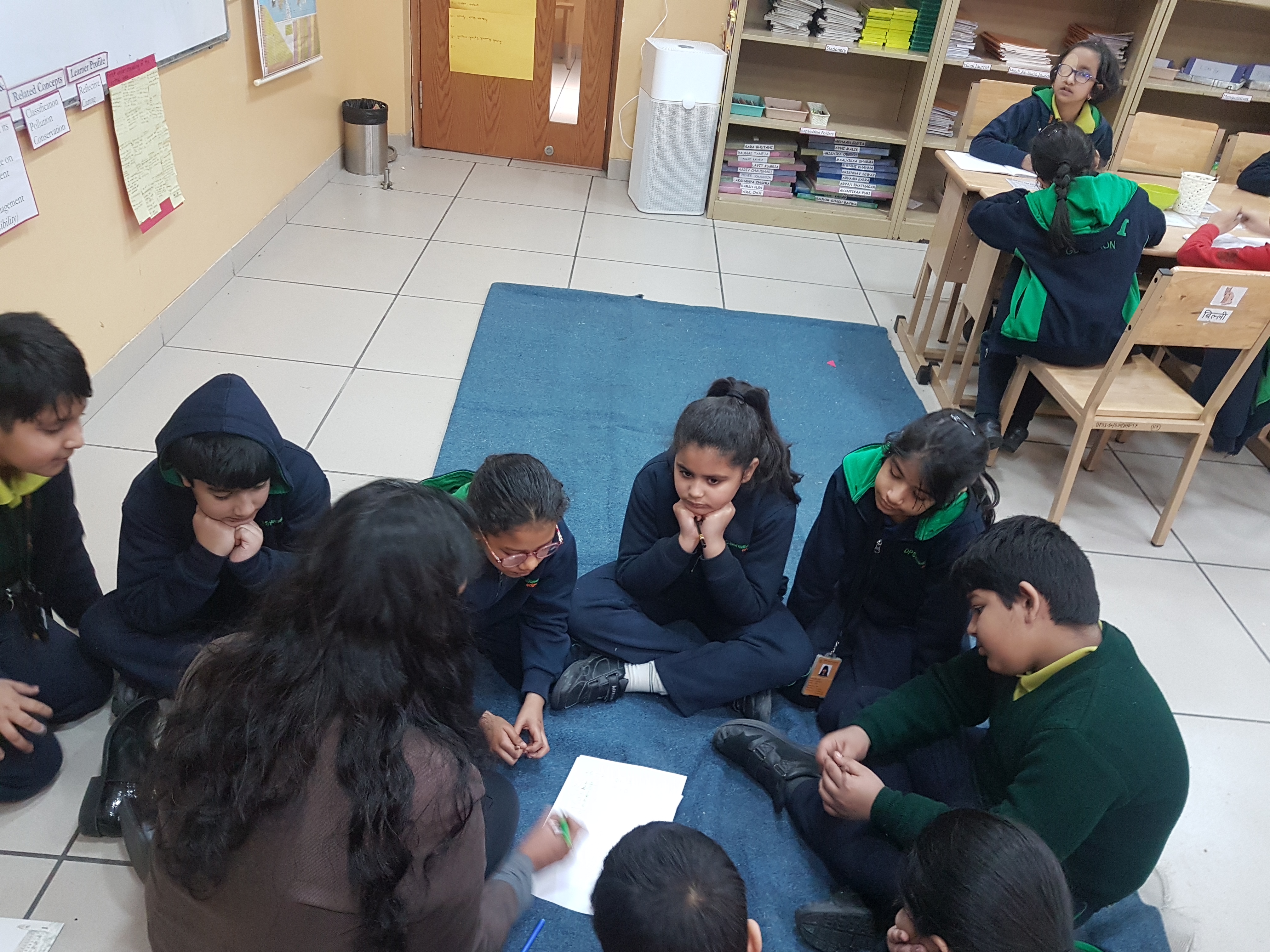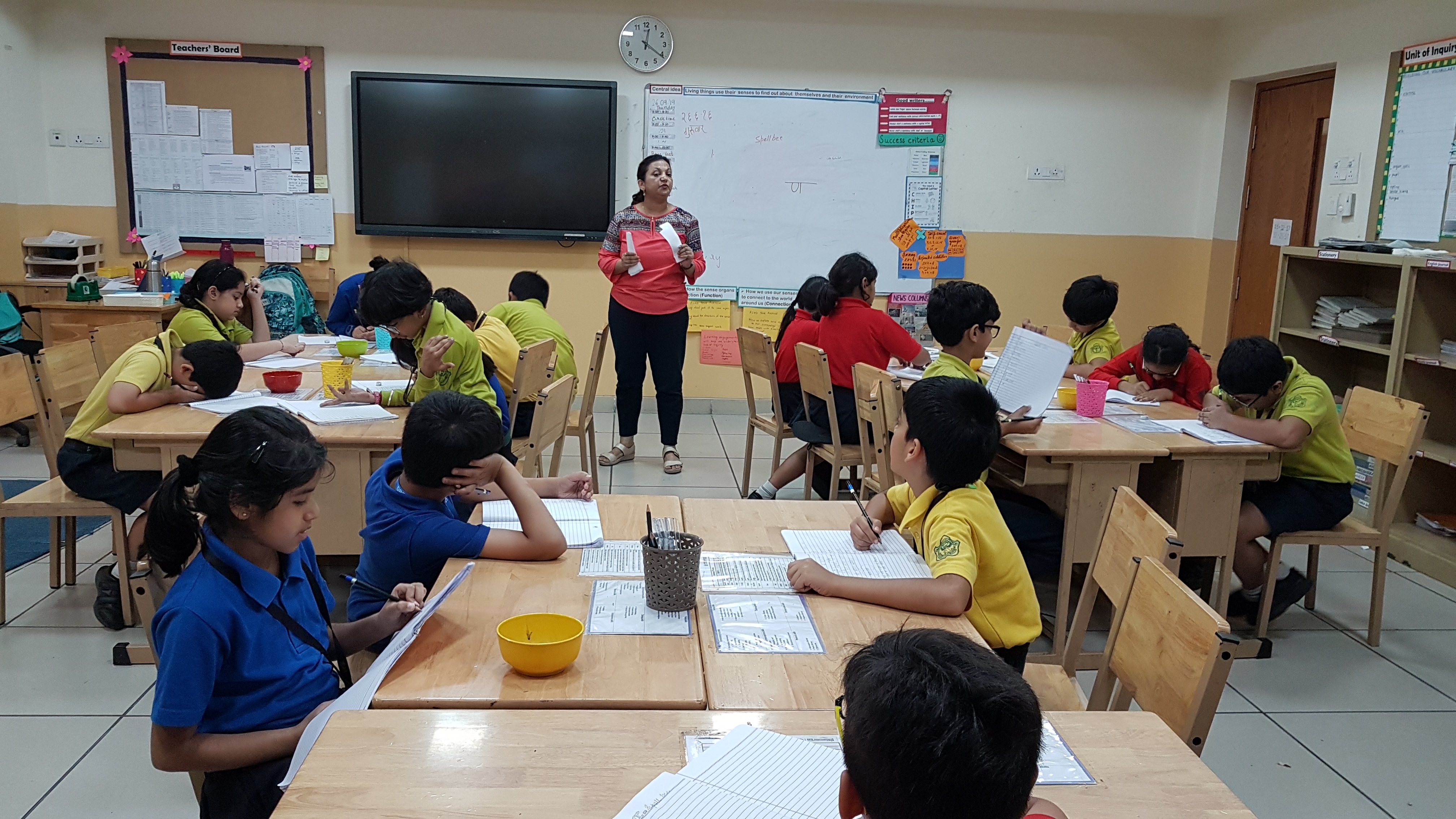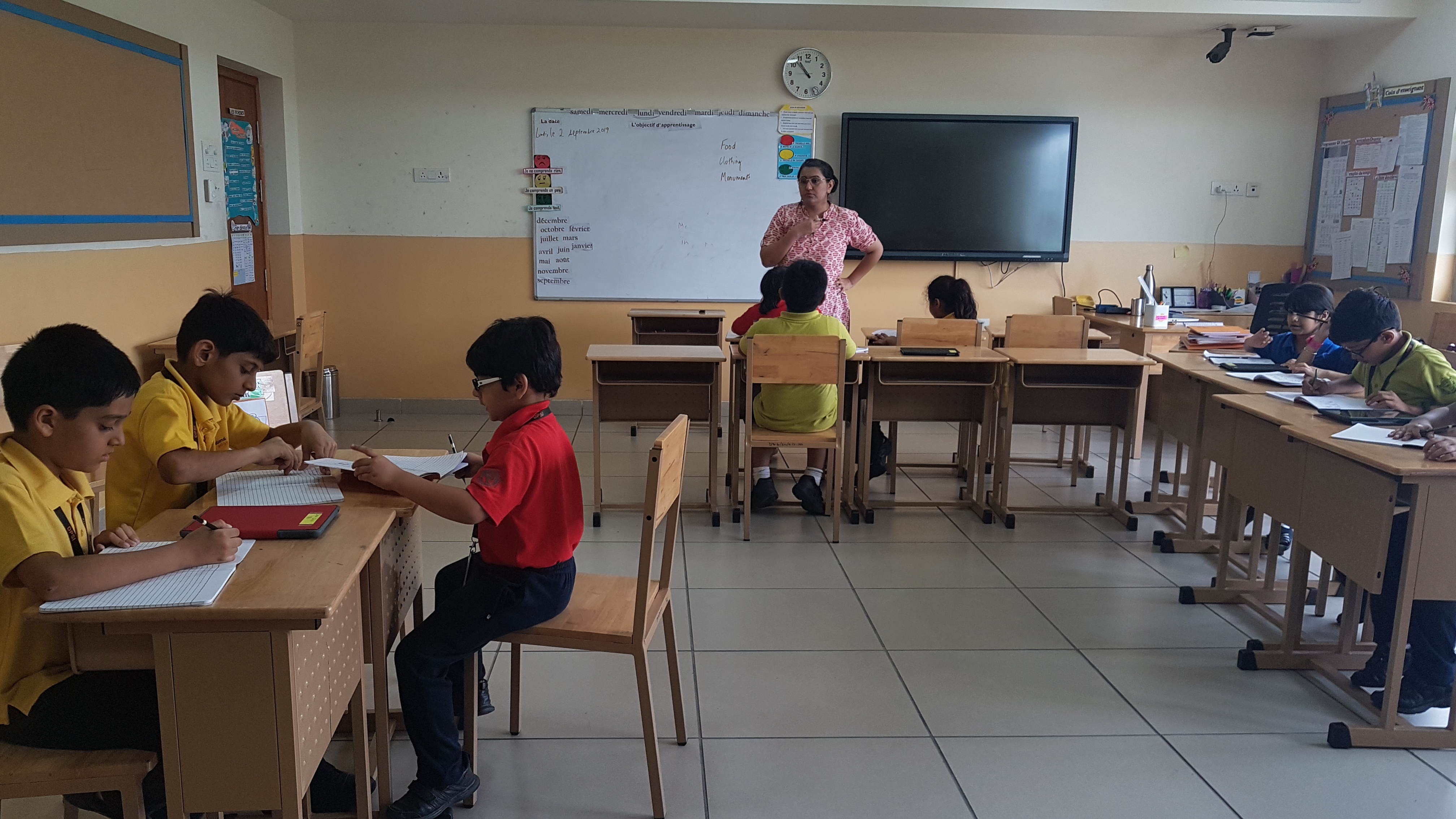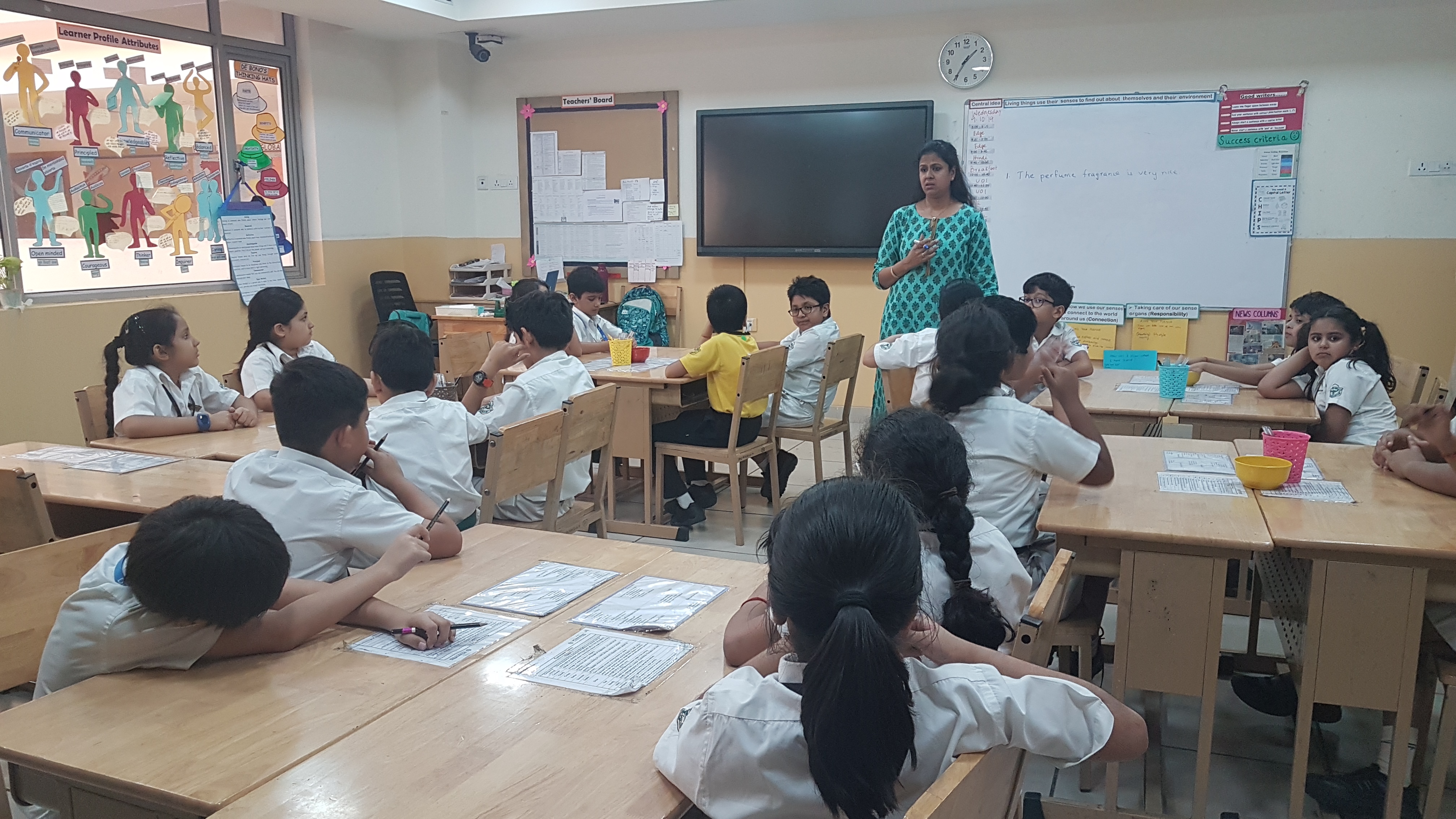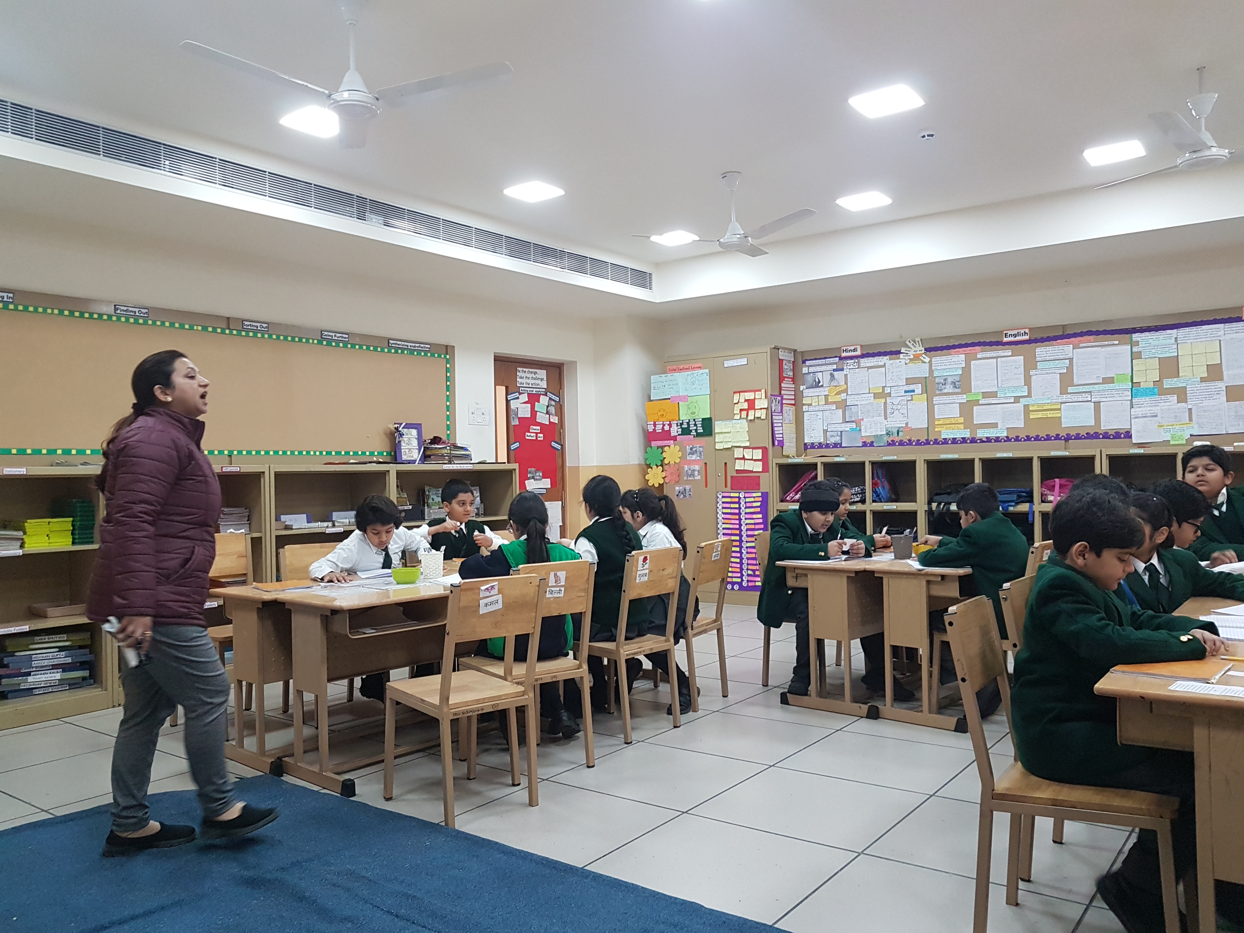 Students worked on their creative thinking where they learned to identify valuable statements from the article/story read to them while backing it with evidence. They honed their understanding of spell-bee words through a peer assessment activity. In tandem with their UOI waste management lesson, they learned co-construction of rubric and paragraph writing. For a similar unit integration lesson, they created “valuable statement” while reading the waste management article with the underlying thought “‘Waste for one person is necessity for another person”. There was a group activity where each batch was provided with 2-3 scenarios related to waste/3 R’s. Students analysed and discussed each scenario within their groups. The summative assessment for articles and pronouns as well as spelling was taken.
