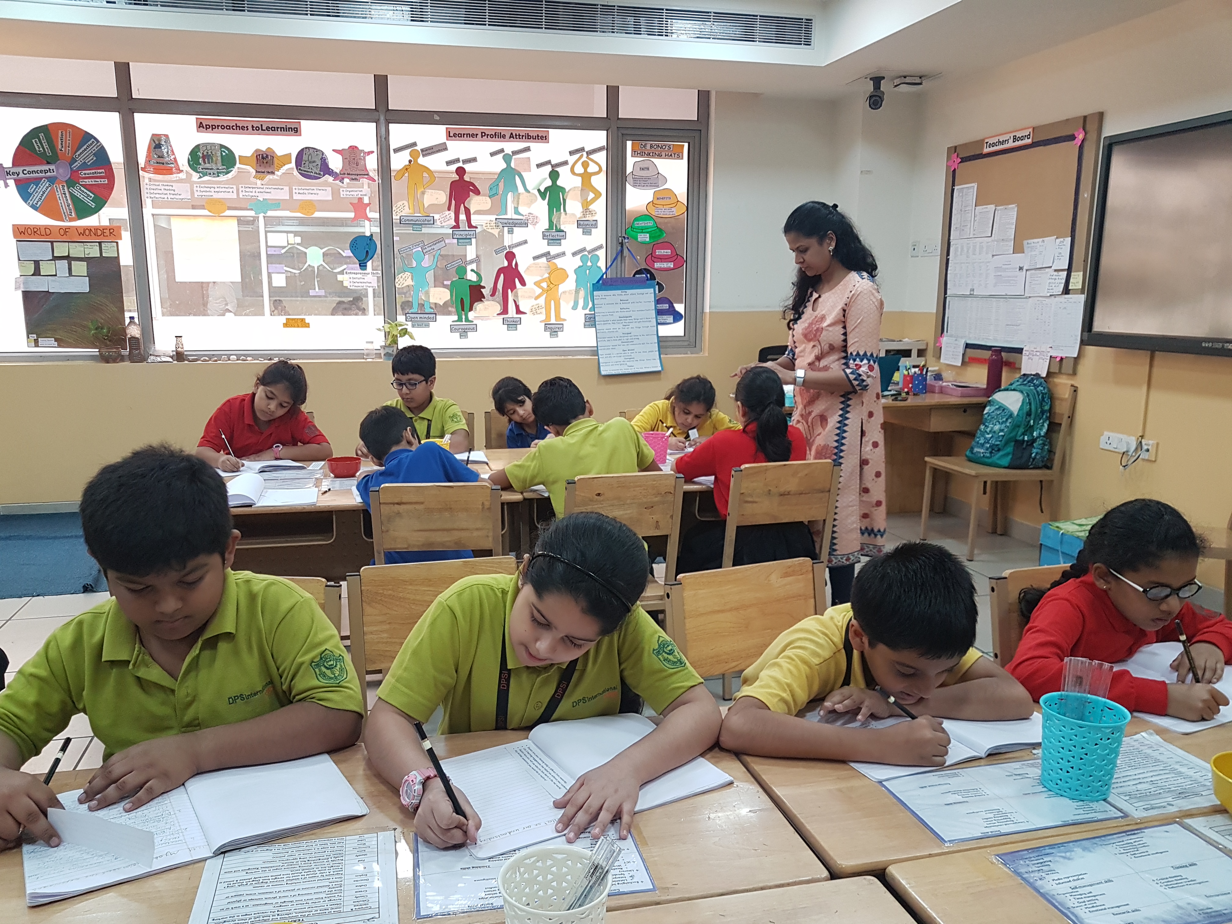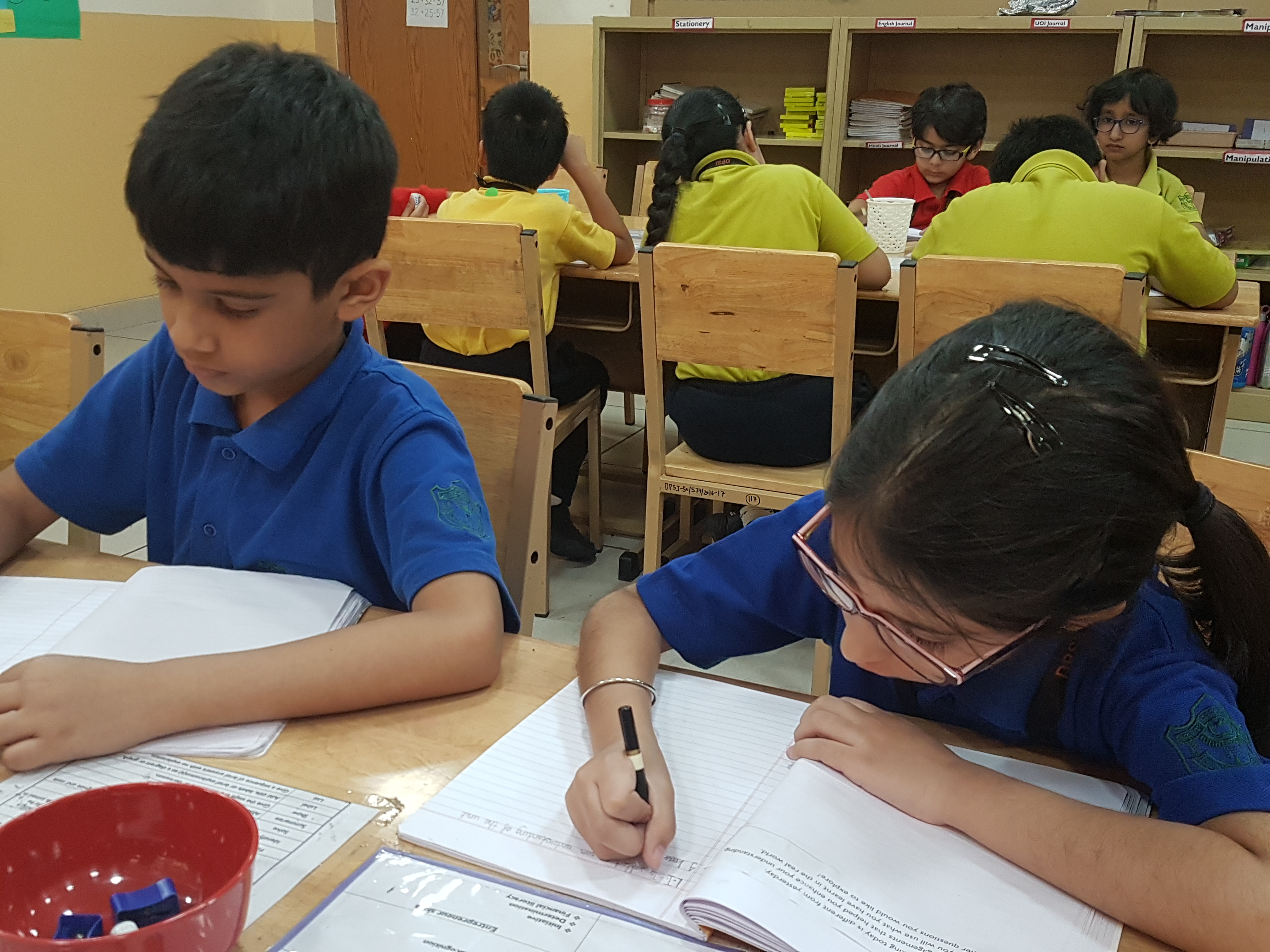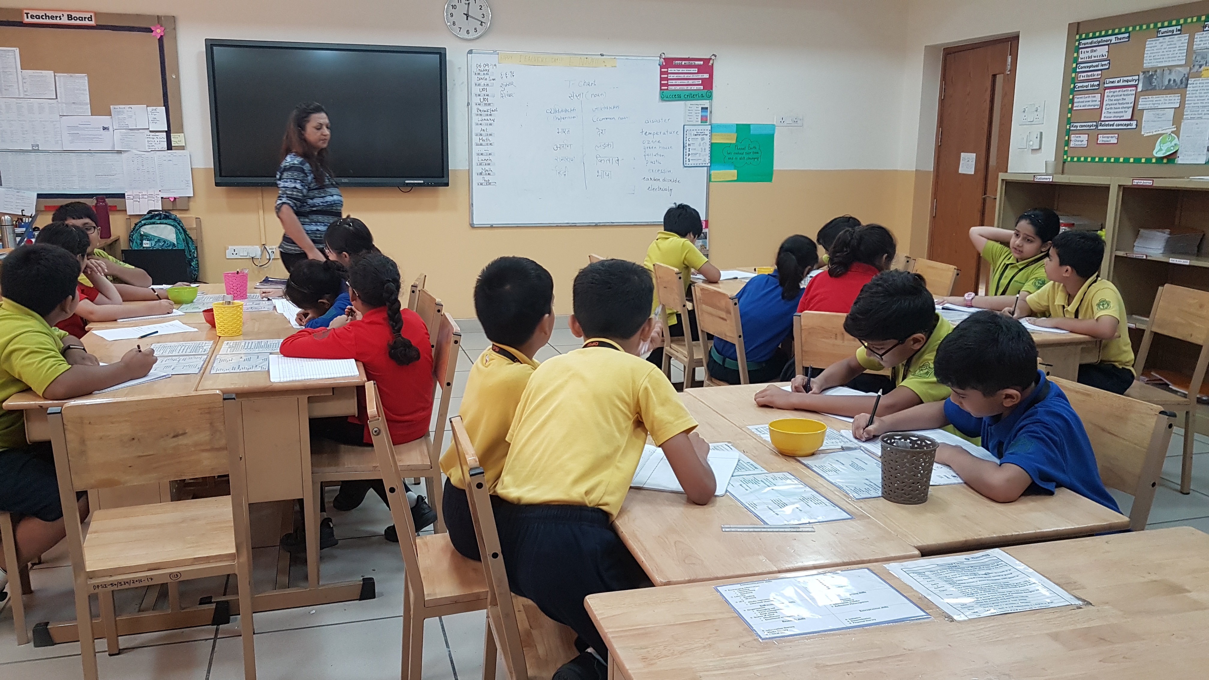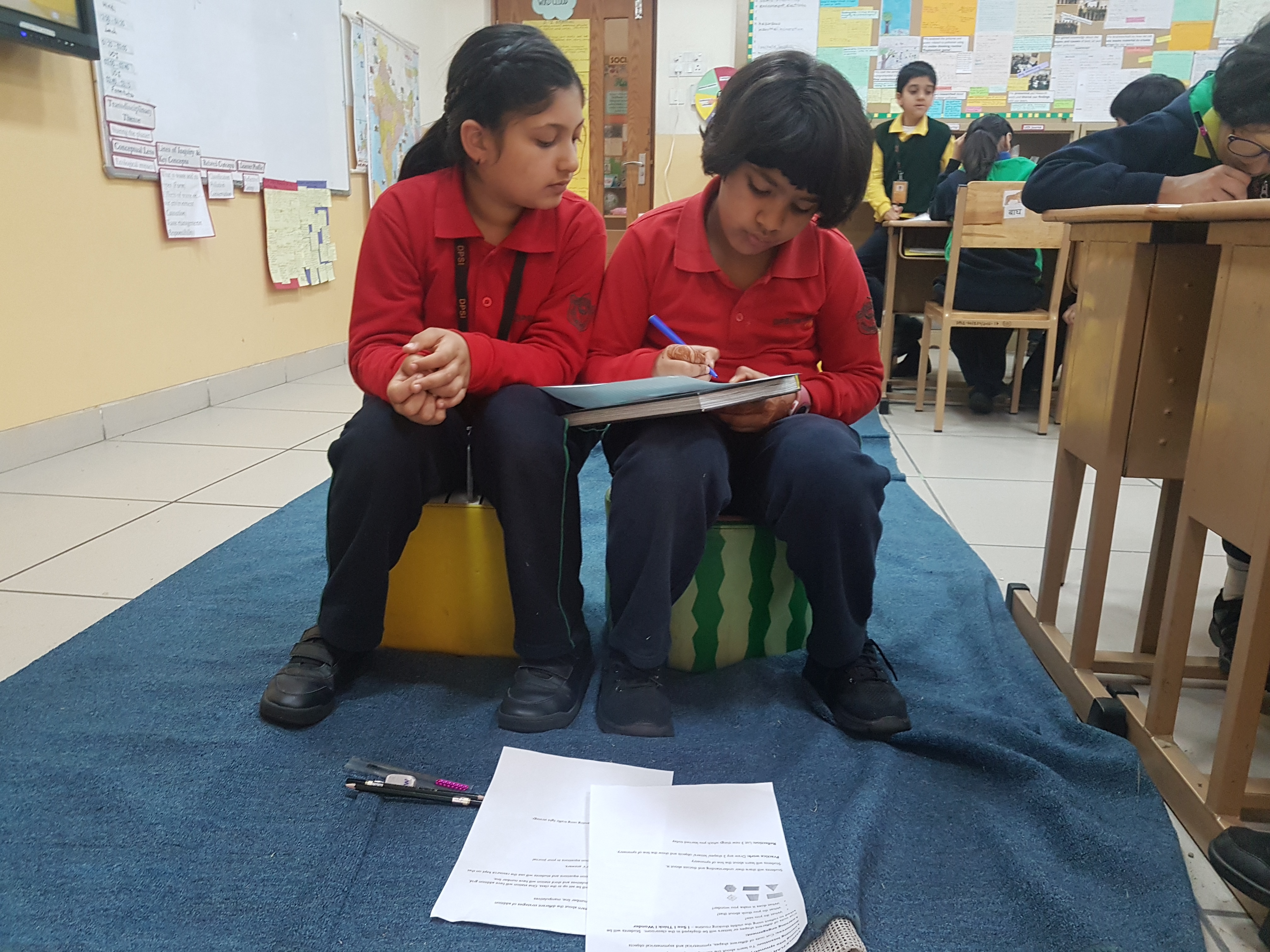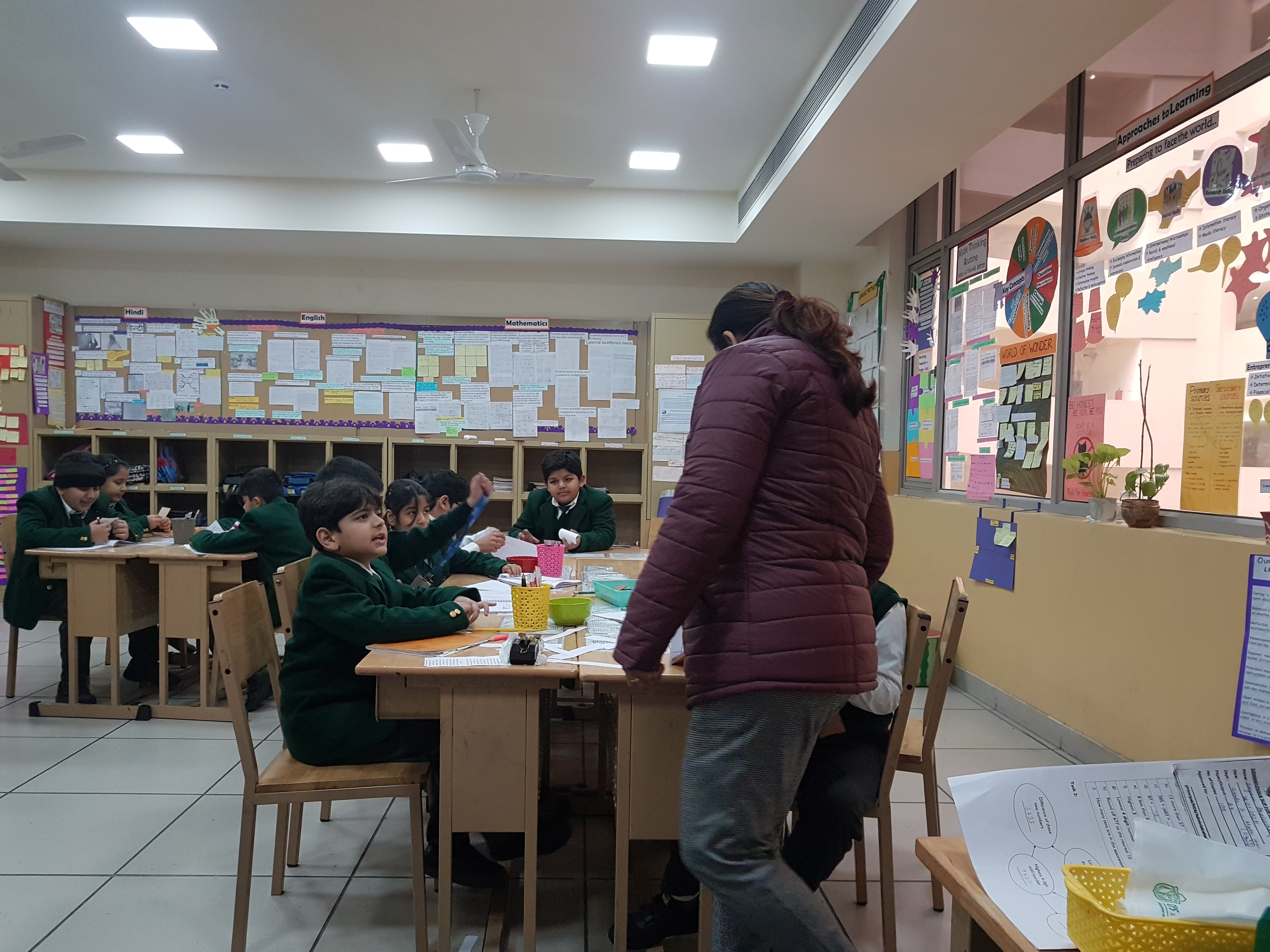 Students worked on their creative thinking where they learned to identify valuable statements from the article/story read to them while backing it with evidence. They honed their understanding of spell-bee words through a peer assessment activity. In tandem with their UOI waste management lesson, they learned co-construction of rubric and paragraph writing. For a similar unit integration lesson, they created “valuable statement” while reading the waste management article with the underlying thought “‘Waste for one person is necessity for another person”. There was a group activity where each batch was provided with 2-3 scenarios related to waste/3 R’s. Students analysed and discussed each scenario within their groups. The summative assessment for articles and pronouns as well as spelling was taken.