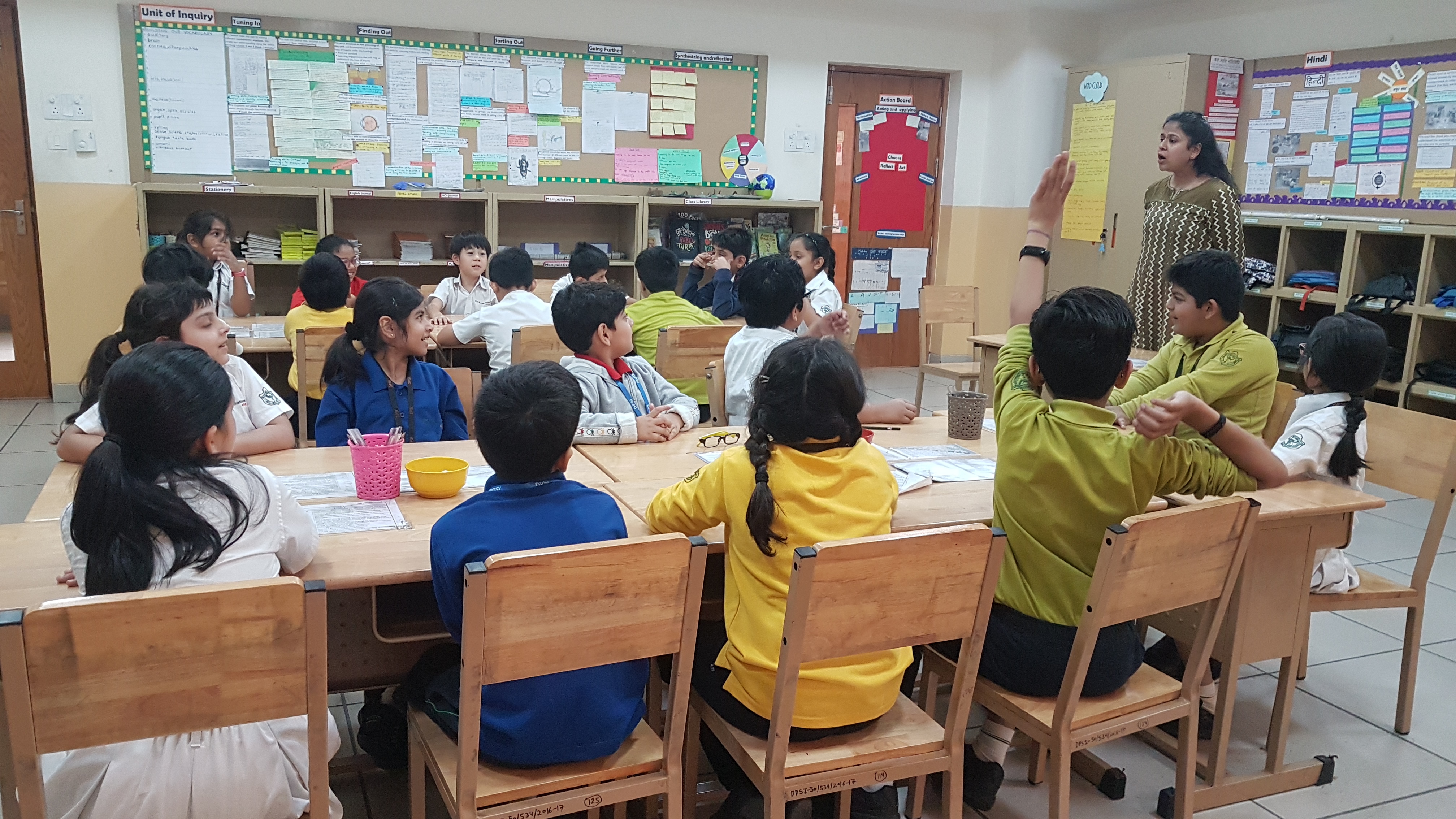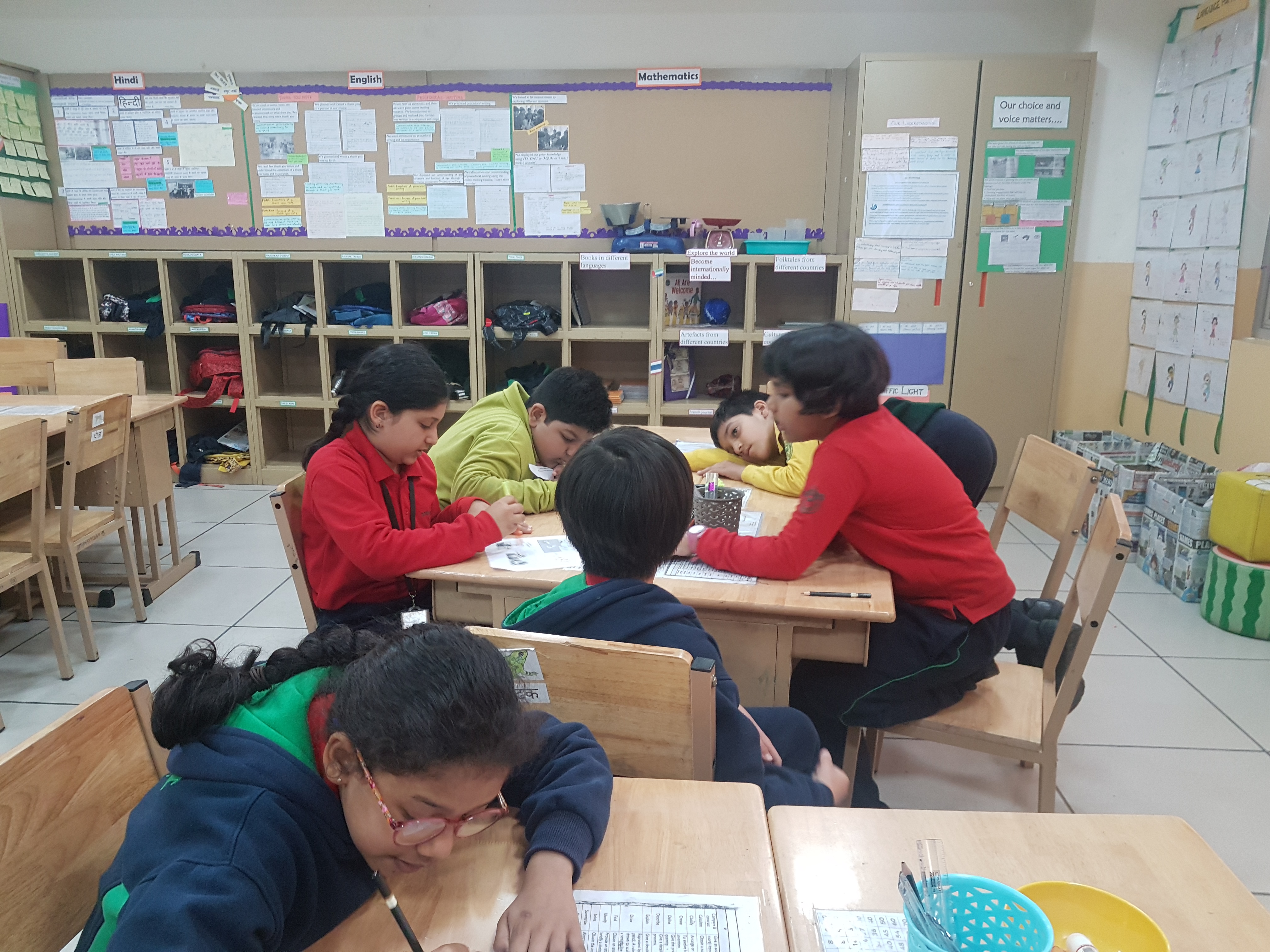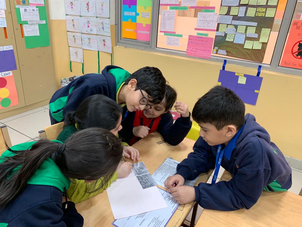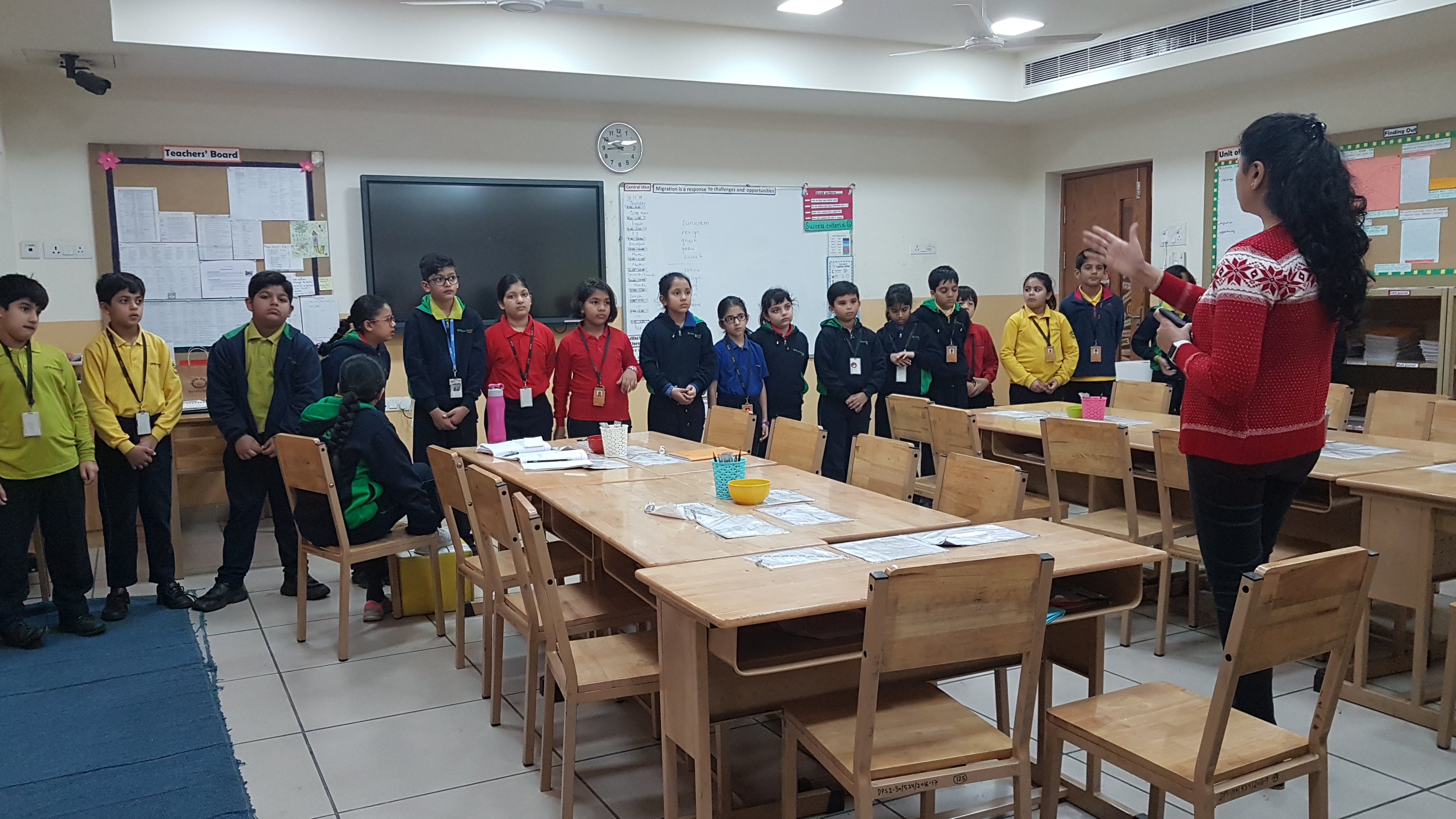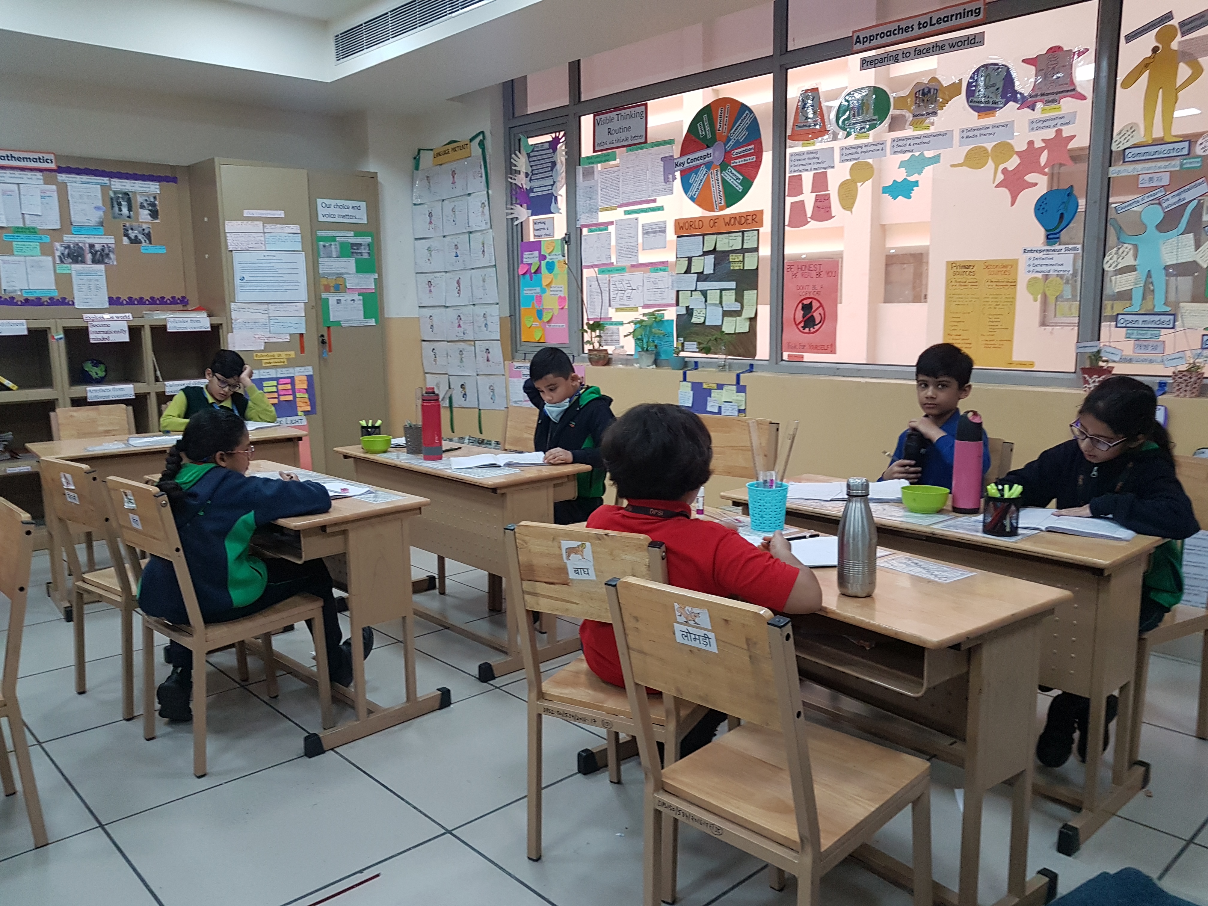 During their Hindi lessons based on the migration unit, students viewed a video ‘आग वाली मछली’. They also attempted a ‘listen and tell’ activity which helped them to make meaningful connections. A read aloud story session, ‘रंगीन पक्षी’ helped them to enhance their reading and comprehension skills. Students displayed their thinking and self-management capabilities by working in groups.