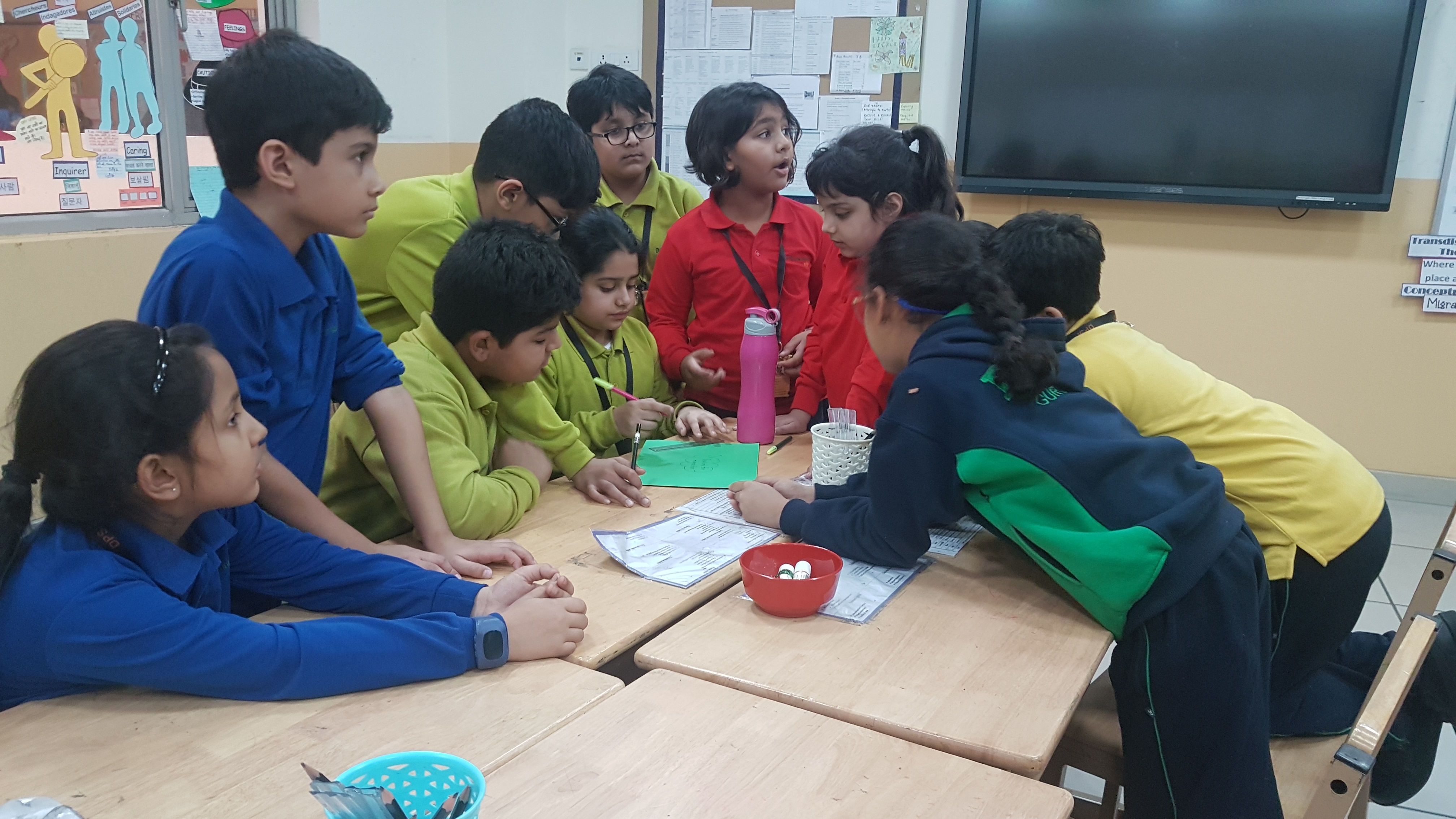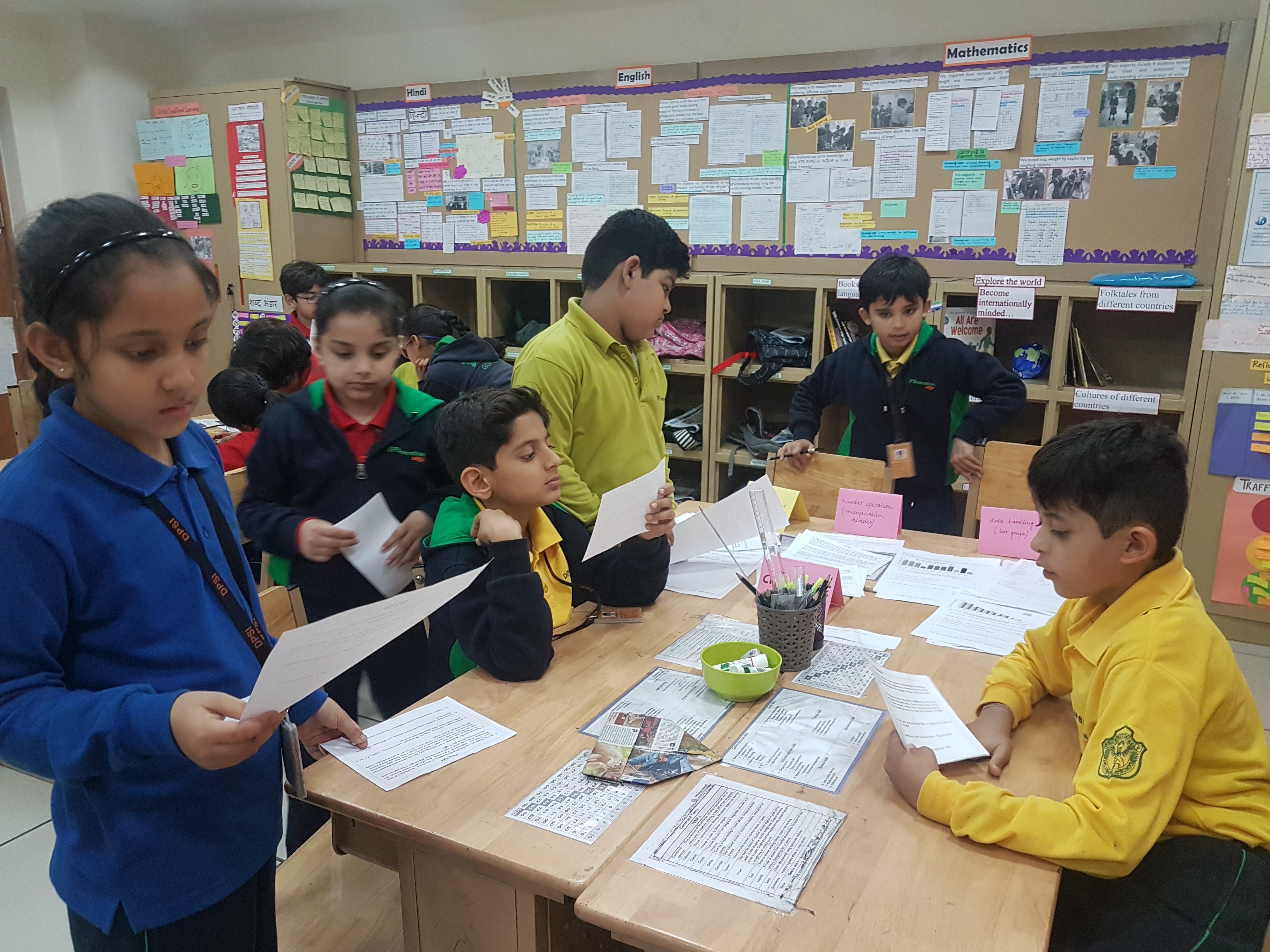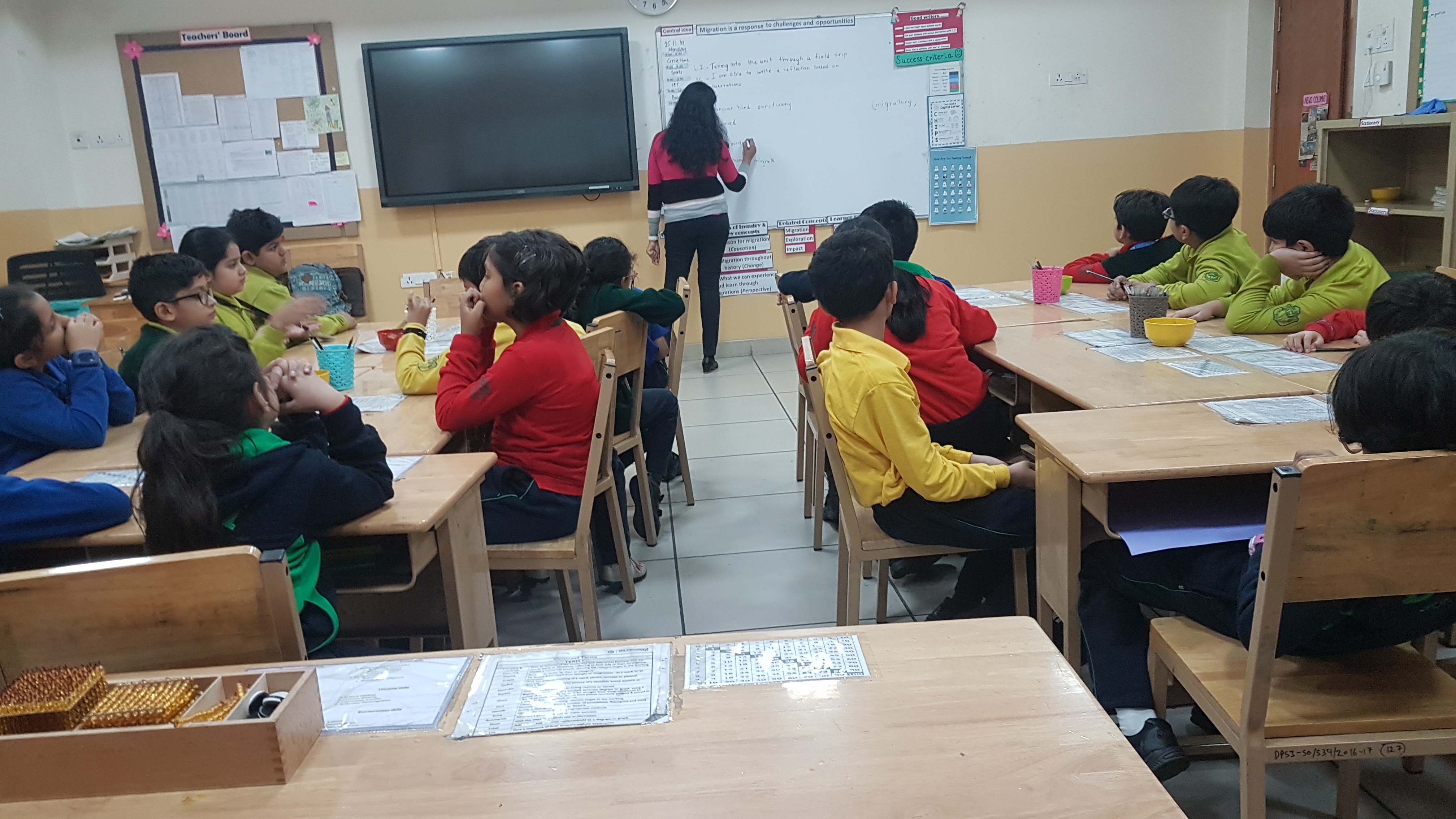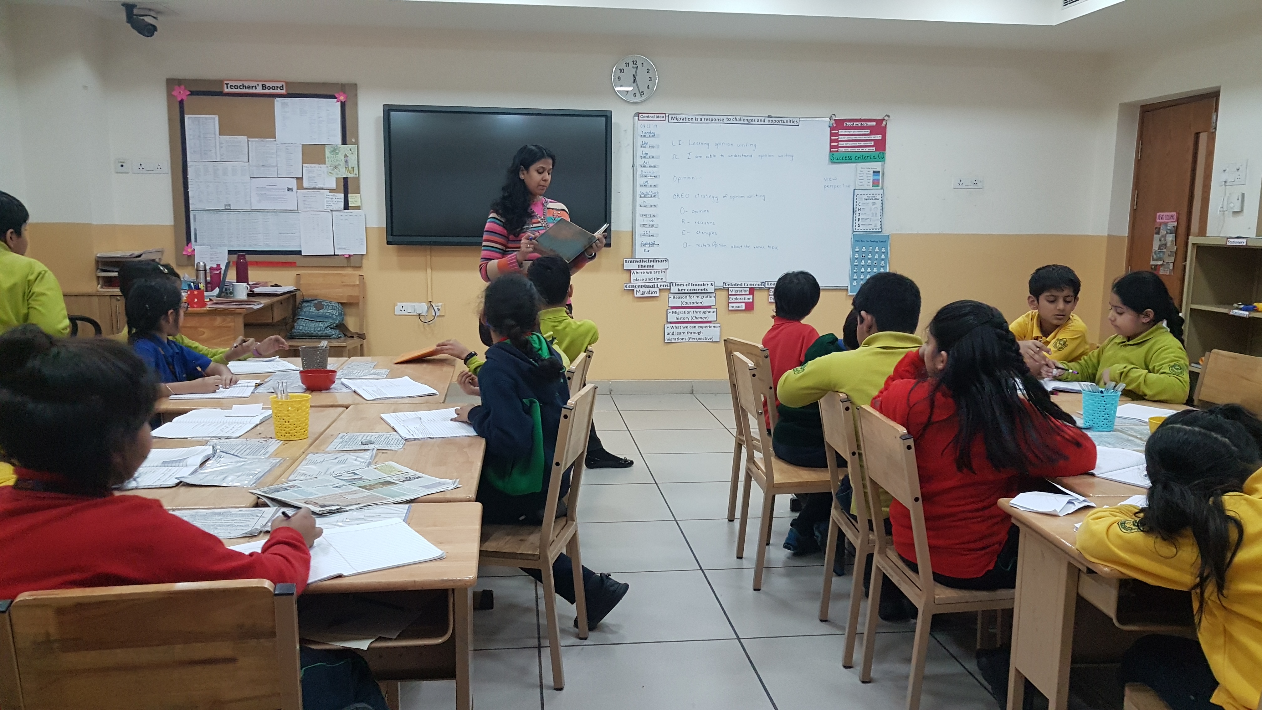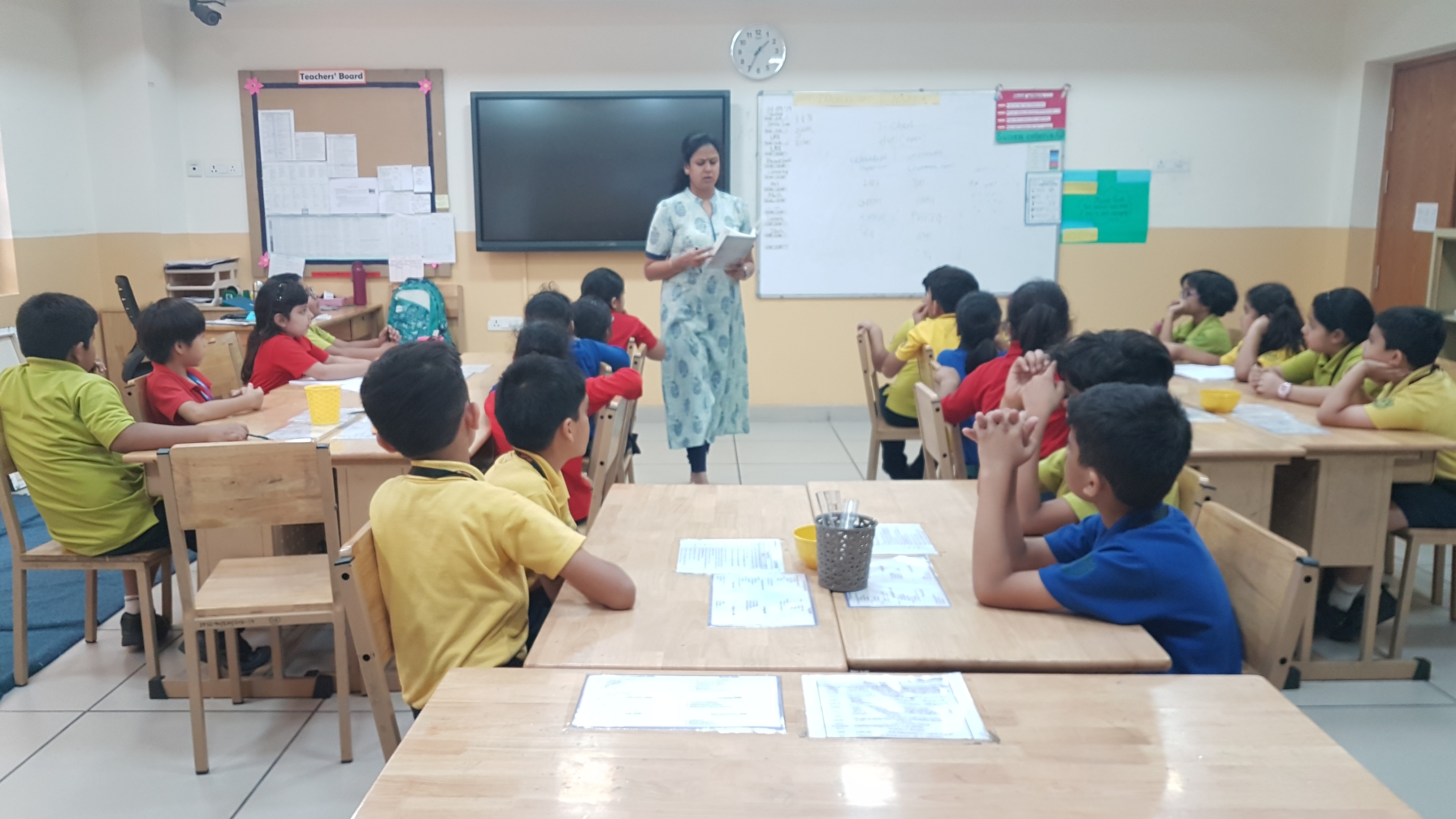 During their Hindi lessons based on the migration unit, students viewed a video ‘आग वाली मछली’. They also attempted a ‘listen and tell’ activity which helped them to make meaningful connections. A read aloud story session, ‘रंगीन पक्षी’ helped them to enhance their reading and comprehension skills. Students displayed their thinking and self-management capabilities by working in groups.