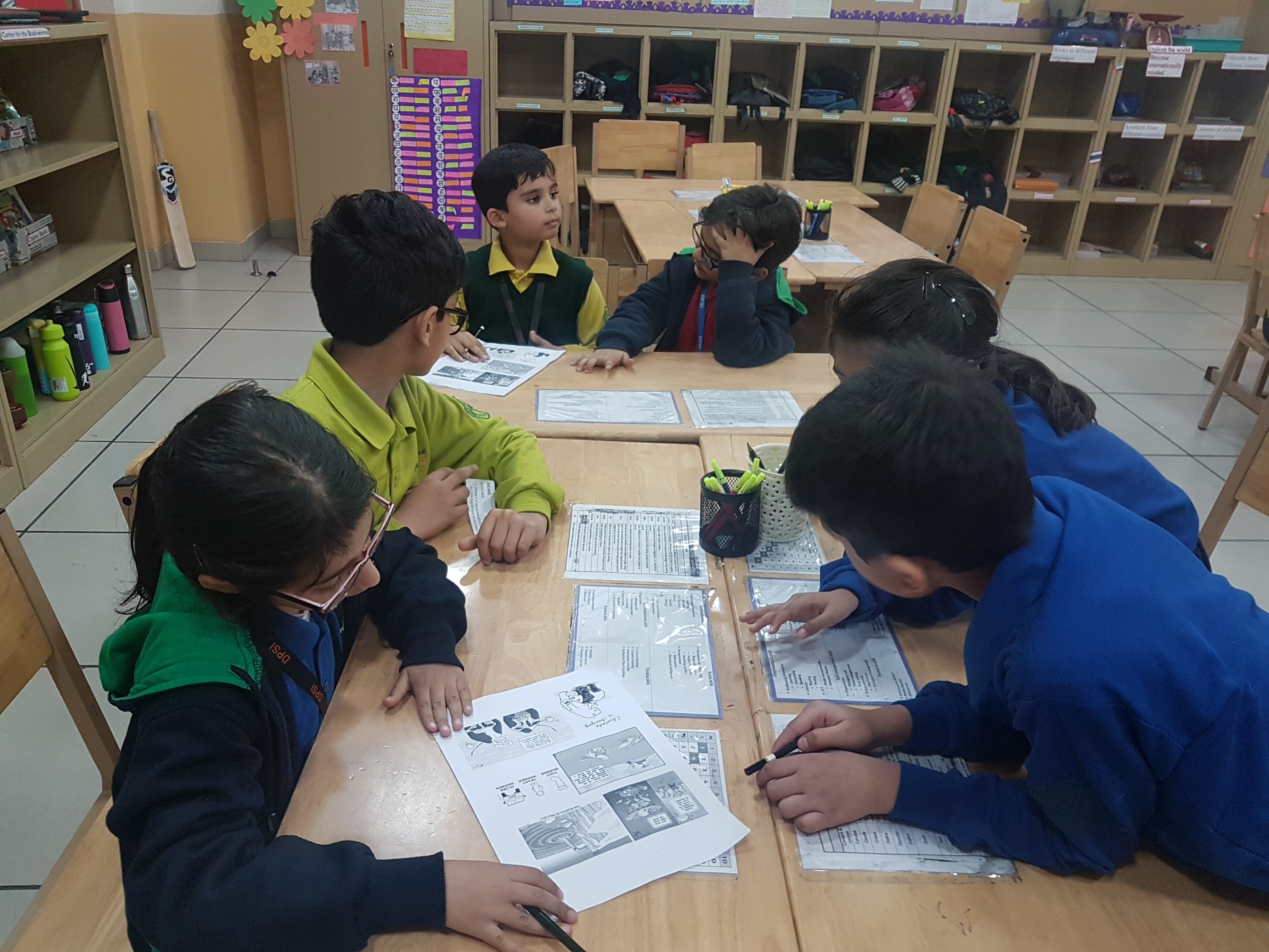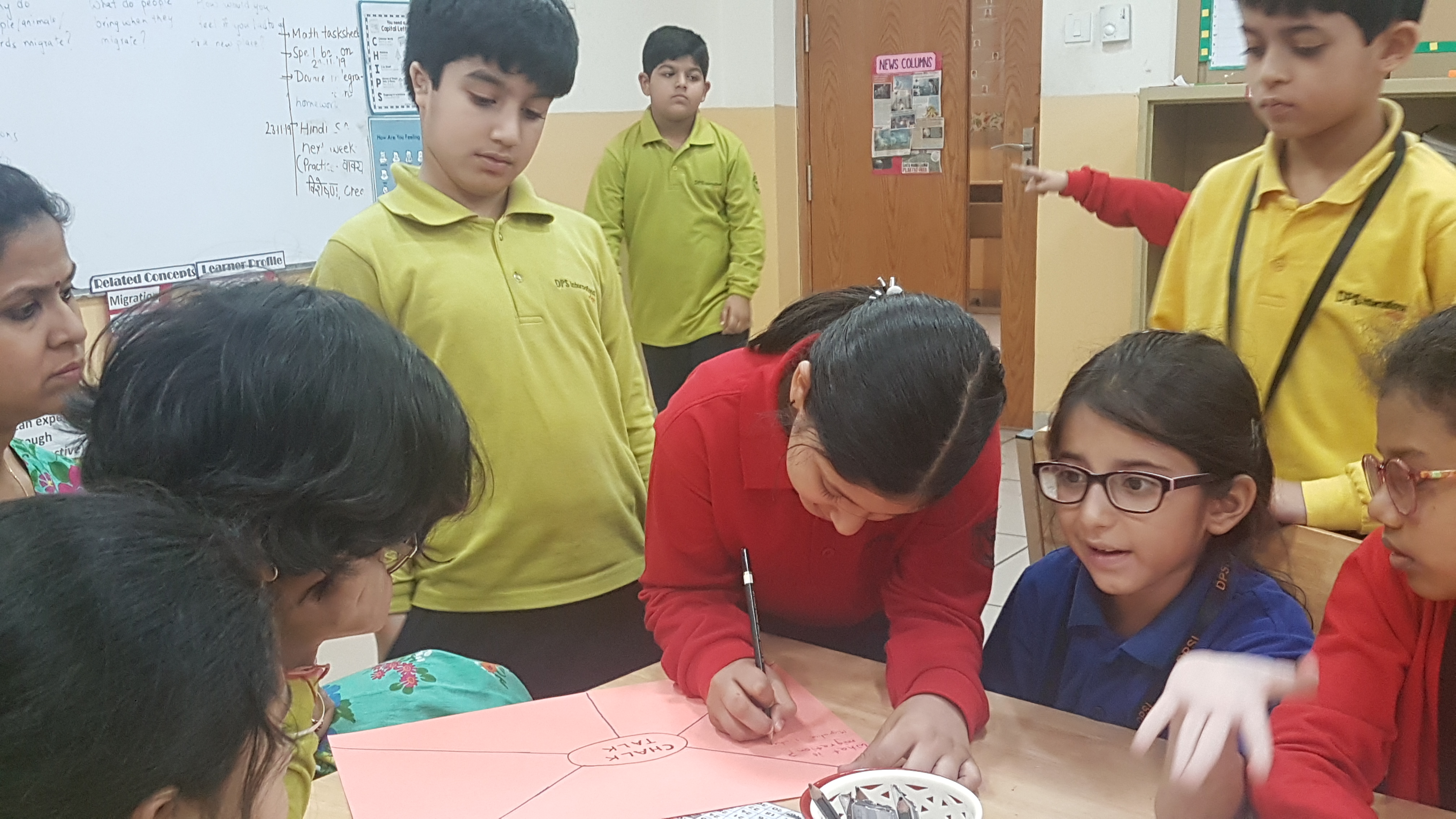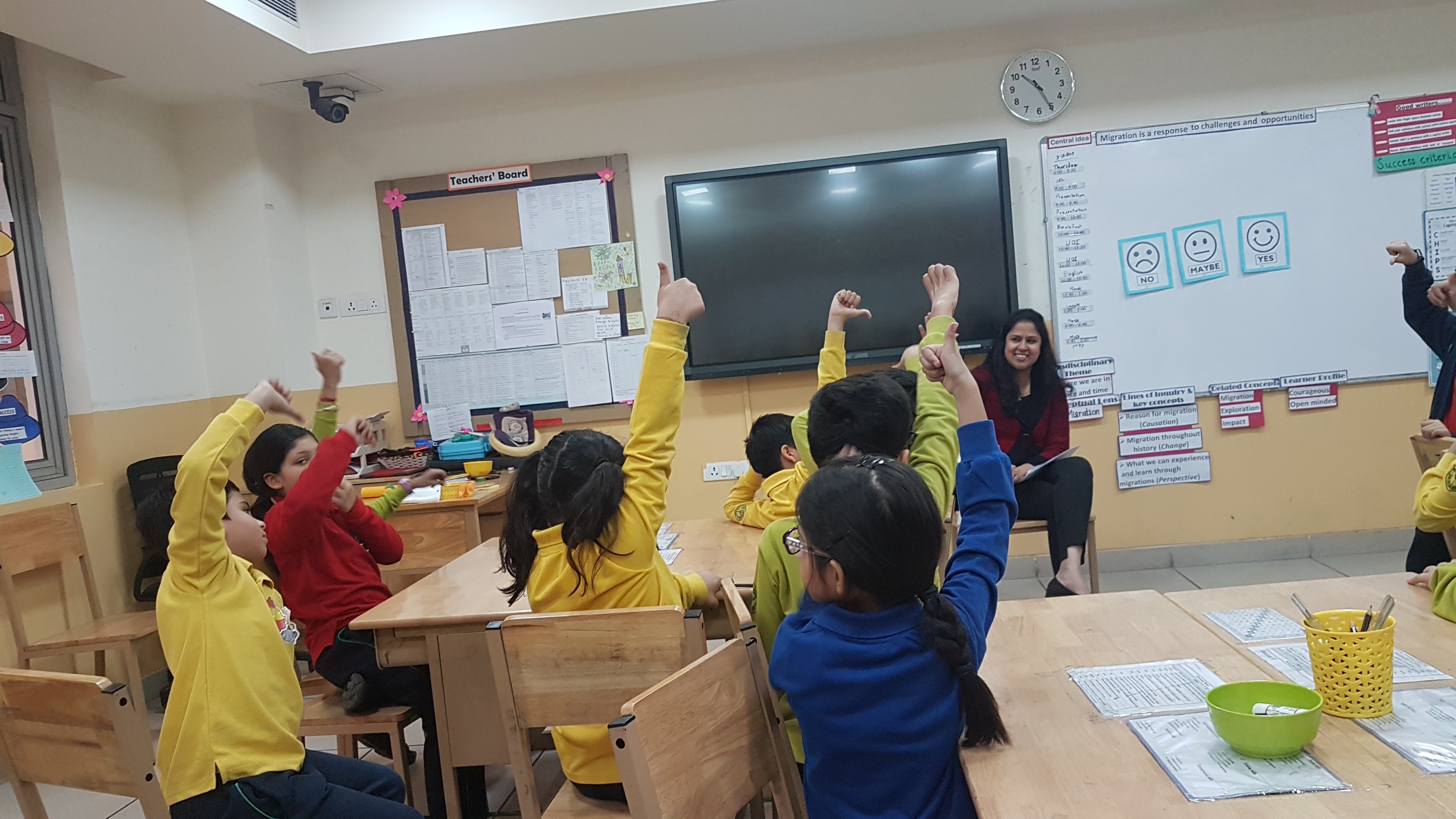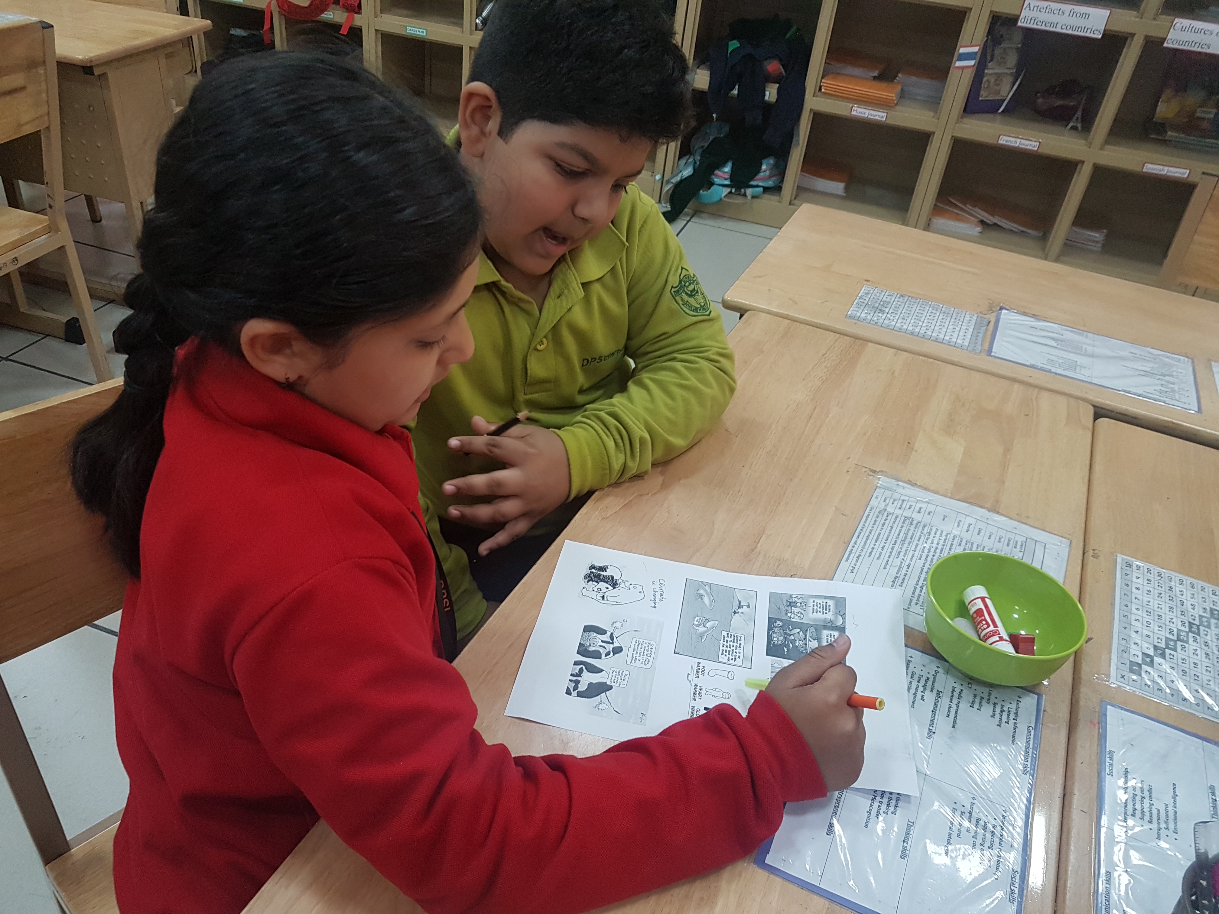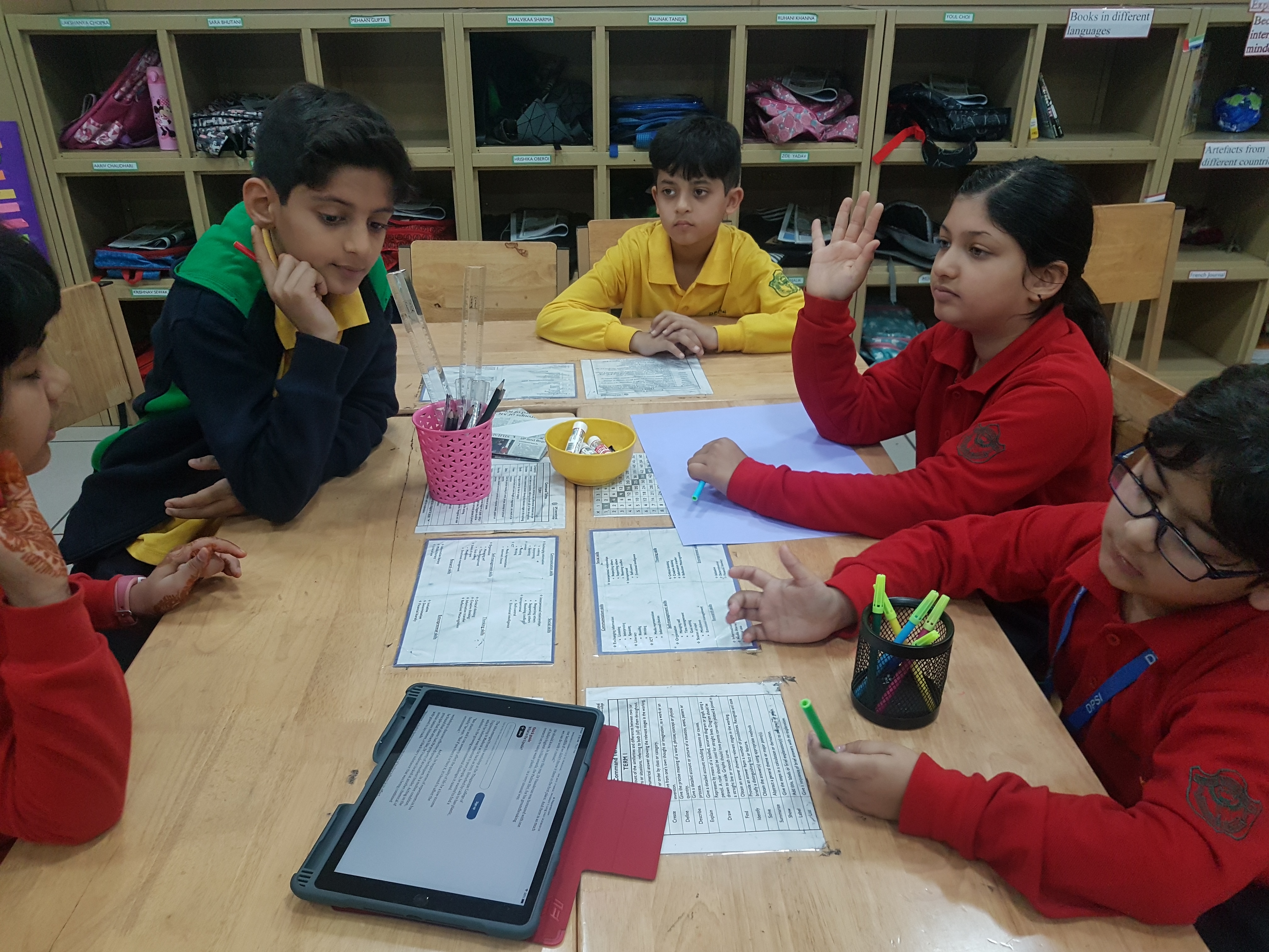 During their Hindi lessons based on the migration unit, students viewed a video ‘आग वाली मछली’. They also attempted a ‘listen and tell’ activity which helped them to make meaningful connections. A read aloud story session, ‘रंगीन पक्षी’ helped them to enhance their reading and comprehension skills. Students displayed their thinking and self-management capabilities by working in groups.