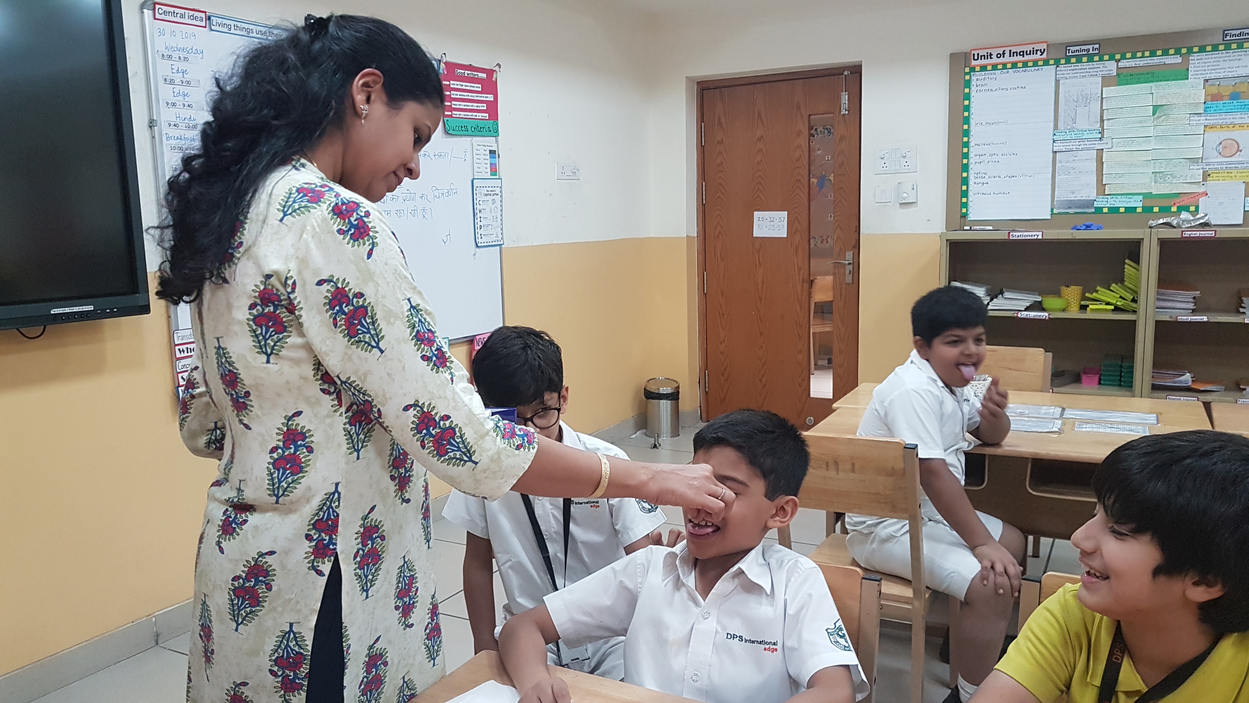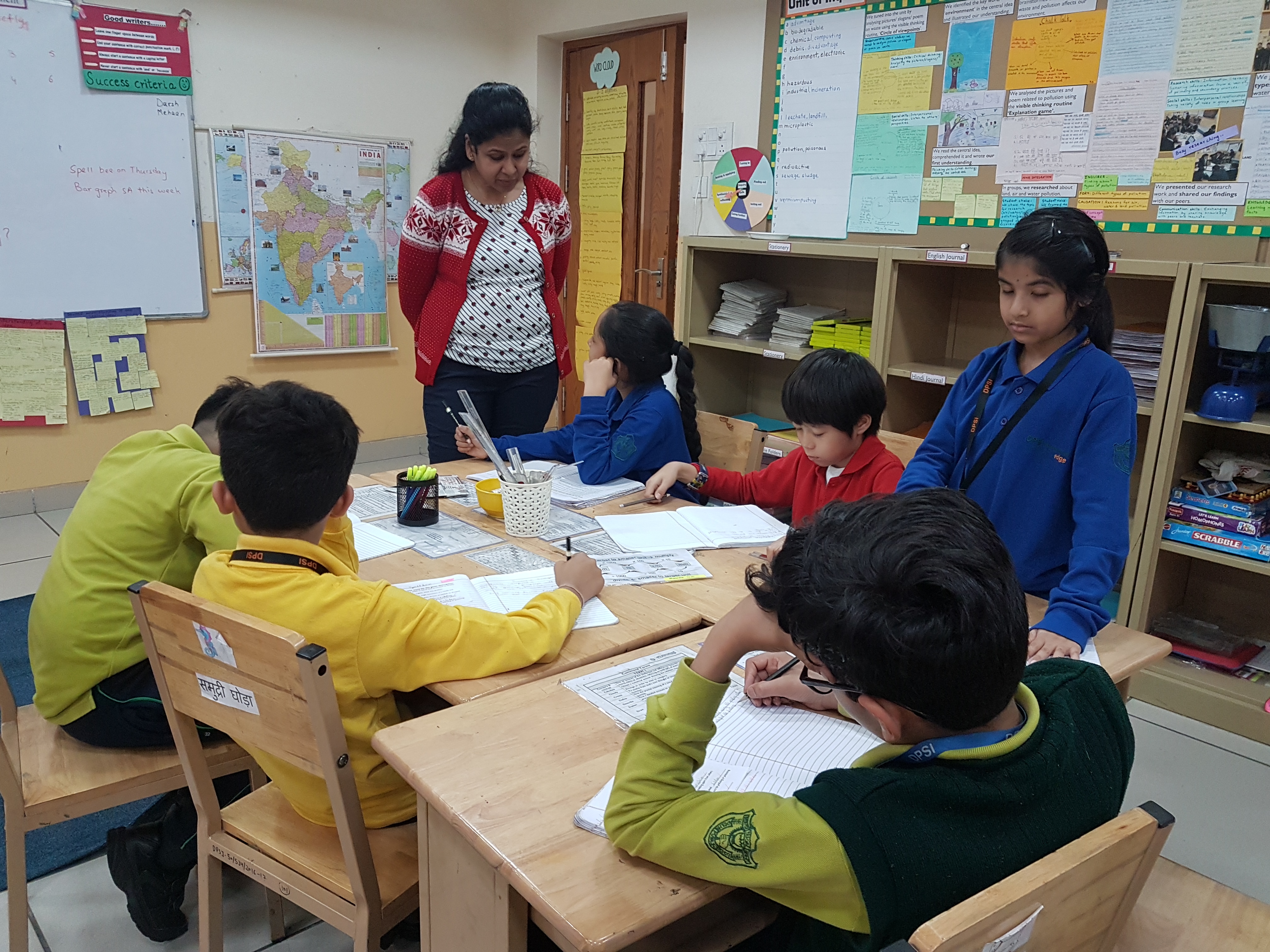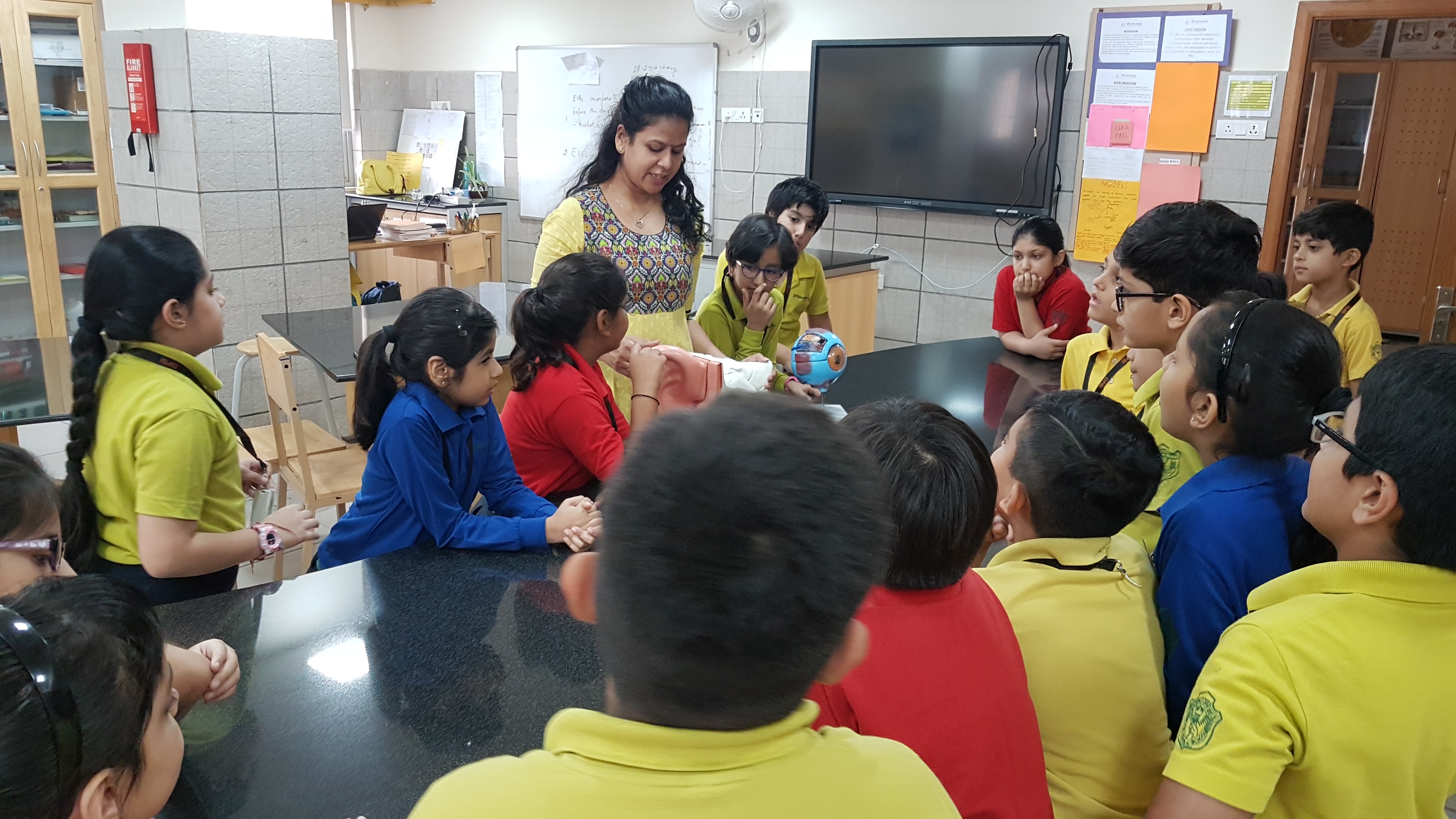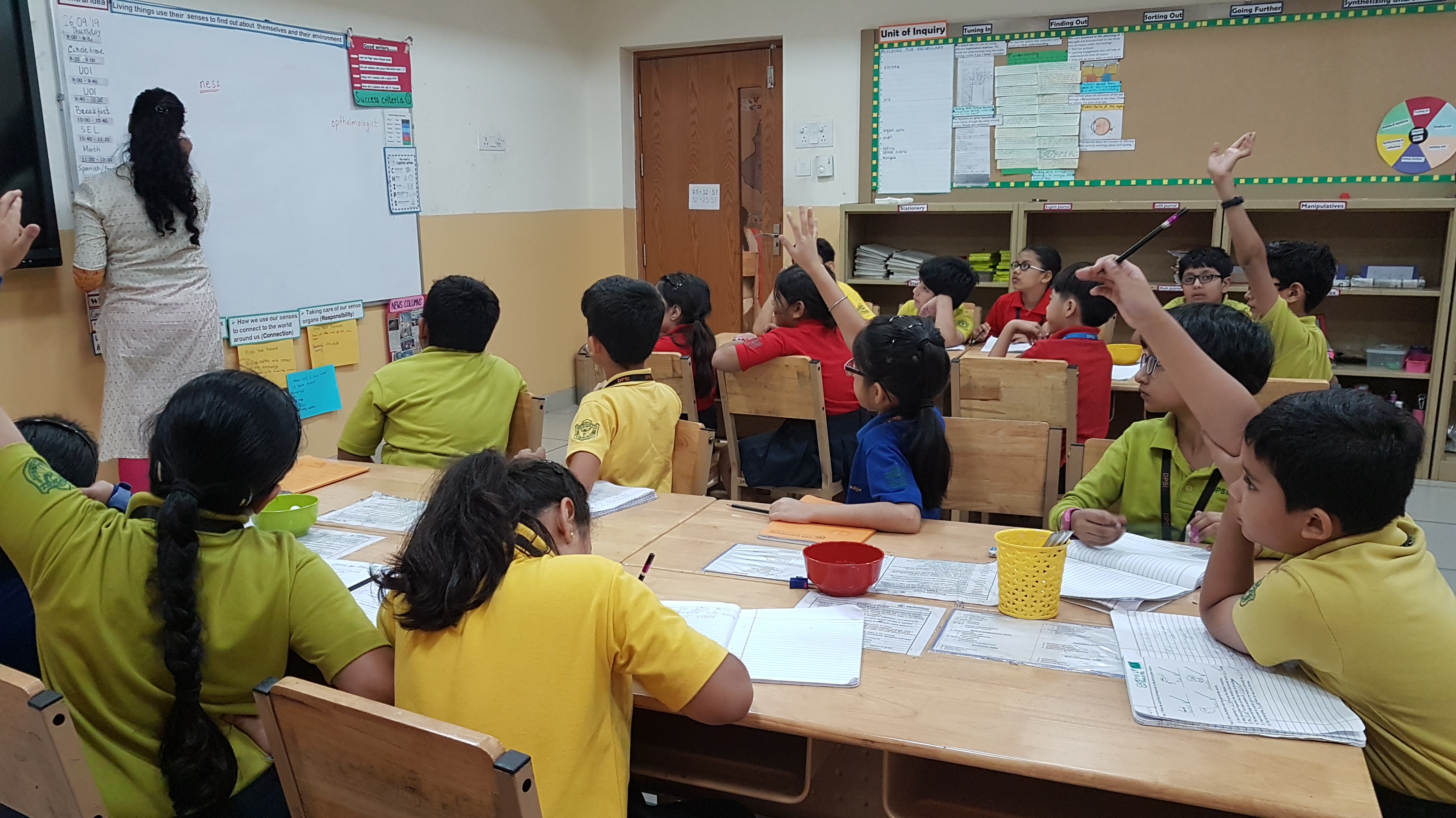 In their Hindi lesson students presented prior knowledge on sense organs through role play and a visual thinking routine ‘Think-pair-share’. They enhanced their communication skills and visual imagery by listening to and reading a poem. They picked up naming words from a given picture and revisited grammar concepts वचन (singular-plural).