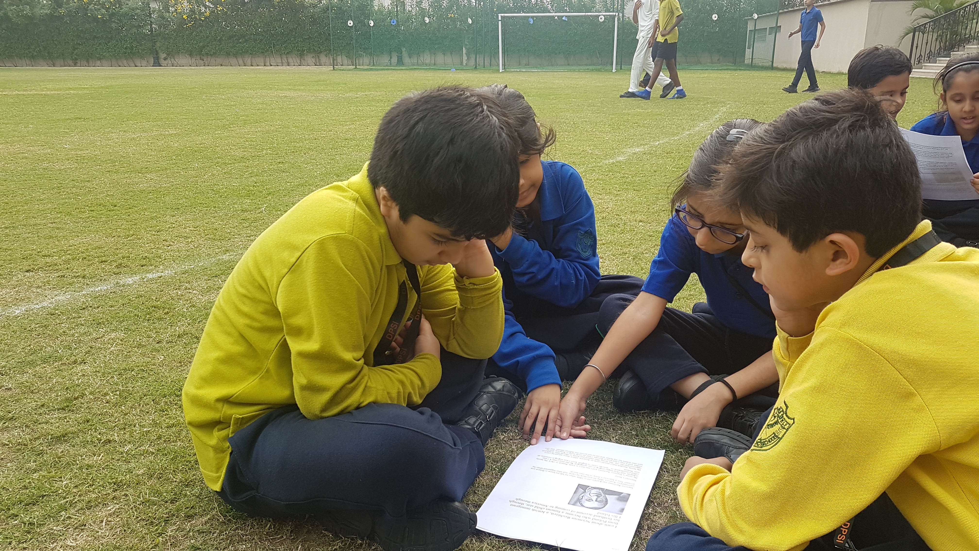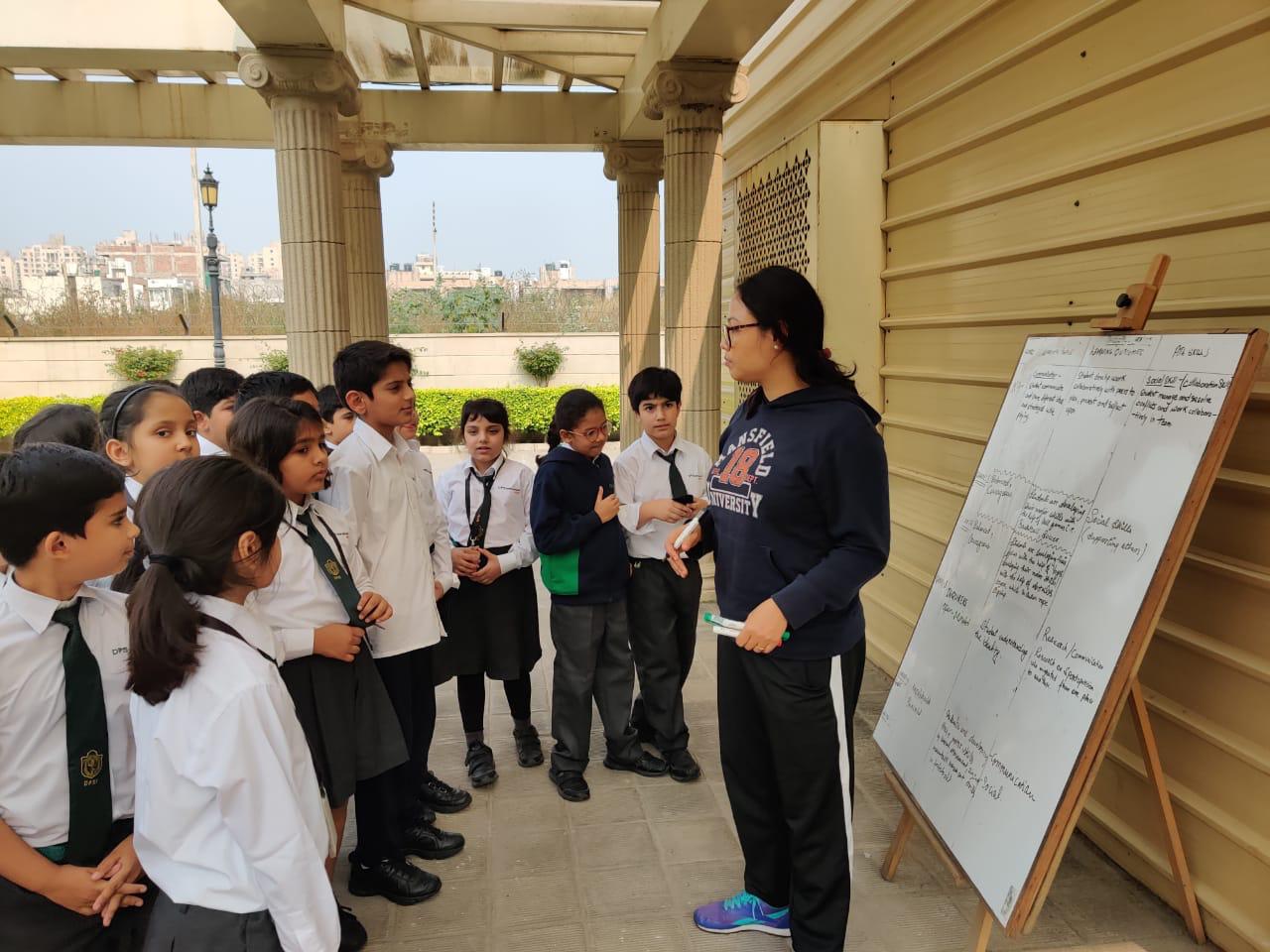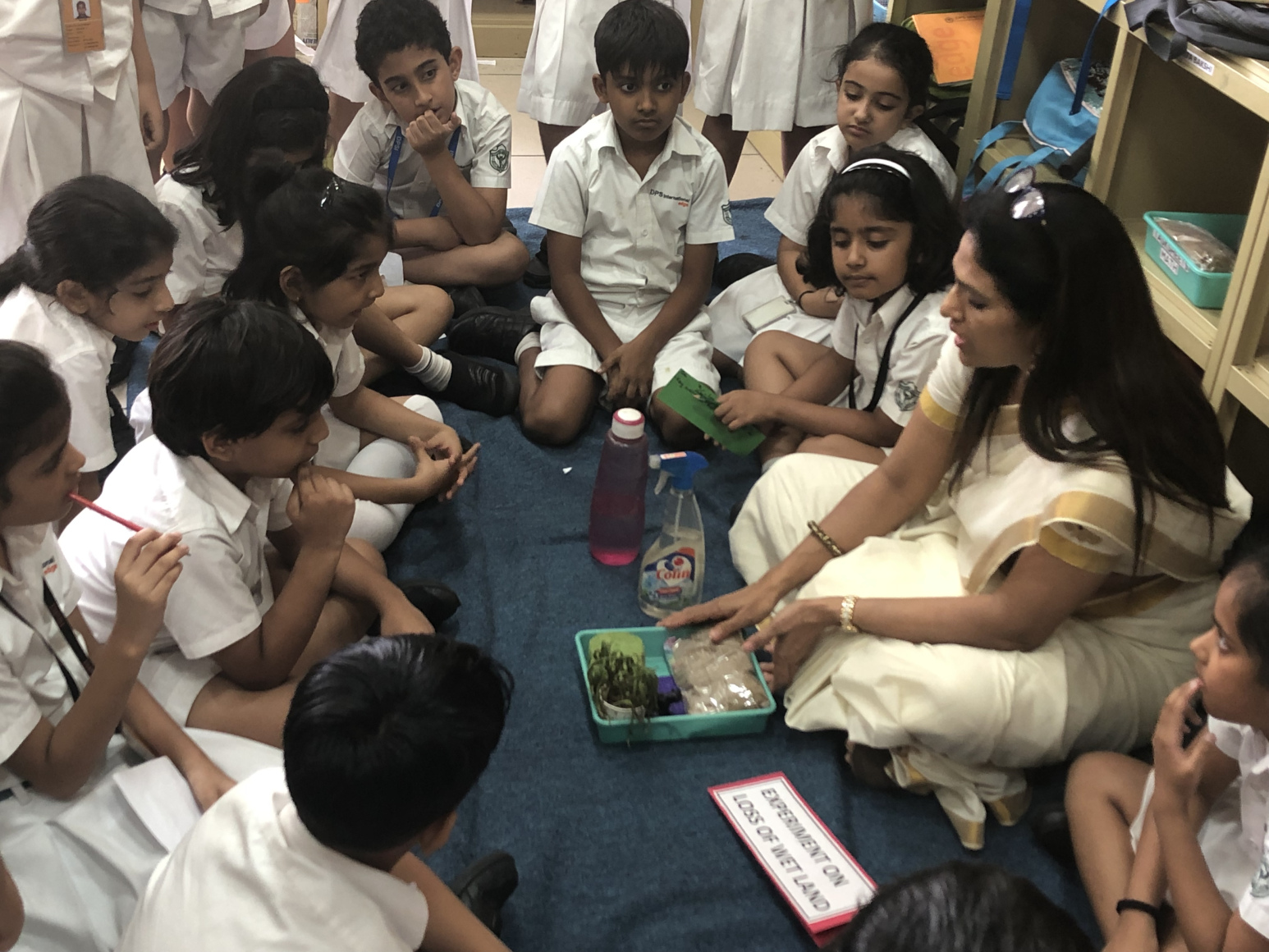 In their Hindi lessons, students watched news segments on water pollution, ’तेरा कचरा तुझको अर्पण’ and attempted a ‘Listen and Tell’ activity. They celebrated ‘Hindi Diwas’ based on the theme ‘Sustainability’ where students initiated a movement to save paper and will take the initiative to audit wastage and recycling throughout the year. They also read the story ‘मिनामाटा की कथा’ (Minamata kee Katha) and enhanced their reading skills. Later, a ‘Chalk and Talk’ activity was performed where questions were framed and discussed with classmates.