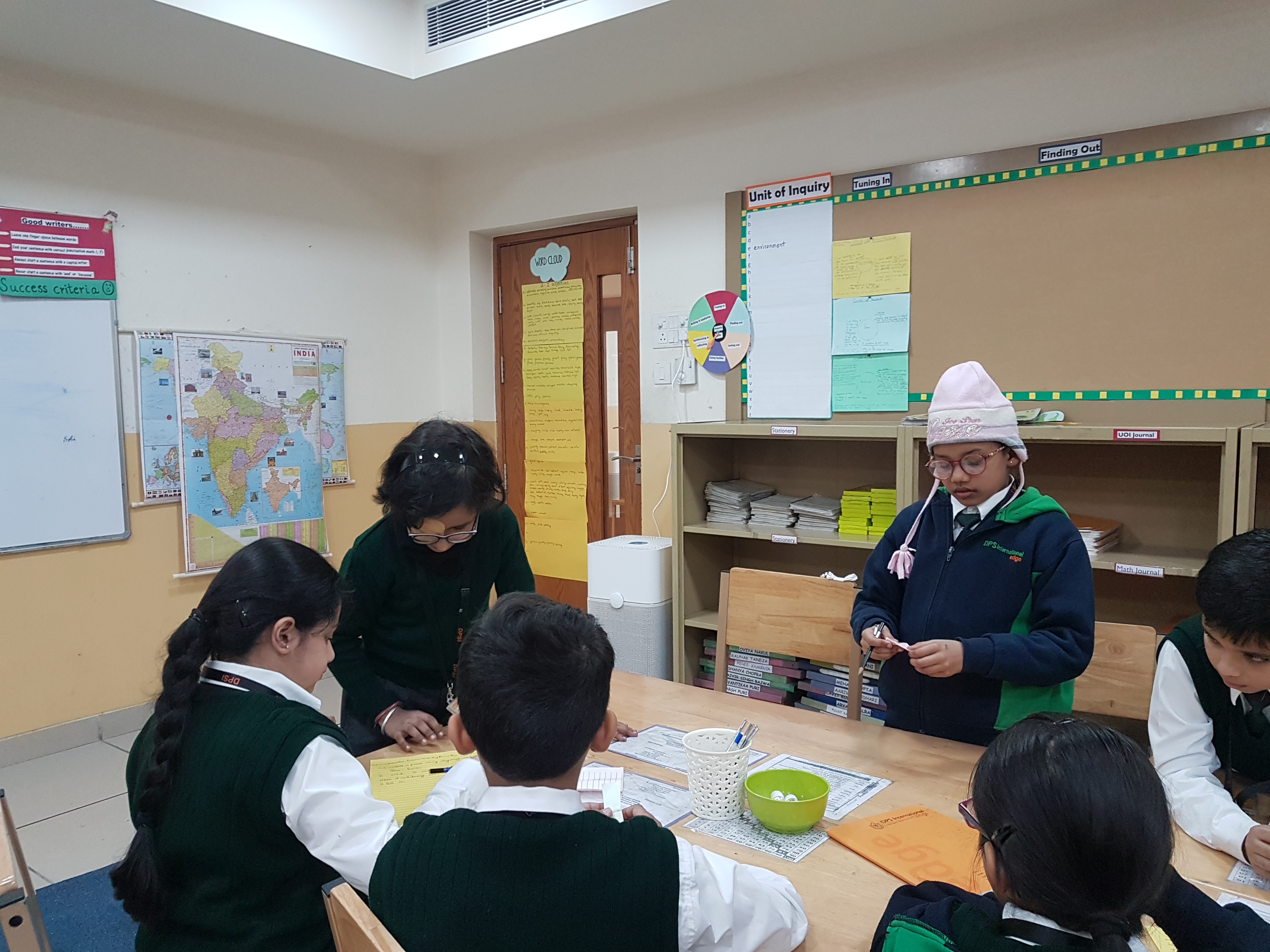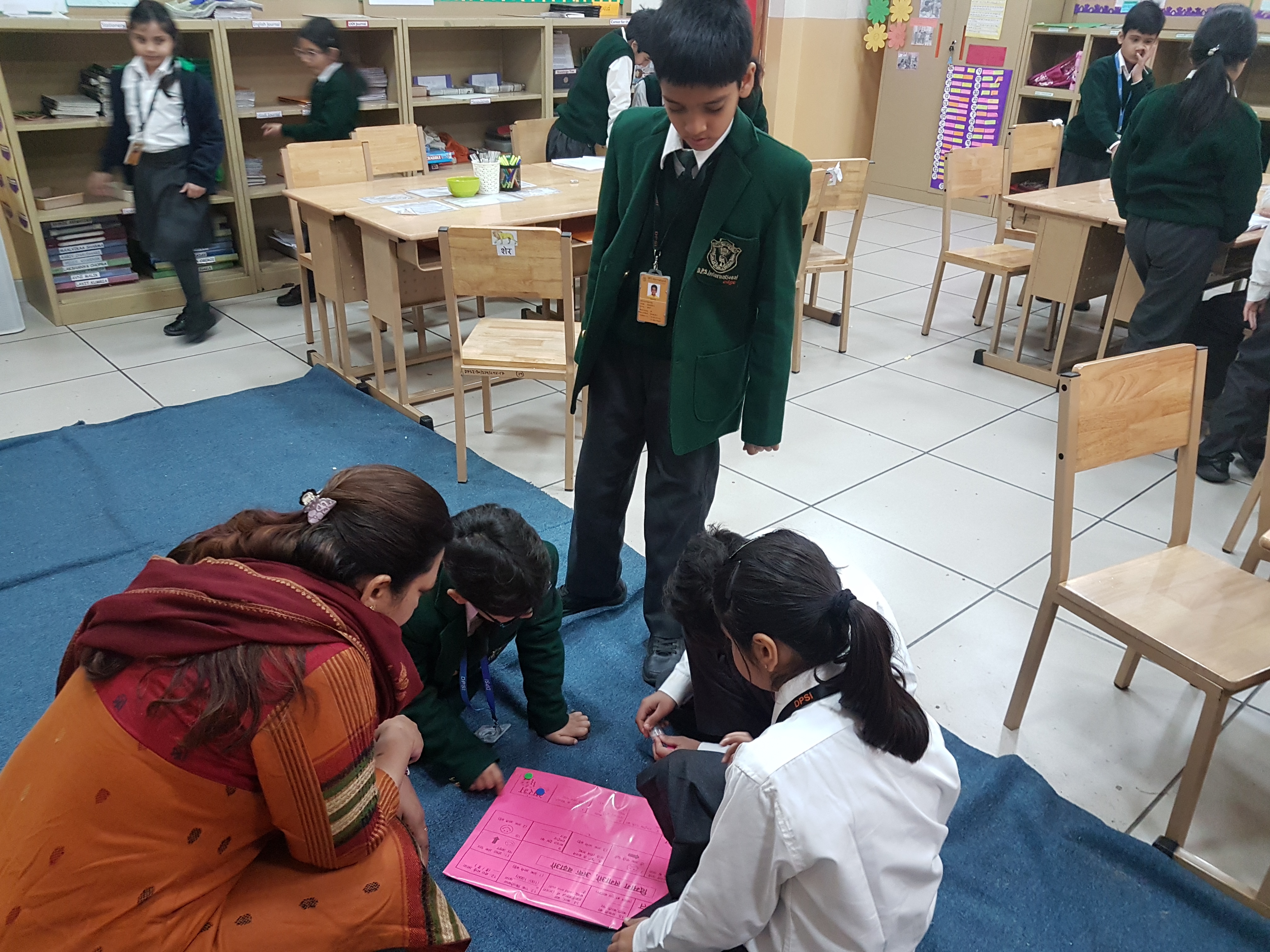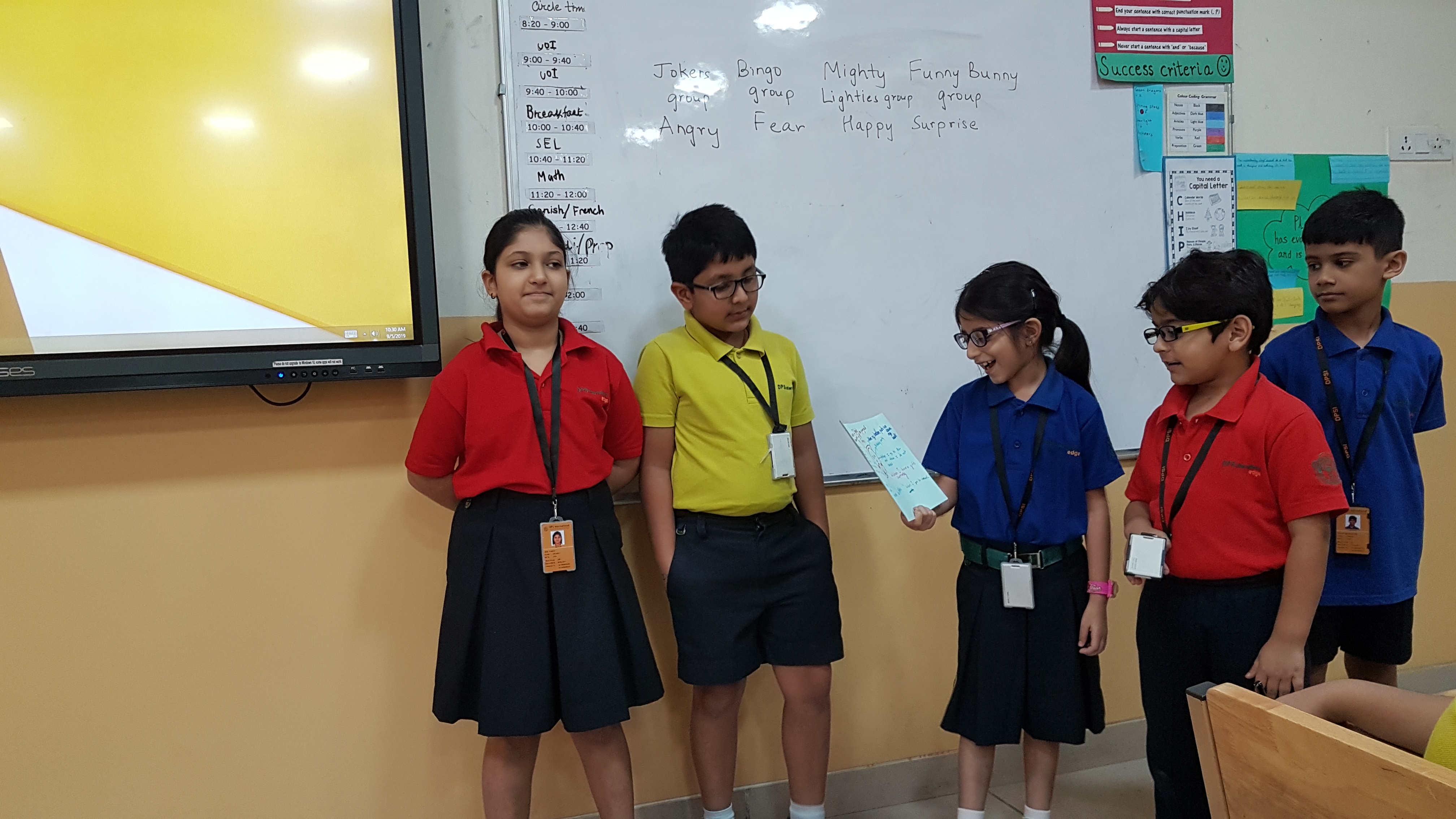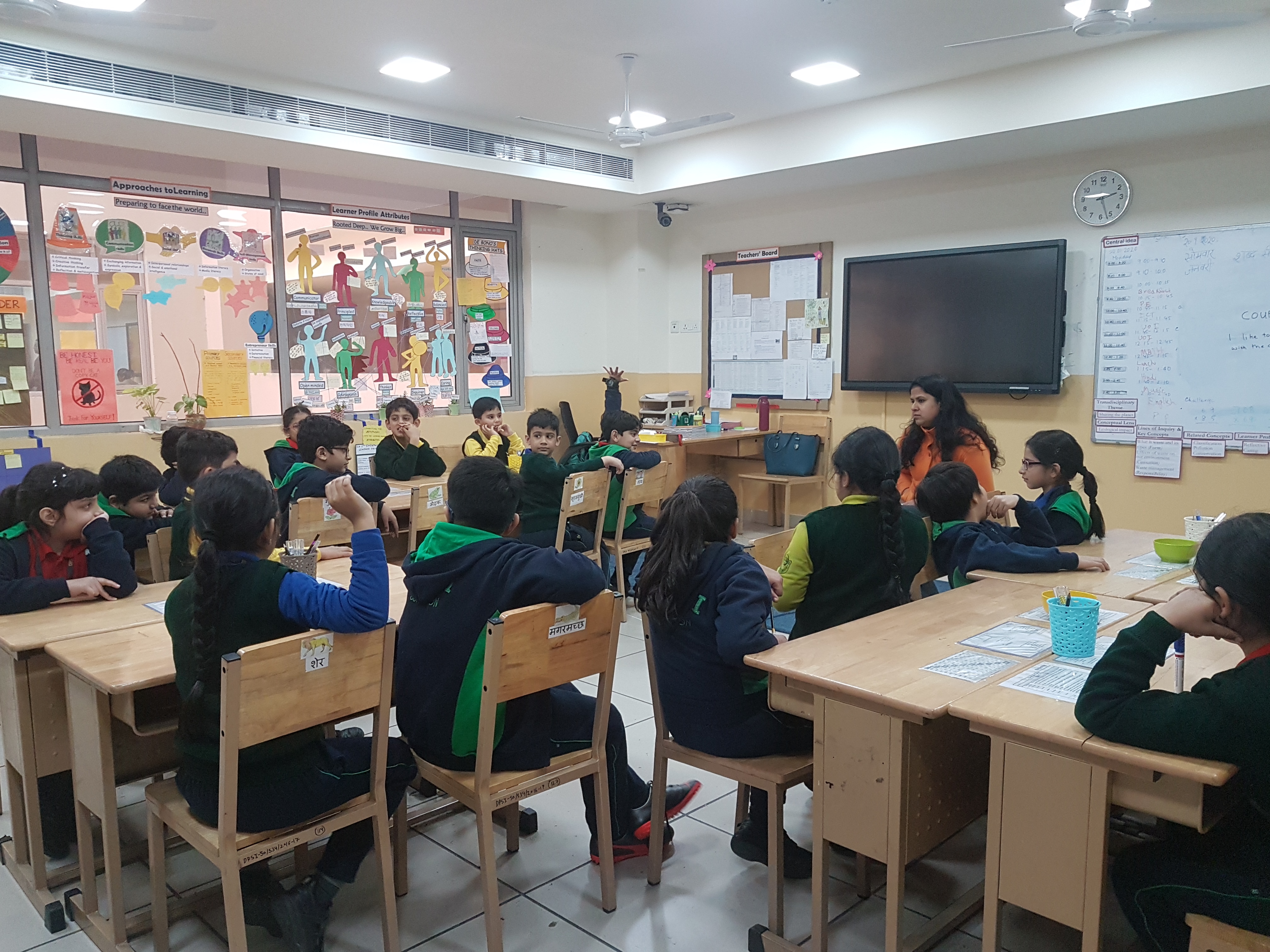 Students voiced their opinion during a group discussion where they shared what they would like to add, change or improve in their French language room. Taking ownership of their environment, the class set up their reading and games corner. They displayed their understanding of academic integrity in the form of a poster and also labelled various classroom objects. They enthusiastically played games like ‘hopscotch’ and ‘guess the number’ to revise concepts done in the previous term. They reflected on their learning and shared their AHA moments too.