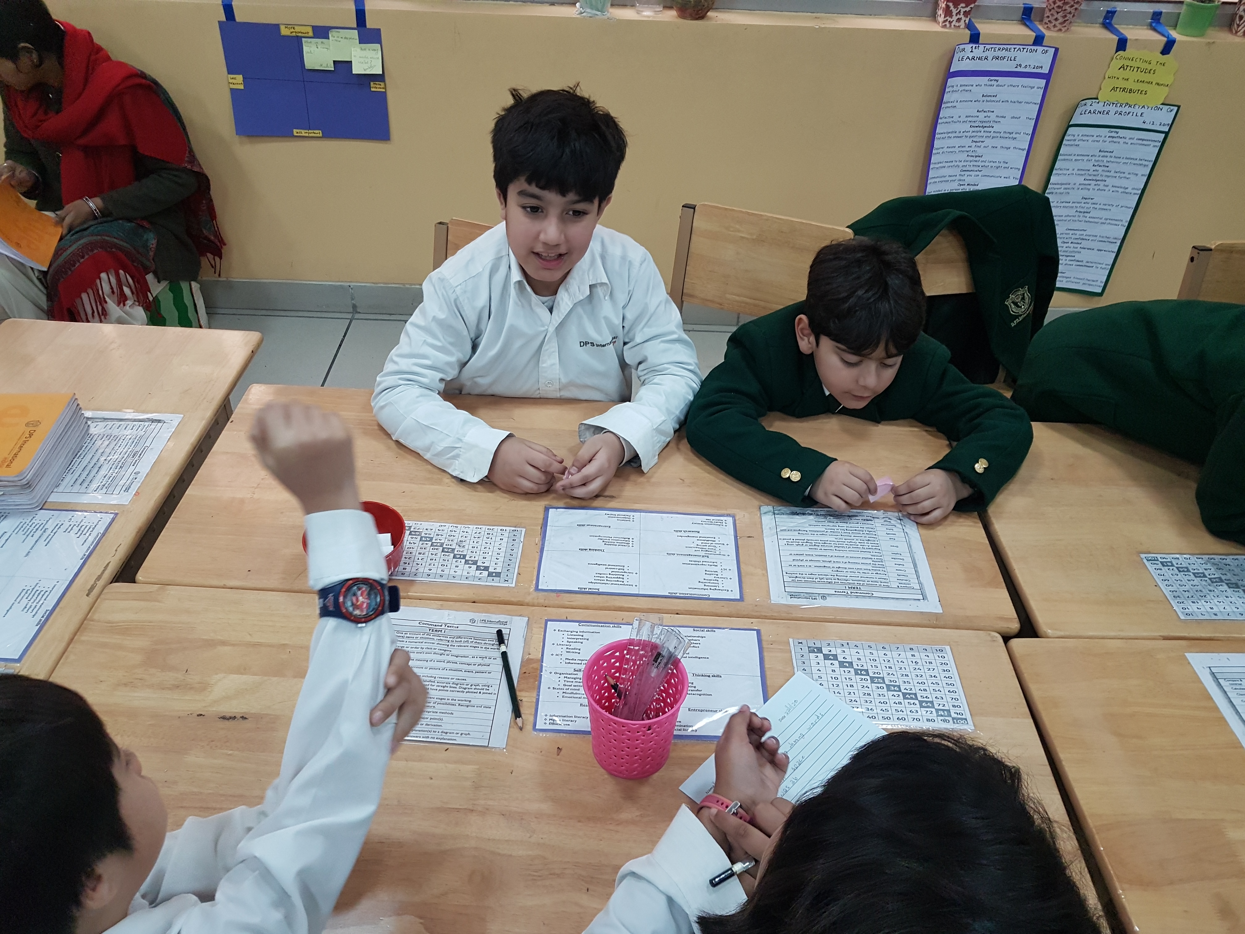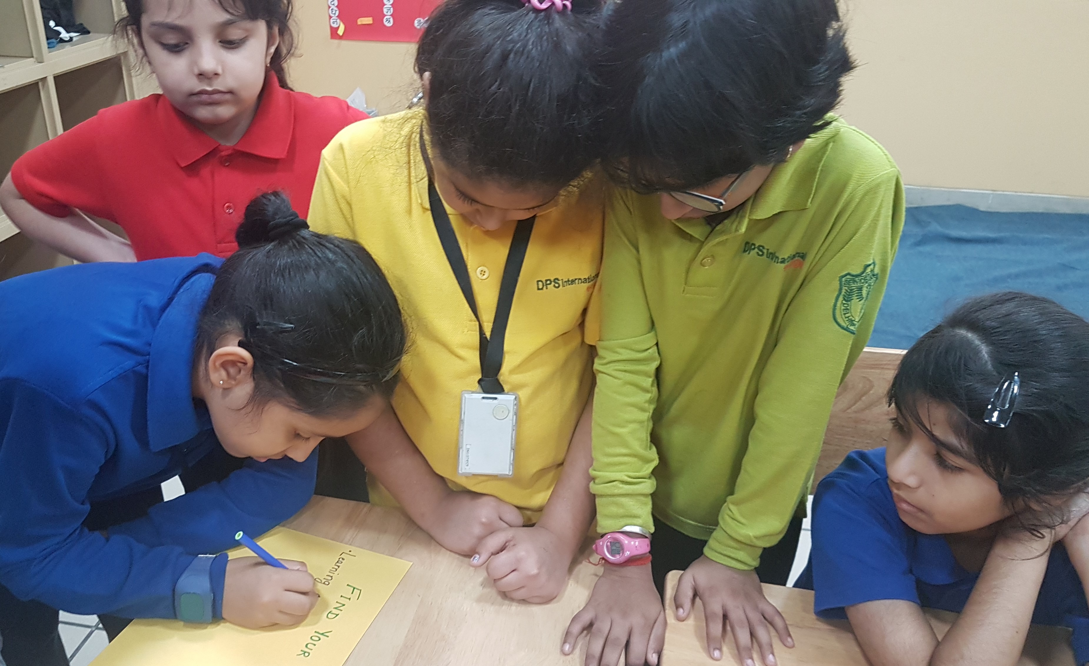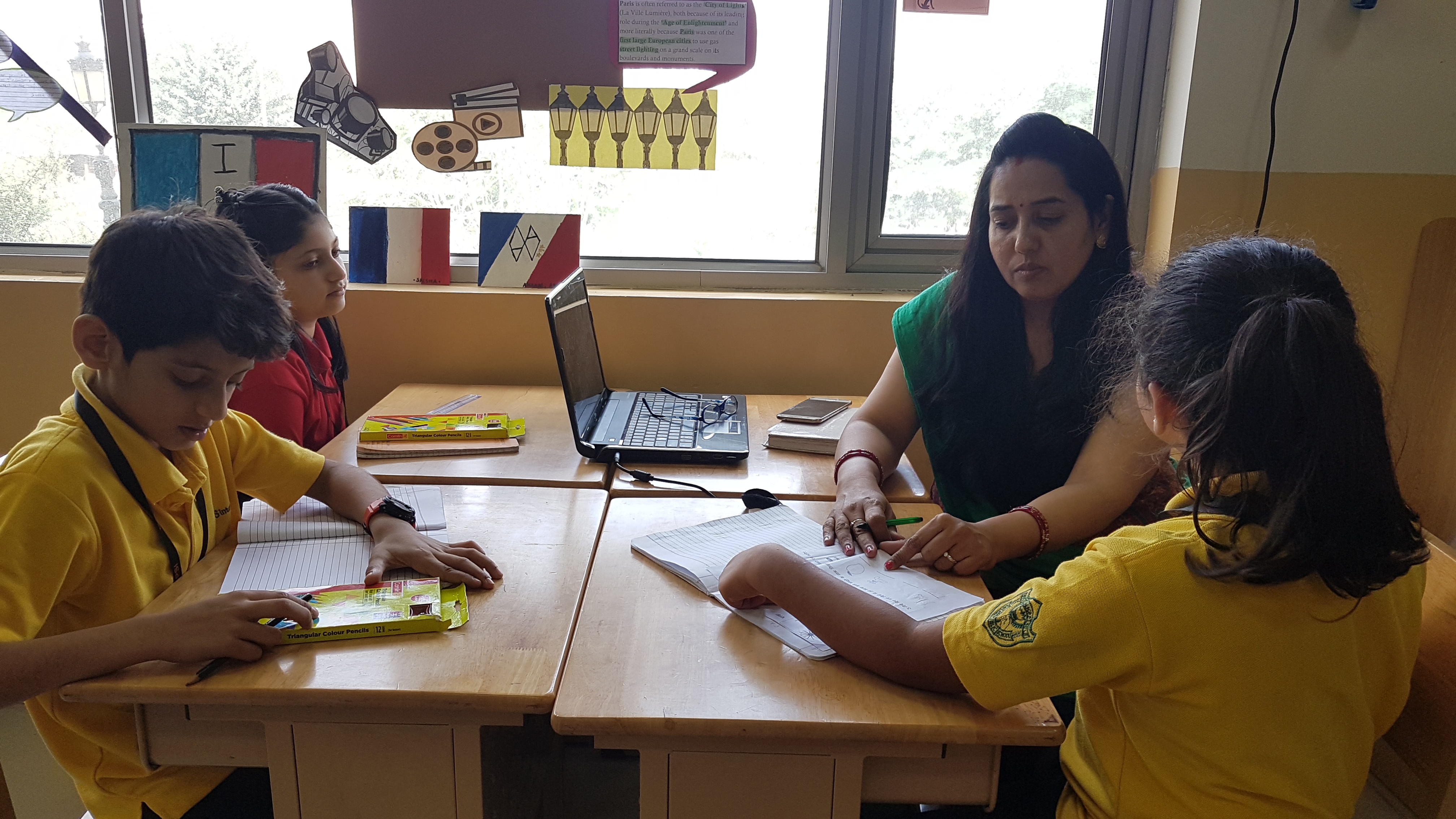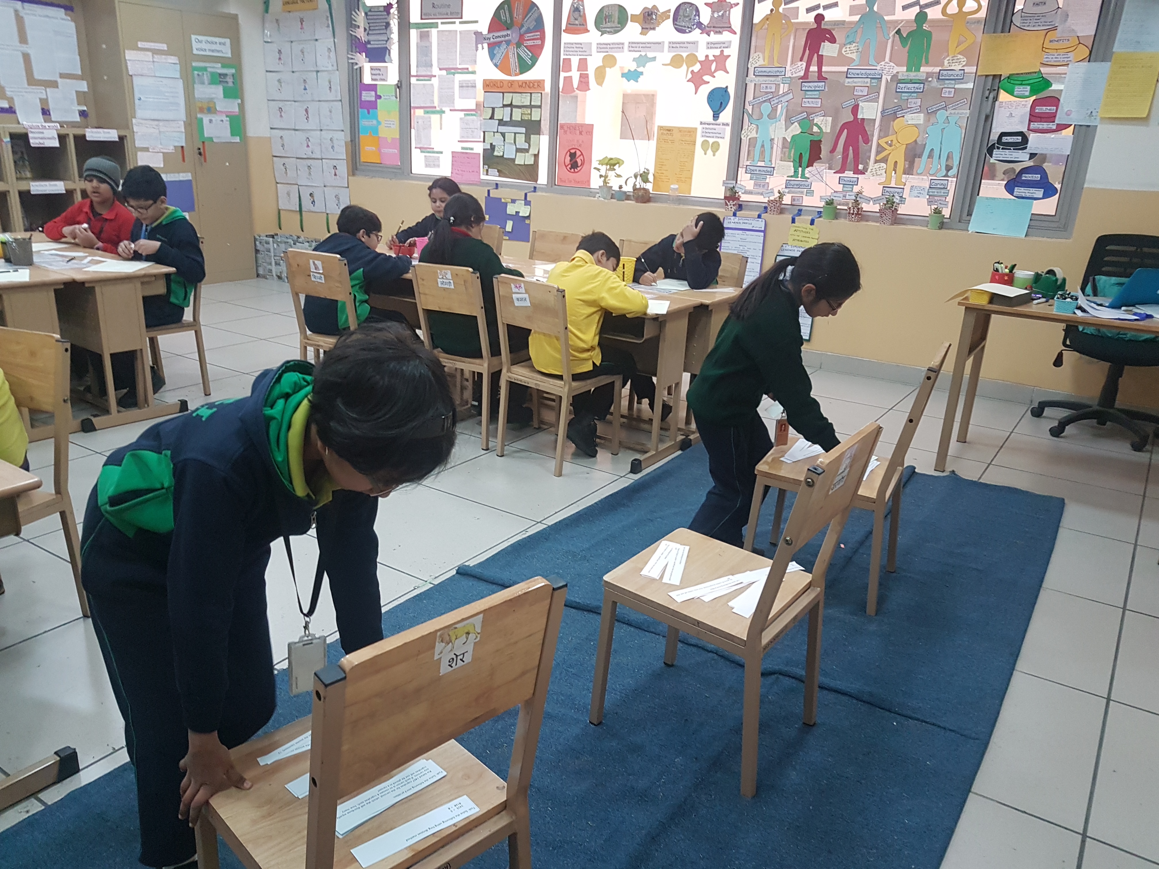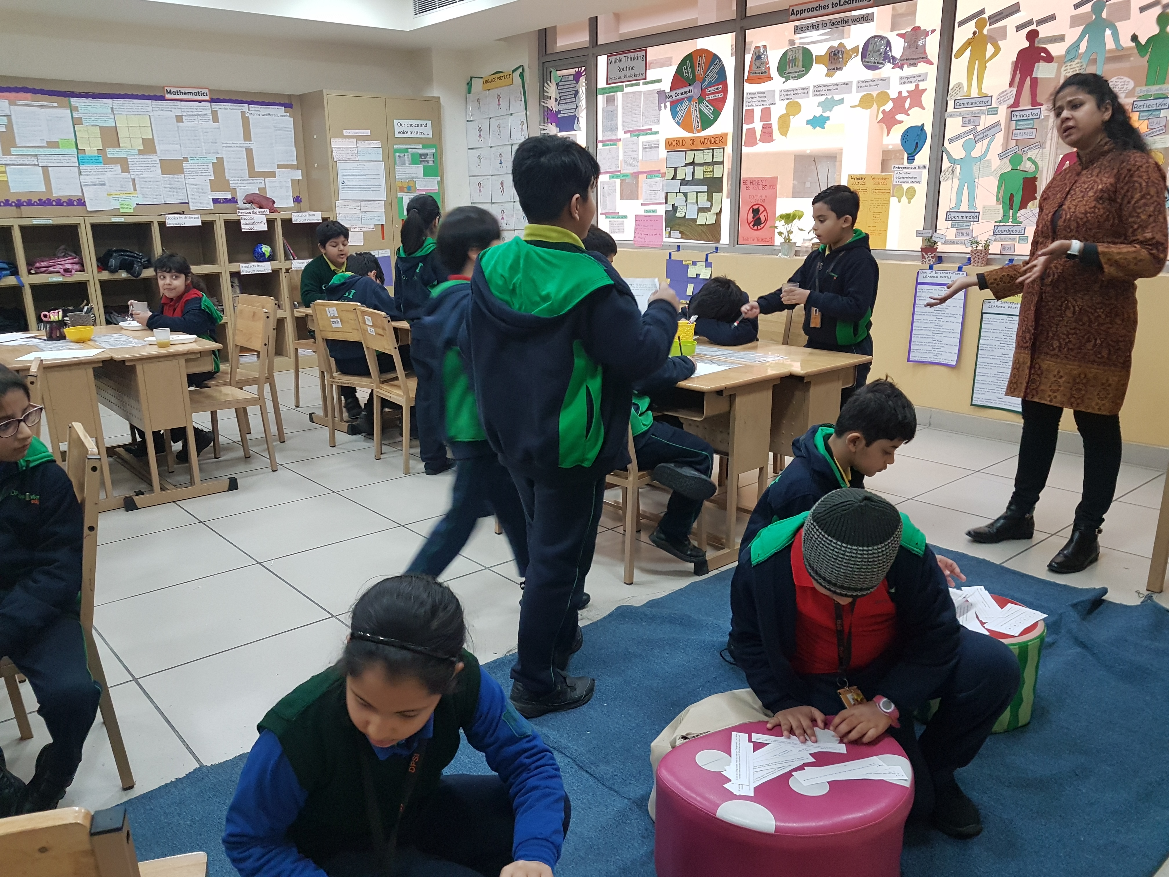 Students voiced their opinion during a group discussion where they shared what they would like to add, change or improve in their French language room. Taking ownership of their environment, the class set up their reading and games corner. They displayed their understanding of academic integrity in the form of a poster and also labelled various classroom objects. They enthusiastically played games like ‘hopscotch’ and ‘guess the number’ to revise concepts done in the previous term. They reflected on their learning and shared their AHA moments too.