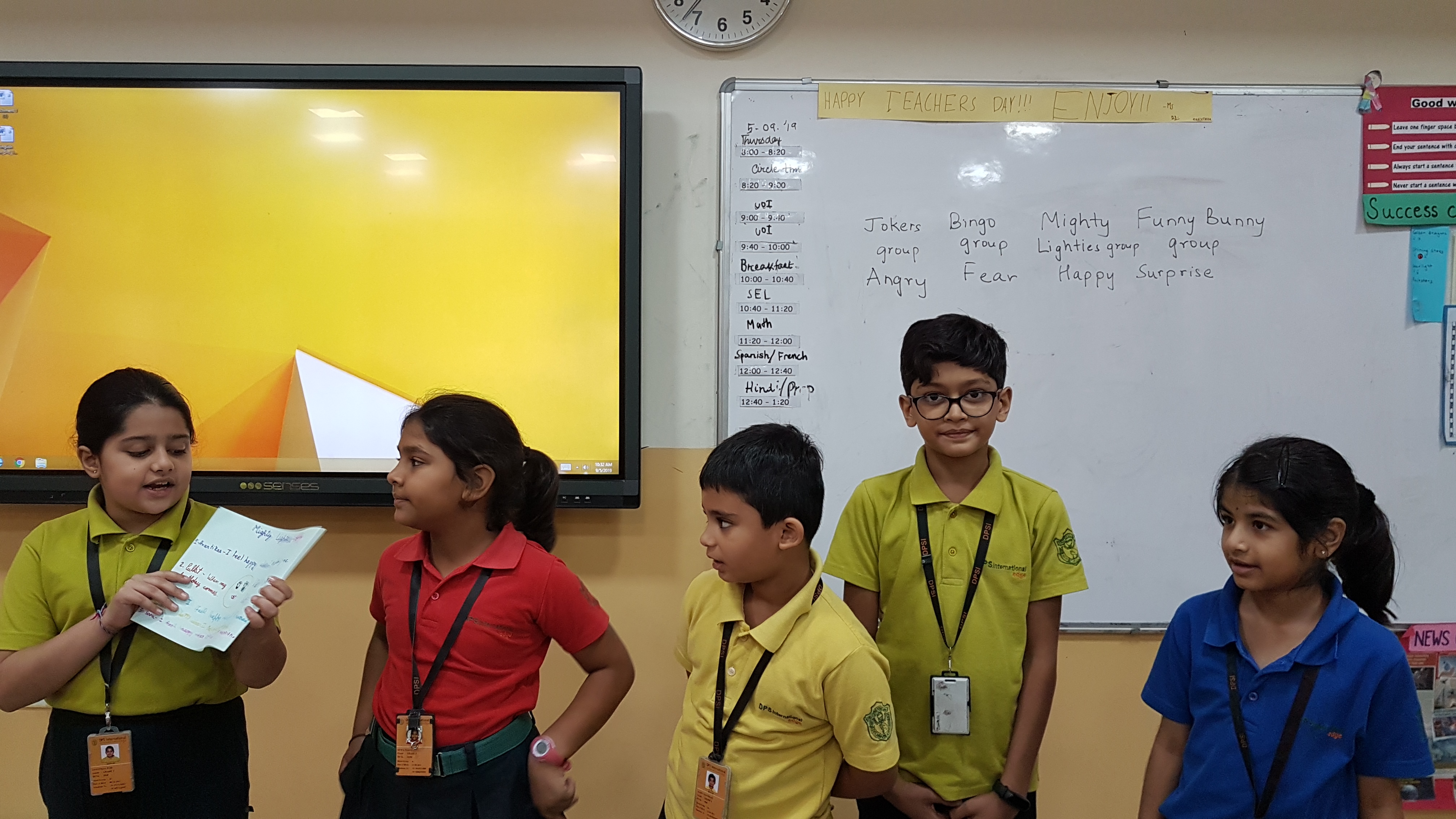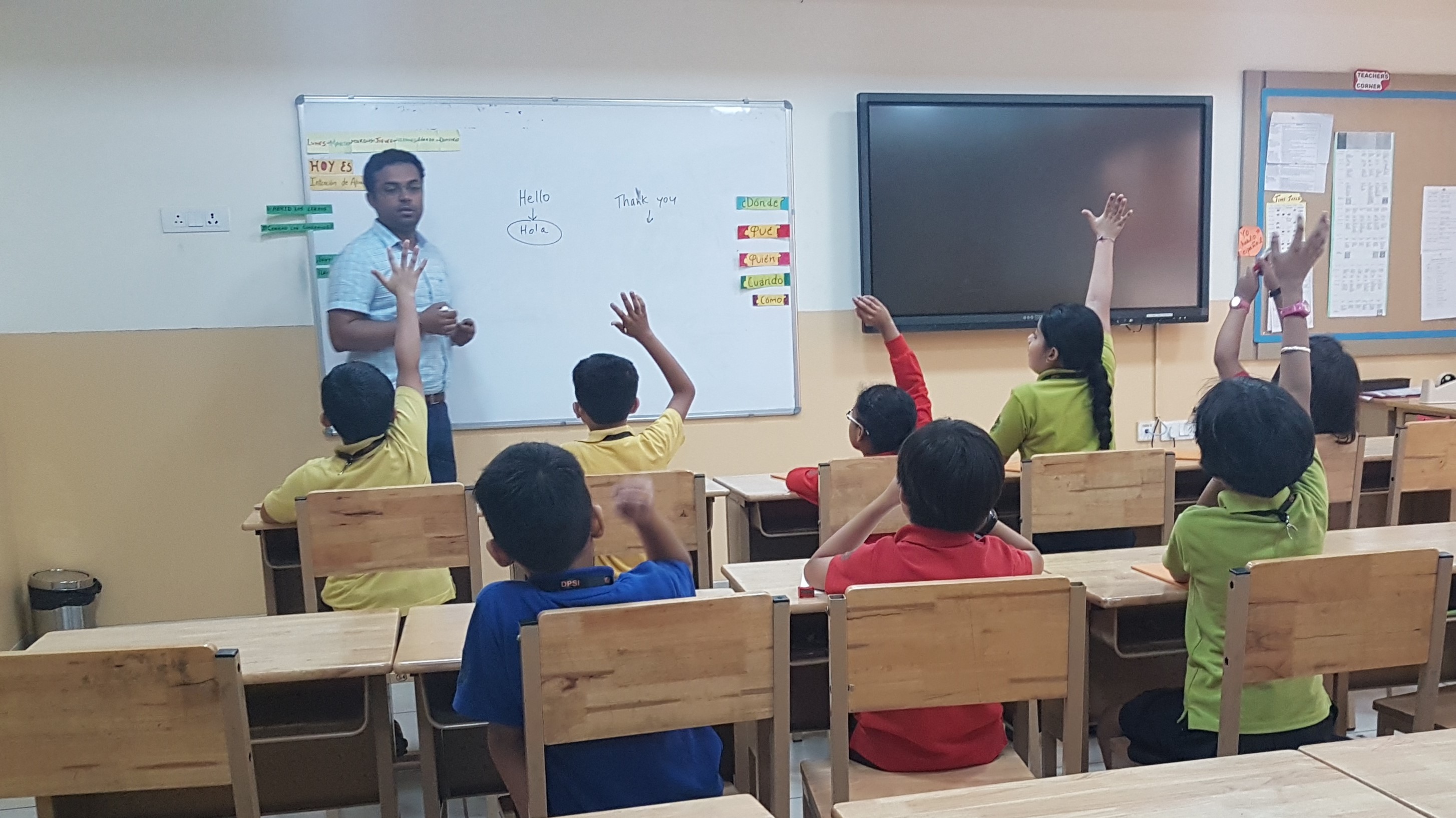 Students learned various phrases for greetings and farewells in Spanish. They became adept at spellings as they were aware of the letters taught to them earlier. They were also asked to spell their own names as well as the names of their peers, which they were able to accomplish confidently. This activity helped them to build their thinking, social and communication skills.