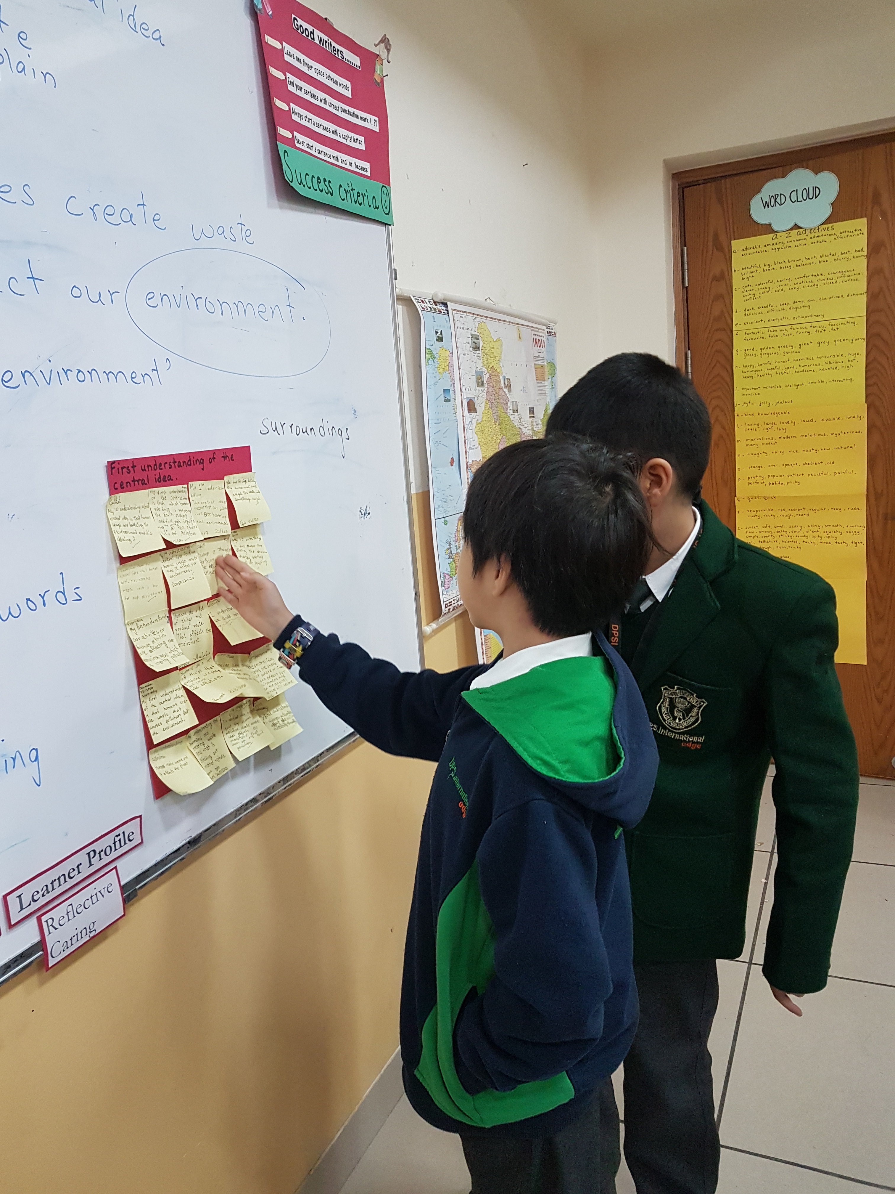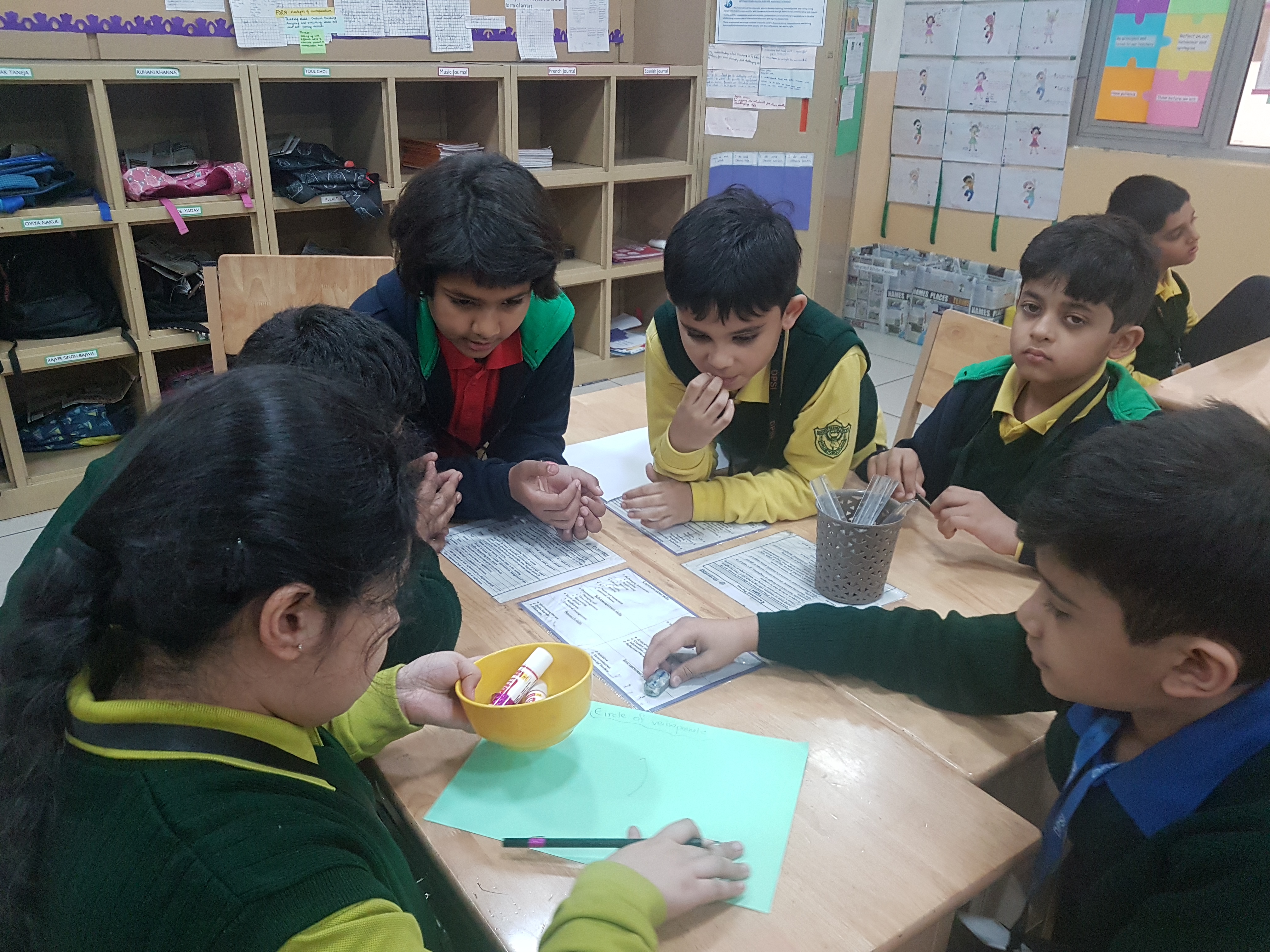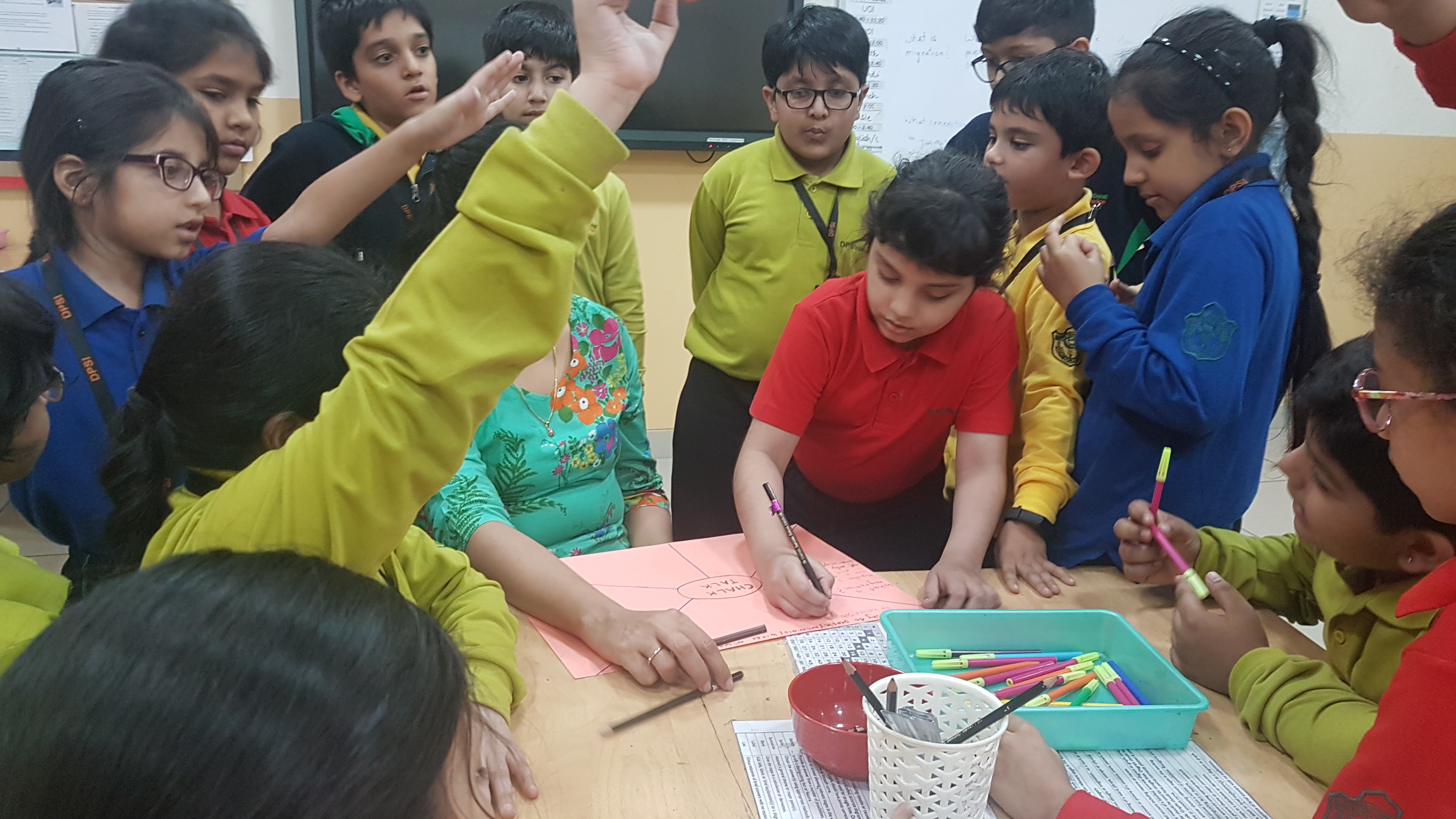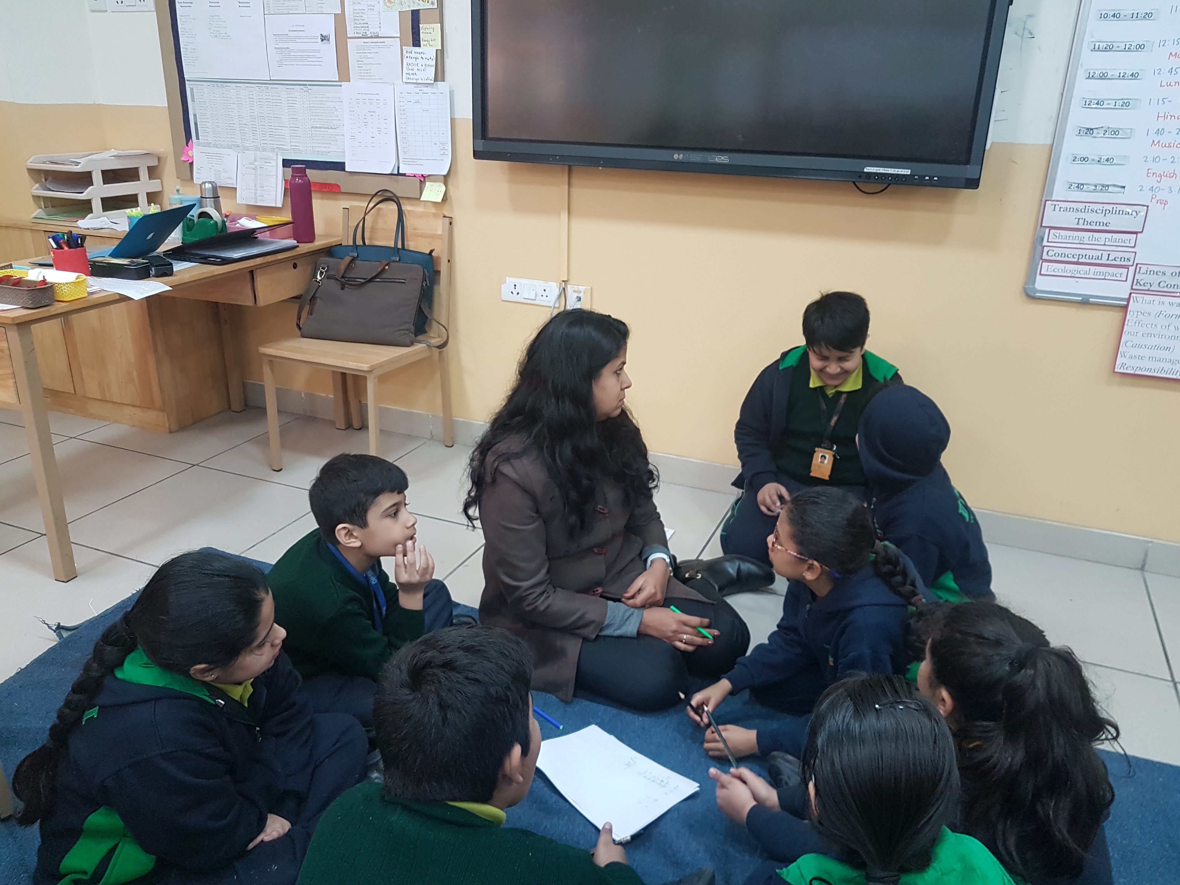 The new unit on ‘Waste’ was introduced to third graders. The students divided themselves into three groups to observe images on waste, analyse slogans or read a poem on waste. They were given the liberty to opt for whatever category they liked and brainstormed different perspectives to enhance their understanding of each. This was followed by an activity where students read the central idea, identified the keywords, discussed their meaning and wrote their first understanding. They then illustrated their perception of the word ‘environment’. Using the strategy of ‘Chalk Talk,’ they discussed the first line of inquiry ‘and recorded their comprehension in the form of a mind map. Working in groups, students had to plan their research on air, water or land. They presented their findings in class and collated notes on all three types of waste. They revisited the central idea and wrote their second understanding on the unit.