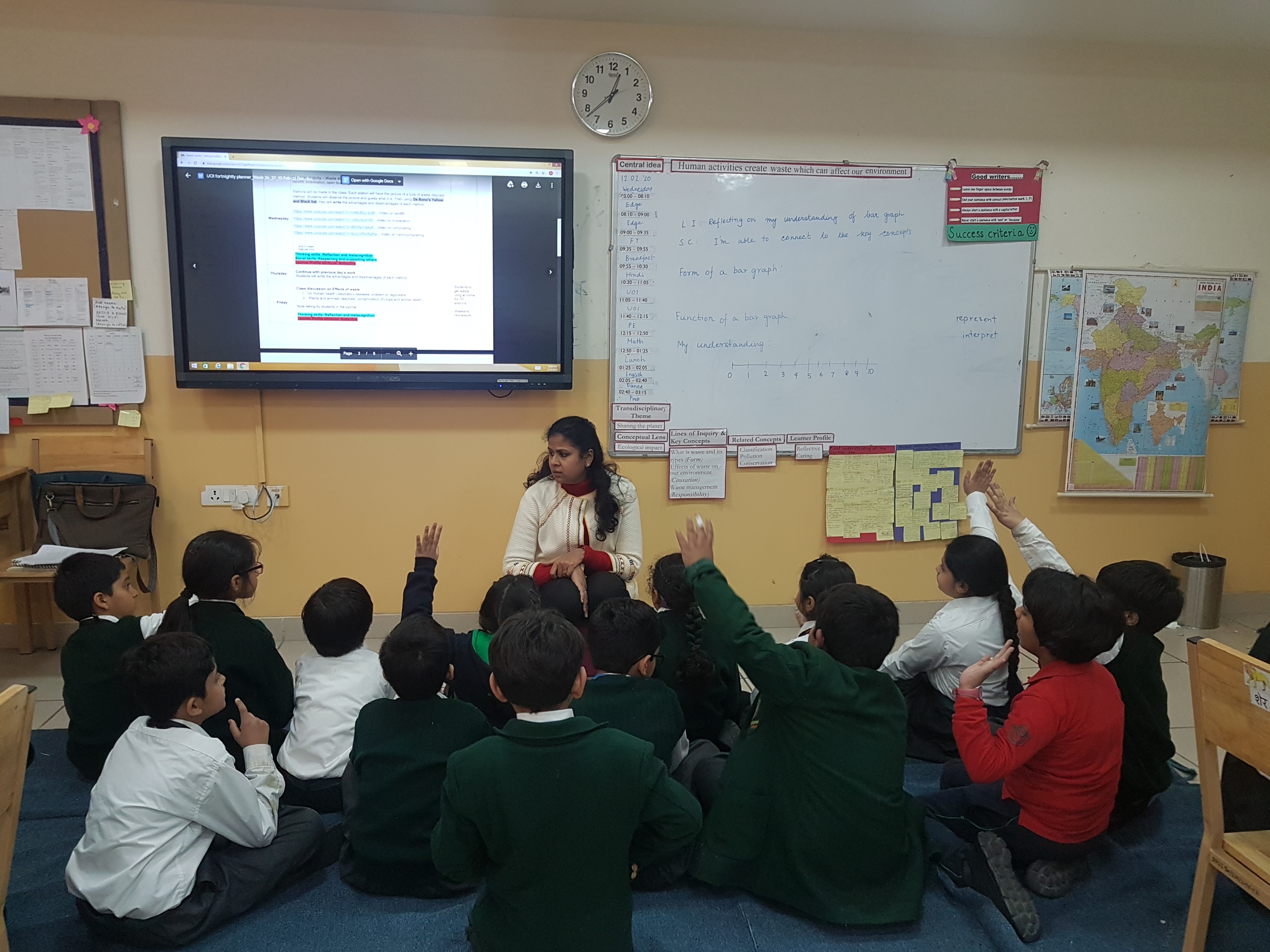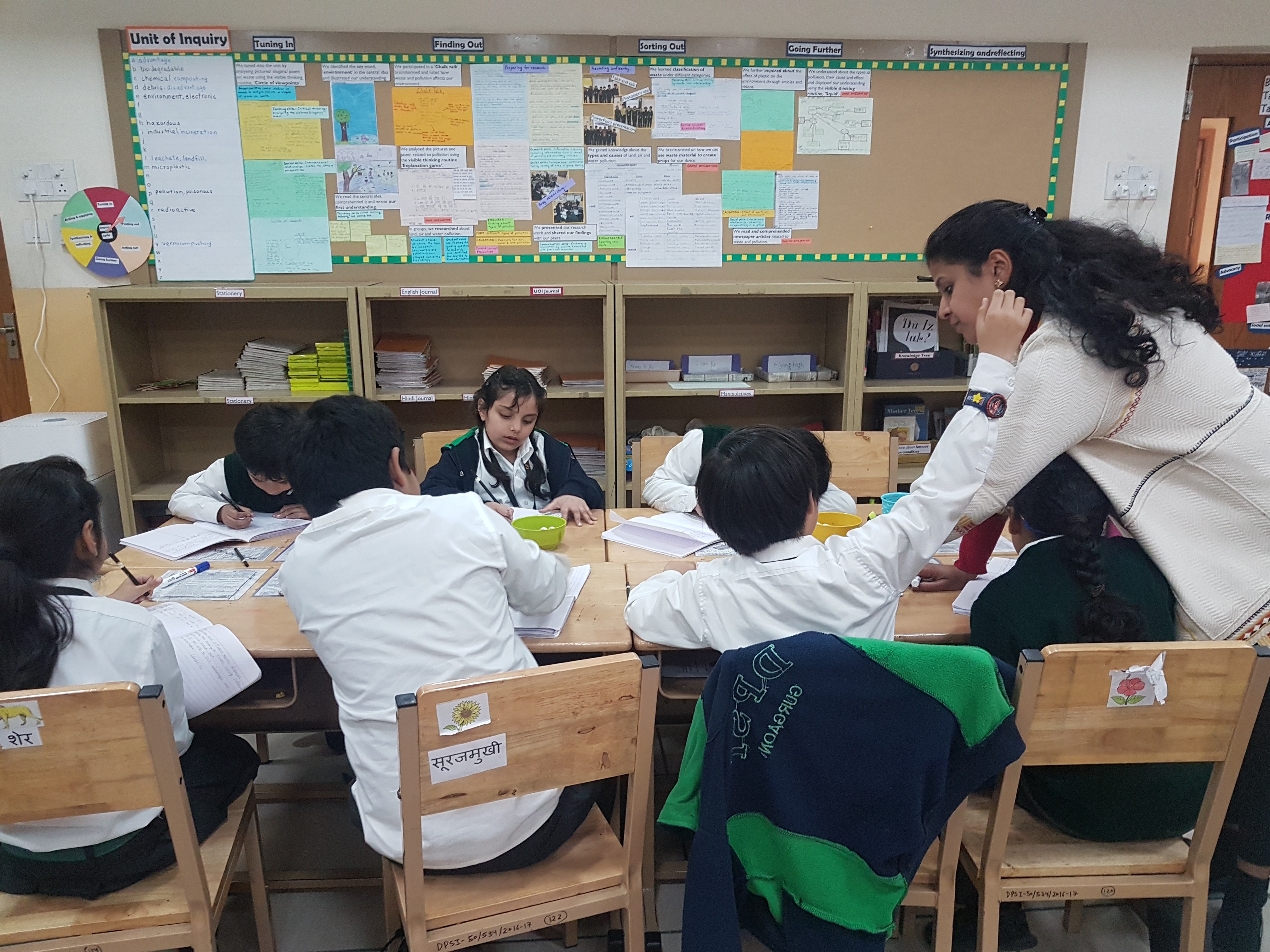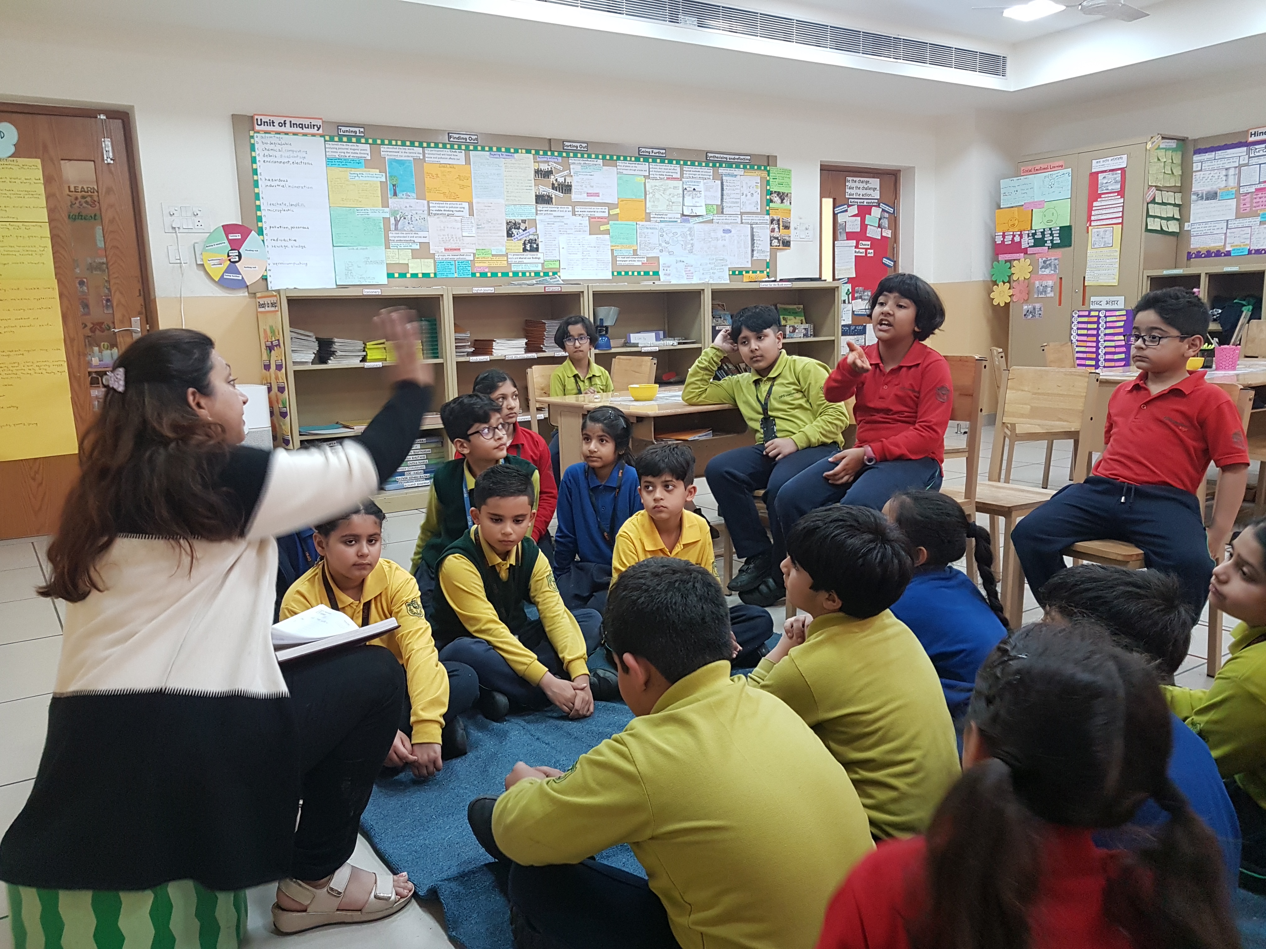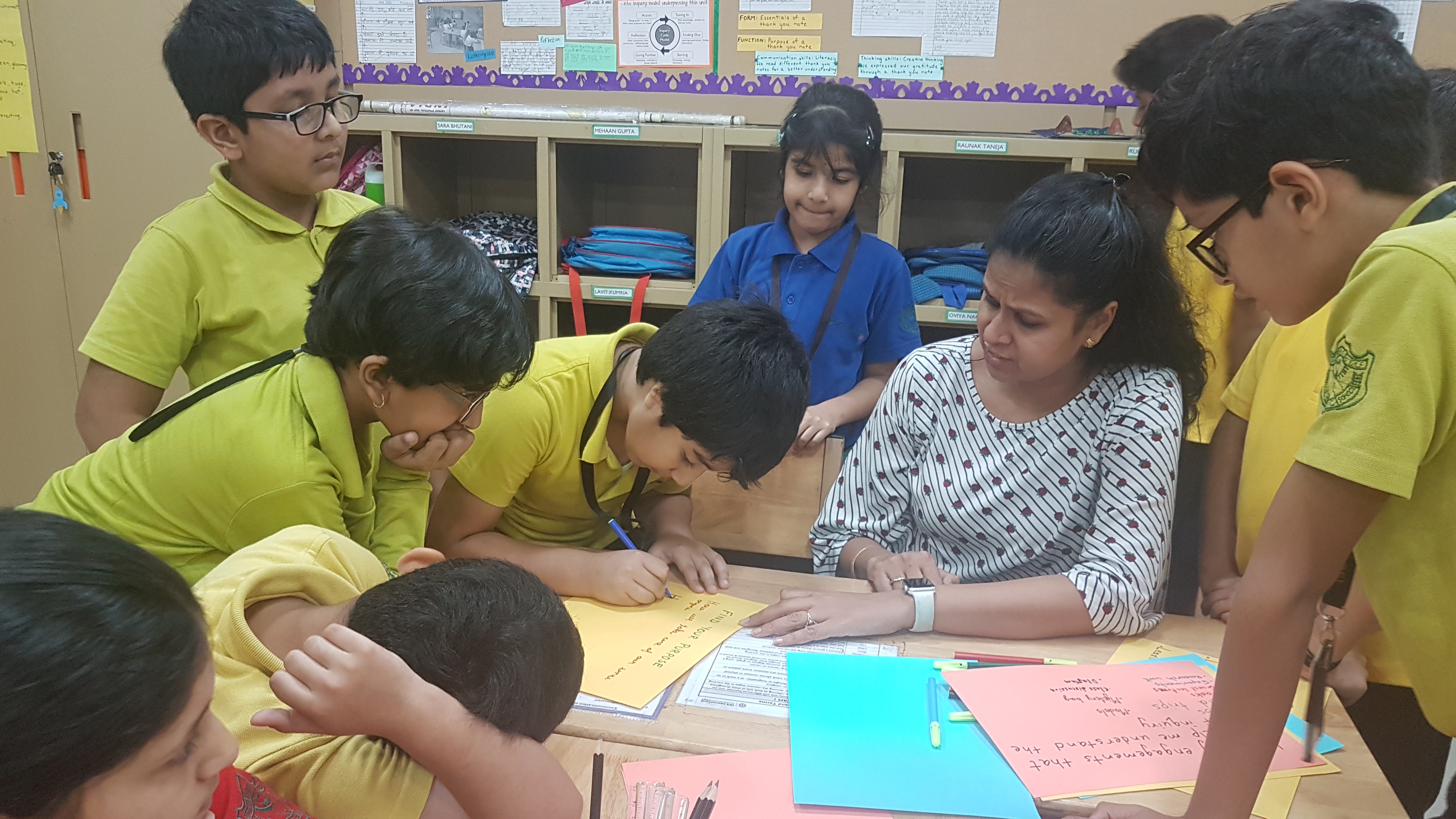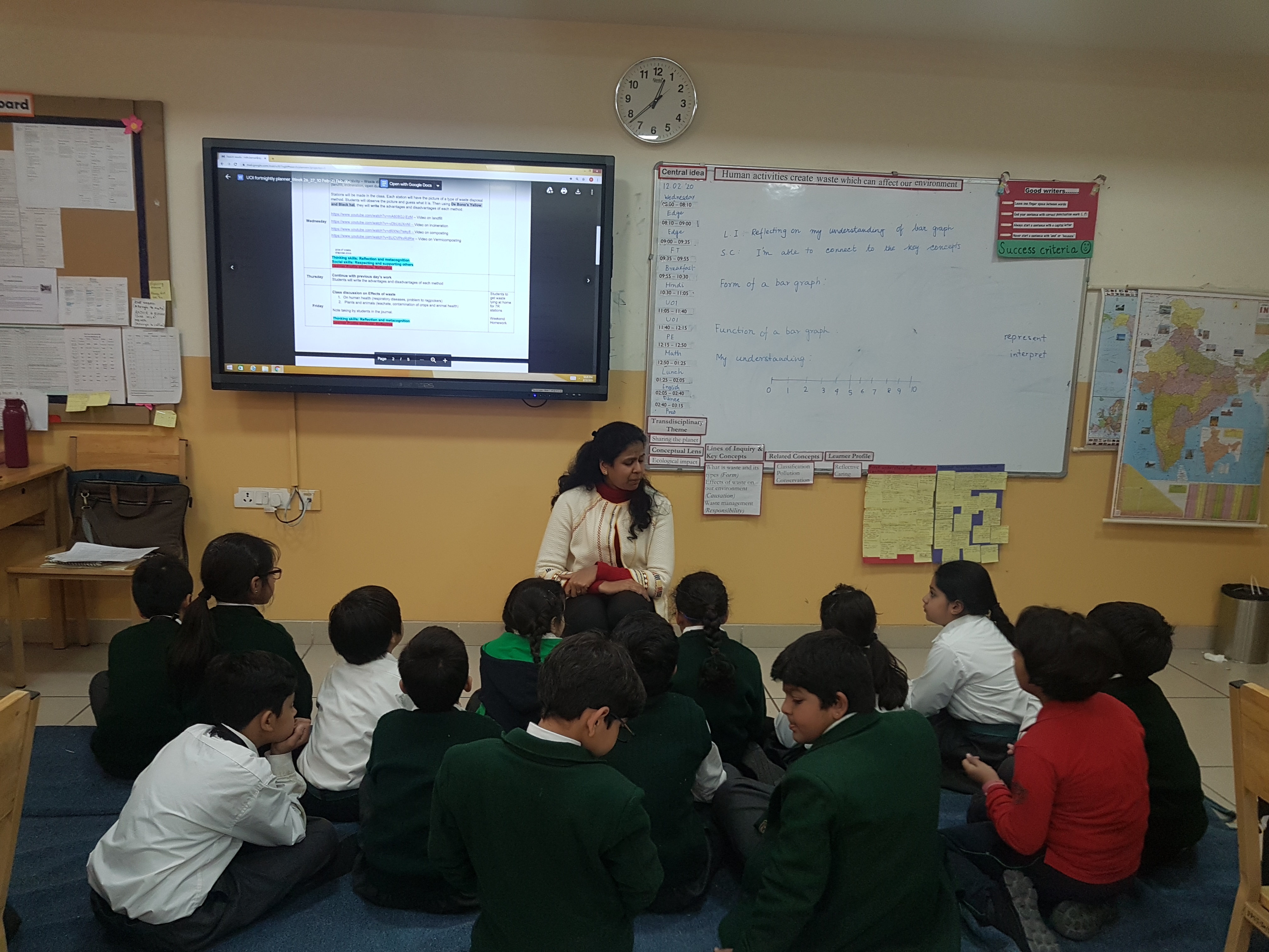 The new unit on ‘Waste’ was introduced to third graders. The students divided themselves into three groups to observe images on waste, analyse slogans or read a poem on waste. They were given the liberty to opt for whatever category they liked and brainstormed different perspectives to enhance their understanding of each. This was followed by an activity where students read the central idea, identified the keywords, discussed their meaning and wrote their first understanding. They then illustrated their perception of the word ‘environment’. Using the strategy of ‘Chalk Talk,’ they discussed the first line of inquiry ‘and recorded their comprehension in the form of a mind map. Working in groups, students had to plan their research on air, water or land. They presented their findings in class and collated notes on all three types of waste. They revisited the central idea and wrote their second understanding on the unit.