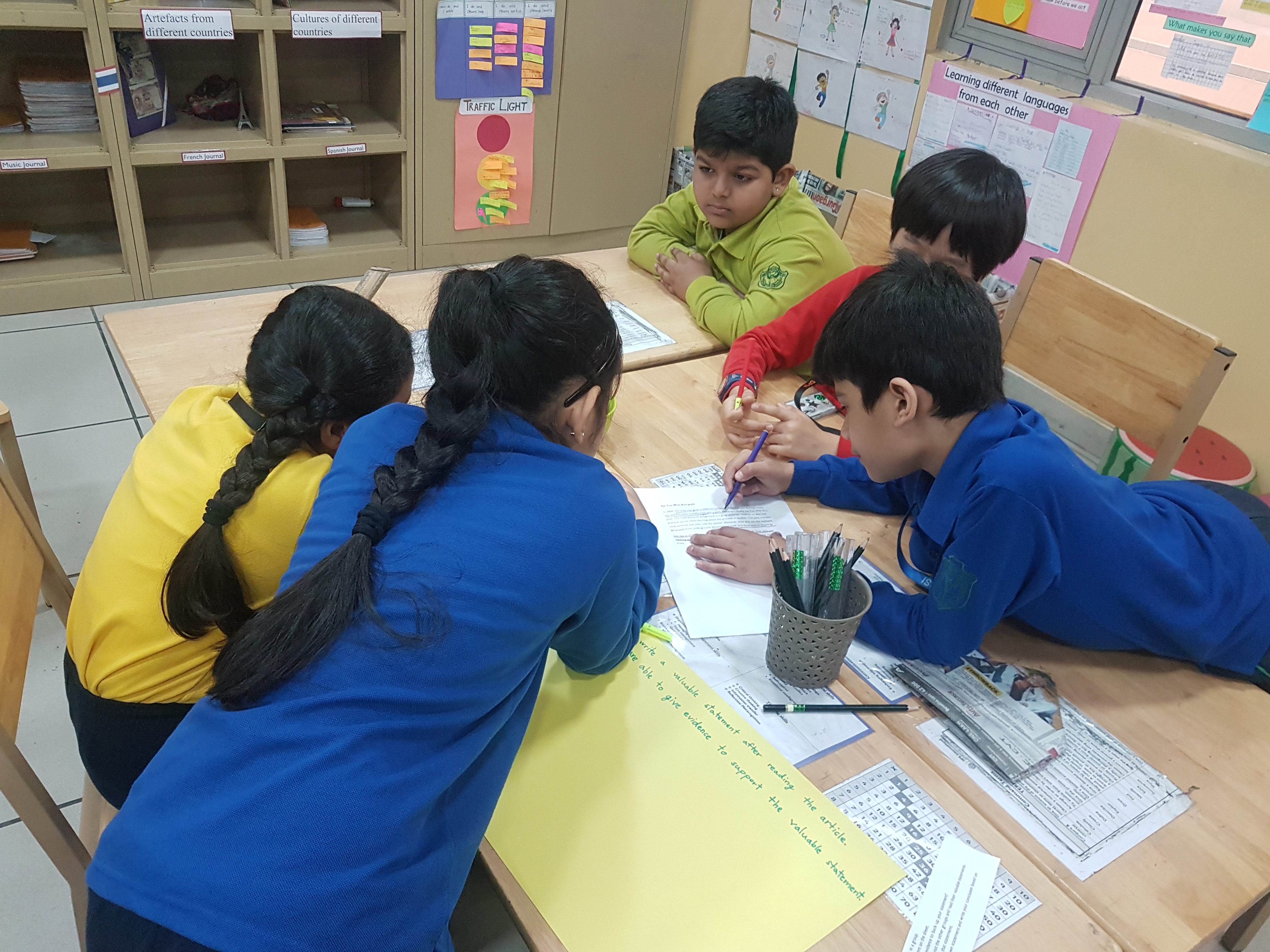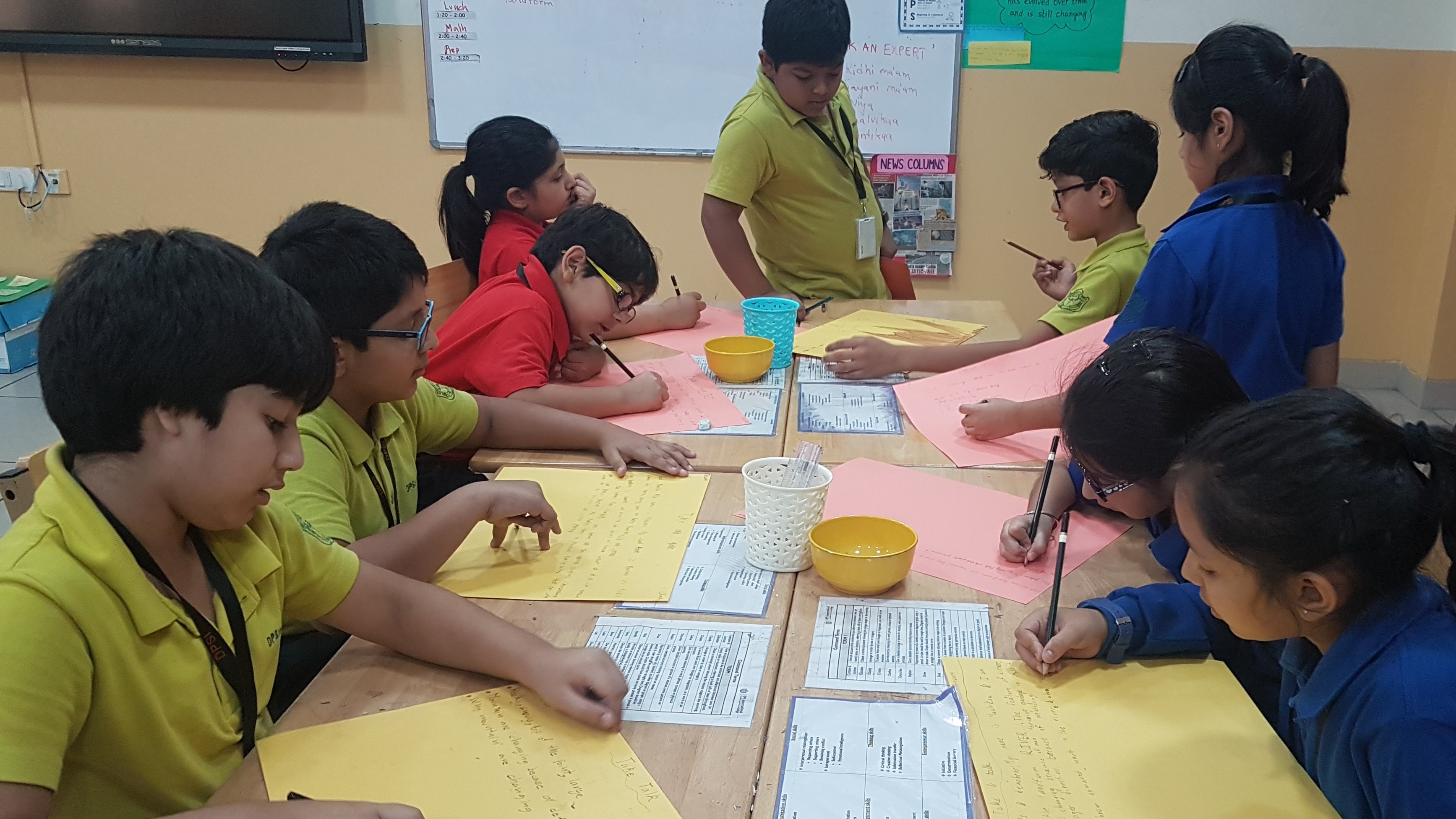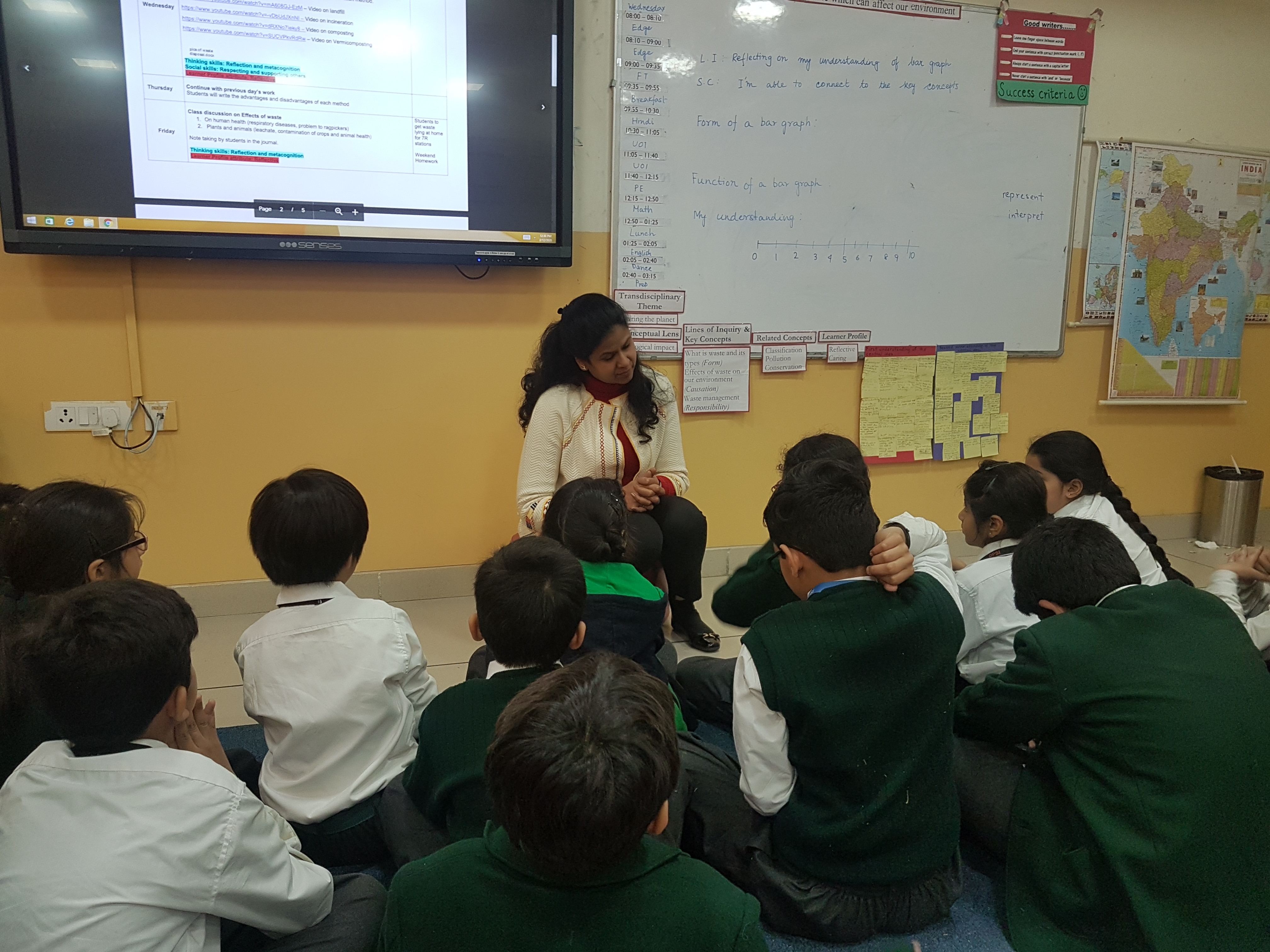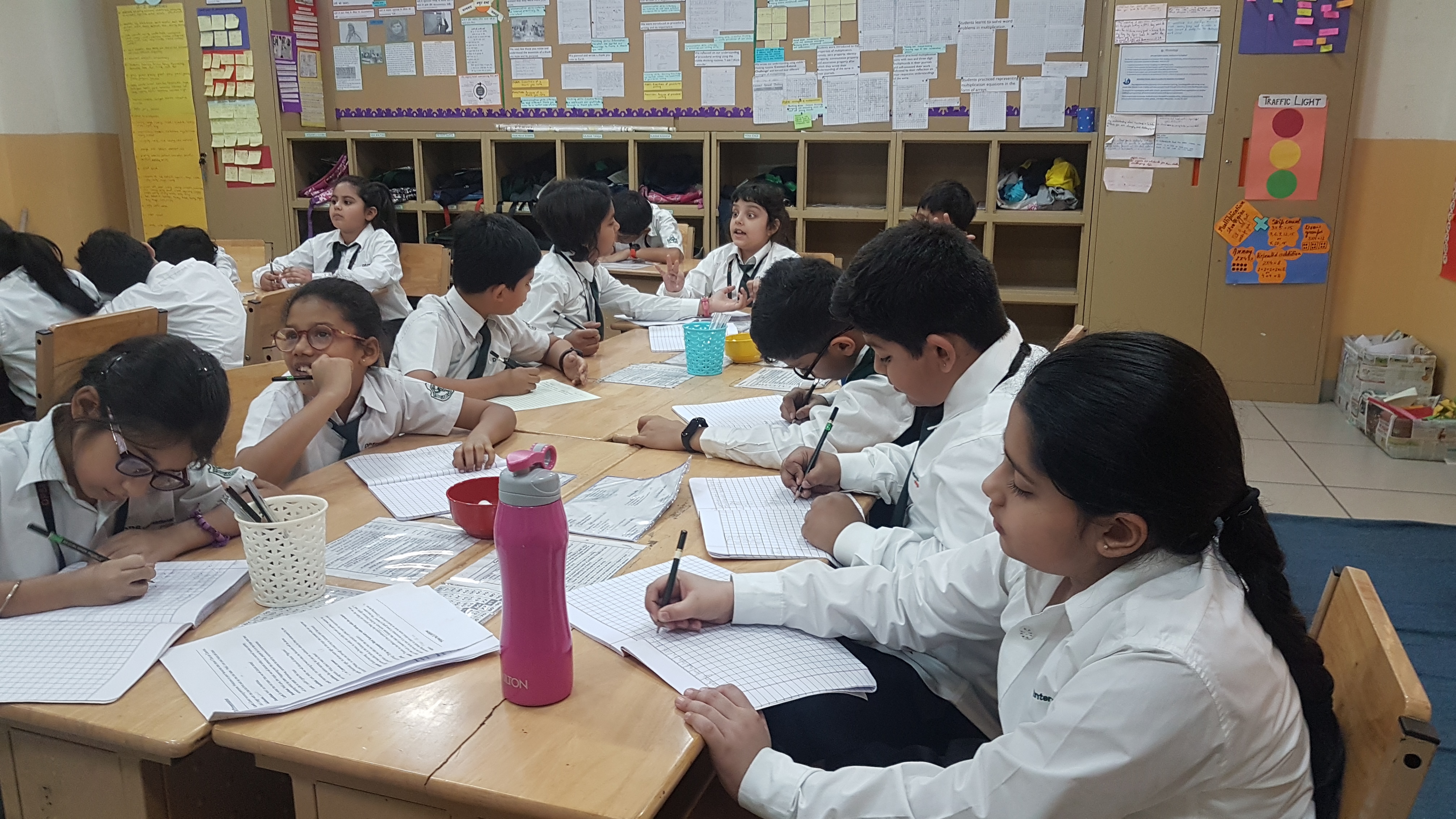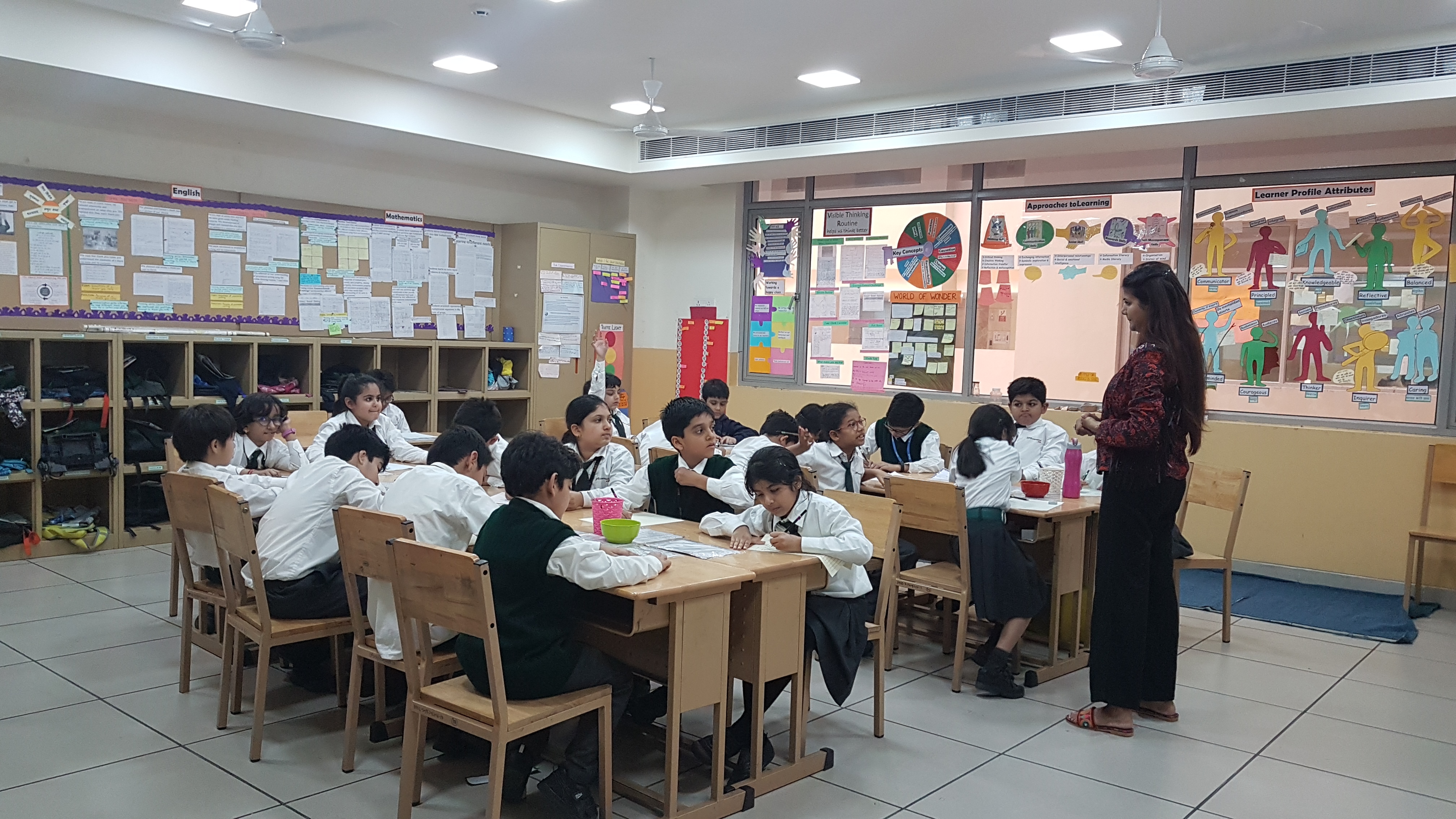 The new unit on ‘Waste’ was introduced to third graders. The students divided themselves into three groups to observe images on waste, analyse slogans or read a poem on waste. They were given the liberty to opt for whatever category they liked and brainstormed different perspectives to enhance their understanding of each. This was followed by an activity where students read the central idea, identified the keywords, discussed their meaning and wrote their first understanding. They then illustrated their perception of the word ‘environment’. Using the strategy of ‘Chalk Talk,’ they discussed the first line of inquiry ‘and recorded their comprehension in the form of a mind map. Working in groups, students had to plan their research on air, water or land. They presented their findings in class and collated notes on all three types of waste. They revisited the central idea and wrote their second understanding on the unit.