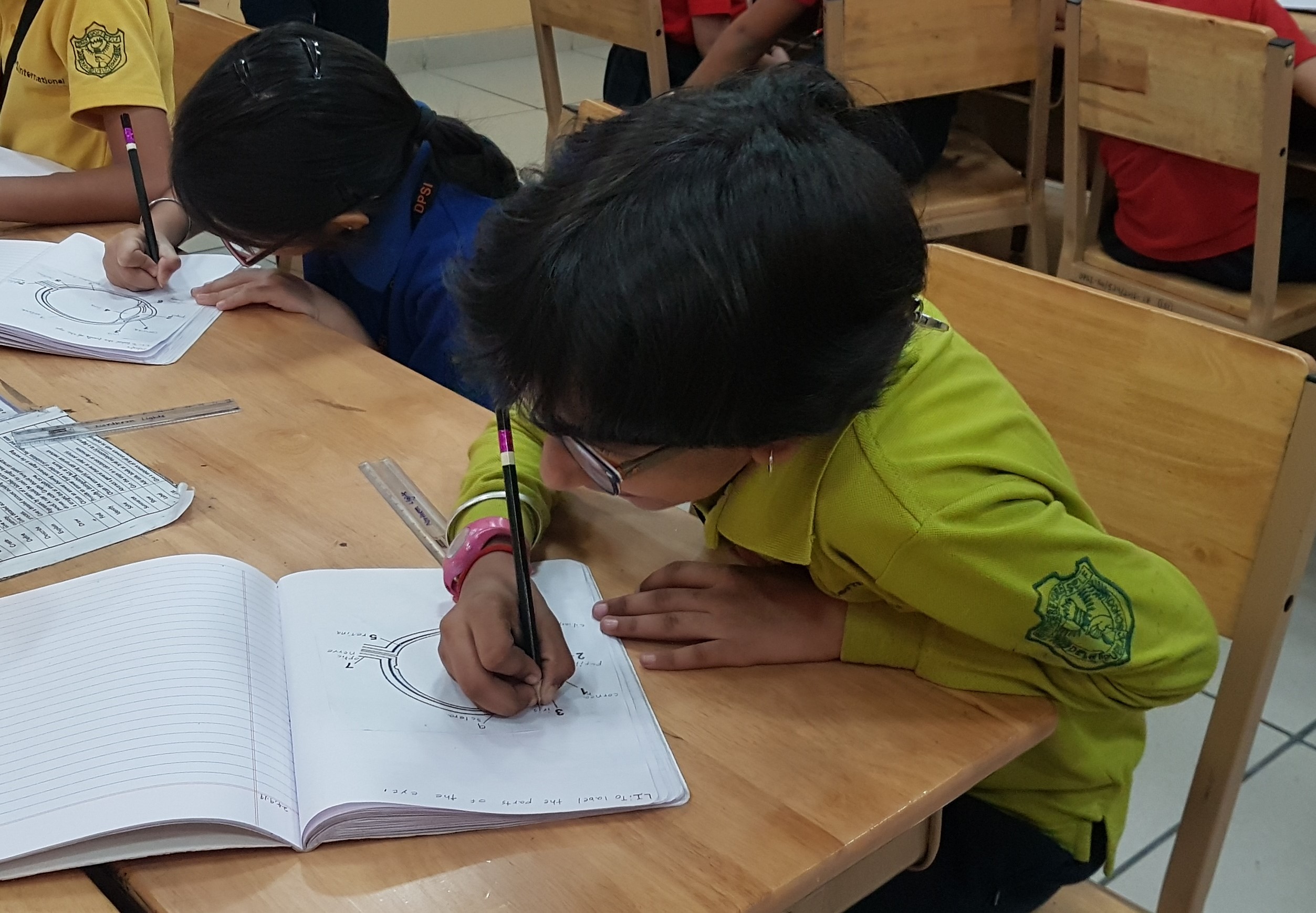 They proceeded to reflect on their third understanding about division and word problems. They tuned into measurement as they discovered the exploration corner set up with objects related to the same concept. They introspected on their prior knowledge using the visible thinking routines ‘KWL’, ‘AQUA’ or ‘I see, I think, I wonder’.