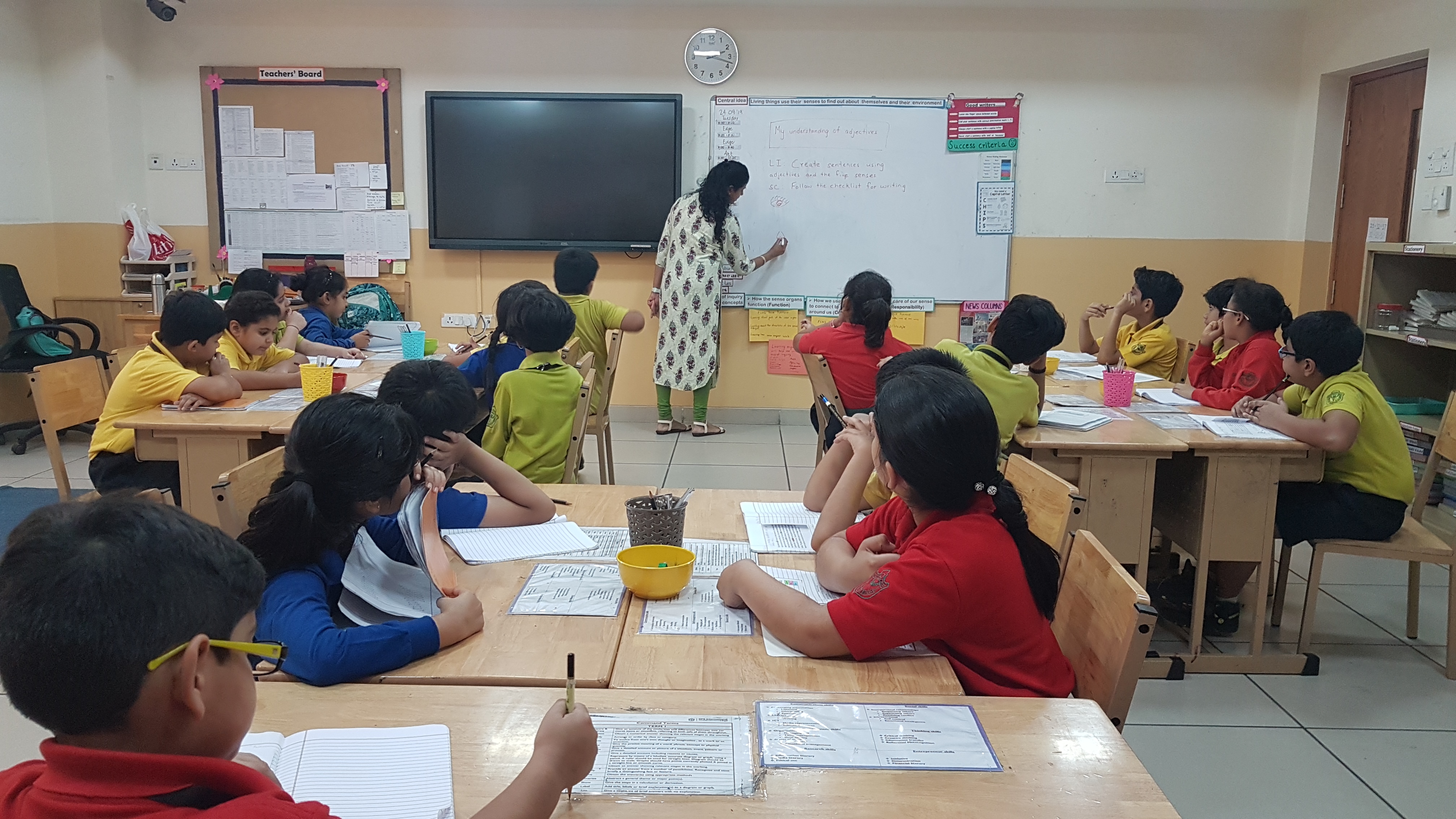 The new week began with the students revisiting the concept of rounding off numbers through a rapid-fire quiz. This was followed by a discussion on the different strategies of rounding off numbers using a number line or number hill. Students dove into the addition of 2, 3 and 4 digit numbers and got involved in a ‘Bus stop’ activity to discuss the ‘commutative’ and ‘associative’ nature of addition. Their bright minds went on to discuss mental strategies based on addition which included horizontal addition.