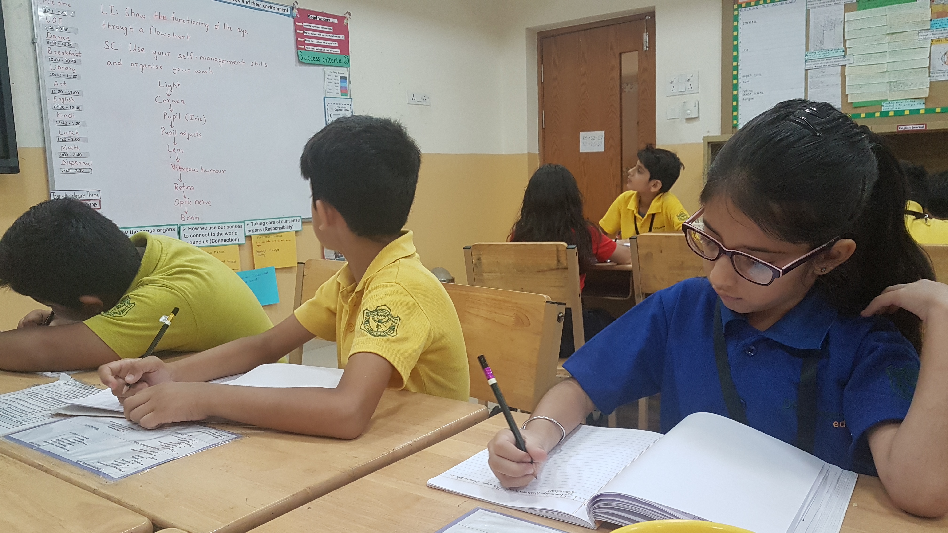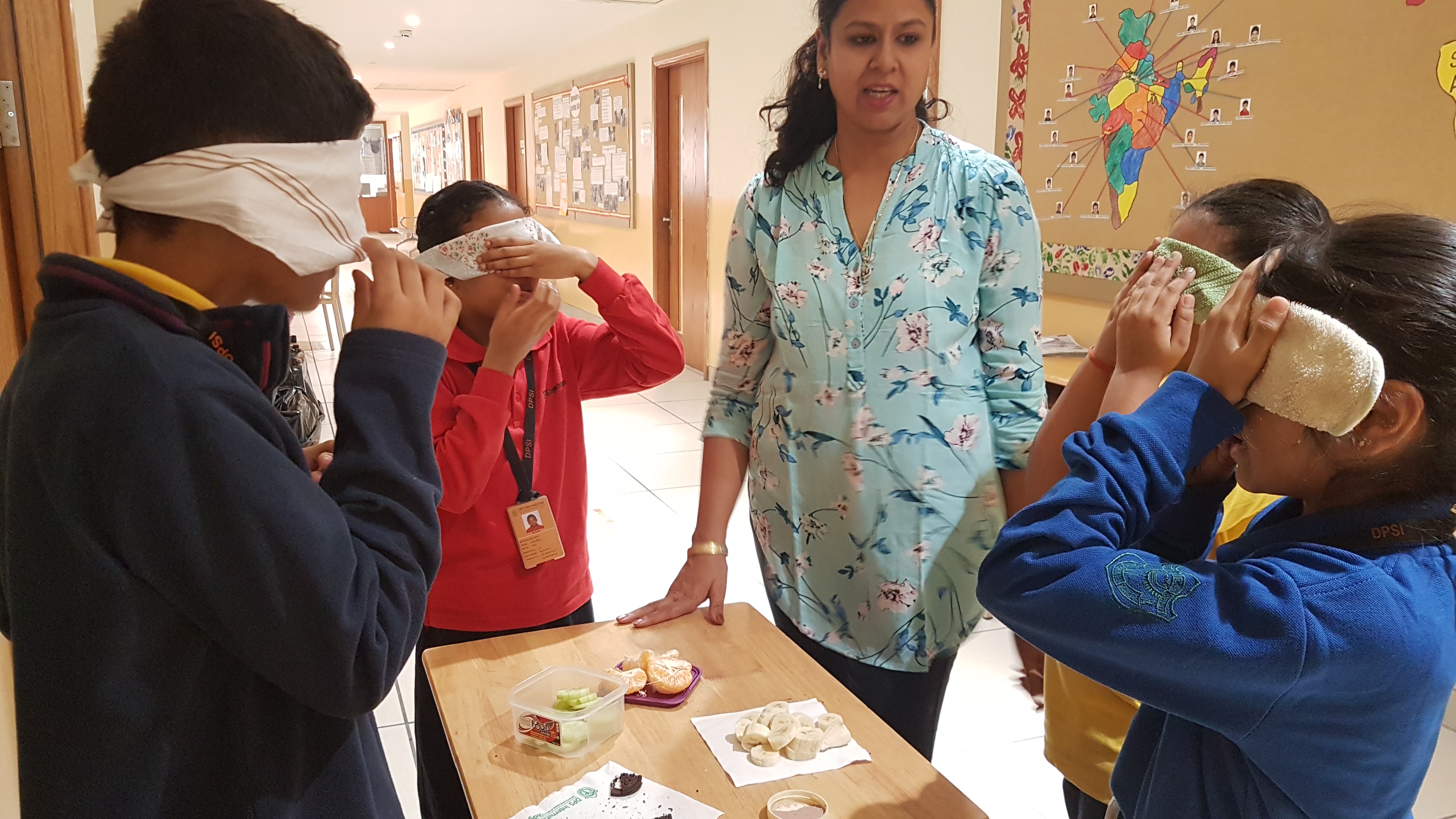 Integrating with the current unit, the students watched an interesting video on the sense of sight and after a peer discussion they collated facts about it in their journals. They explored certain items with reference to their senses and described them in their own words.