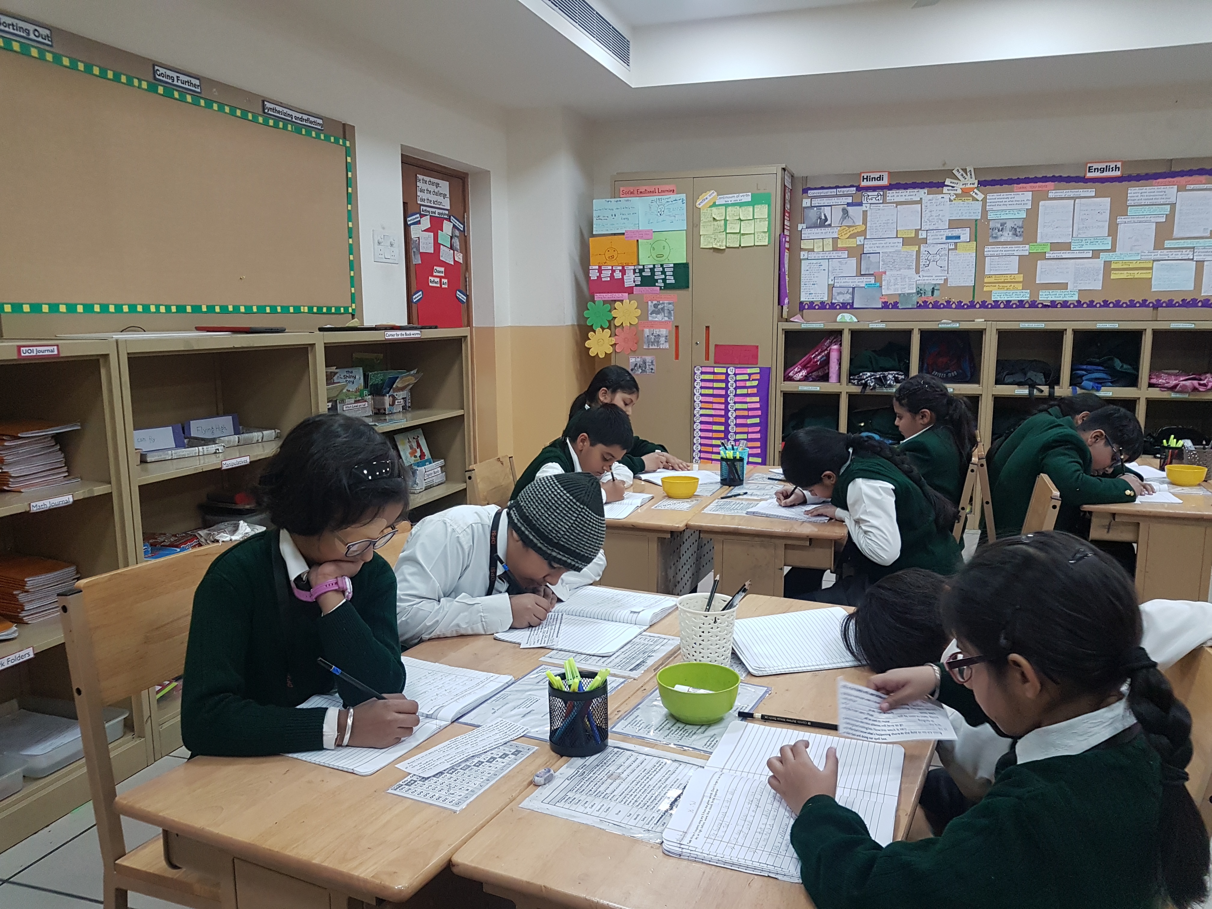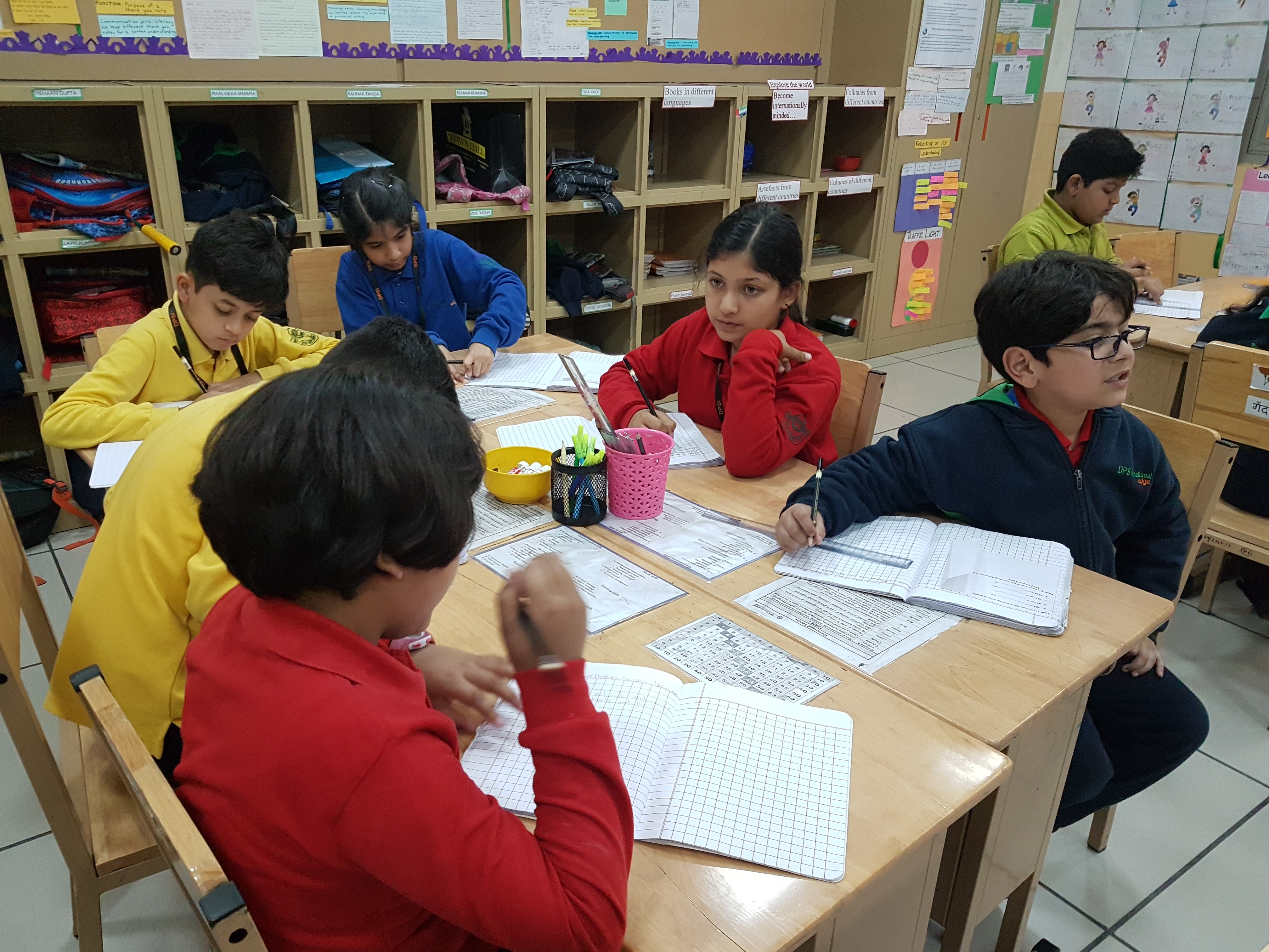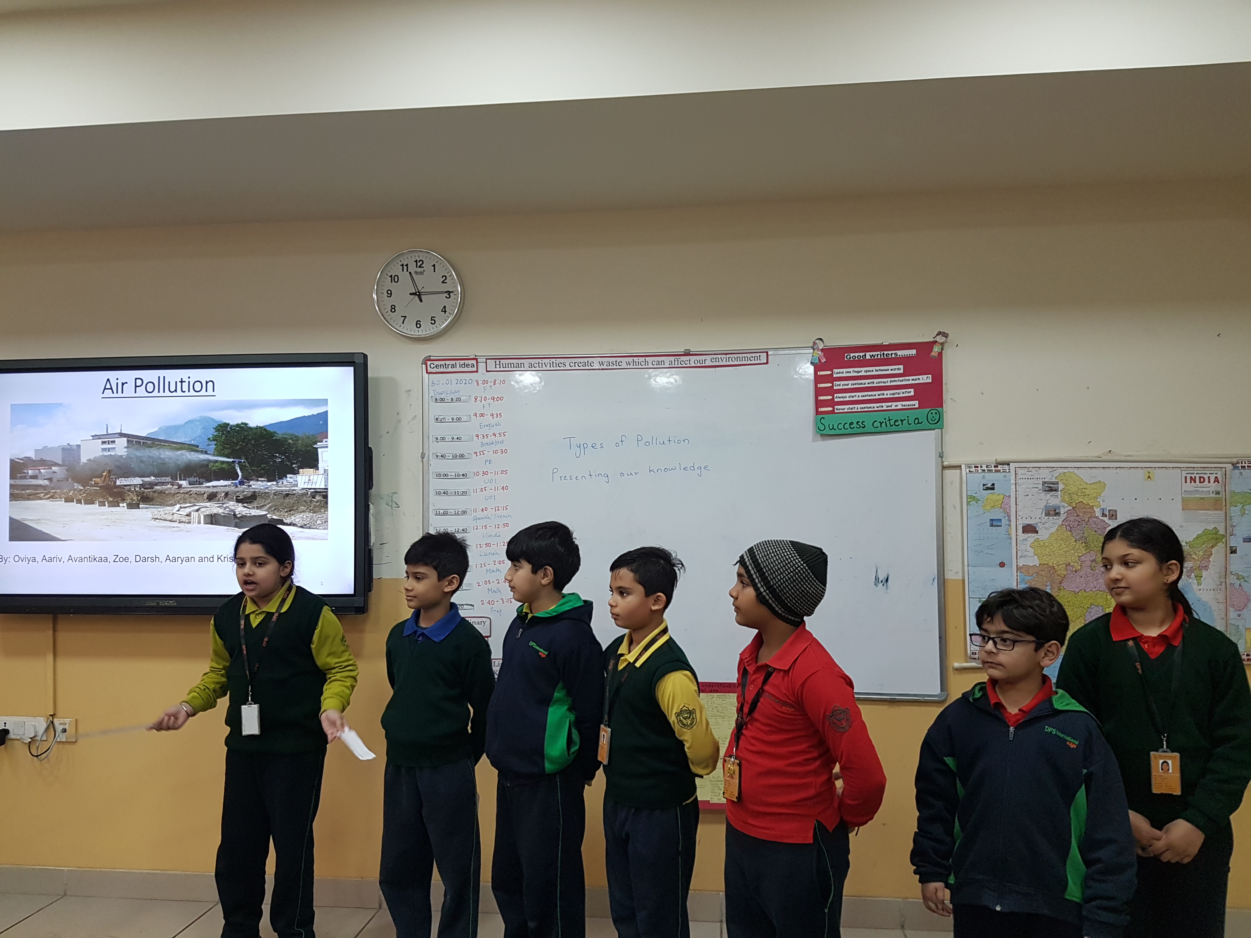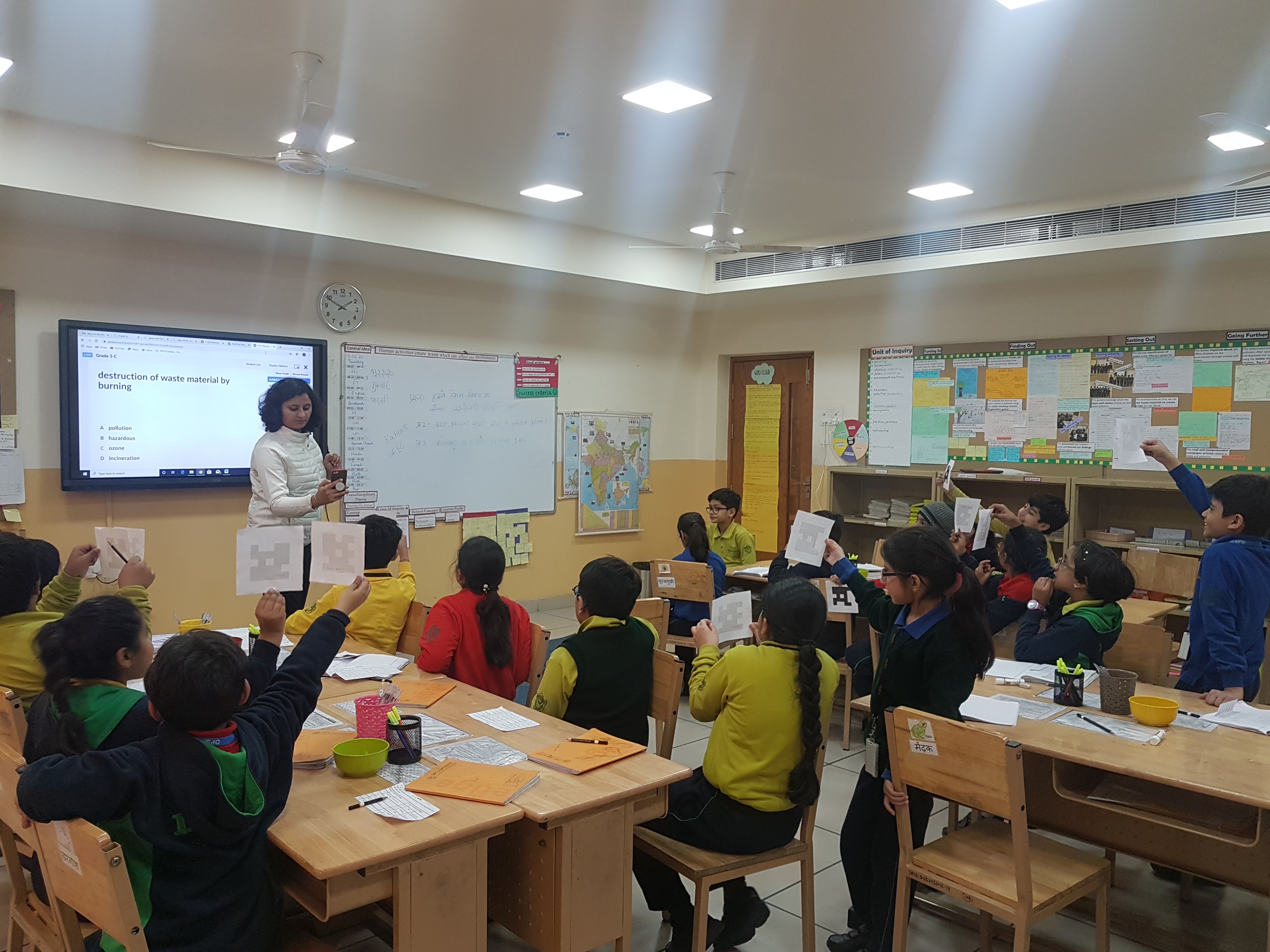 During their Hindi lesson, students watched a documentary on pollution with its various types, reasons and effects. They expressed their thoughts through the ‘SQUID’ strategy. They assessed their knowledge and self-management skills through a Hindi kahoot quiz . Students used their creativity to compose couplets and also created a unit related poem. Their knowledge of spellings was assessed through dictation.
