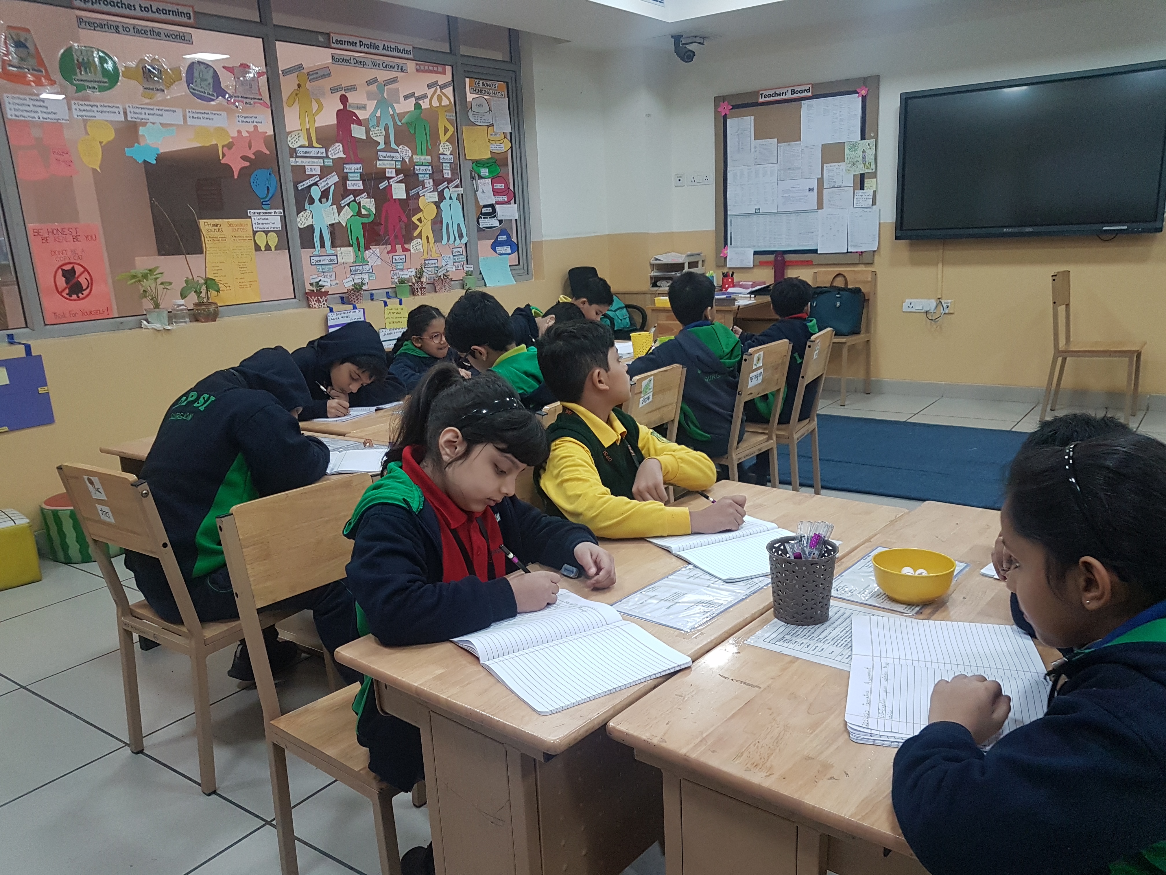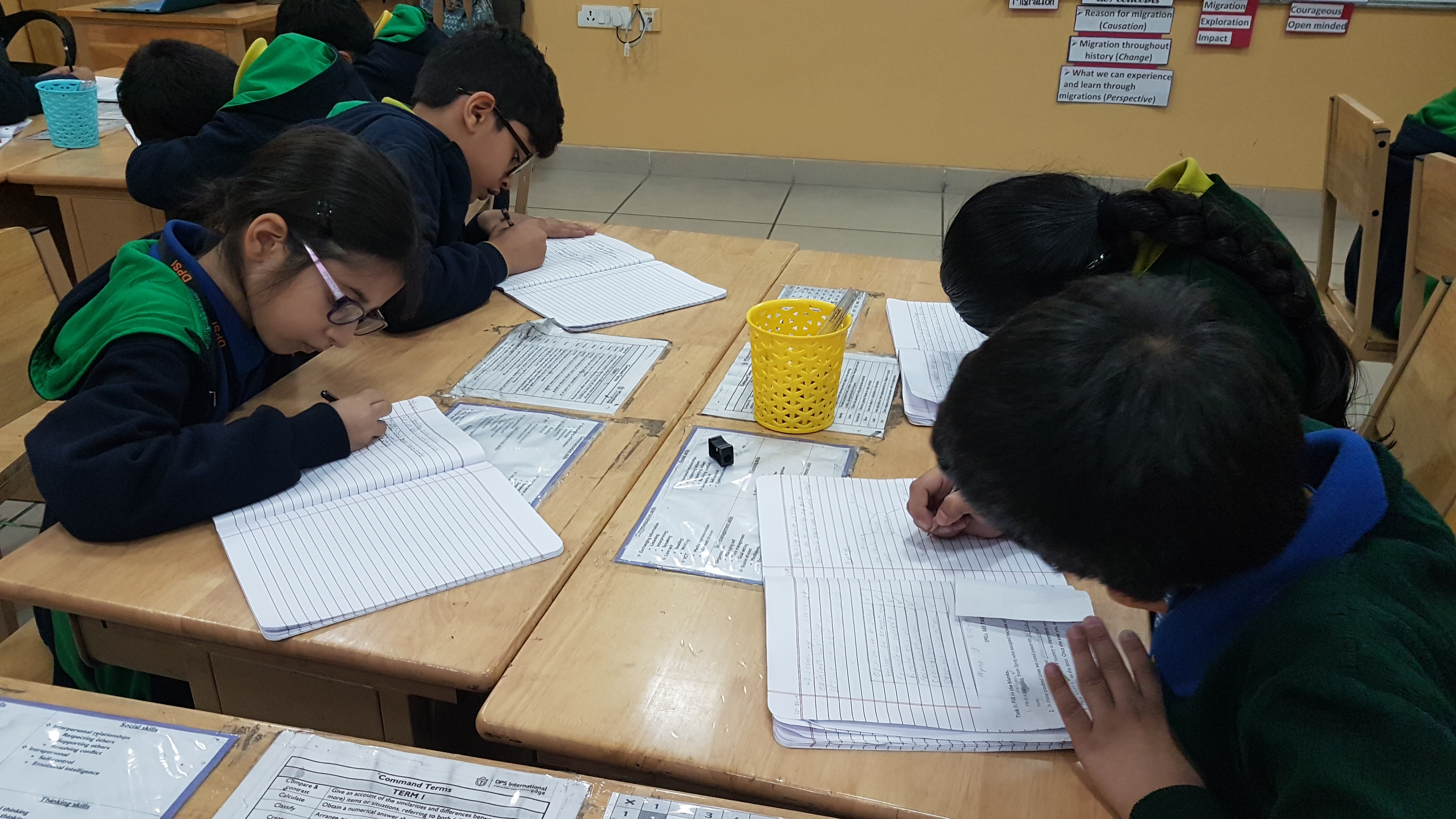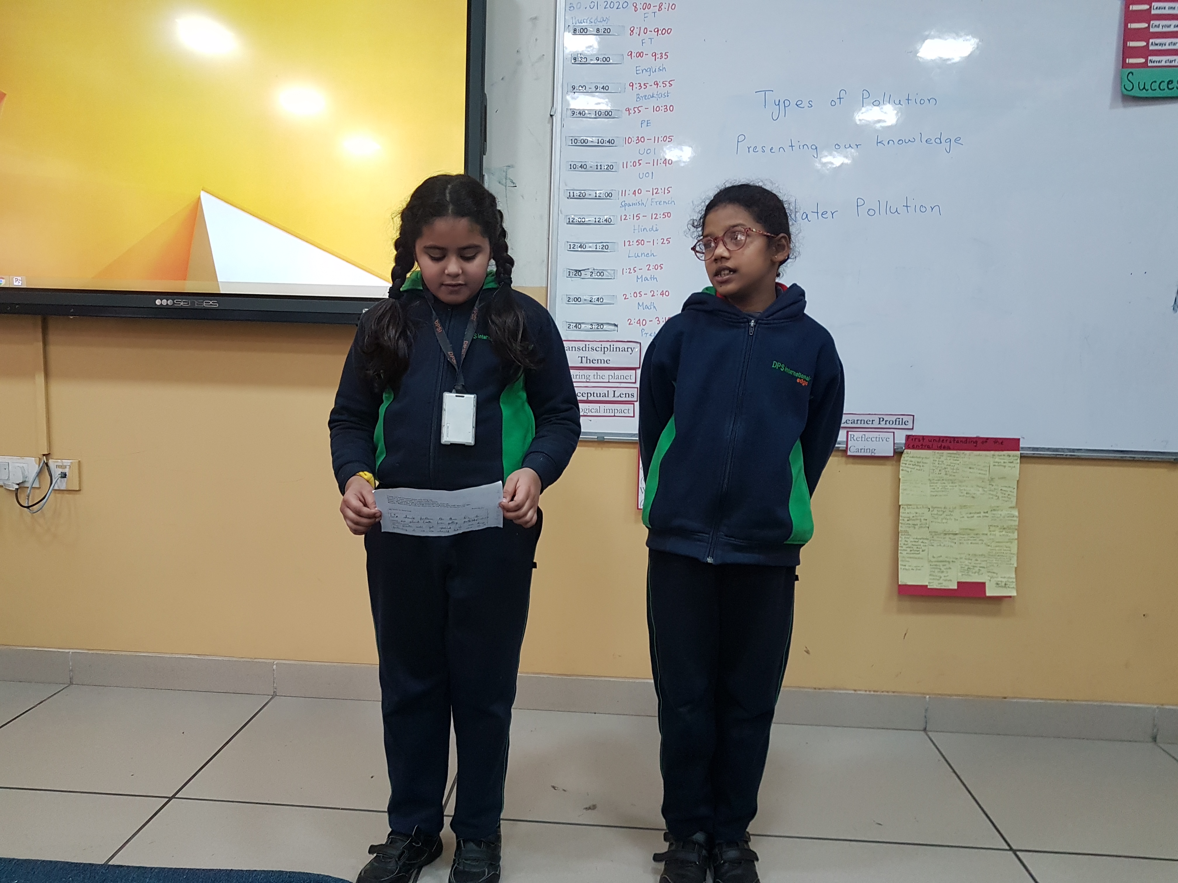 During their Hindi lesson, students watched a documentary on pollution with its various types, reasons and effects. They expressed their thoughts through the ‘SQUID’ strategy. They assessed their knowledge and self-management skills through a Hindi kahoot quiz . Students used their creativity to compose couplets and also created a unit related poem. Their knowledge of spellings was assessed through dictation.