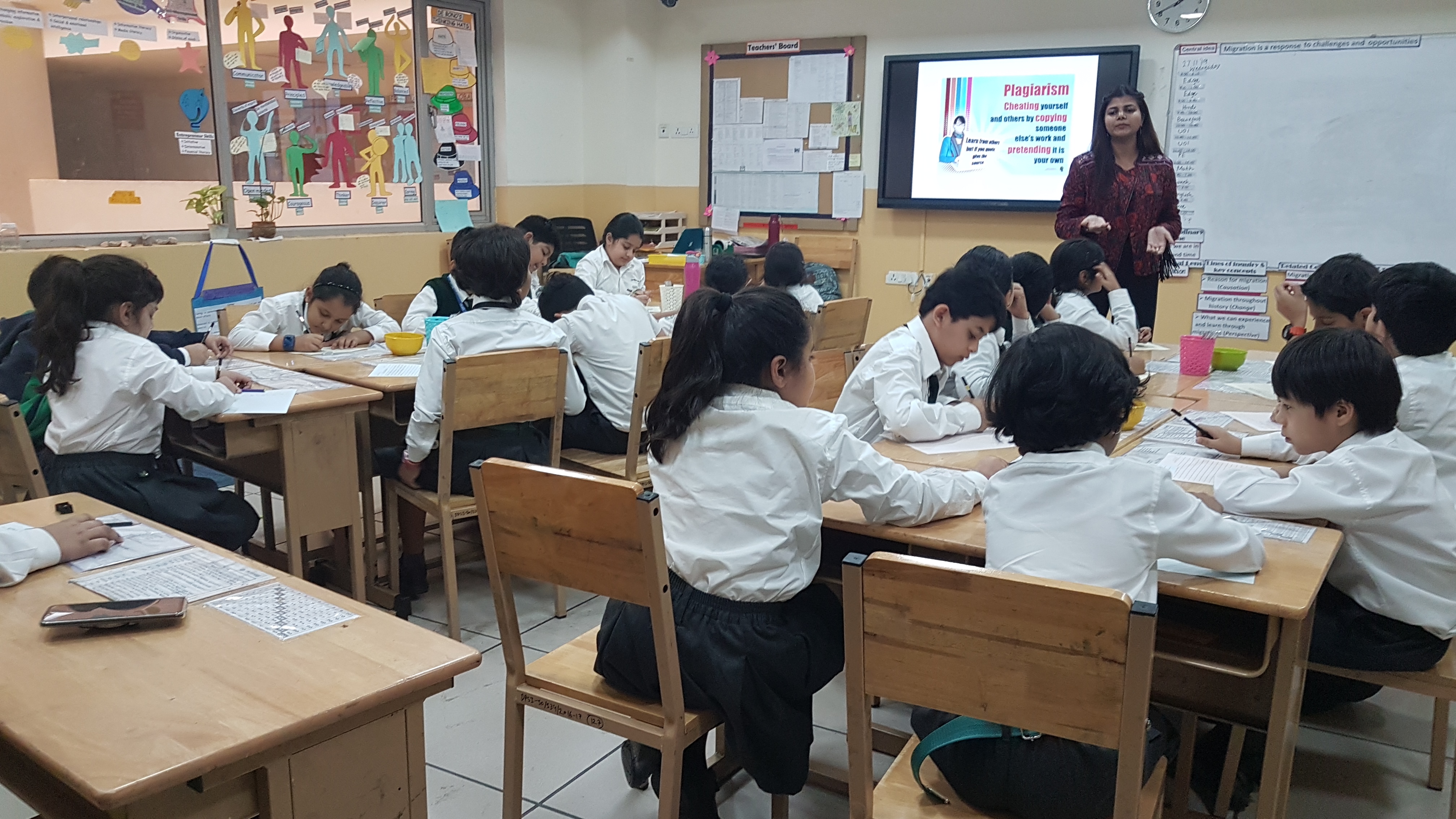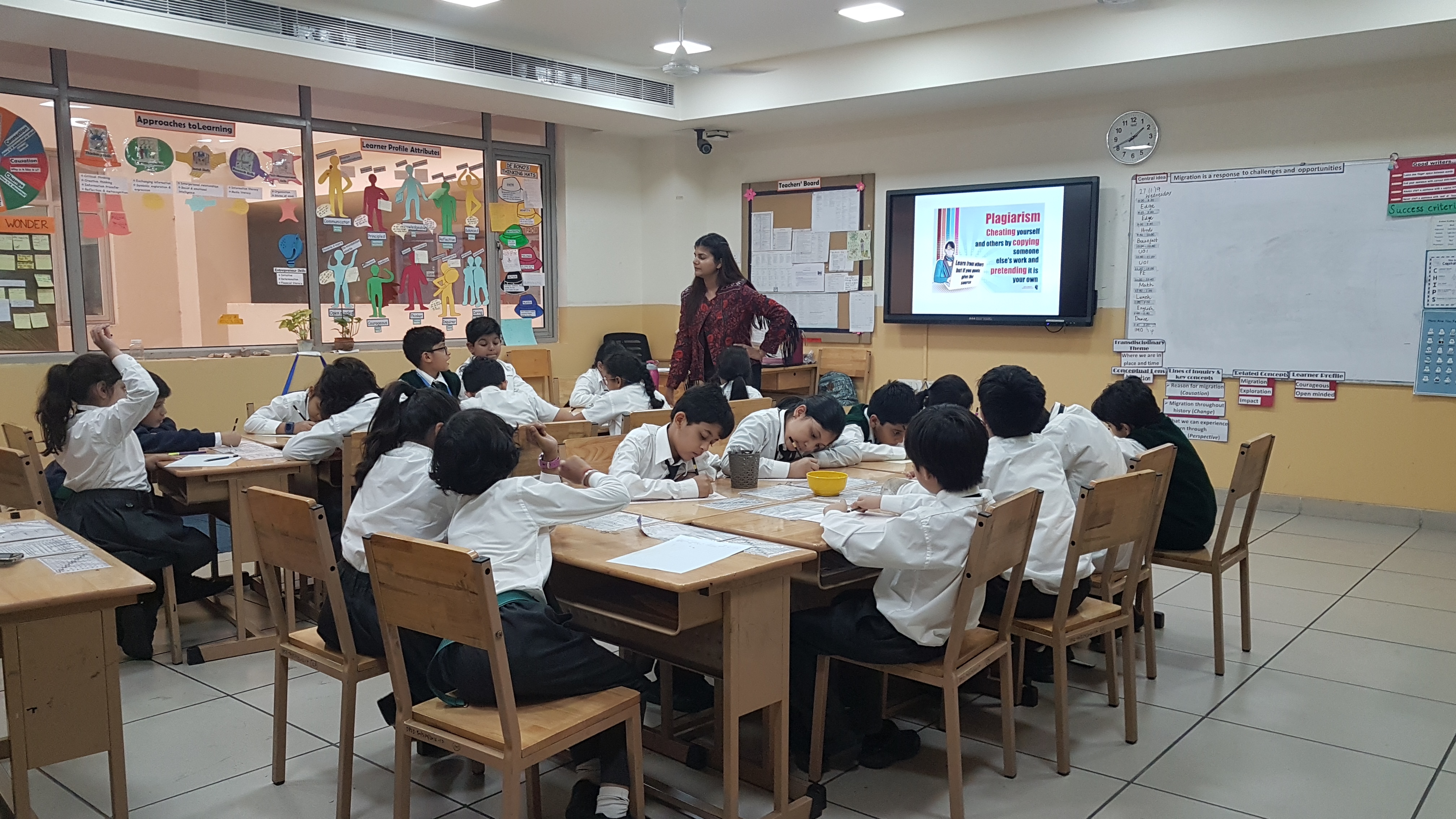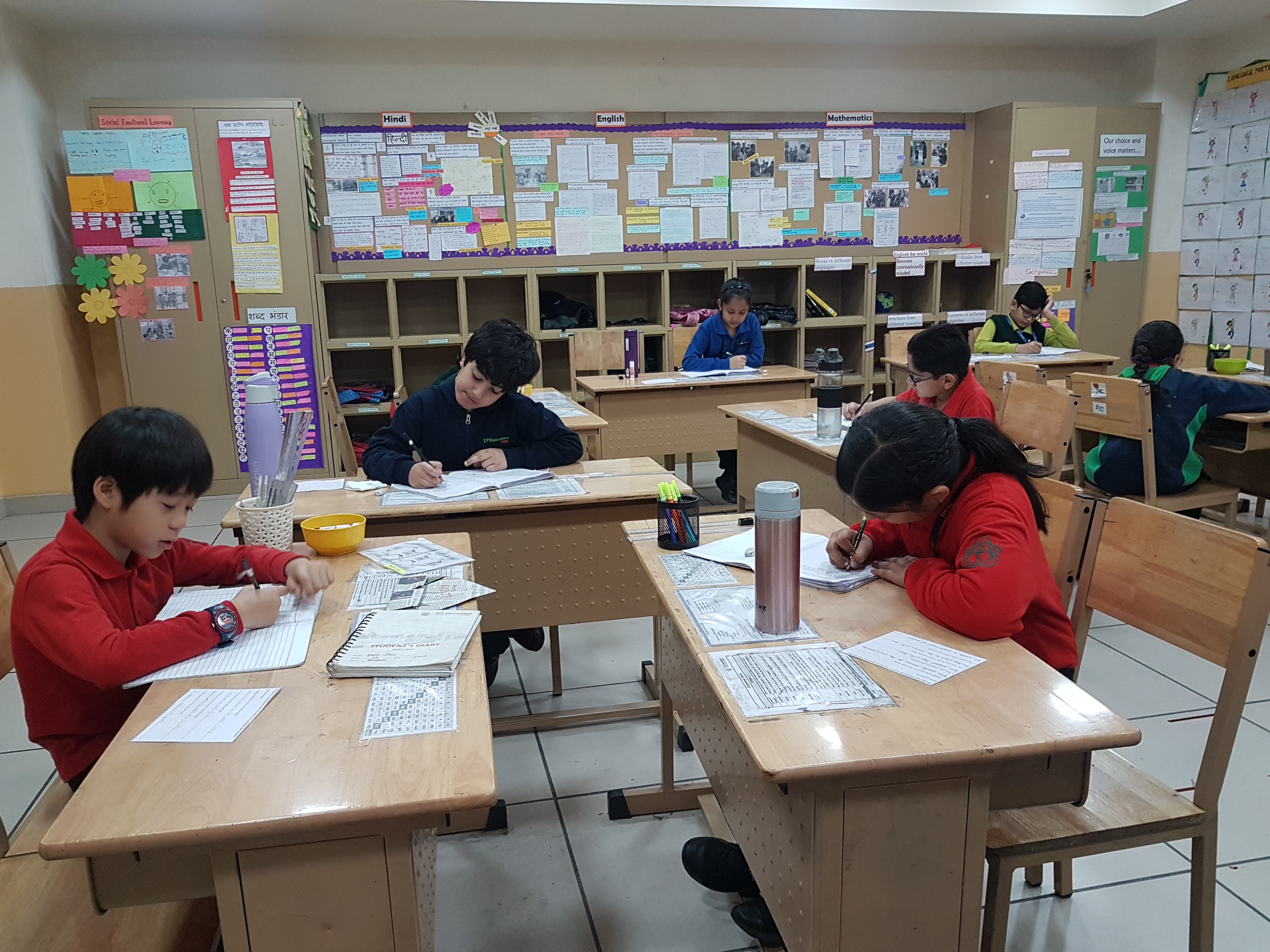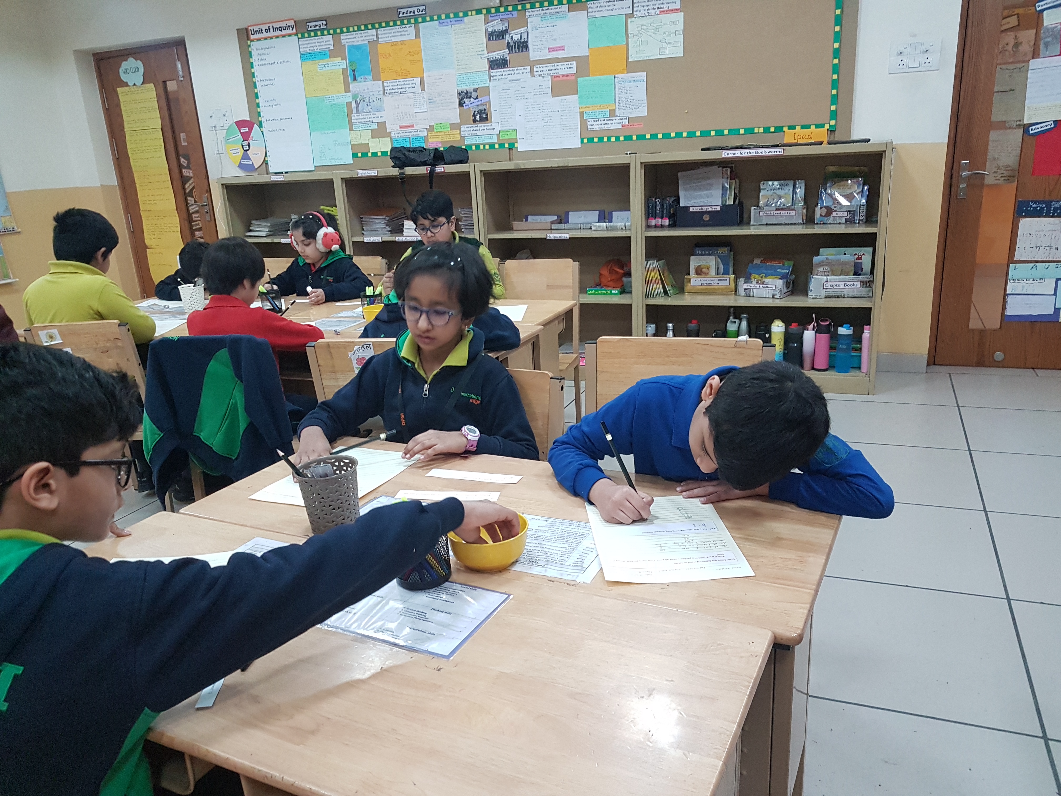 During their Hindi lesson, students watched a documentary on pollution with its various types, reasons and effects. They expressed their thoughts through the ‘SQUID’ strategy. They assessed their knowledge and self-management skills through a Hindi kahoot quiz . Students used their creativity to compose couplets and also created a unit related poem. Their knowledge of spellings was assessed through dictation.