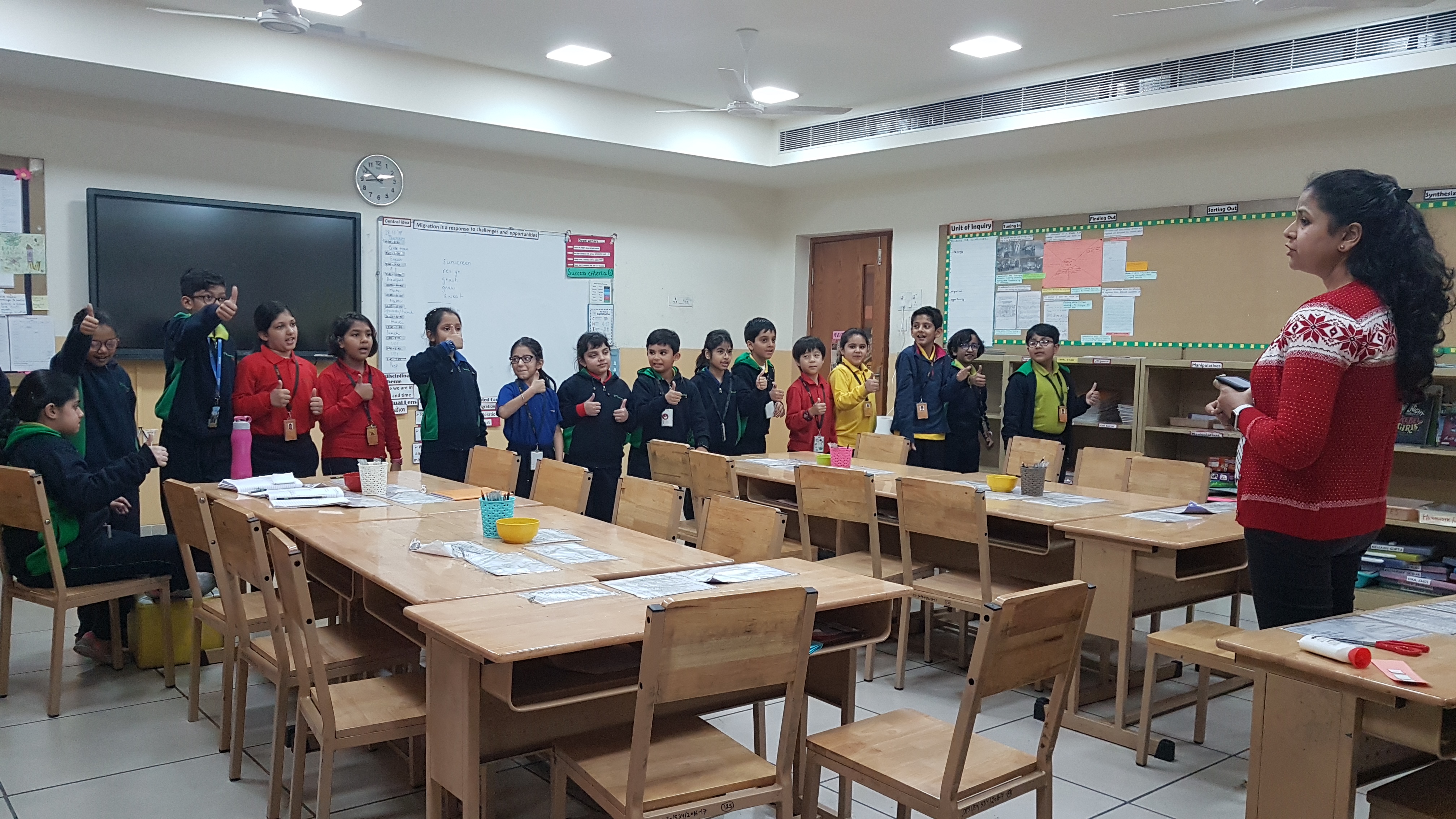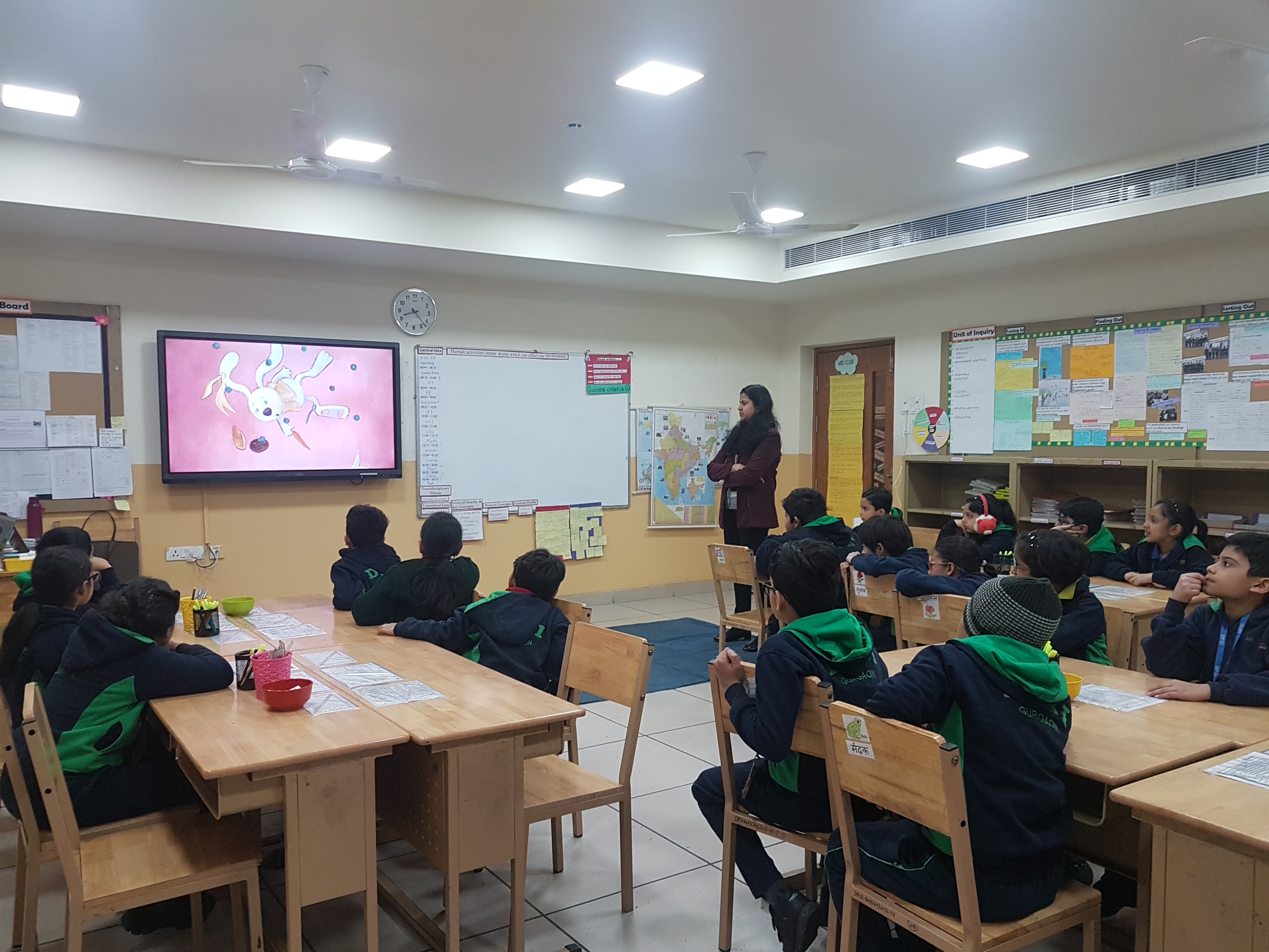Since February 2000 International Mother Language Day is observed every year to promote linguistic and cultural diversity and multilingualism across the world. To mark International Mother Language day in the library, the students were acquainted with the purpose and importance of celebrating this event. They learned some widely spoken languages around the world like Chinese, Spanish, English and Hindi. The children shared the first language most commonly spoken at home some of which were Bengali, Punjabi, Gujarati, Korean, Chinese, Tamil and Haryanvi.