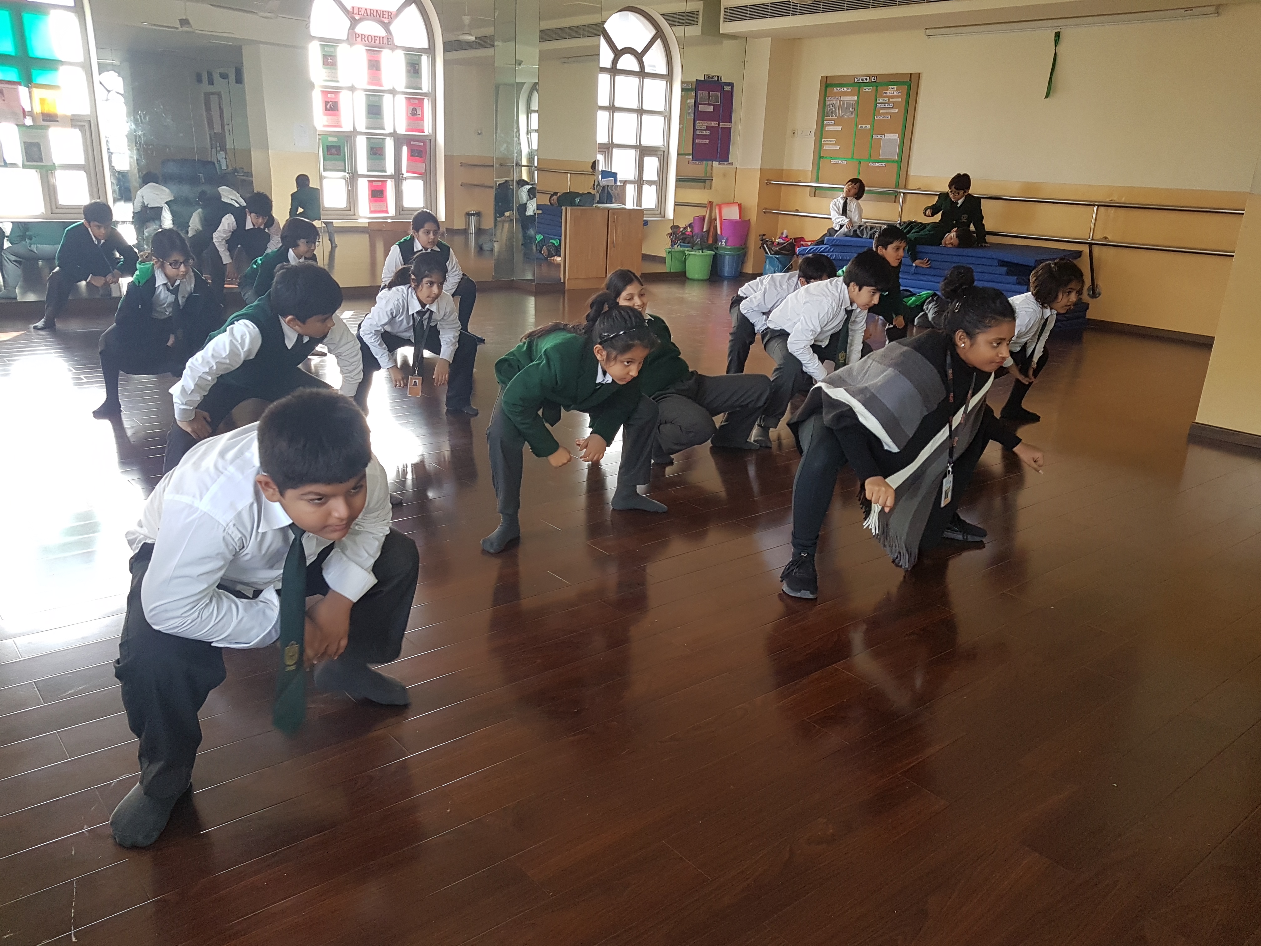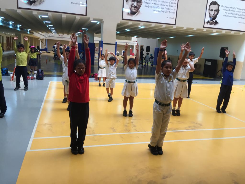 Surya Namaskar also known as sun salutations, is an exercise practice in yoga incorporating a sequence of twelve gracefully linked asanas. Children performed the different formations of Surya Namaskar trying to keep the postures correct.