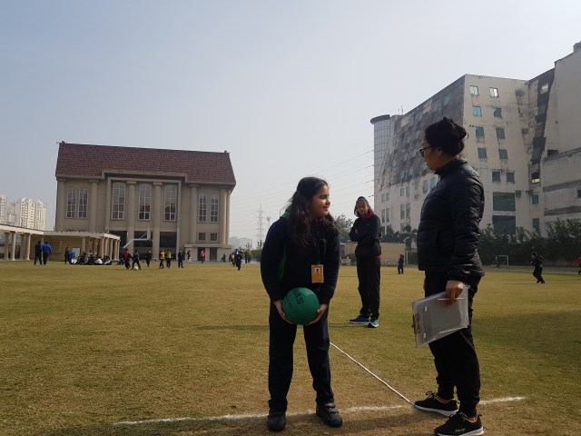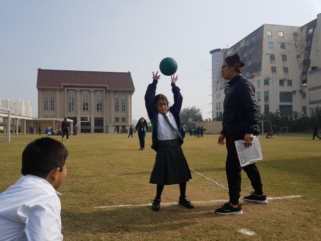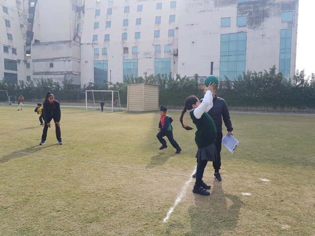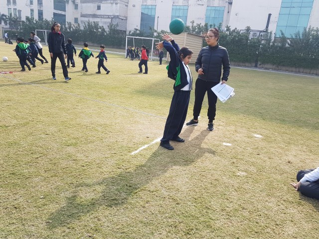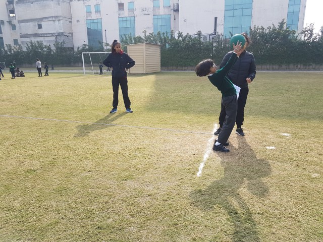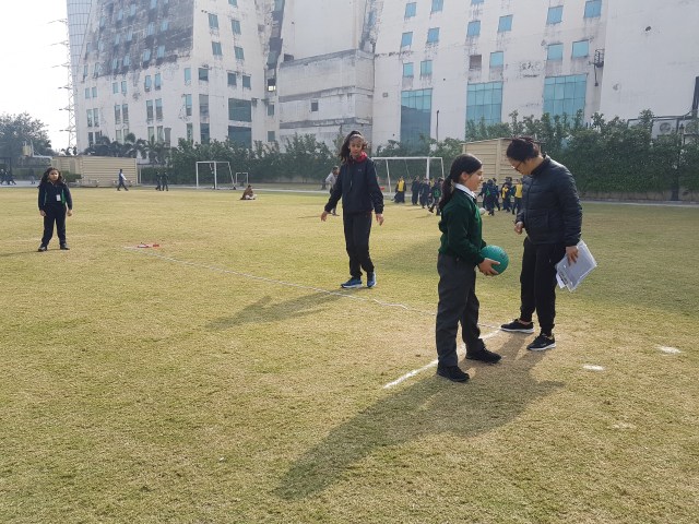 Students were introduced to throwing and catching, throwing while swinging the ball with both hands, stepping with the opposite foot as well as releasing the ball with two hands. They were made to practice ‘catching-stance’, catching a ball with both hands and dropping and catching a ball with two hands. They also played some recreational games.