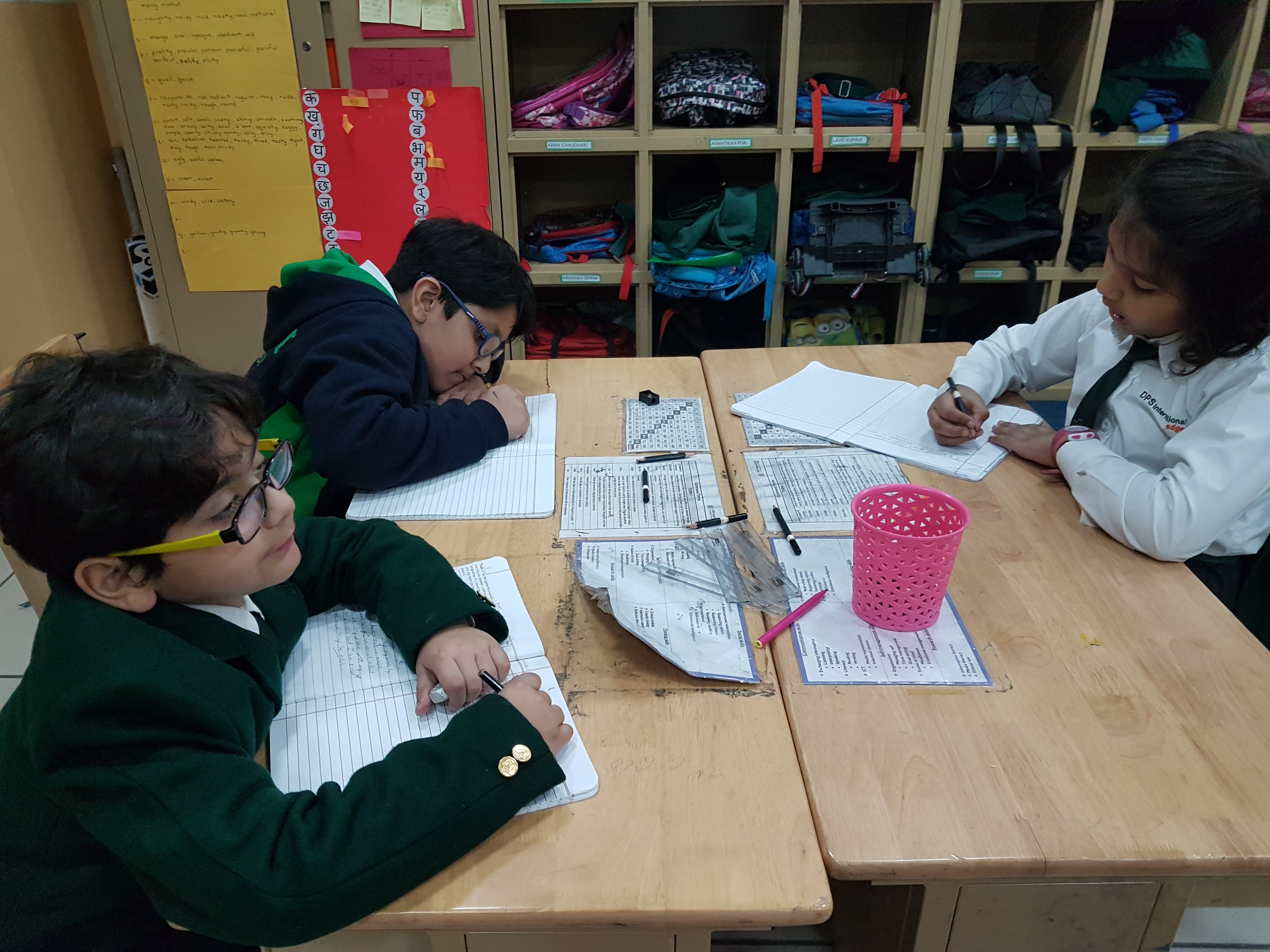 The new week began with students revisiting different properties of addition and mental math strategies. They were keen to learn the concept of doubling through a ‘think, puzzle and explore’ strategy. The CUBES strategy was discussed in pairs which was followed by creating and assessing each other’s word problems. By using the ‘Traffic light’ visual thinking routine students reflected on their understanding of the properties of addition, doubling, mental math and word problems. They were also introduced to the compensation approach for addition and word problems.