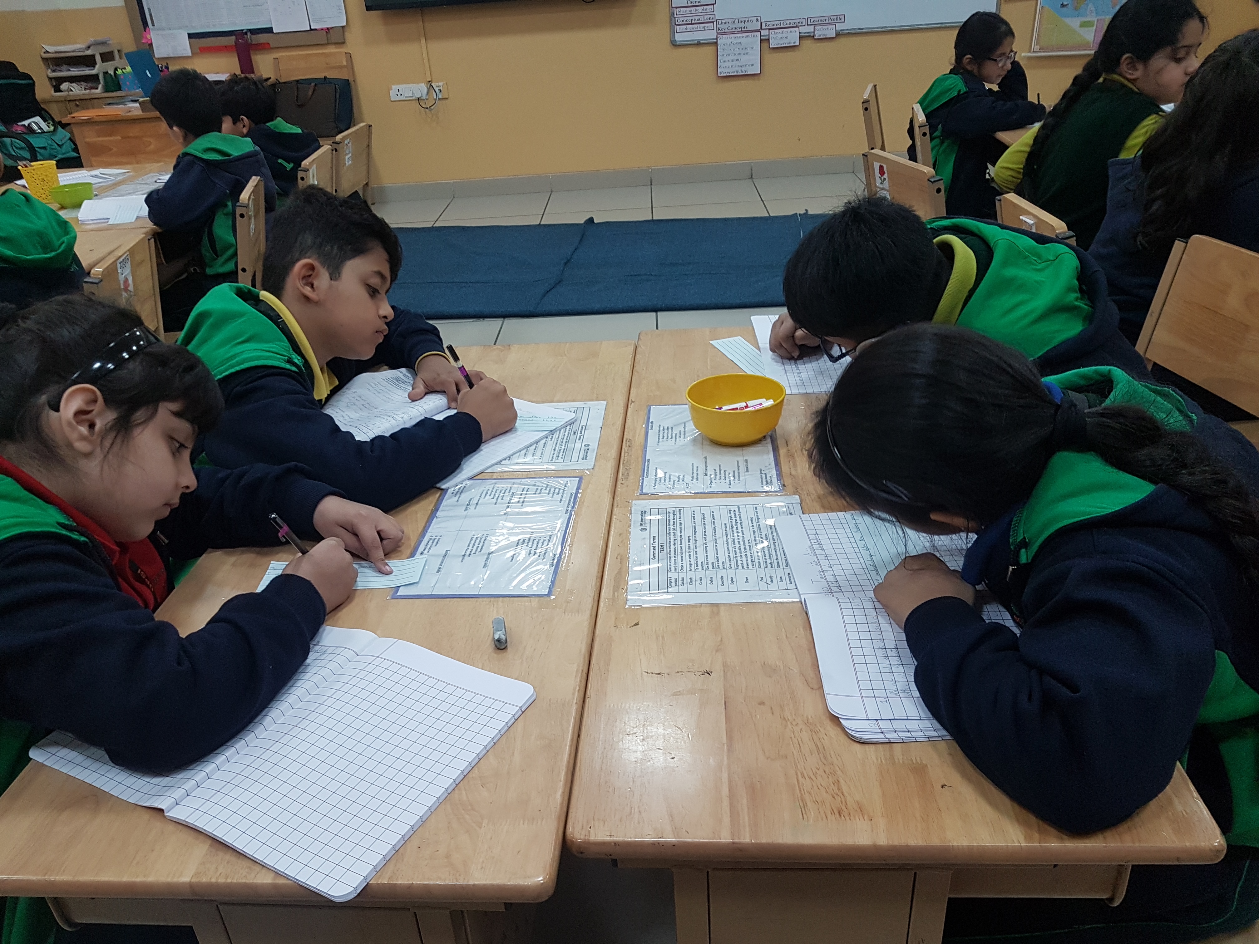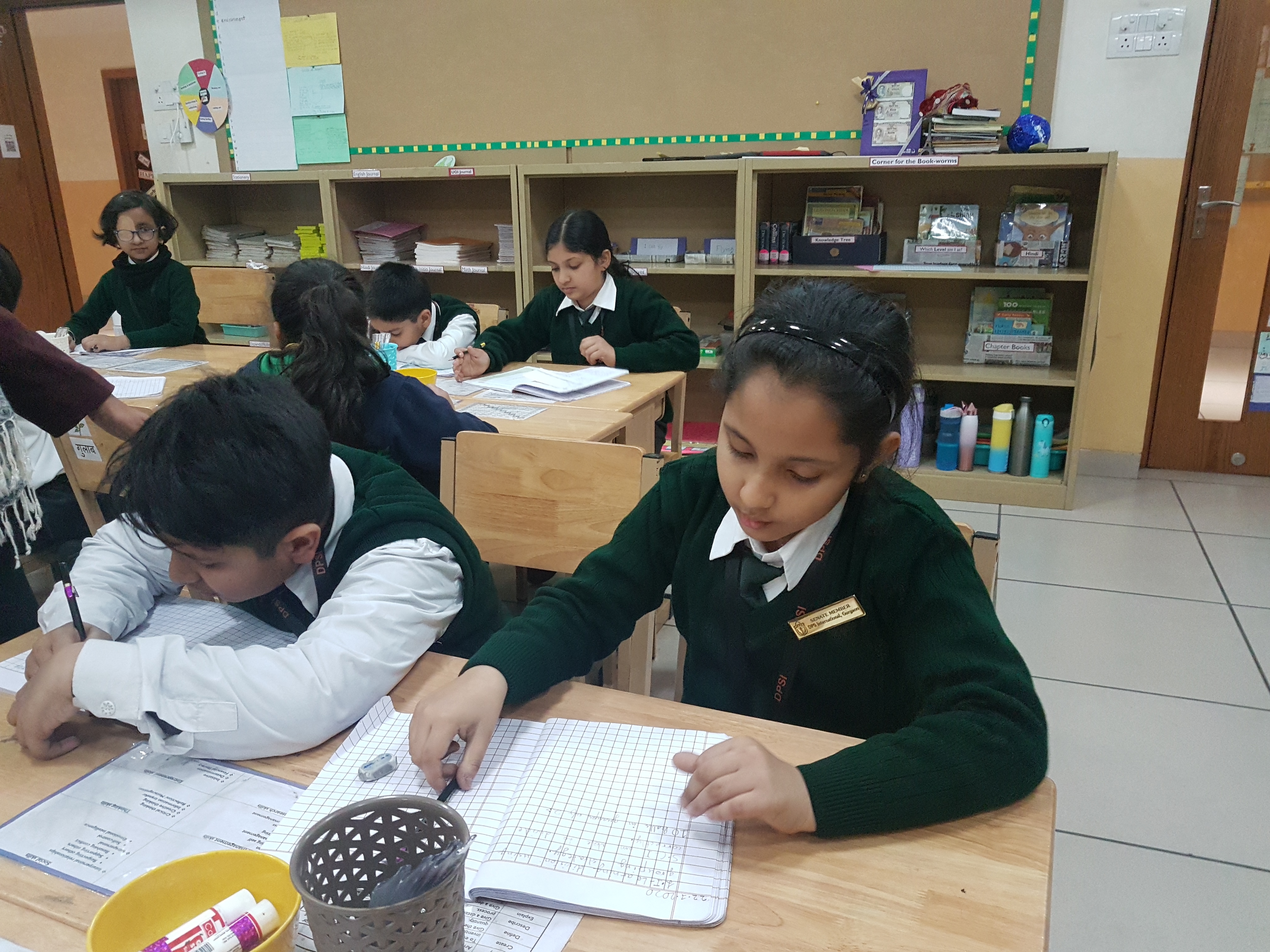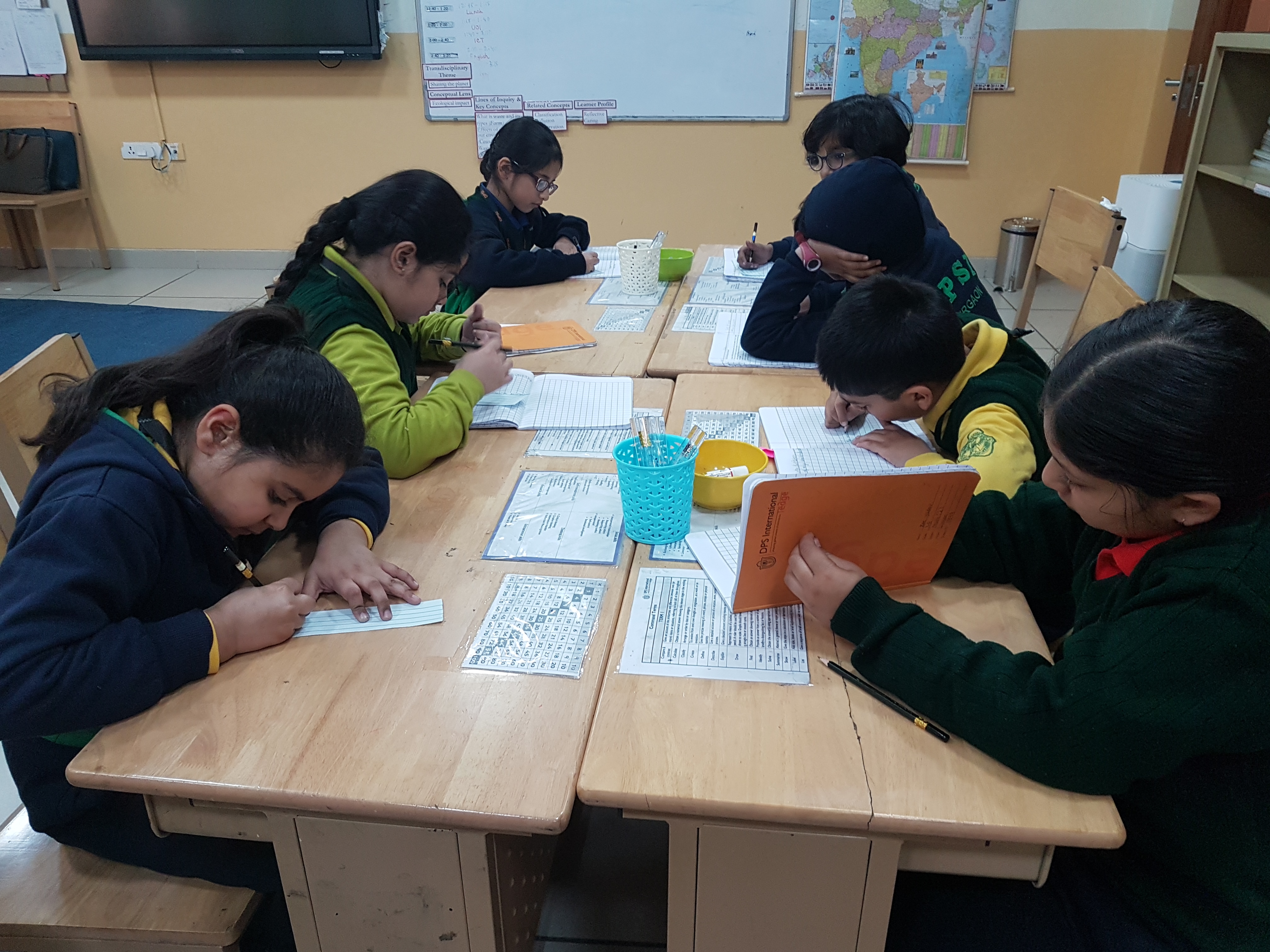 Students improved their continuum of understanding about long division and division rules as they wrote their second understanding of the same. They were then introduced to word problems related to division. They undertook a Formative Assessment on Division where they chose tasks from three stations set up as- Must do, Can do, Can try.