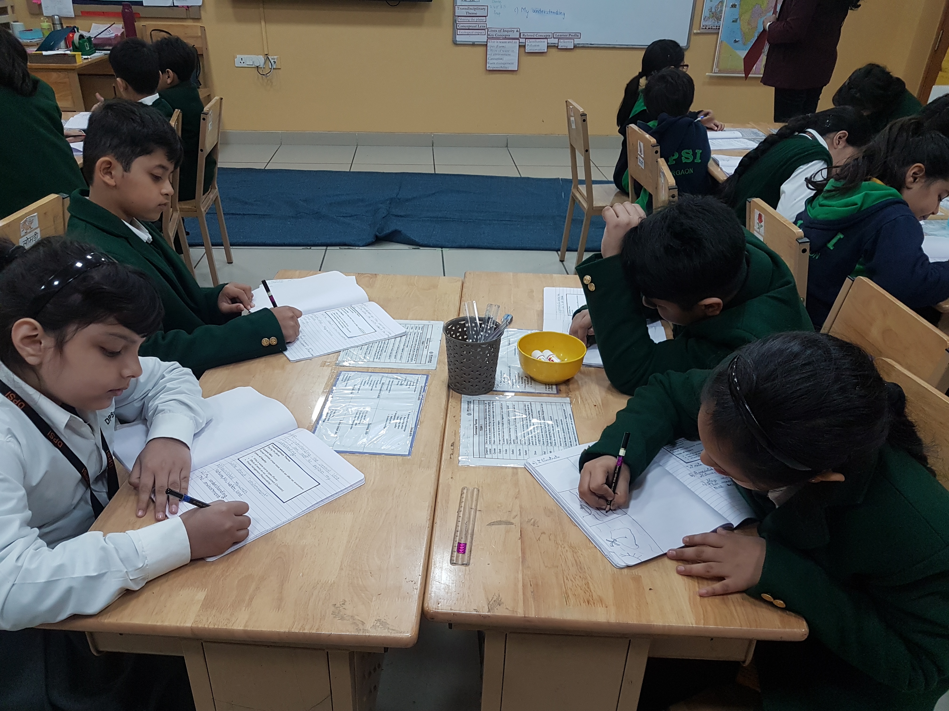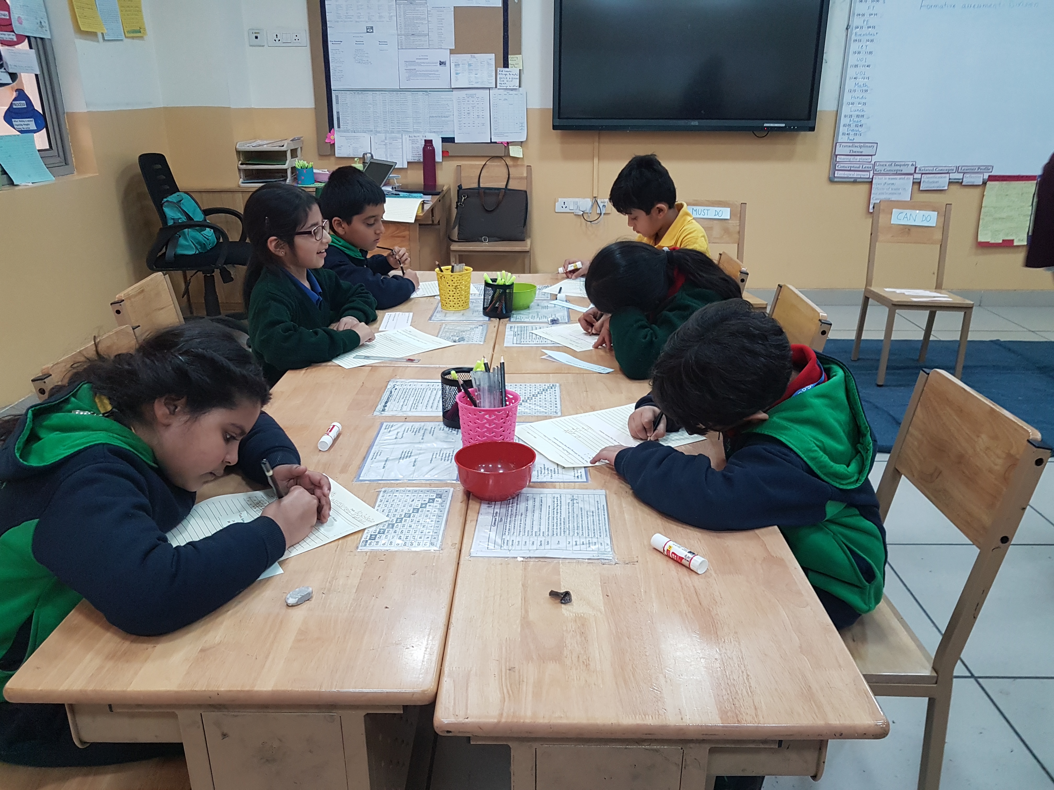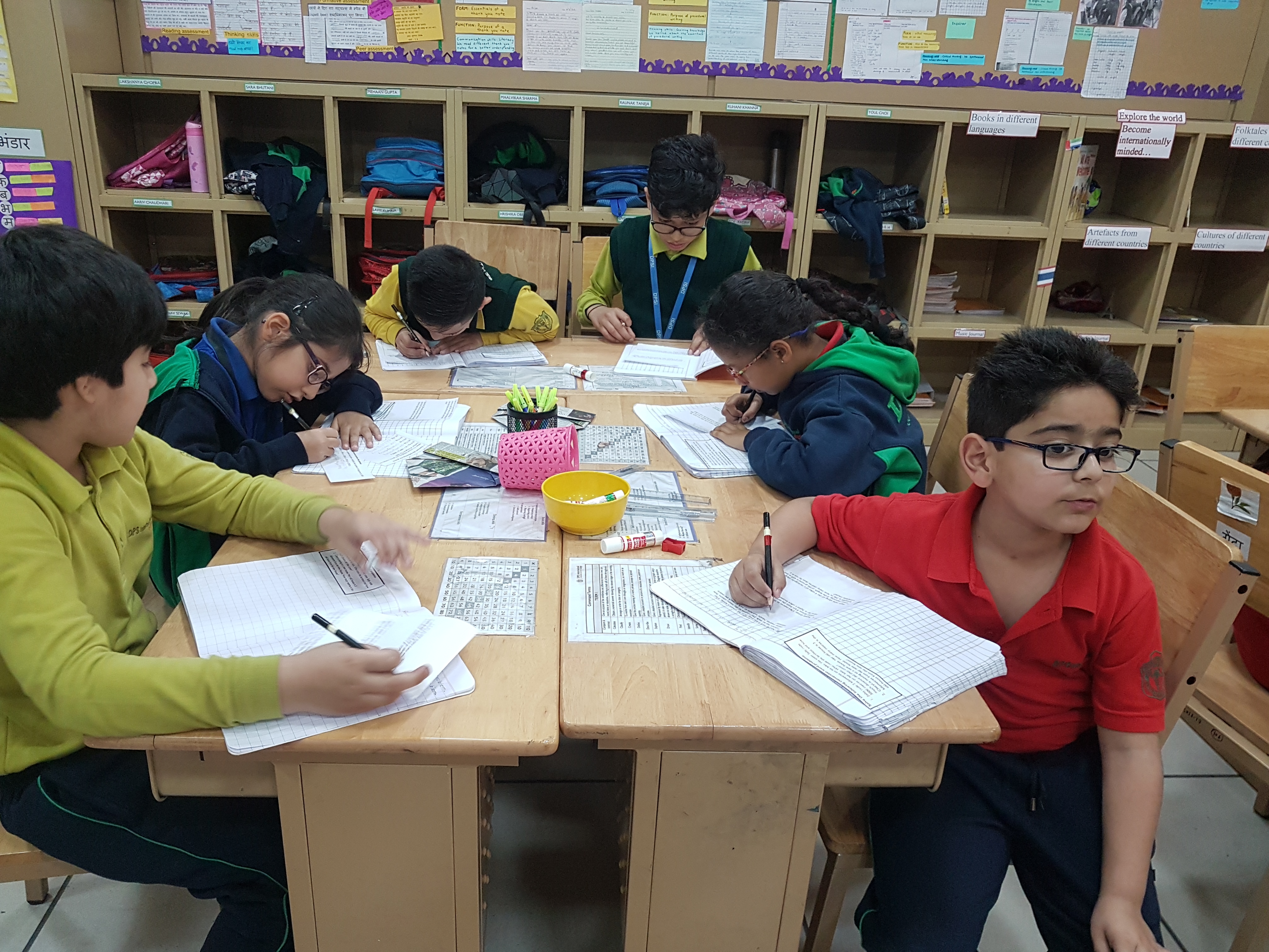 Students improved their continuum of understanding about long division and division rules as they wrote their second understanding of the same. They were then introduced to word problems related to division. They undertook a Formative Assessment on Division where they chose tasks from three stations set up as- Must do, Can do, Can try.