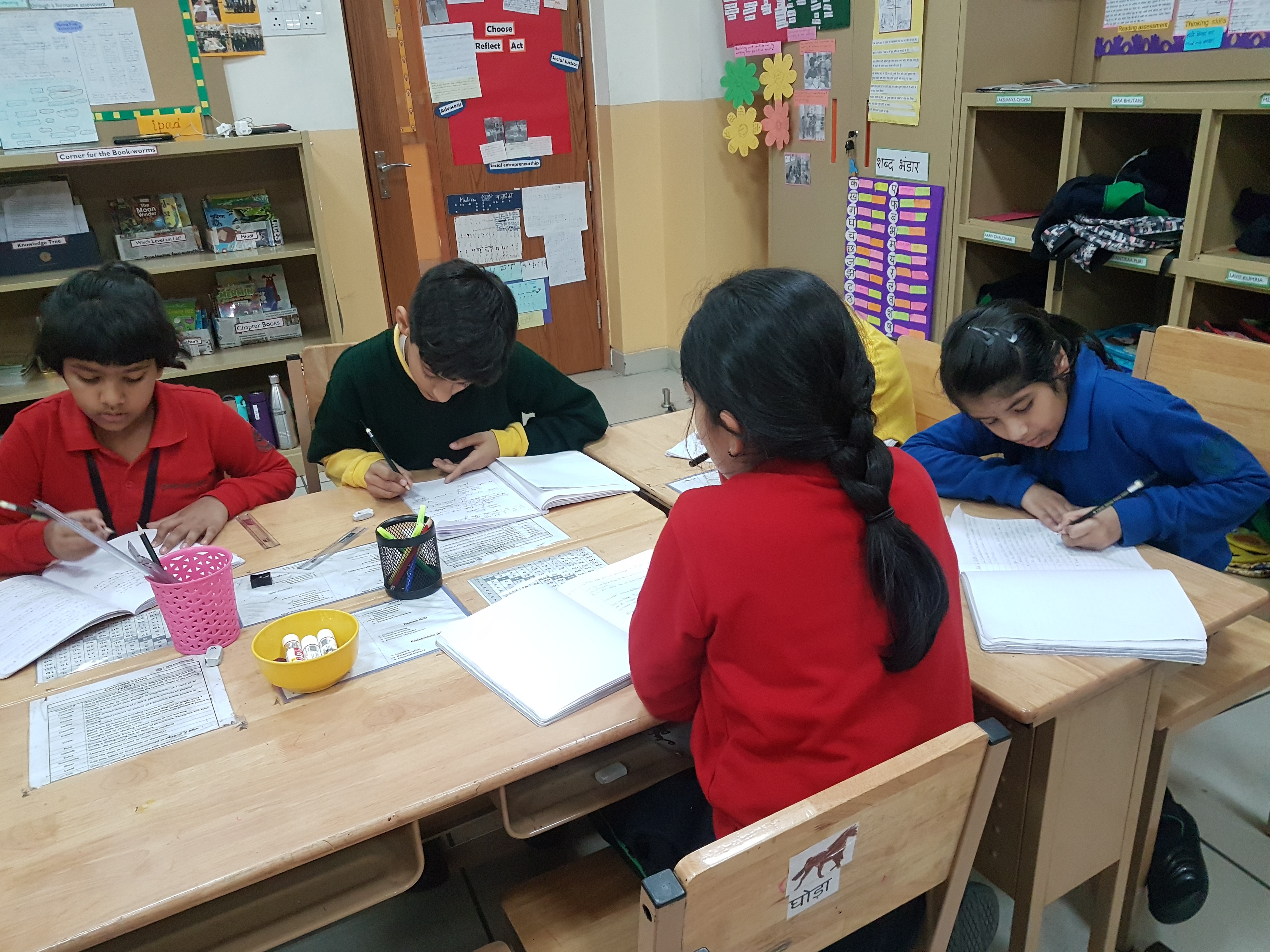 During their Hindi lesson, students shared their views on the topic ‘मानव ने क्या बनाया और क्या बिगाड़ा’ through VTR –Tug of war. They revisited the concept ‘विराम चिह्न’ (punctuation marks) in grammar and enhanced their writing skills. Their knowledge was also assessed with their ability for sentences construction.
