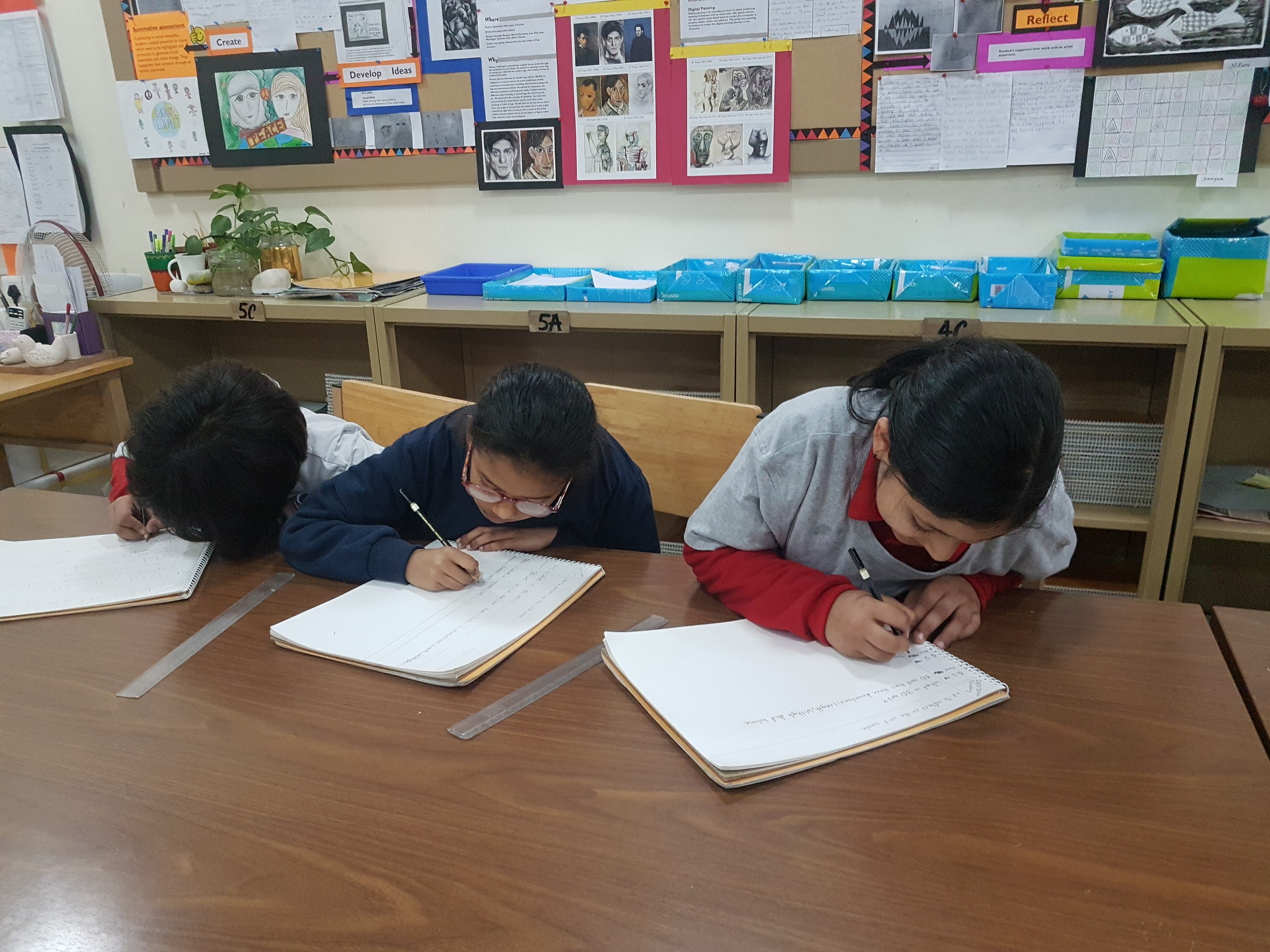 They made real-life connections and used the ‘Avocado’ visible thinking routine to write and show their understanding of a poem by Ken Nesbitt. They employed the ‘traffic light strategy’ to reflect on their understanding of couplets and poems.