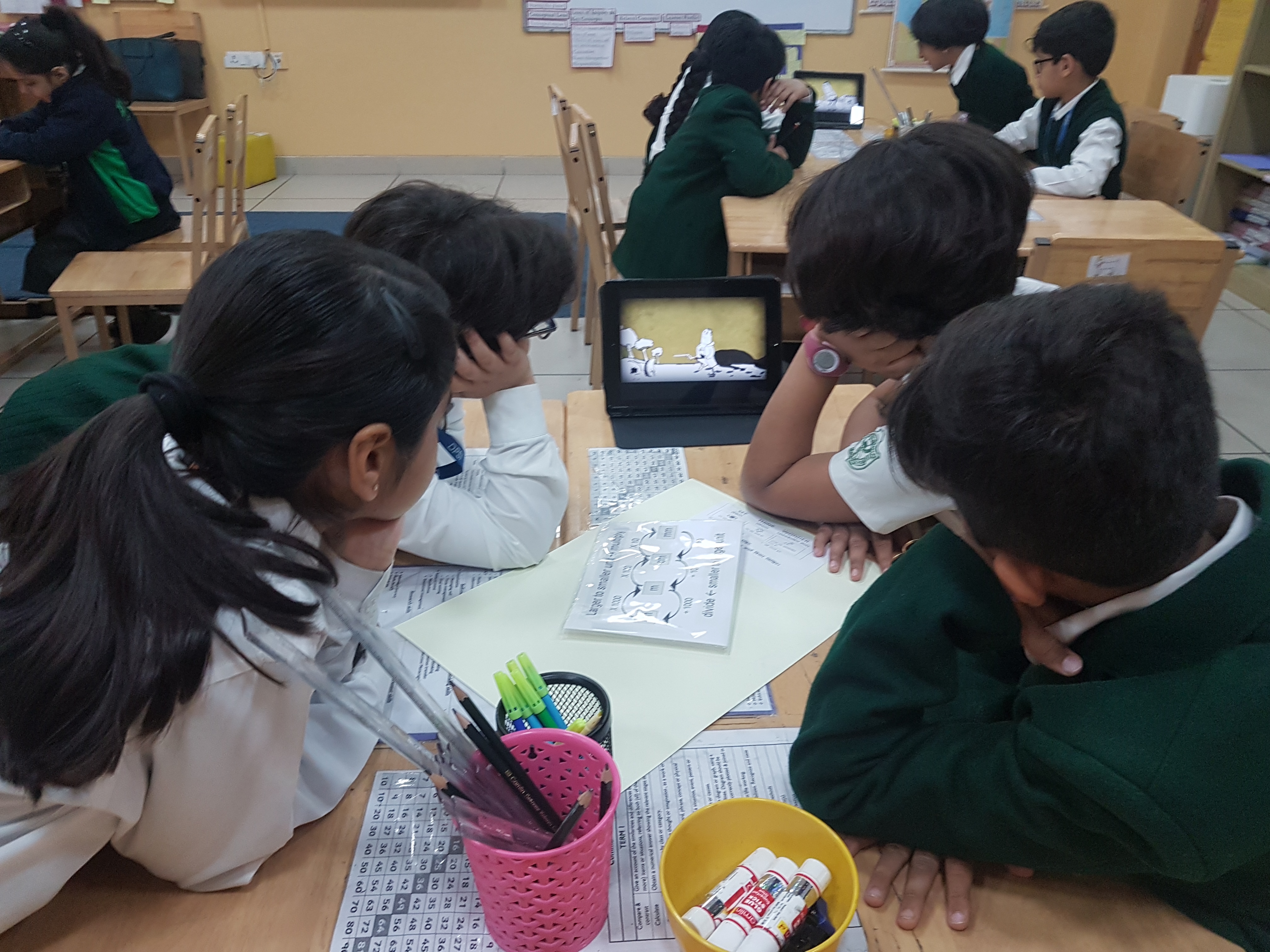 Students were excited to show their understanding of subject and predicate and explored quizzes on their iPads. Integrating with the unit on waste, they read an article on the same and identified the subject and predicate in it. Further, they used a visible thinking routine ‘I used to think/now I think’ to reflect on their understanding of the same. Students were excited to watch and comprehend questions related to the story- ‘What Happens to Three Plastic Bottles’, after which they created a visual image of the journey of each bottle.