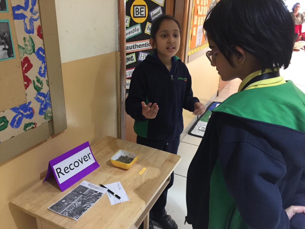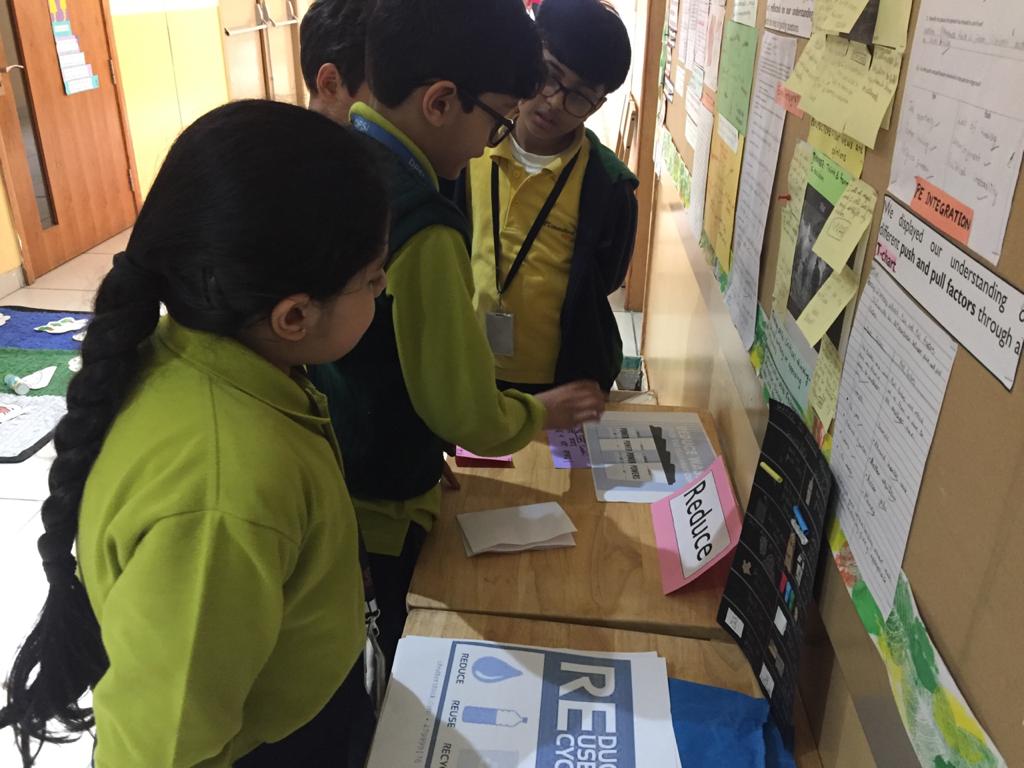They understood the effect of waste on human health (respiratory diseases, problem to ragpickers), plants and animals (leachate, contamination of crops and animal health). They went deeper into the topic as they learned about greenhouse gases and global warming through the visible thinking routine ‘Now I know’. Students eagerly created 7 stations outside the class based on the 7R’s of waste management.