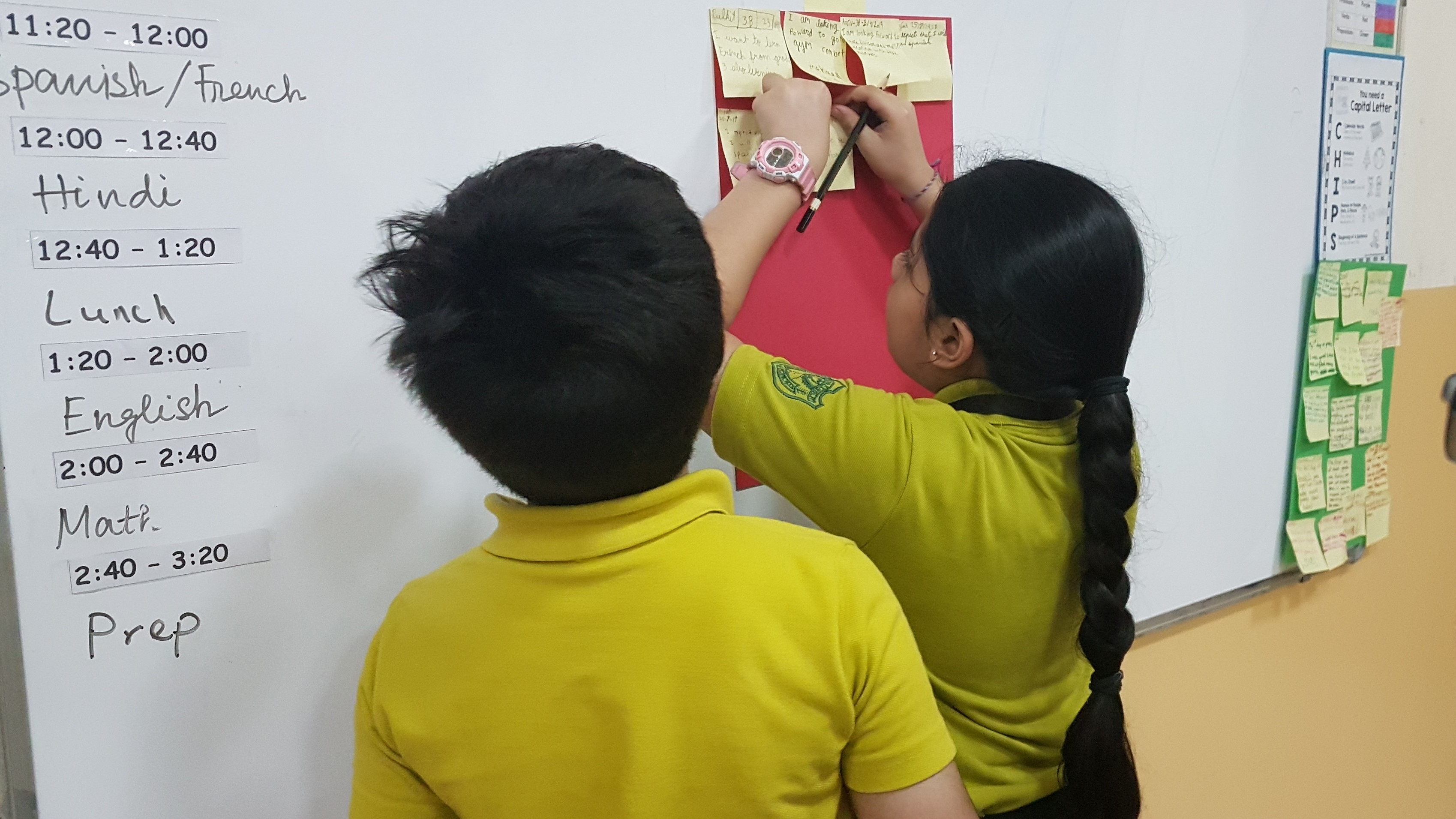 During their Hindi lessons, students watched a video ‘सब्ज़ीवाले का सपना’ and identified the associated Learner Profile in the story which led to a lively discussion in the class. They enhanced their thinking and communication skills through this activity. Students revised all the ‘swar and vyanjans’ and made their own word wall in Hindi class.