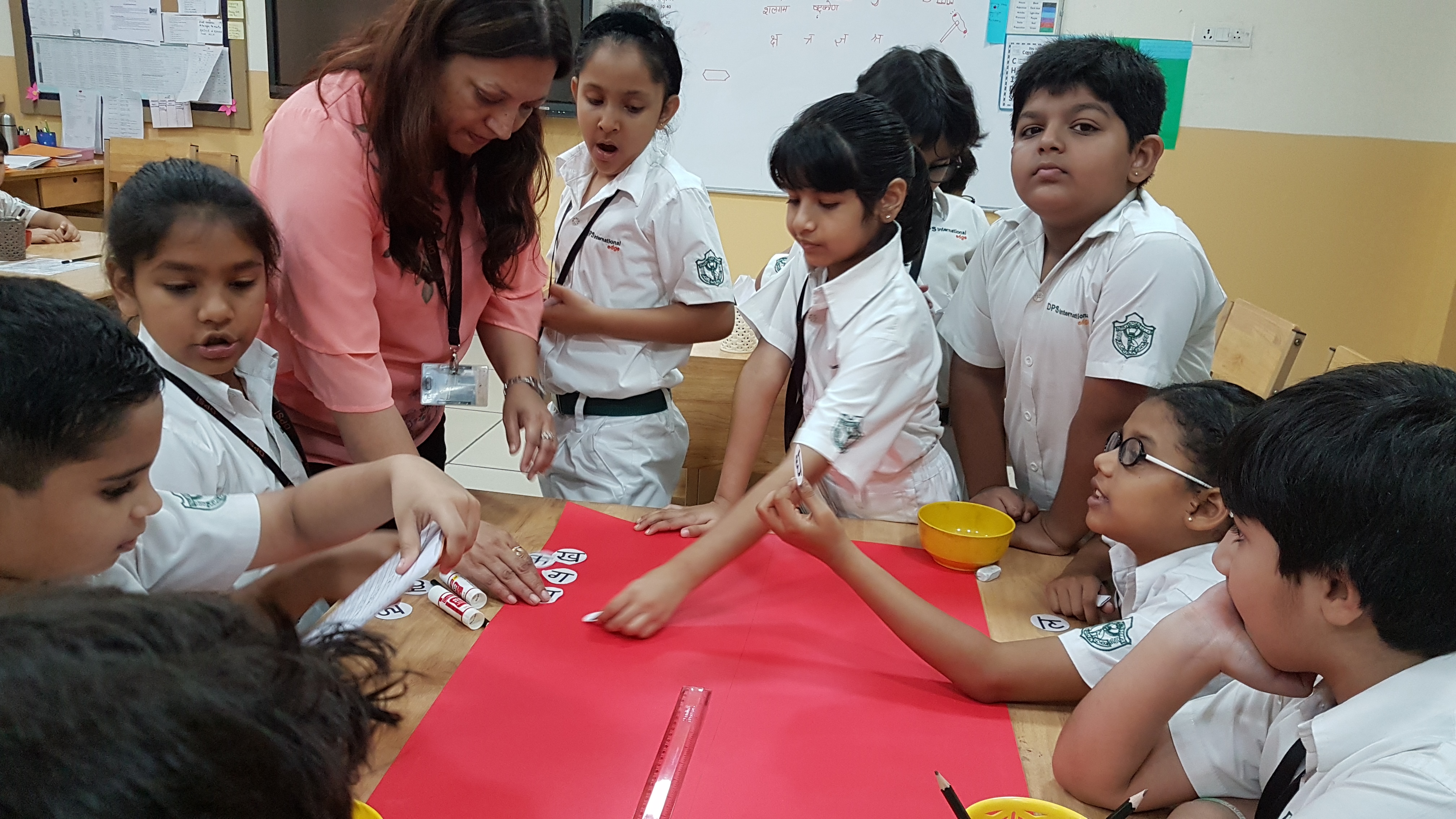 The session began with an engrossing team bonding activity followed by an exciting secret number game. Students understood place value in a better way through manipulatives like golden beads, cards and mat. The ‘Place Value Bingo’ activity was a highlight for the students as they wrote their individualized numbers on a Bingo card. The excitement was palpable as the facilitator gave the children clues about the numbers that had to be cut out.