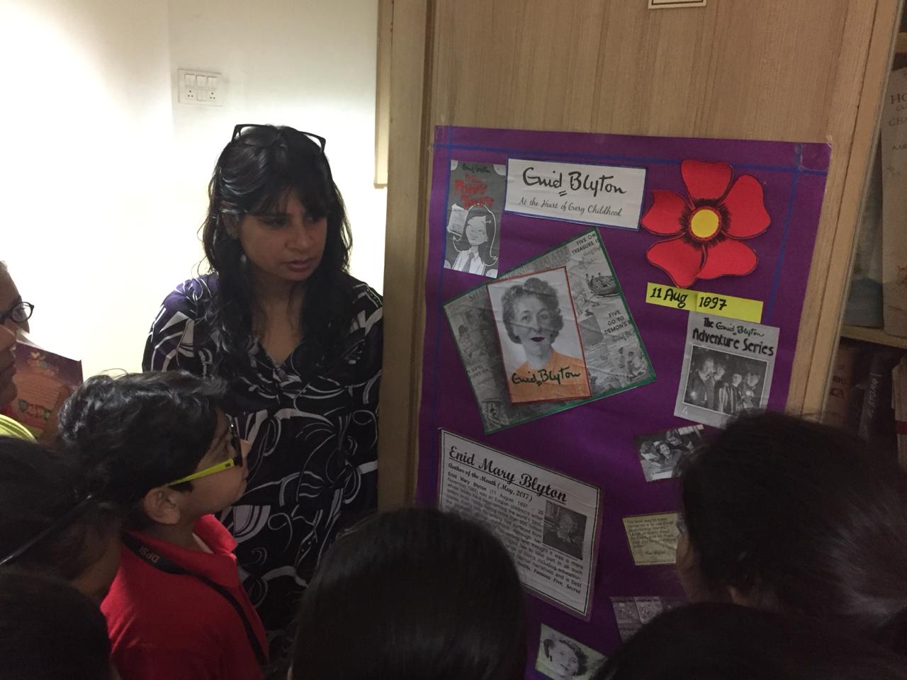 The children were given a brief introduction about the author and the popular series written by her – Noddy, Famous Five, The Secret Seven, Amelia Jane, Malory Towers and The Faraway Tree. A few children also borrowed books from her collection.